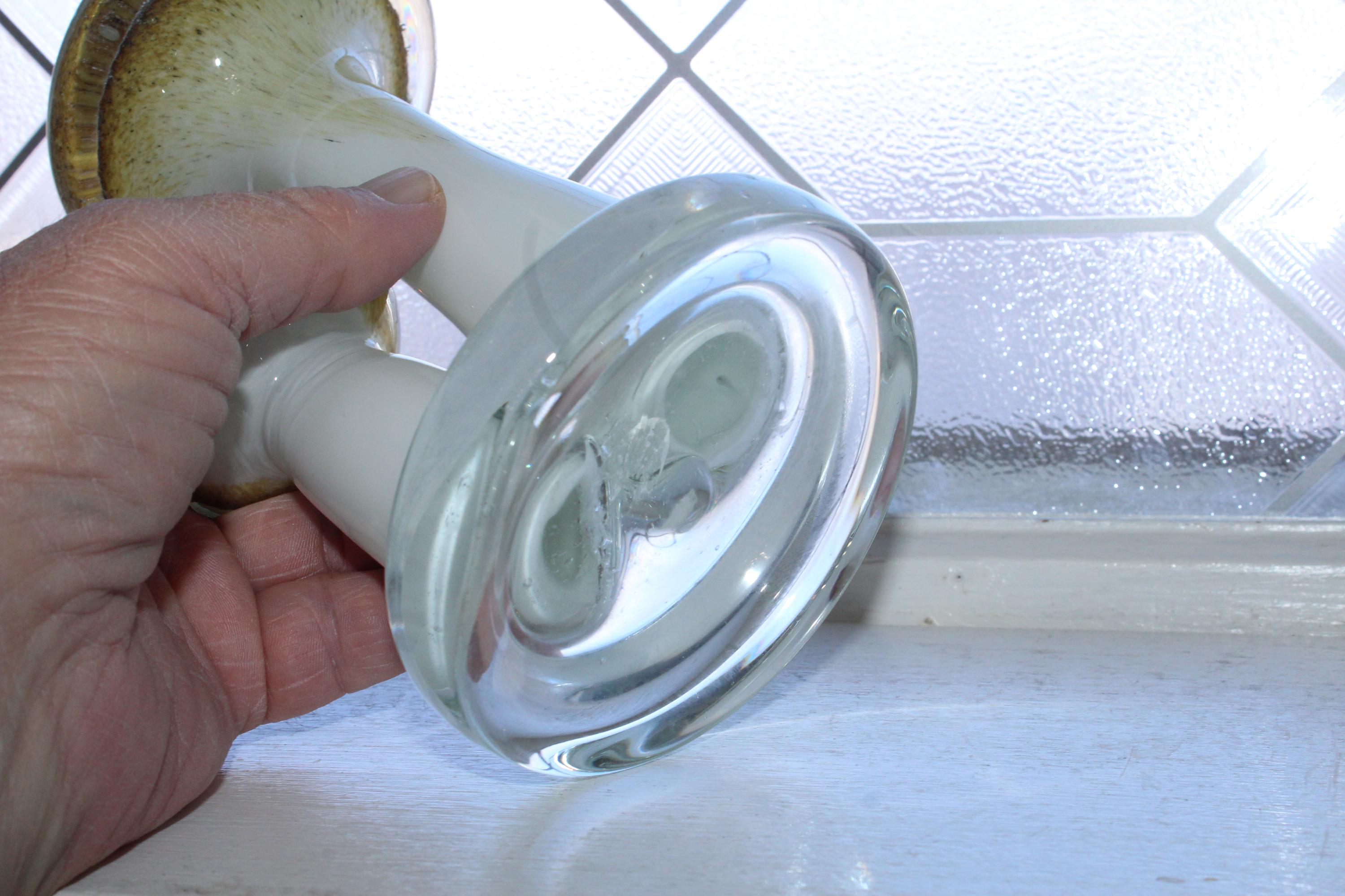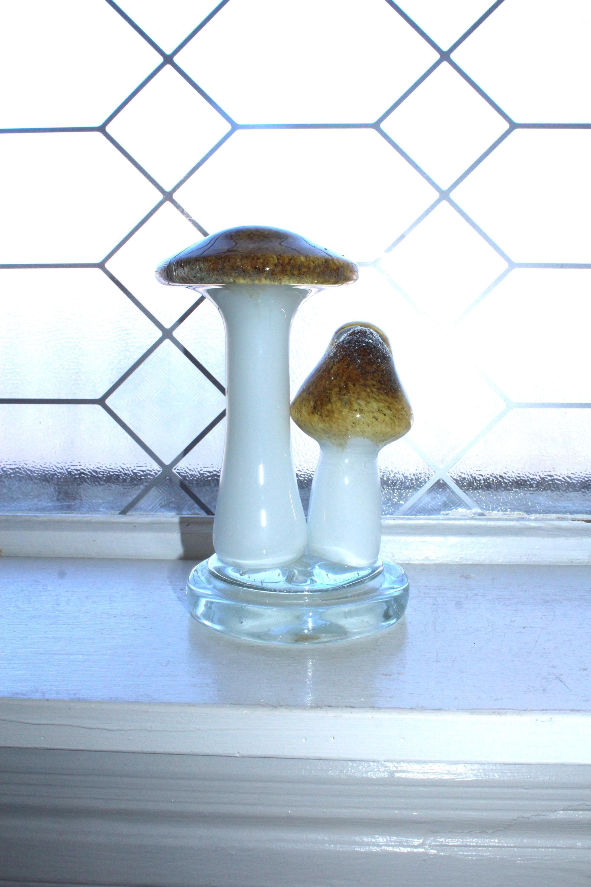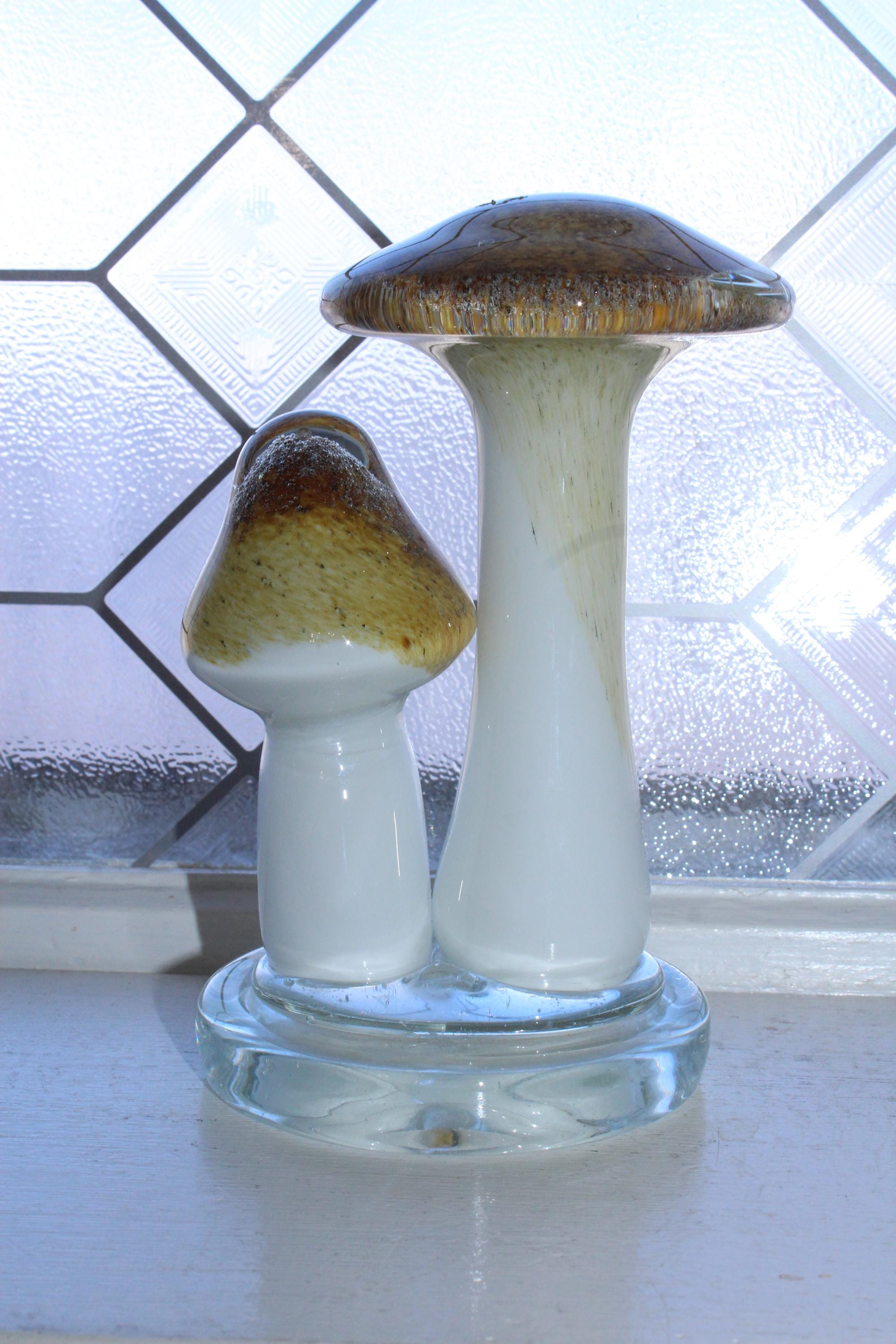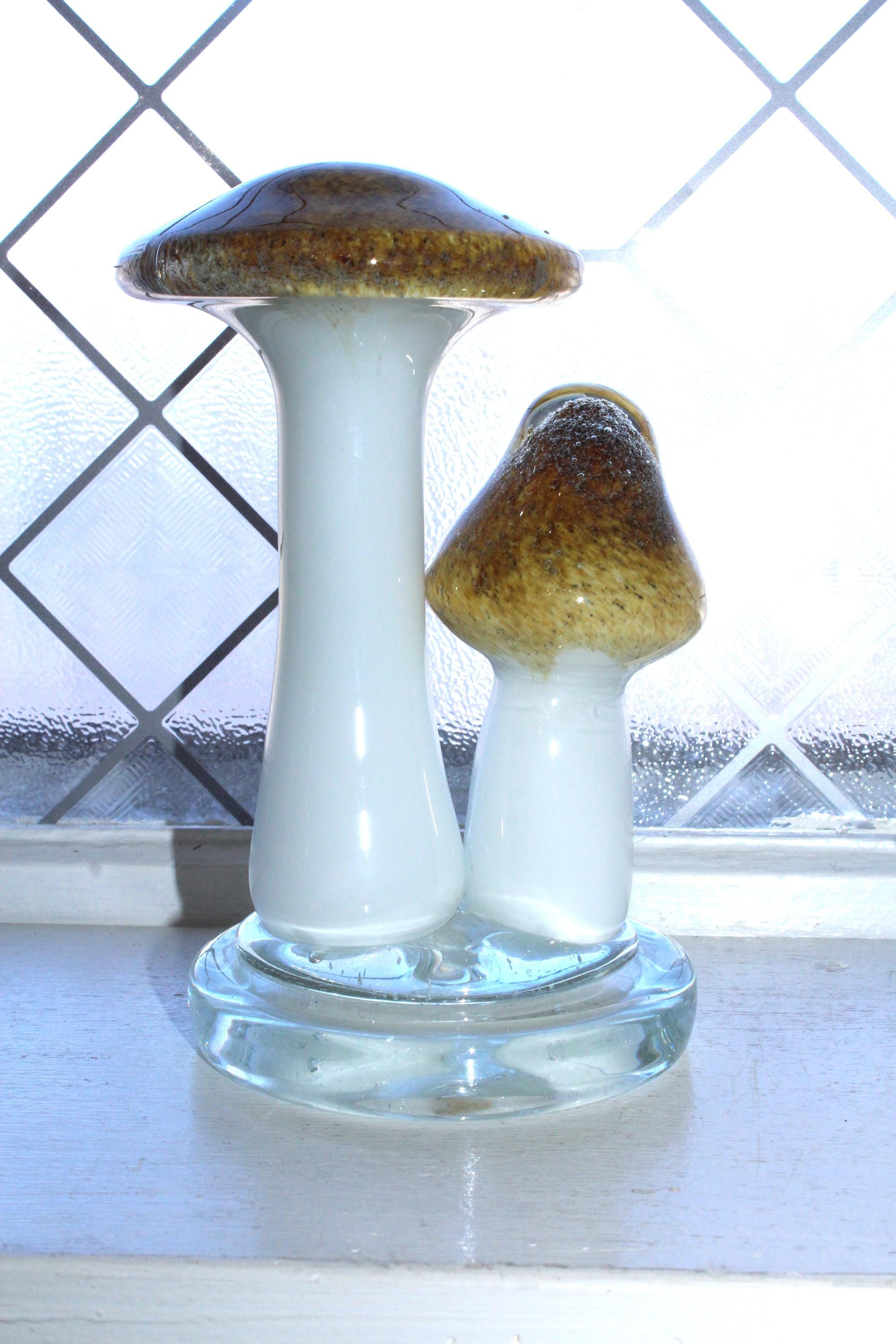Vintage glass mushrooms figurine paperweight, in excellent condition. It measures 6 1/2" high, weighs 2 1/2 lbs. and is in mint condition. Enjoy!