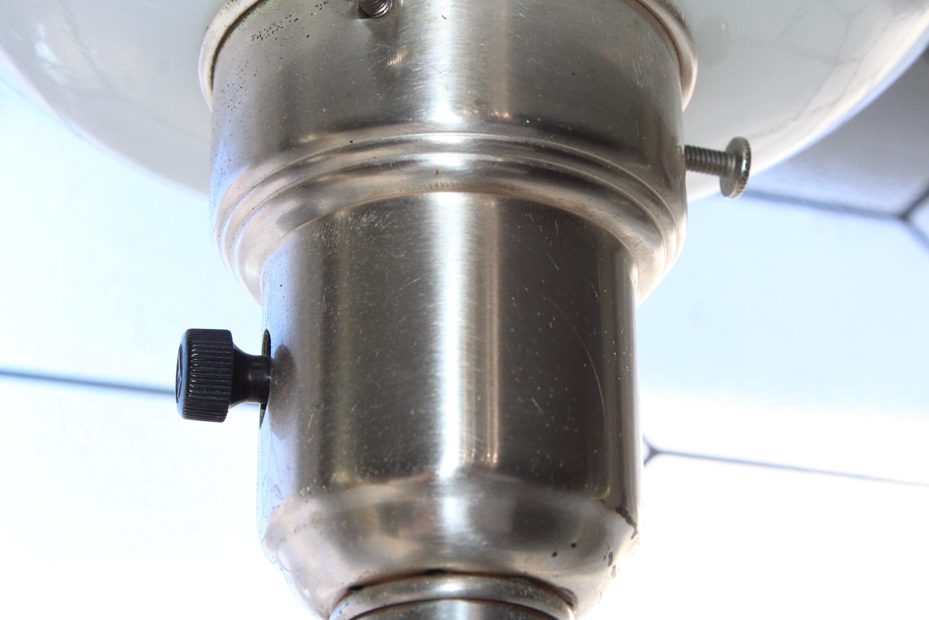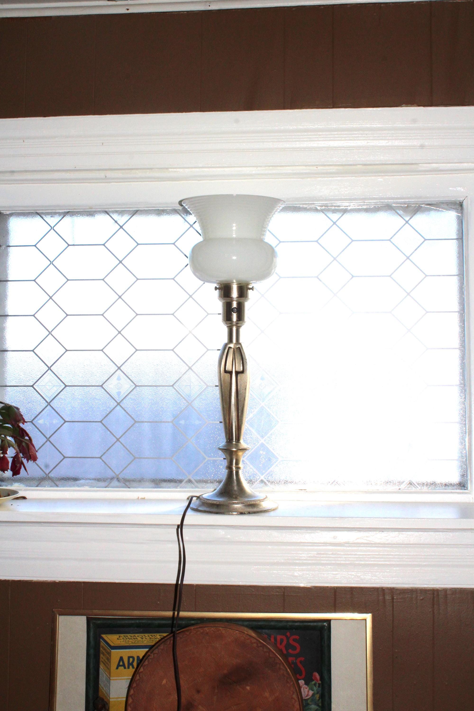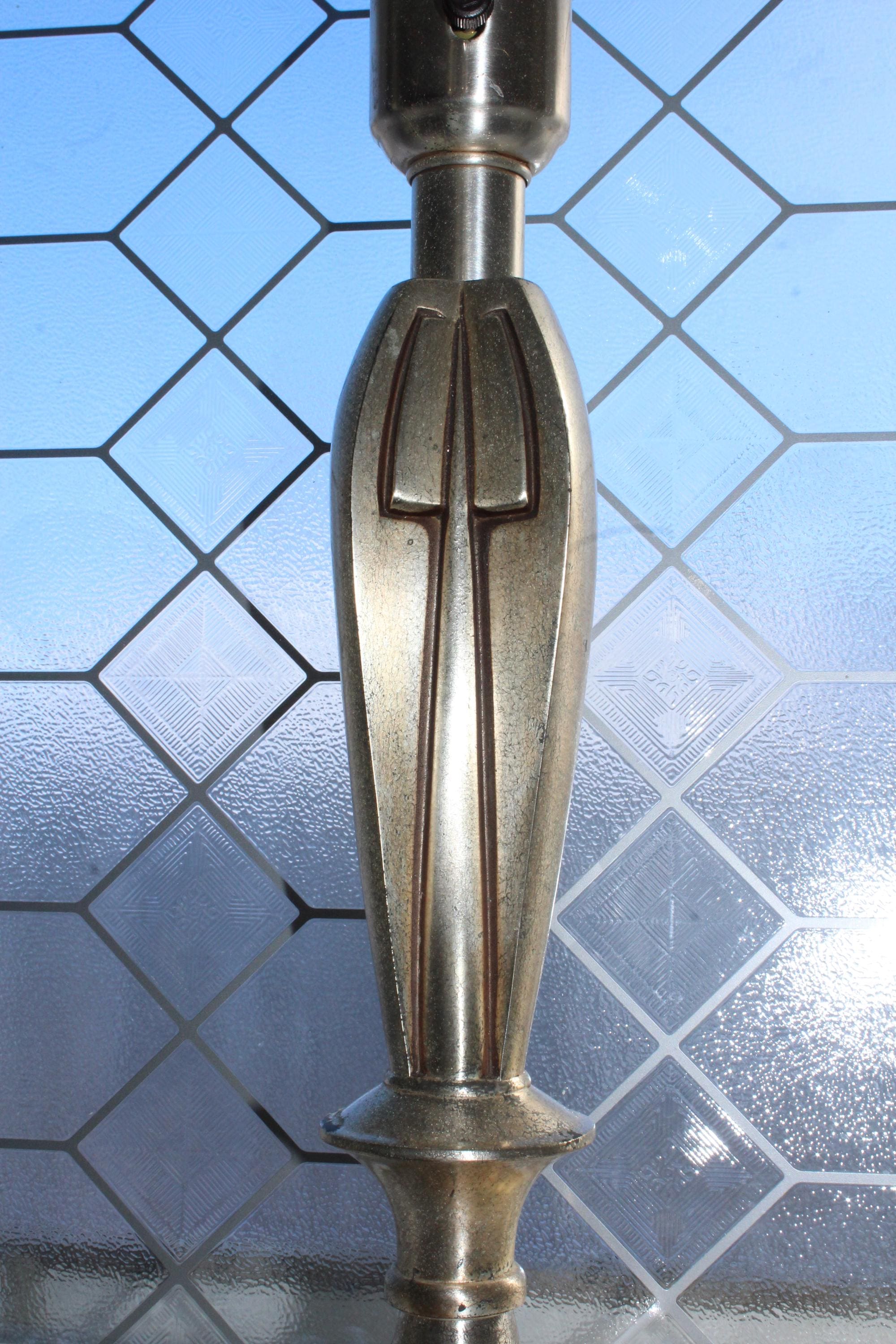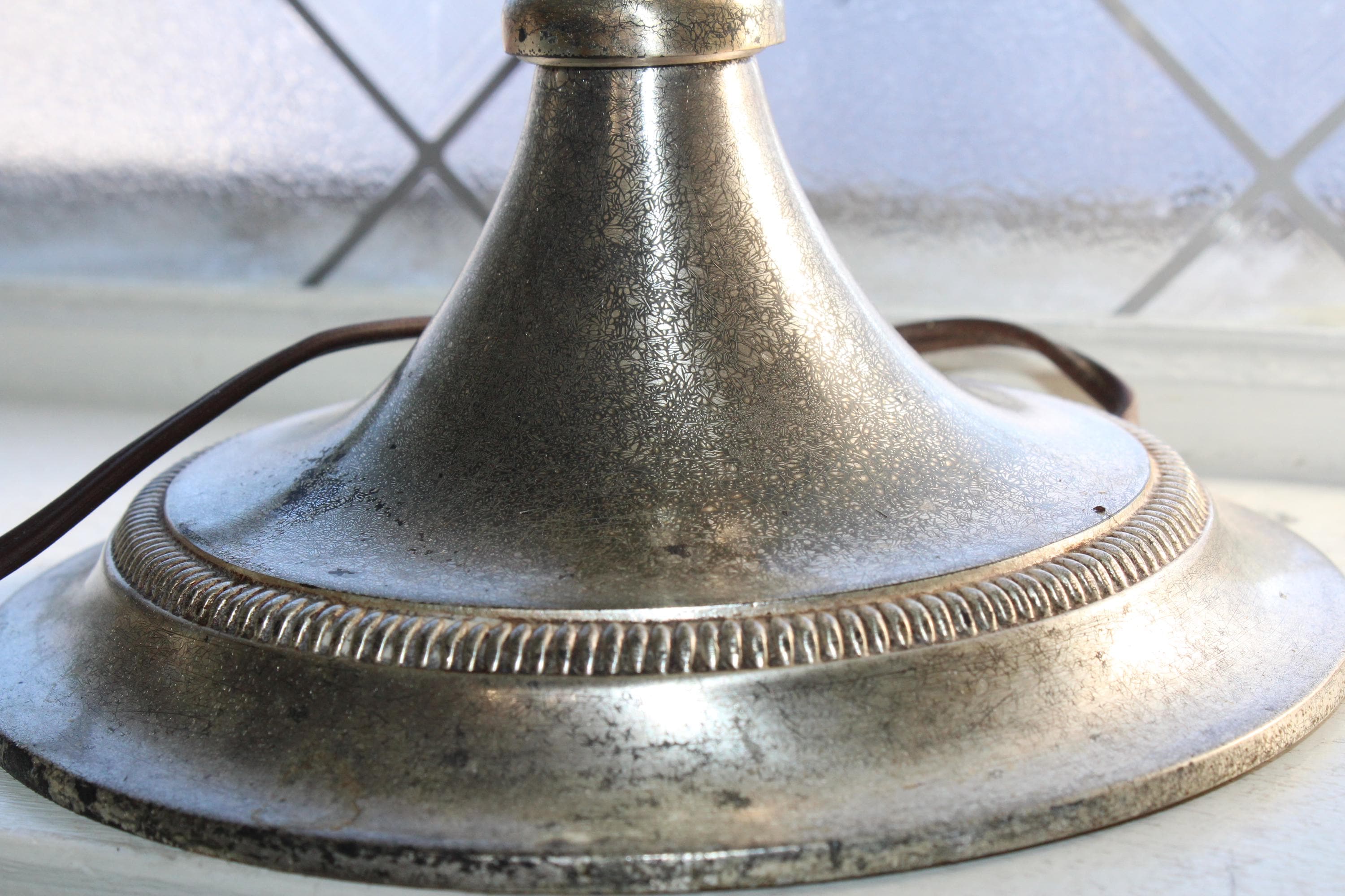 This is a vintage 1930s Art Deco Colonial Premier Co. of Chicago torchere table lamp, in good working condition. It measures 23 1/2" high. The lamp shows age appropriate wear to the finish and a small crack, but still displays very well. It works well and fits in with an Art Deco or Mid Century setting. Enjoy!