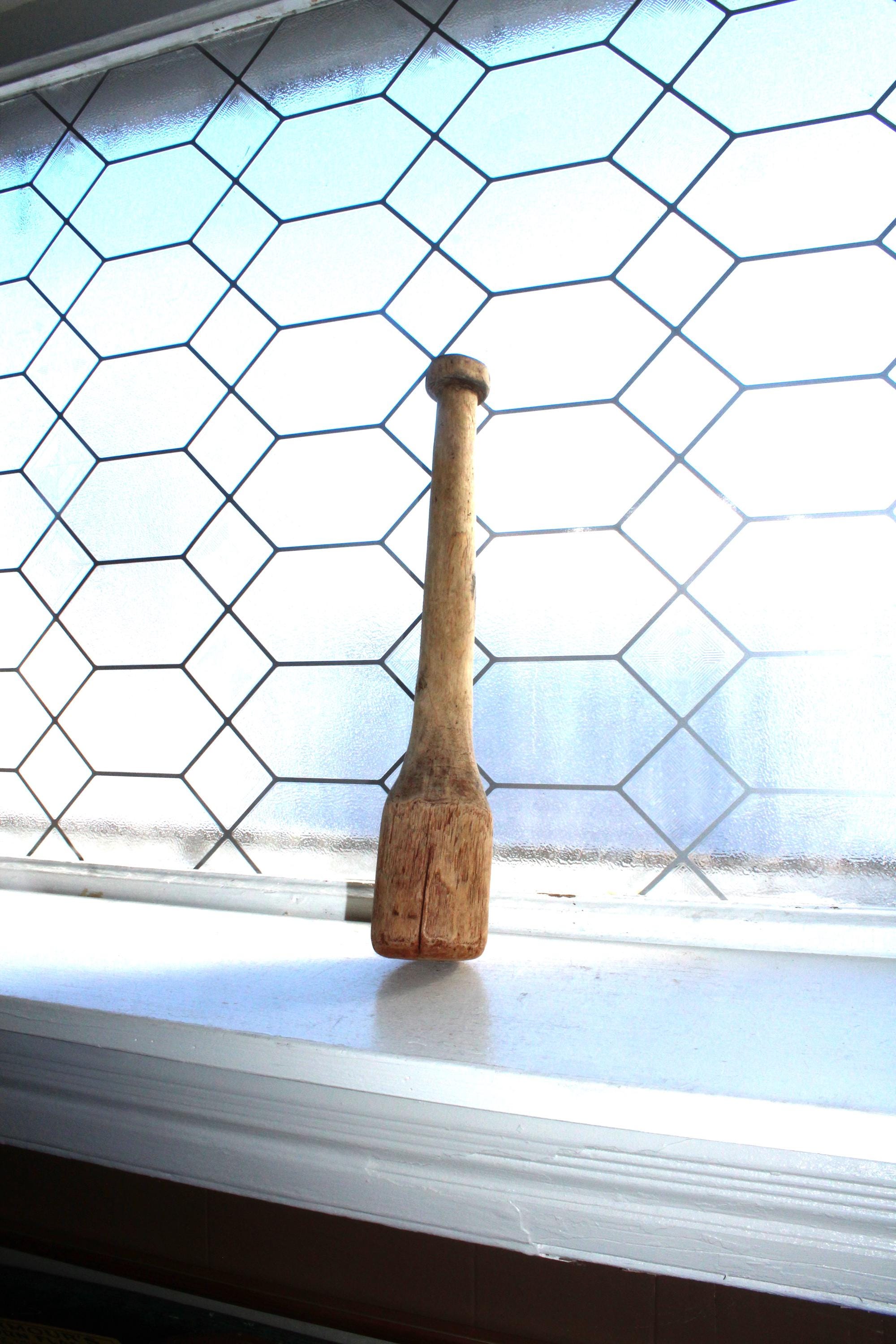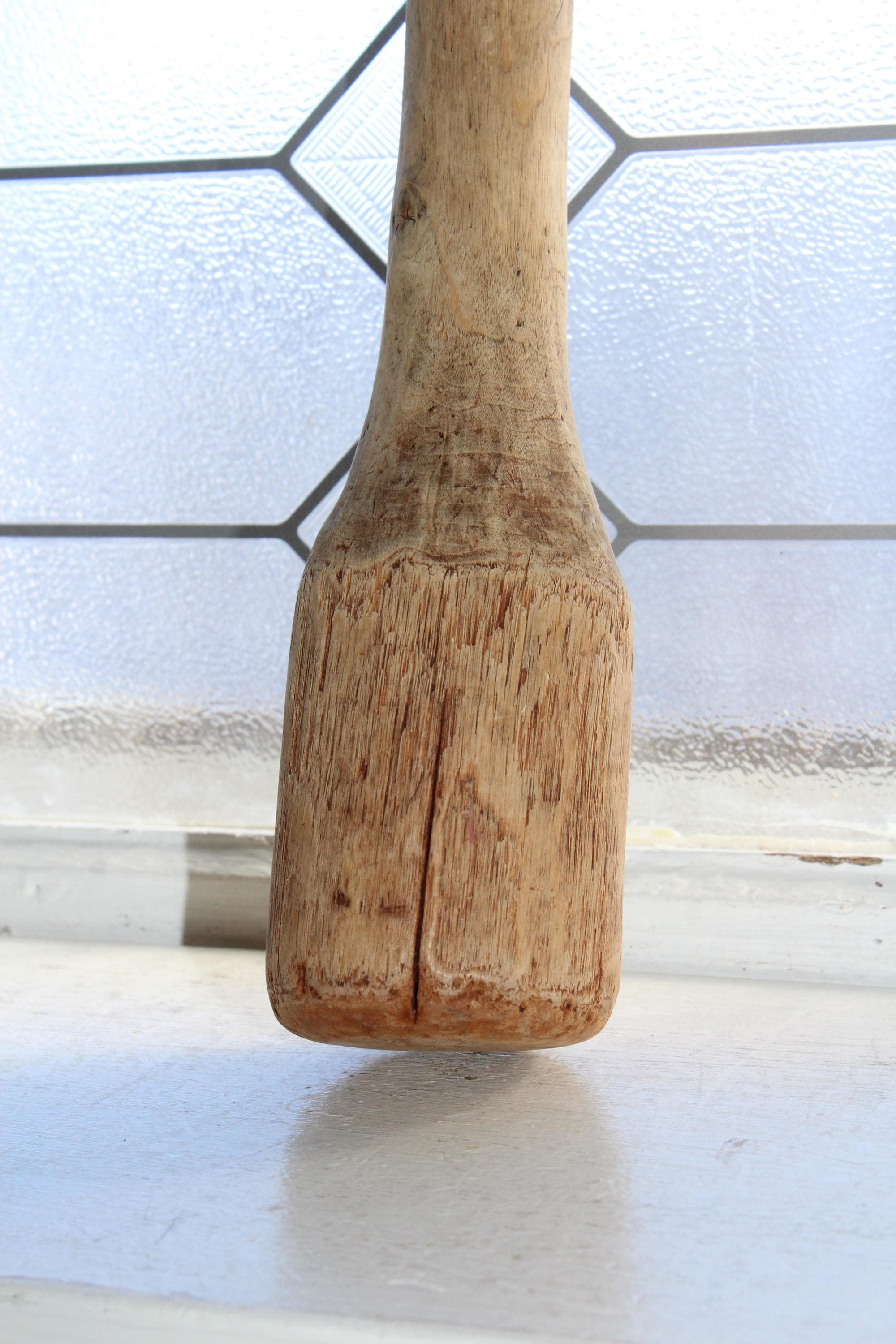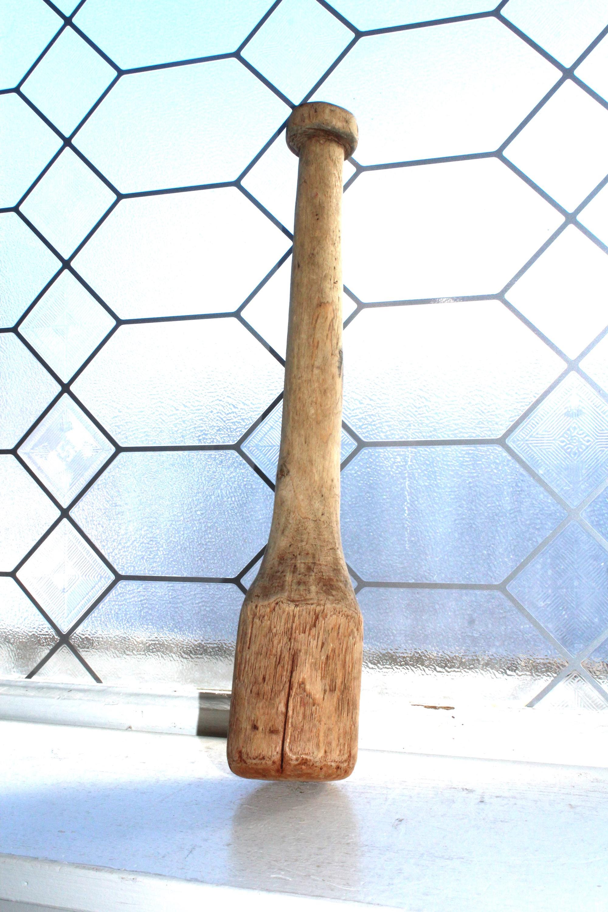 Large antique 1800s handmade wooden kitchen mallet, wacker or stomper, in good rustic condition. The mallet measures 13 3/4" long and makes a great country kitchen accessory. Enjoy!