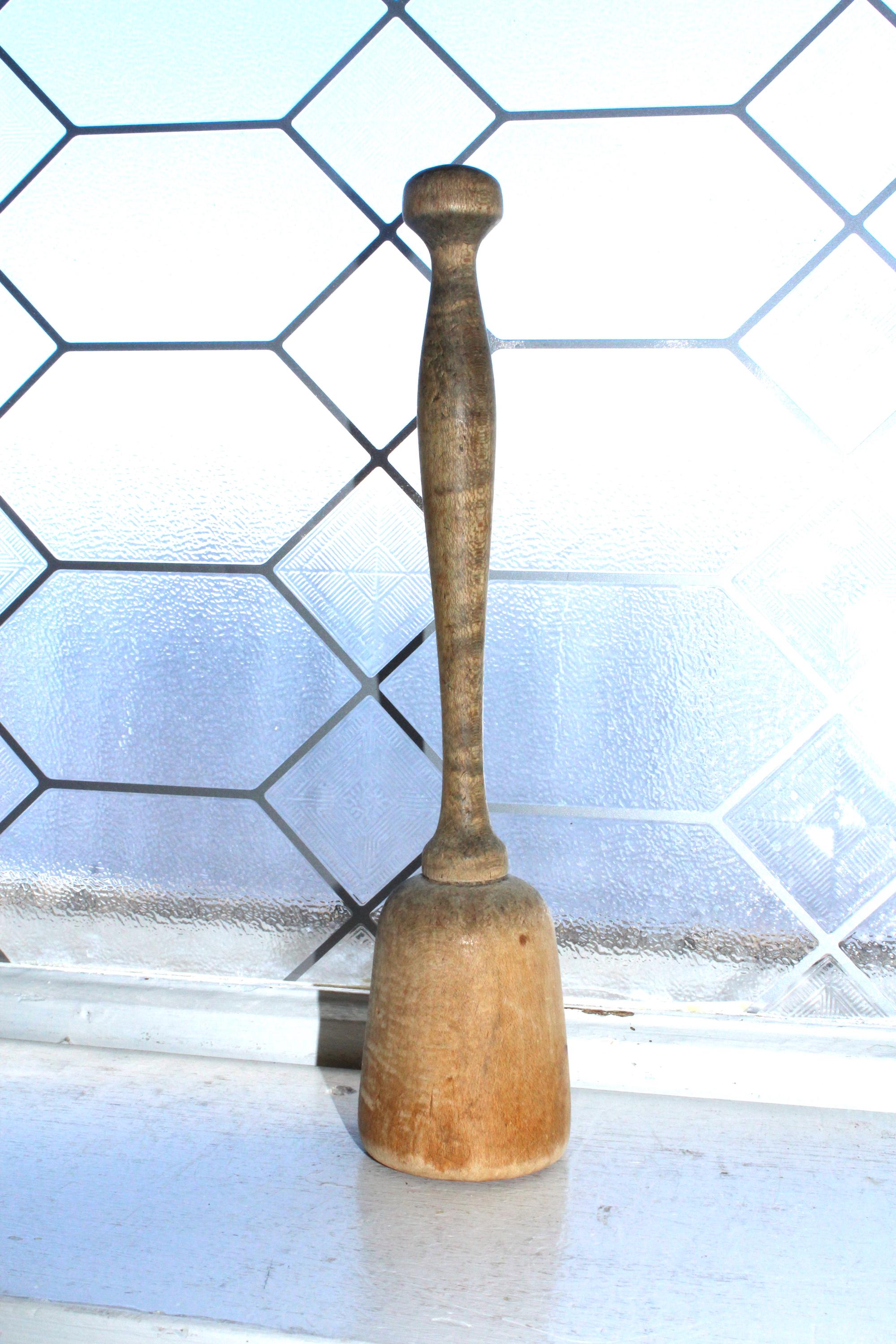 Antique 1920s wooden kitchen mallet, wacker or stomper, in good rustic condition. The mallet measures 10 1/2" long and makes a great country kitchen accessory. Enjoy!
