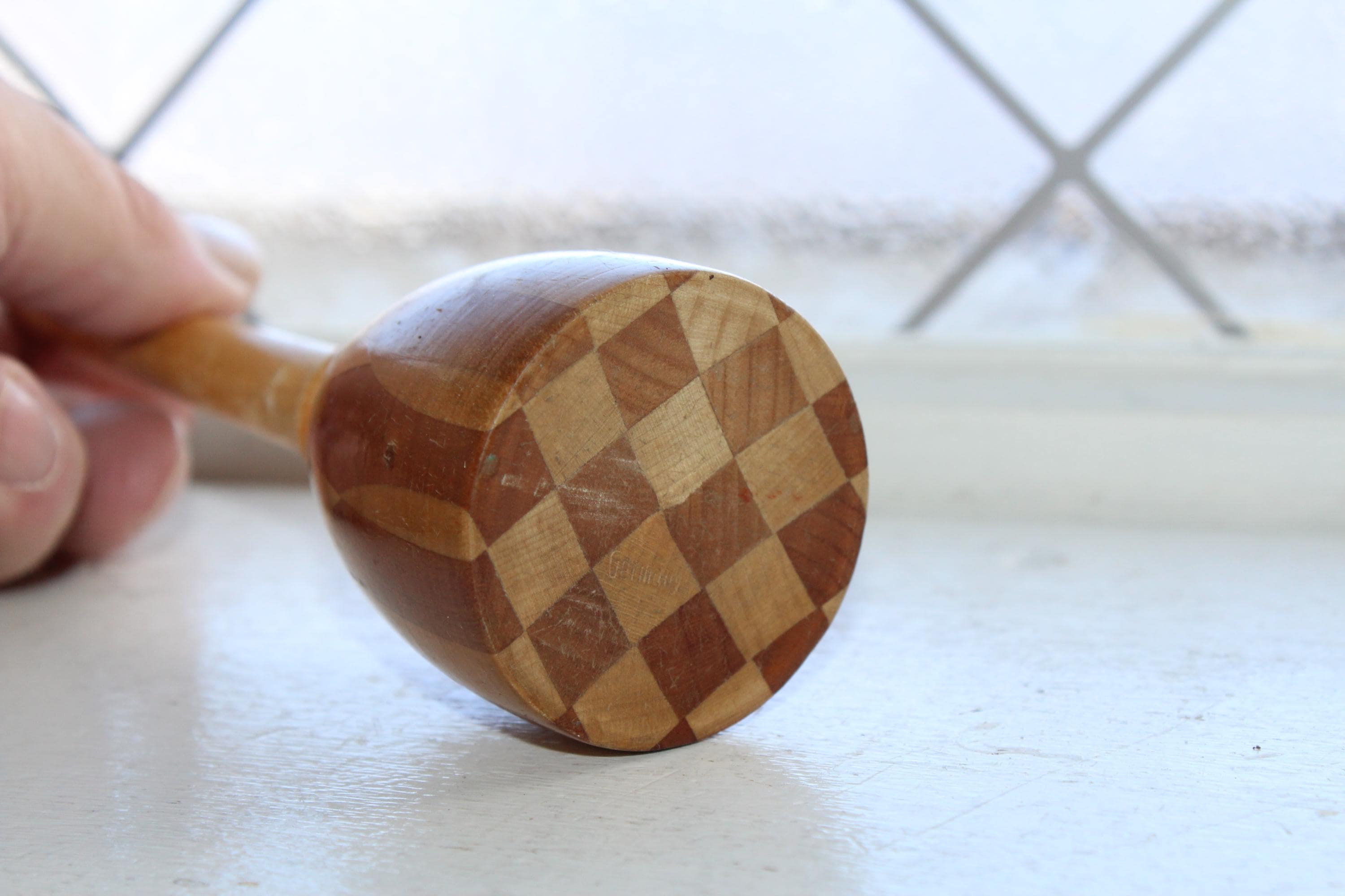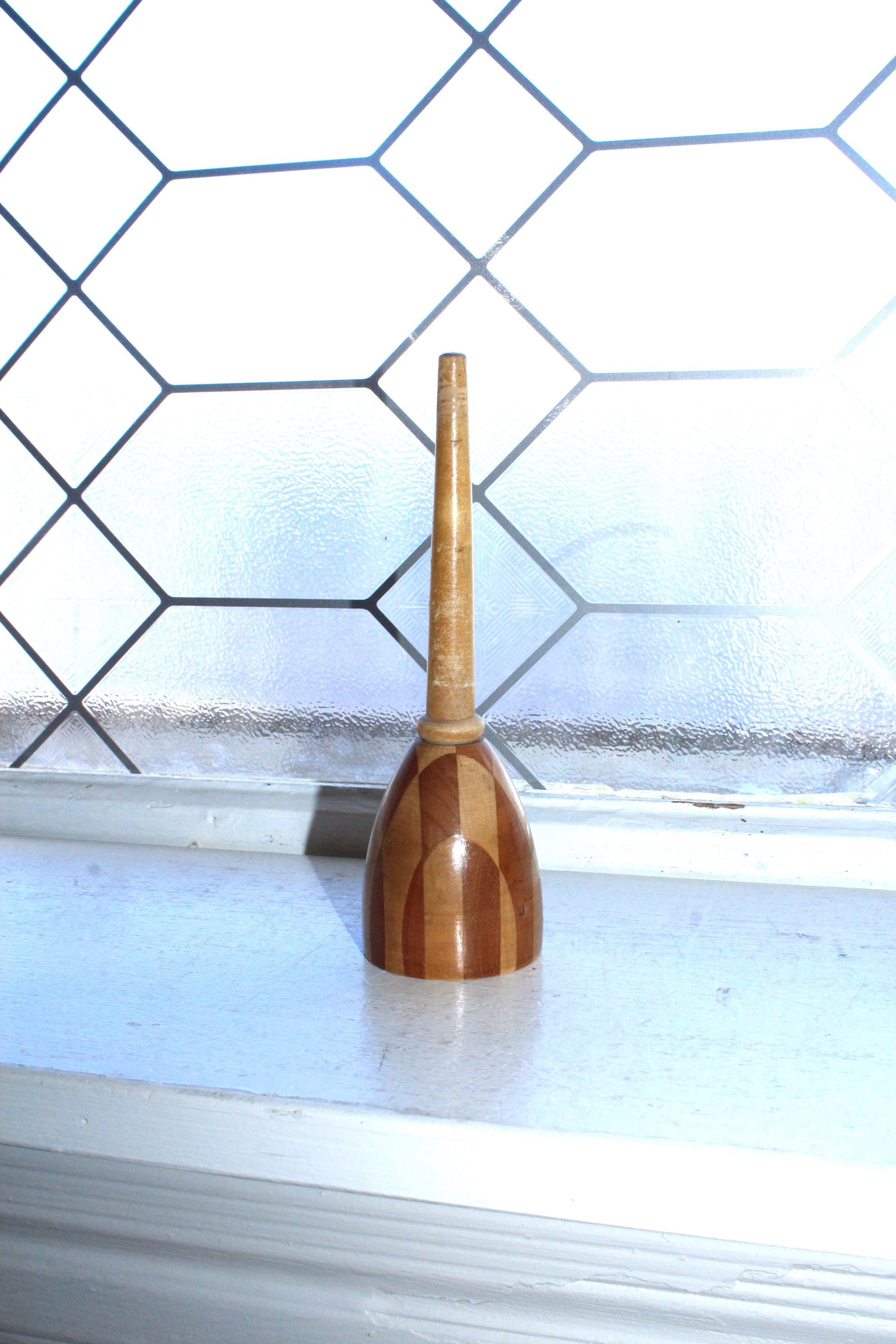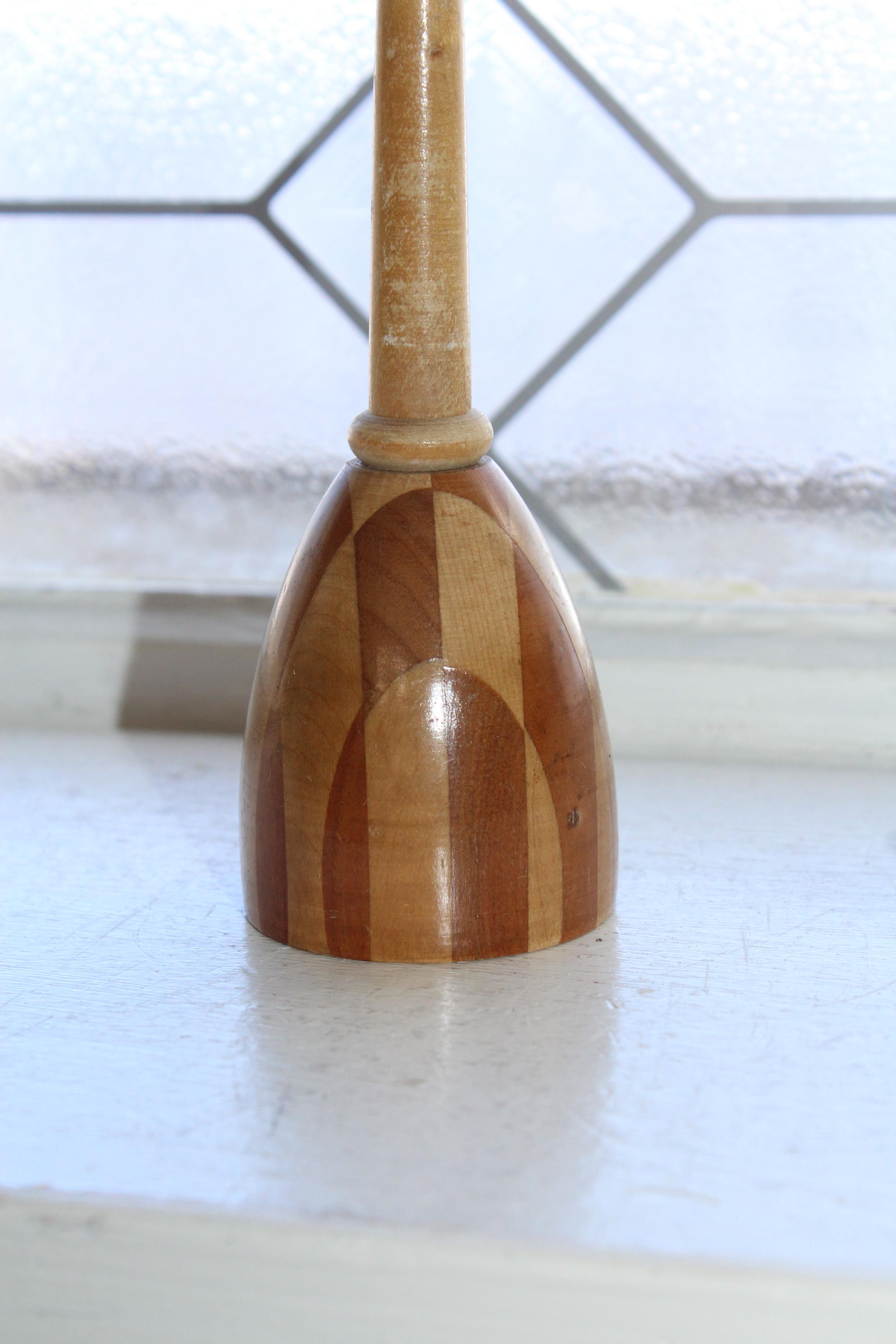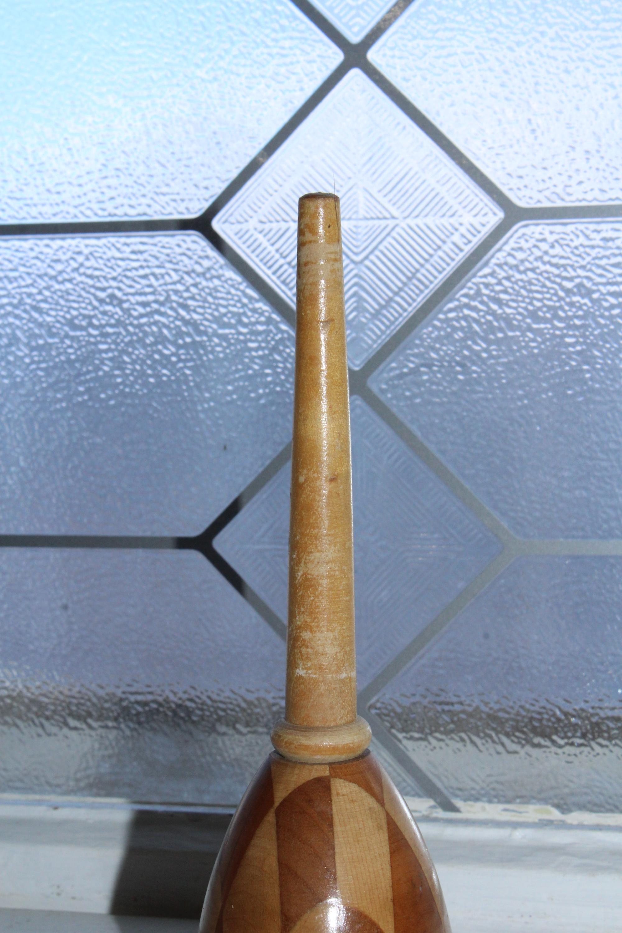 Antique German wood marquetry Tunbridge style sock darner. It measures 6 1/4" long and displays well. Enjoy!