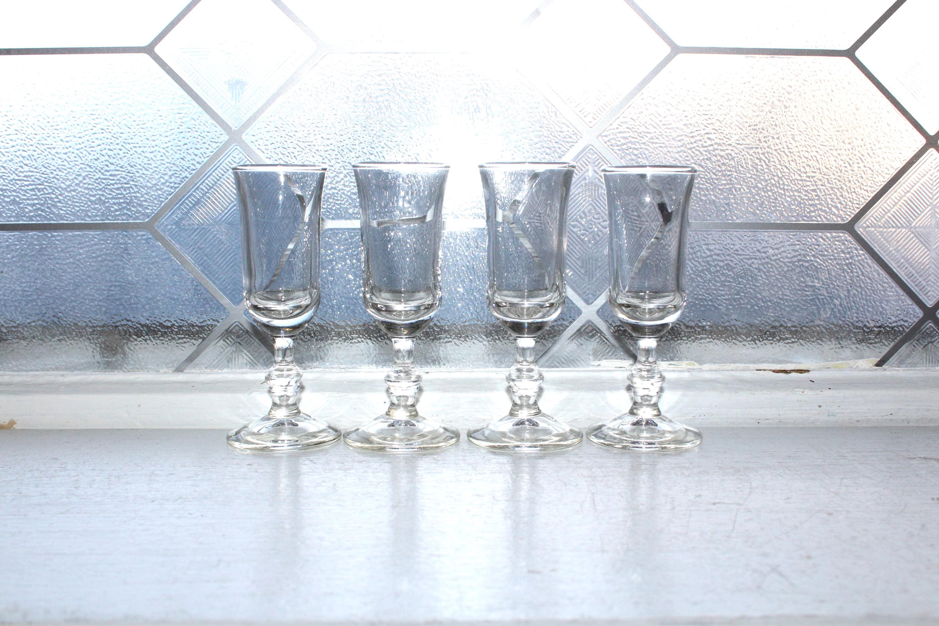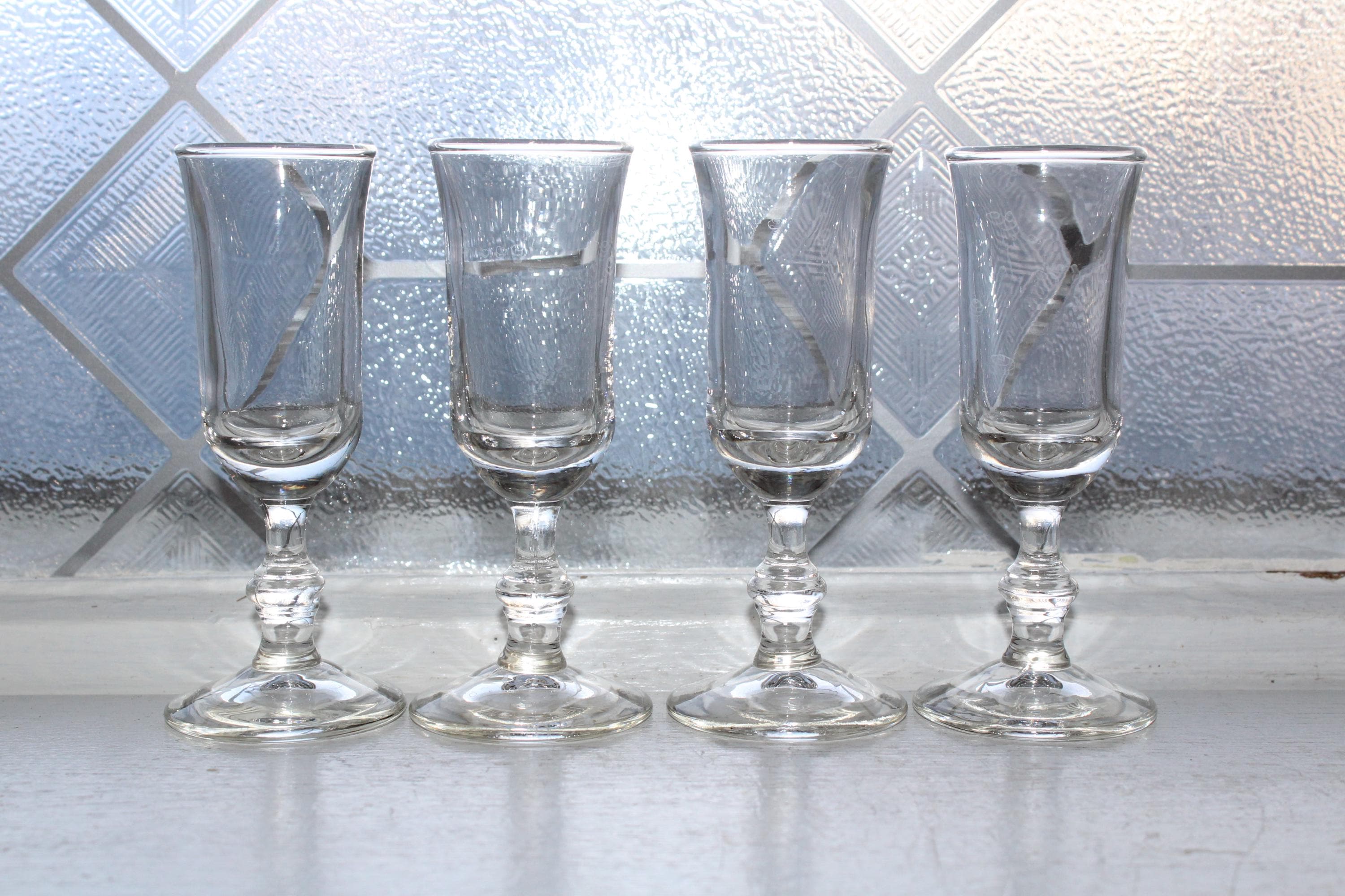 This is a gorgeous set of 4 vintage Libbey Glass Georgian brandy glasses. Each measures 4 1/8" high. This is a beautiful set and perfect for use or display. No chips or cracks. Enjoy!