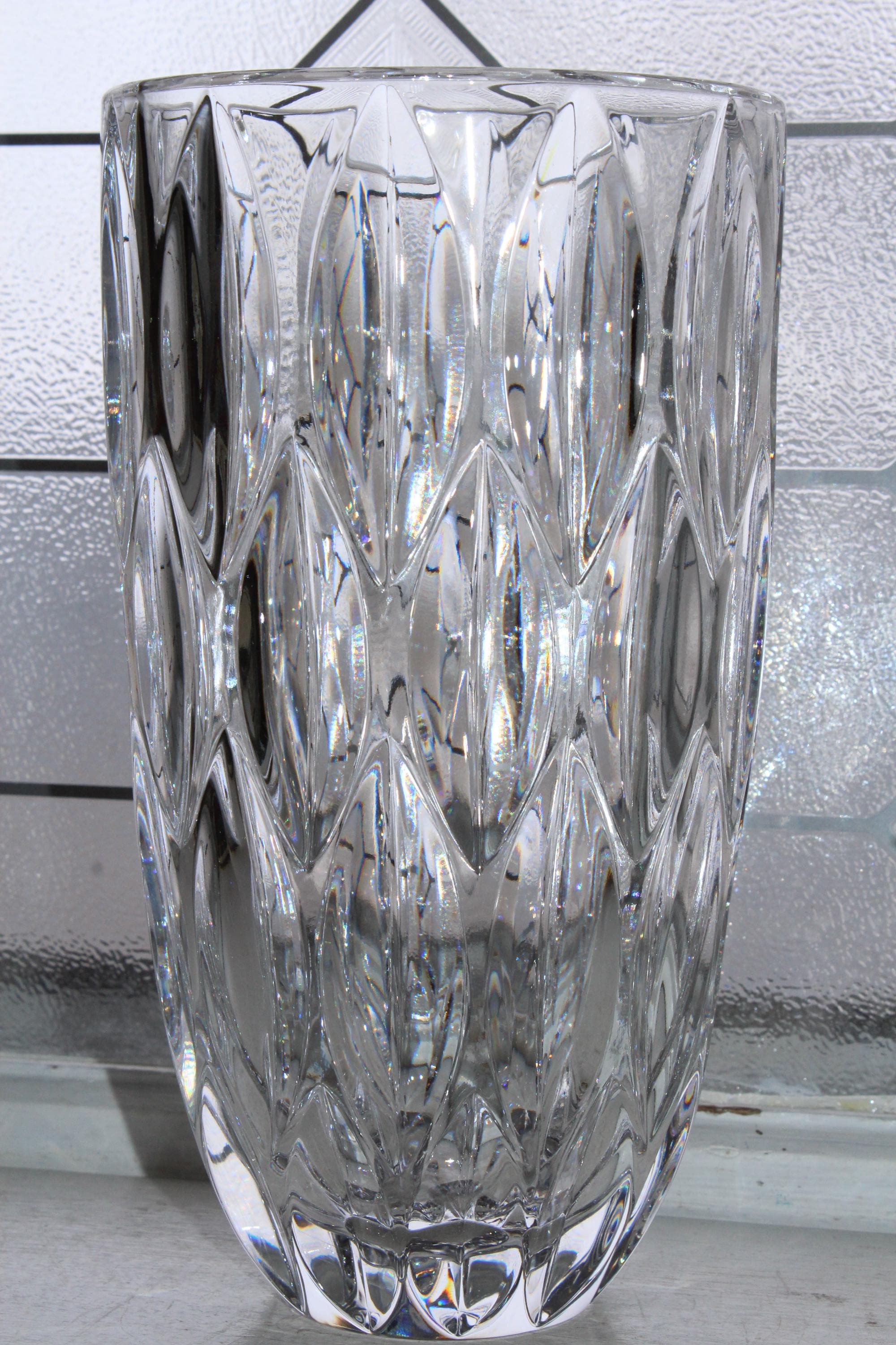 Large elegant Mikasa heavy crystal Matisse vase in excellent condition. It measures 9" high and weighs 3 3/4 lbs. No chips or cracks, perfect for use or display. Enjoy!