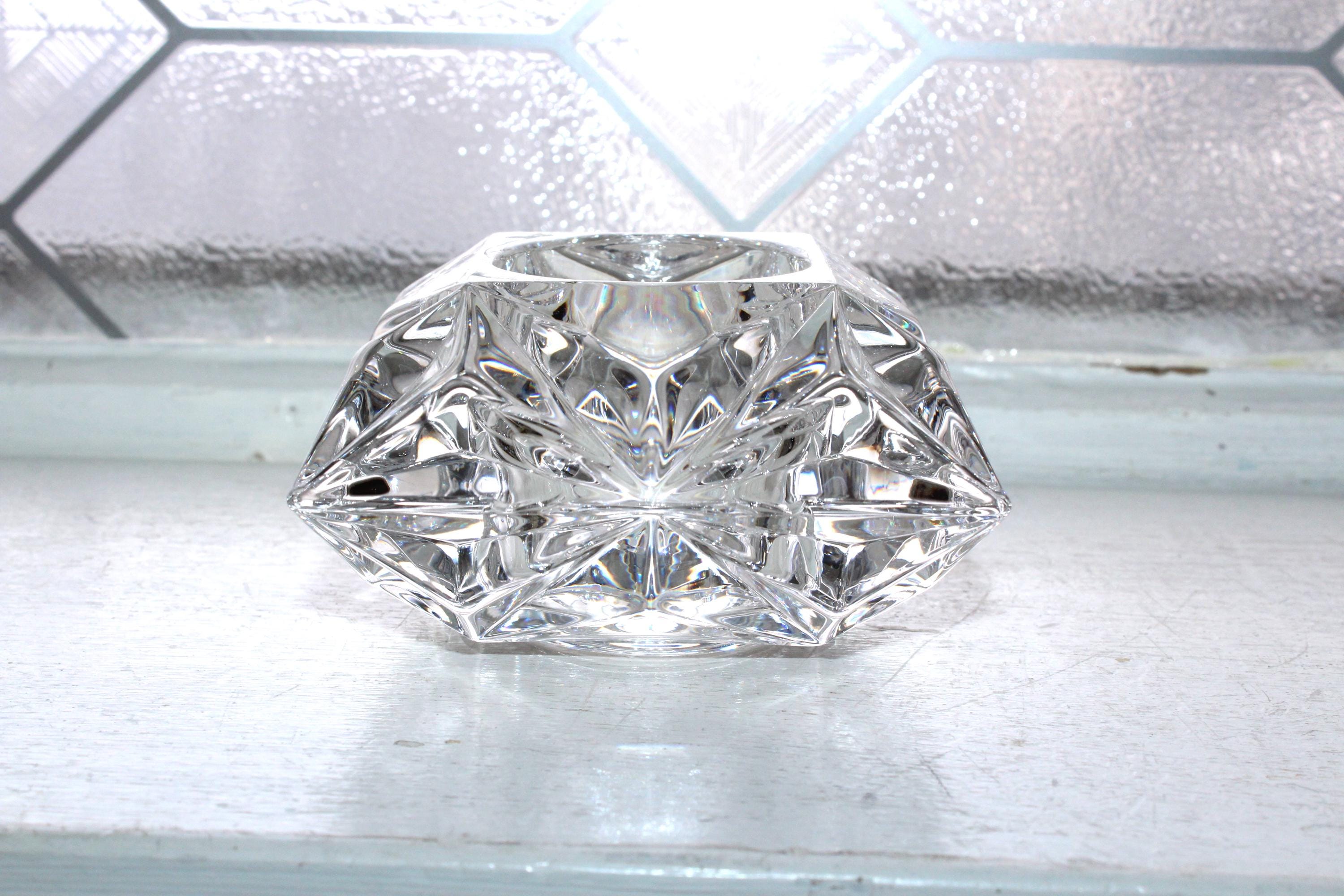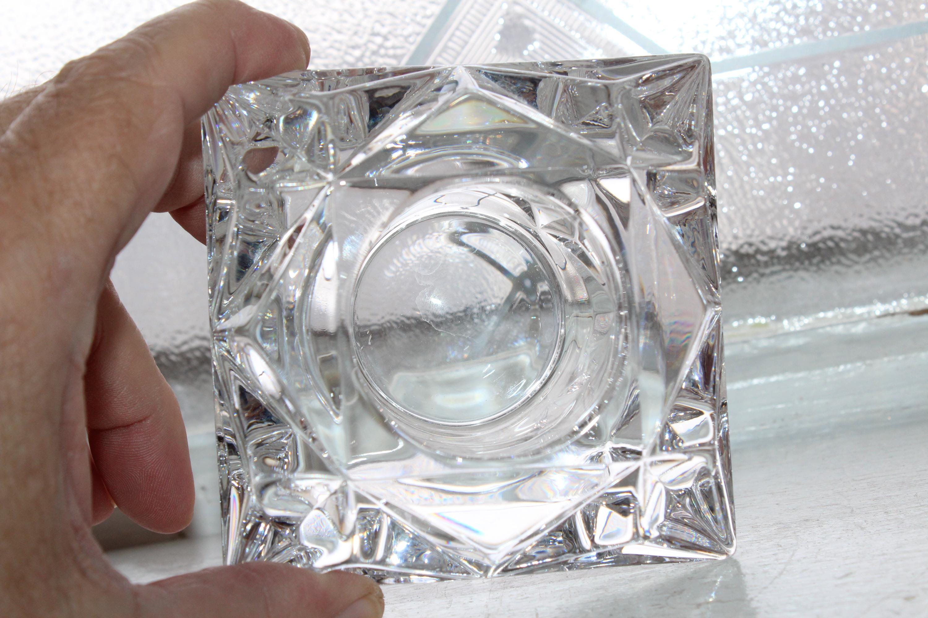Beautiful Partylite Quad Prism heavy crystal votive candle holder, in excellent condition. It measures 2 1/4" high x 3 1/2" wide and weighs 1 1/2 lbs. Enjoy!