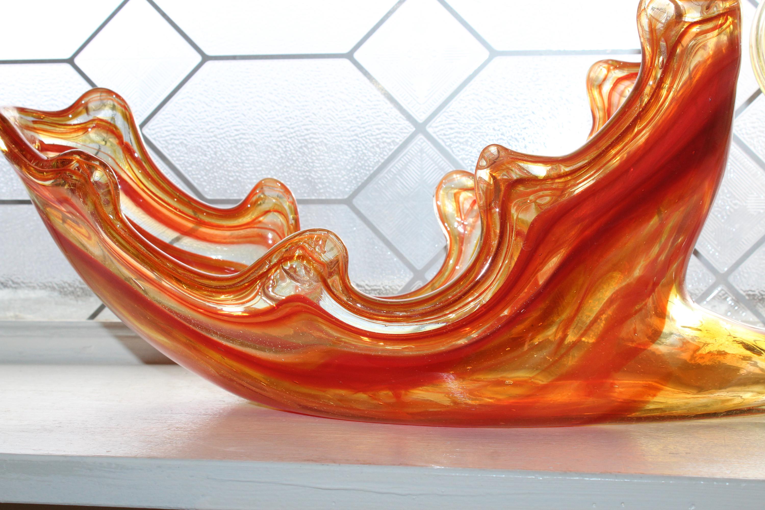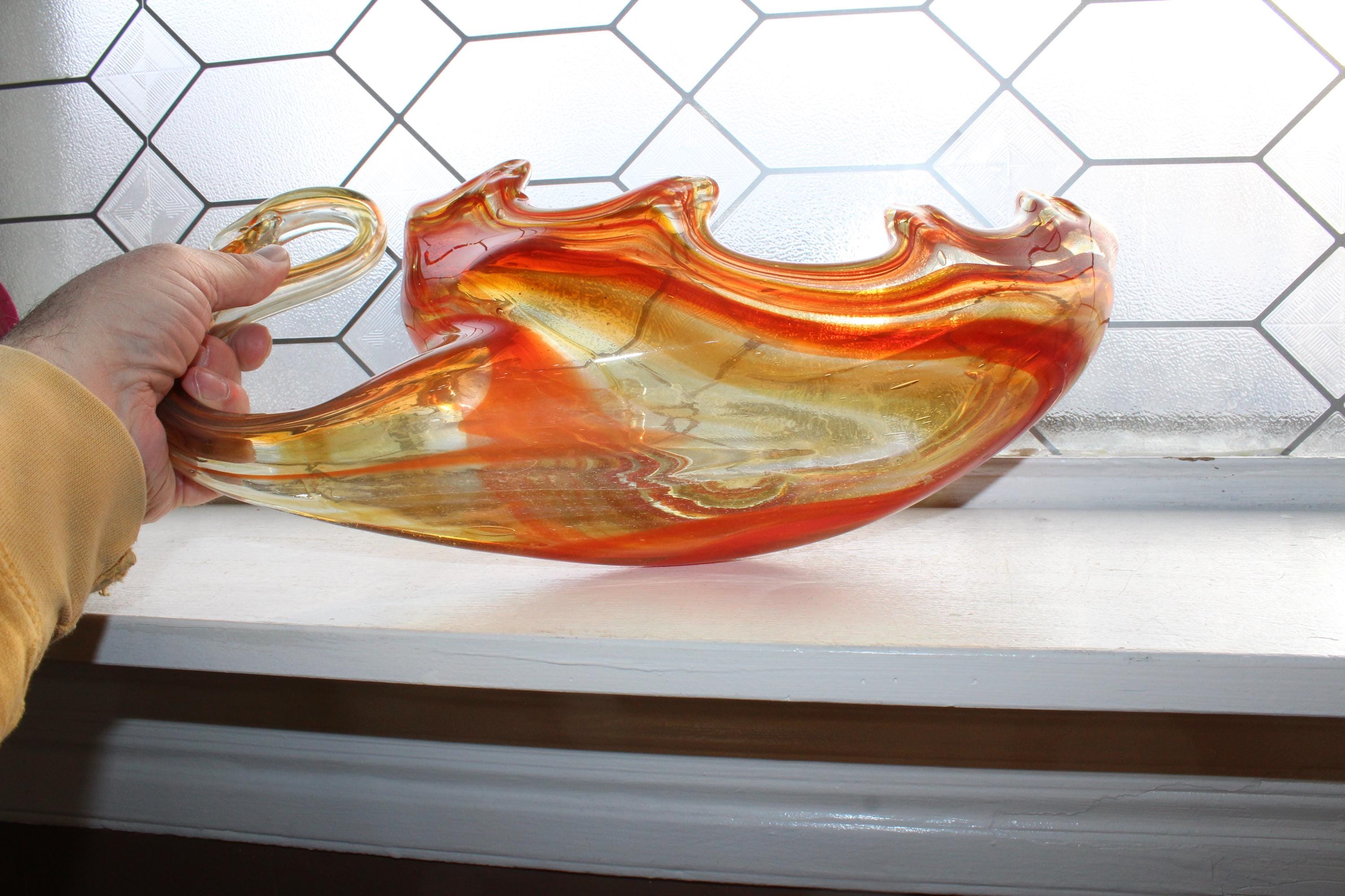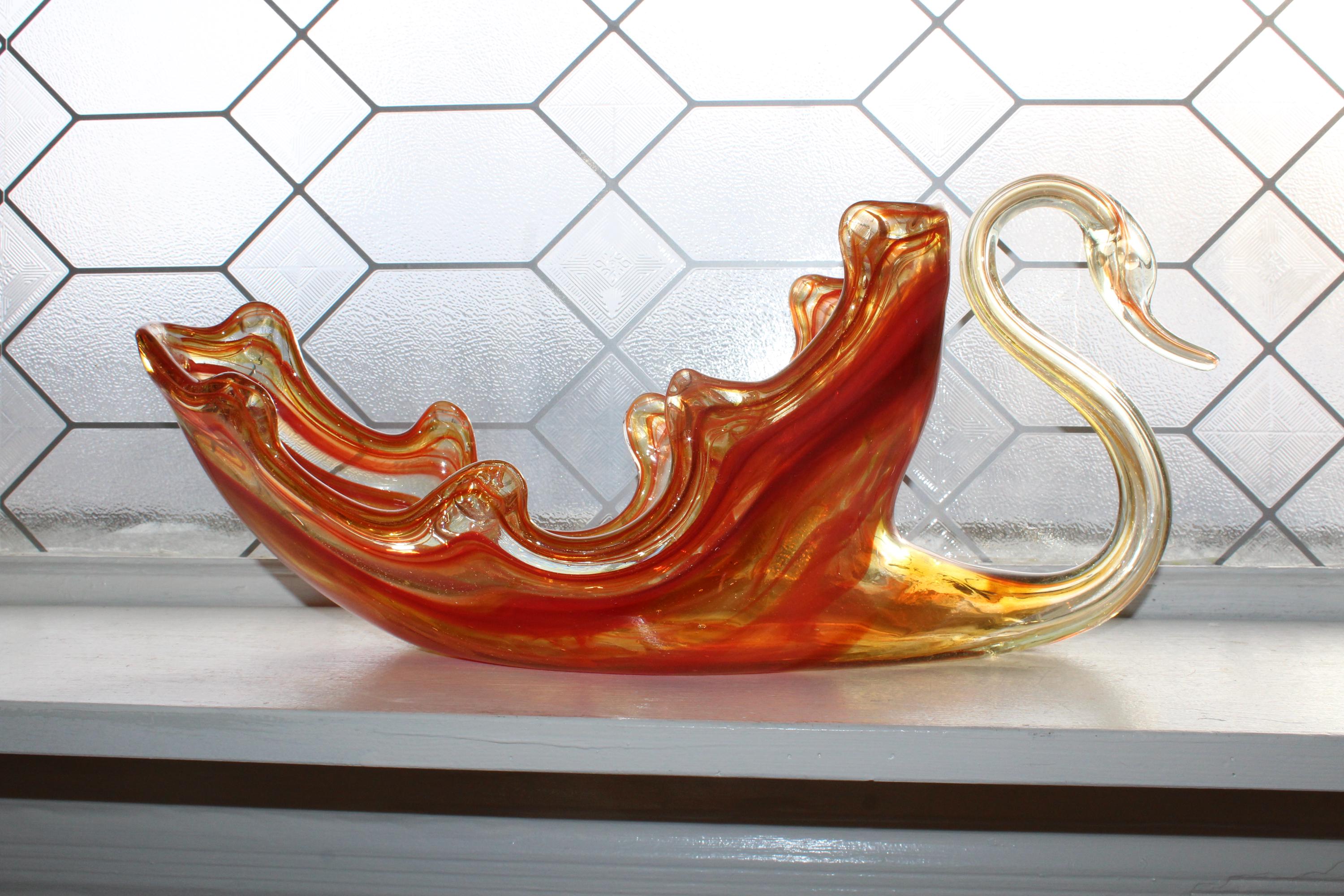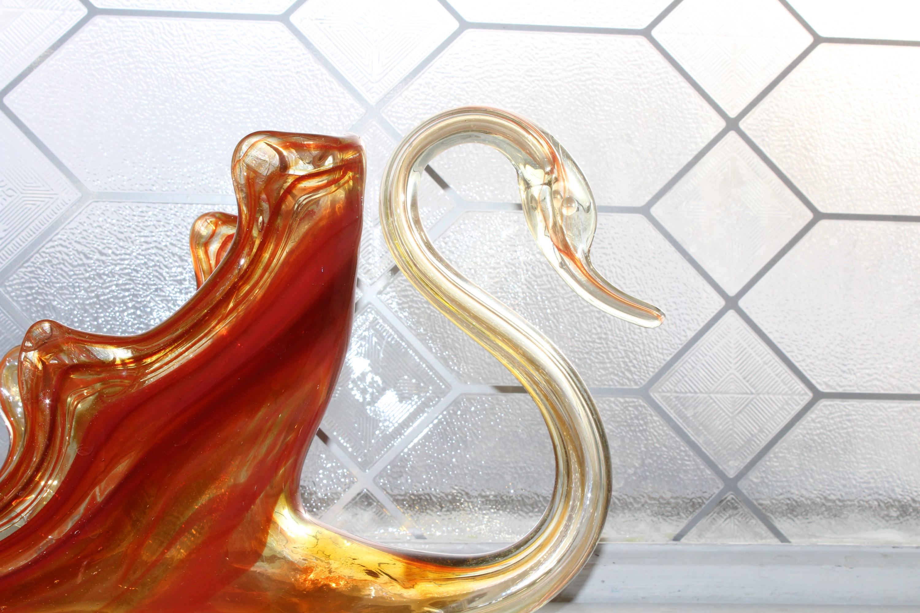 This vintage Mid Century swung glass swan dish centerpiece really makes a grand statement! It measures 17" long x 7 1/2" high and weighs 3 3/4 lbs. No chips or cracks, perfect for use or display in a mid century or modern home. Enjoy!