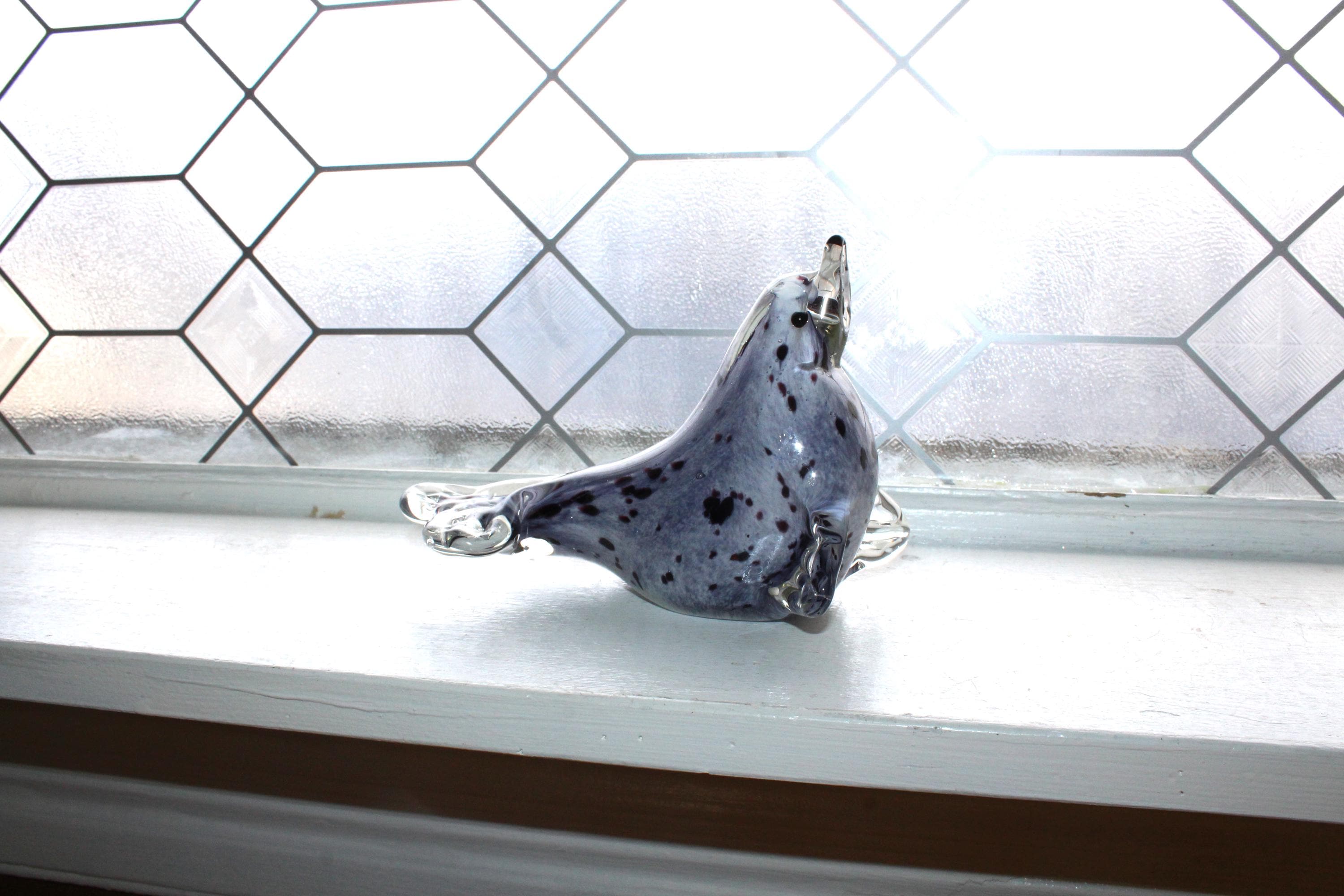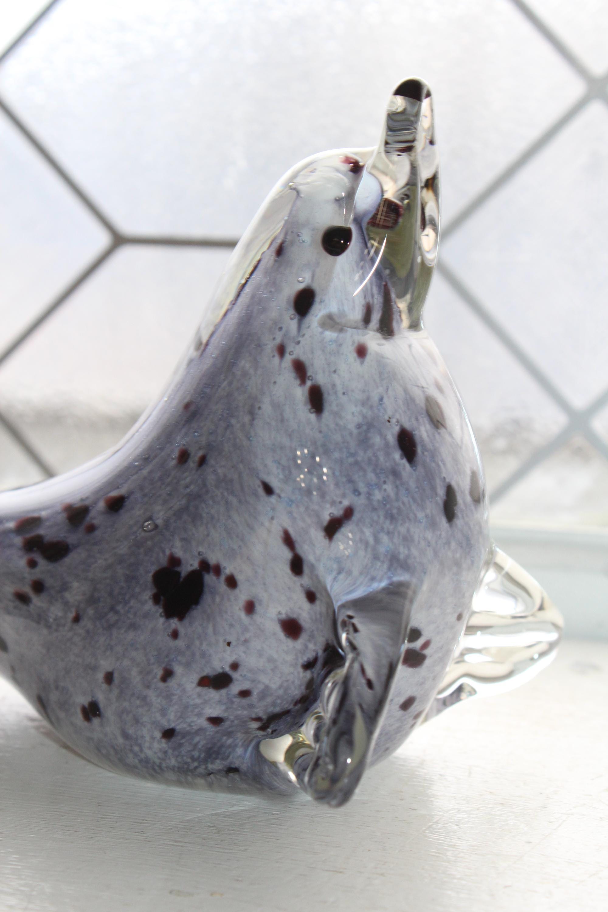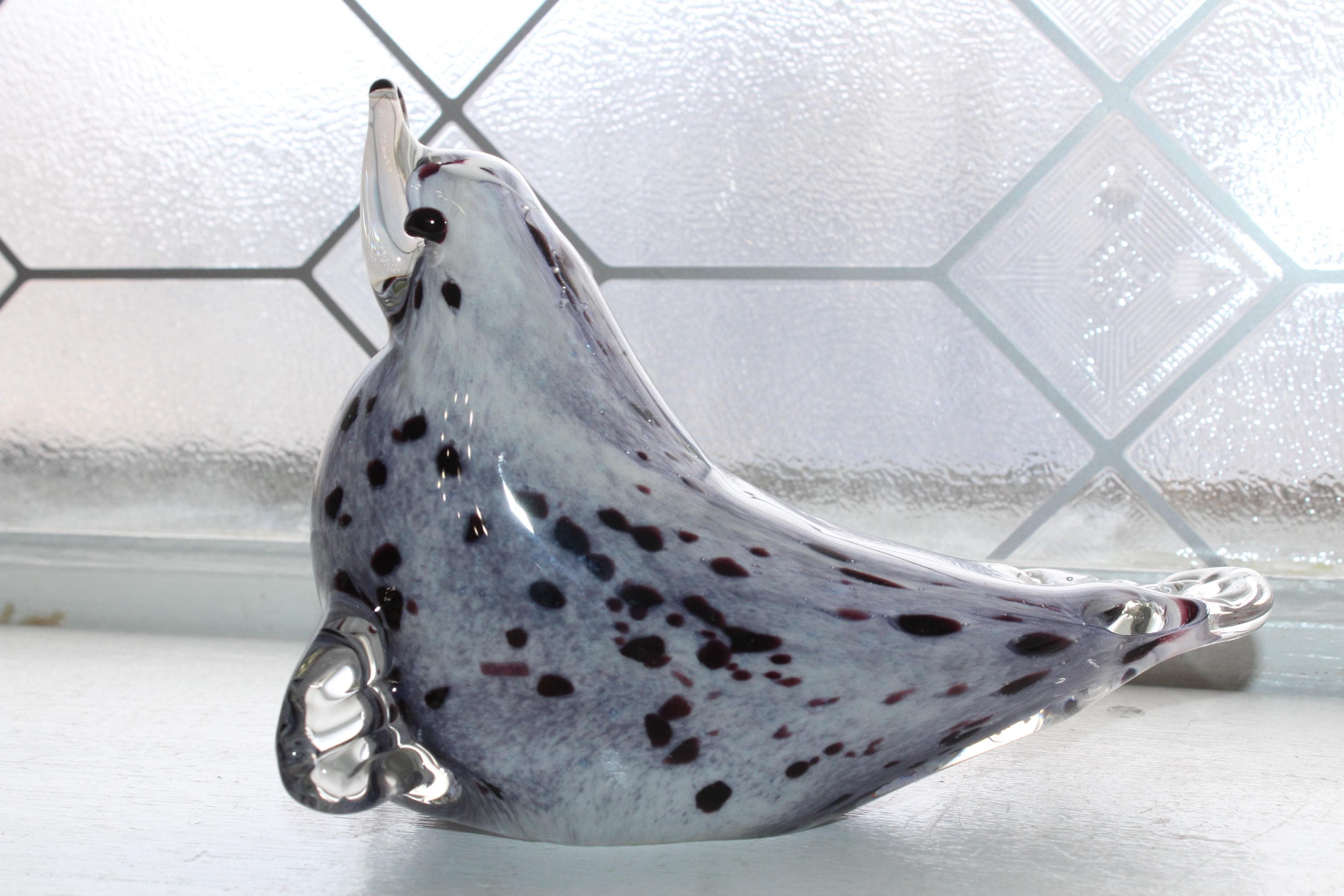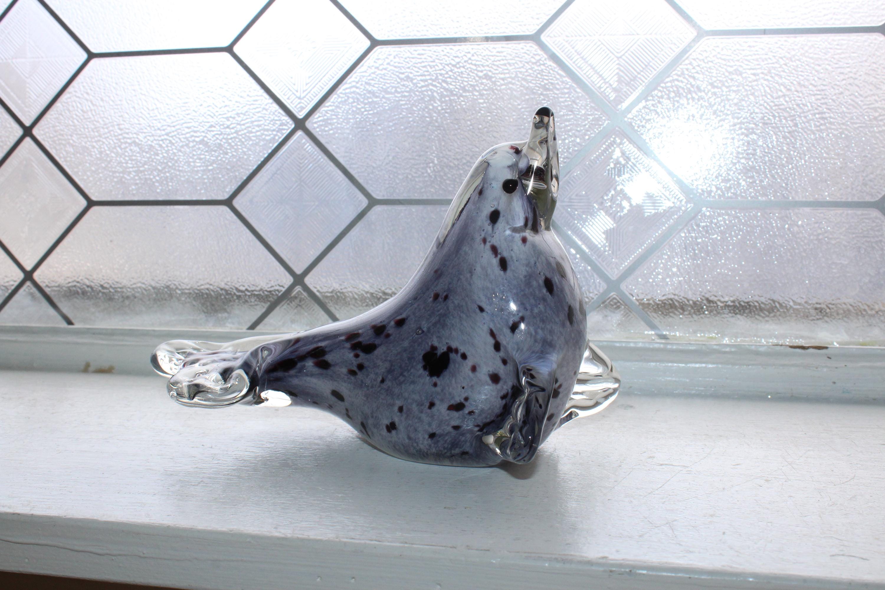 Vintage 1960s Murano glass black and gray seal figurine, in excellent condition. It measures 6 1/2" long x 4 3/4" high, weighs 2 lbs. and has no chips or cracks, perfect for display. Enjoy!