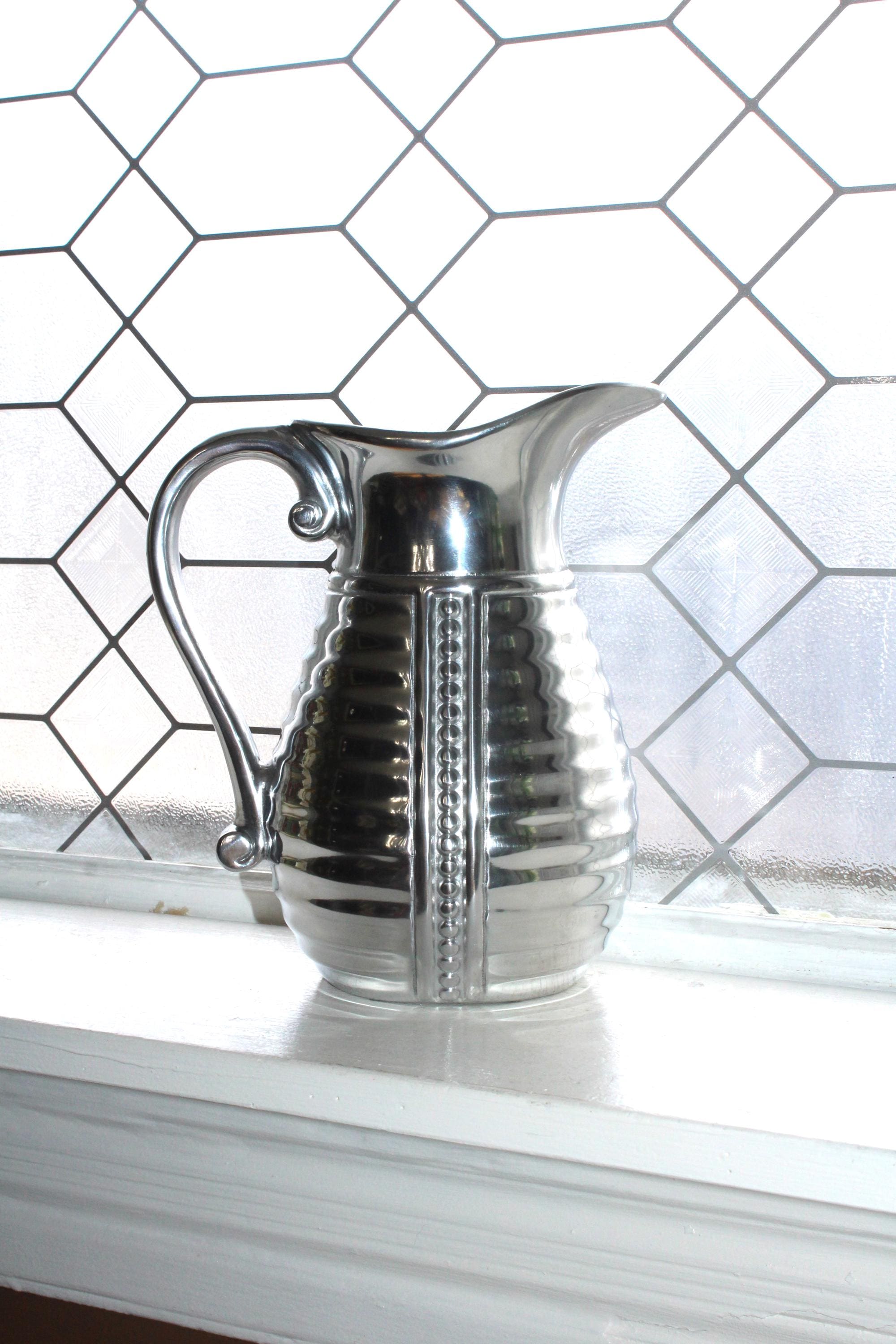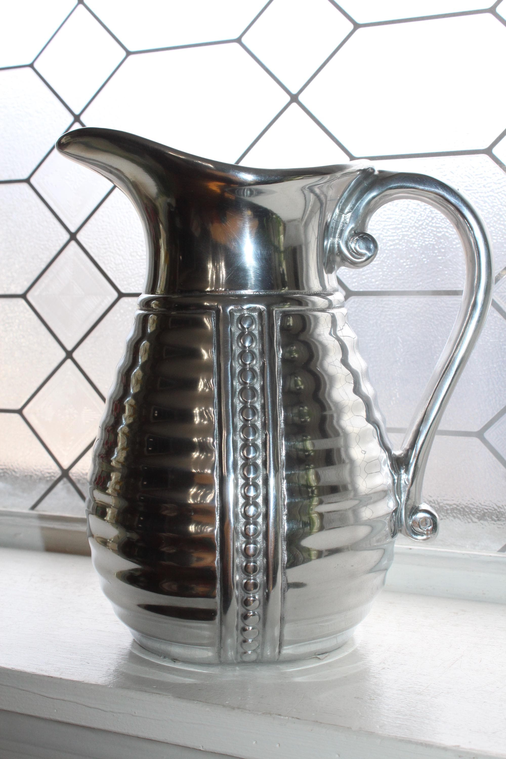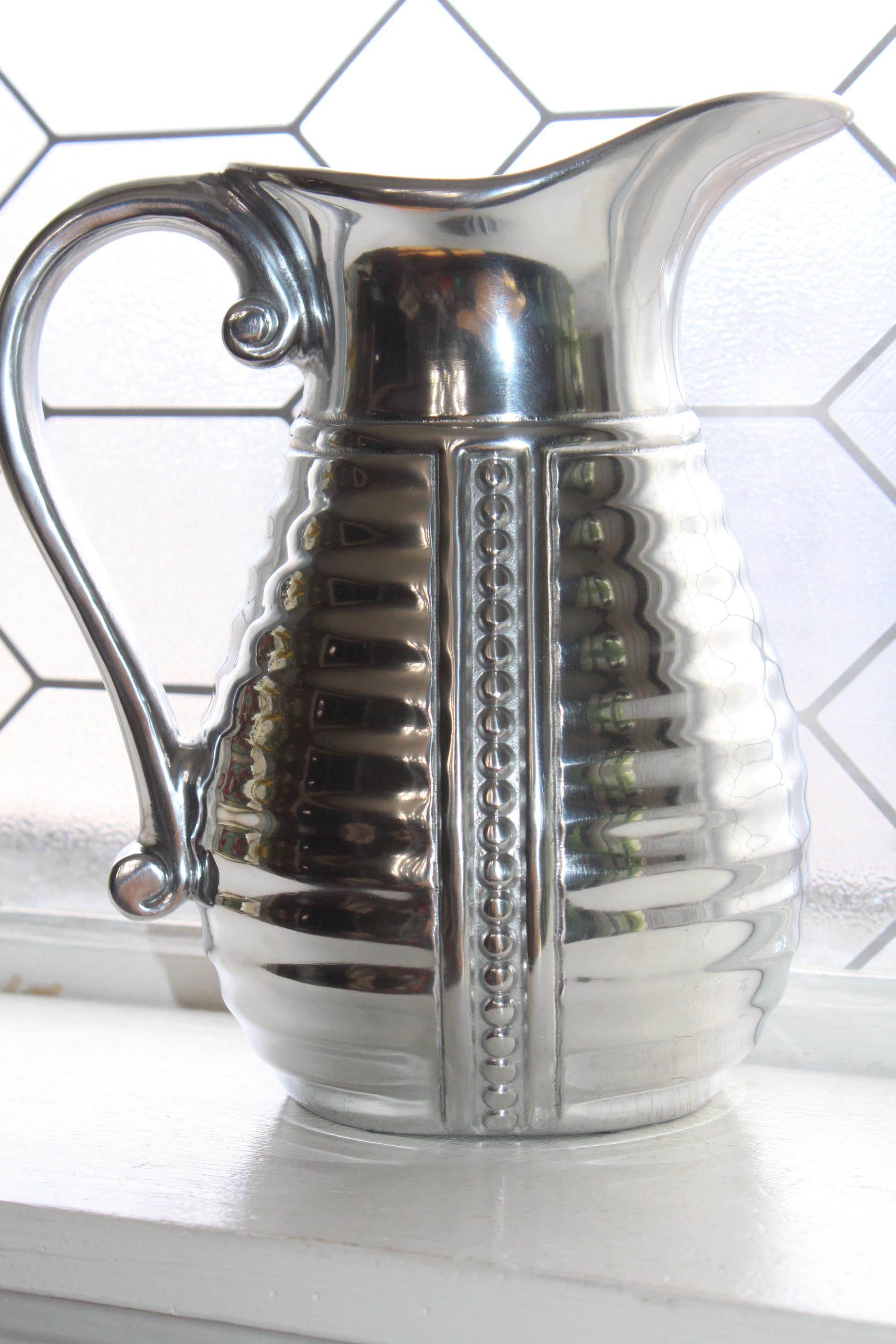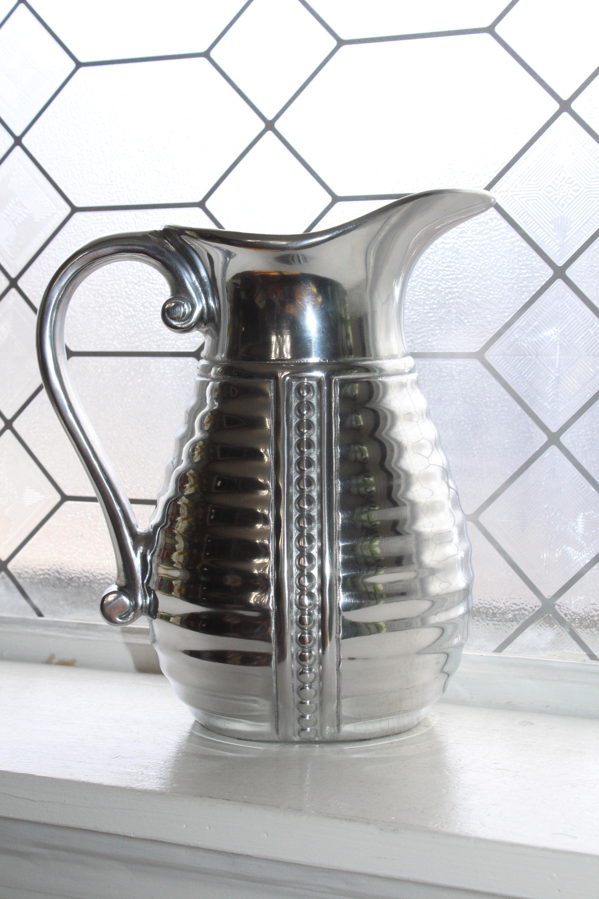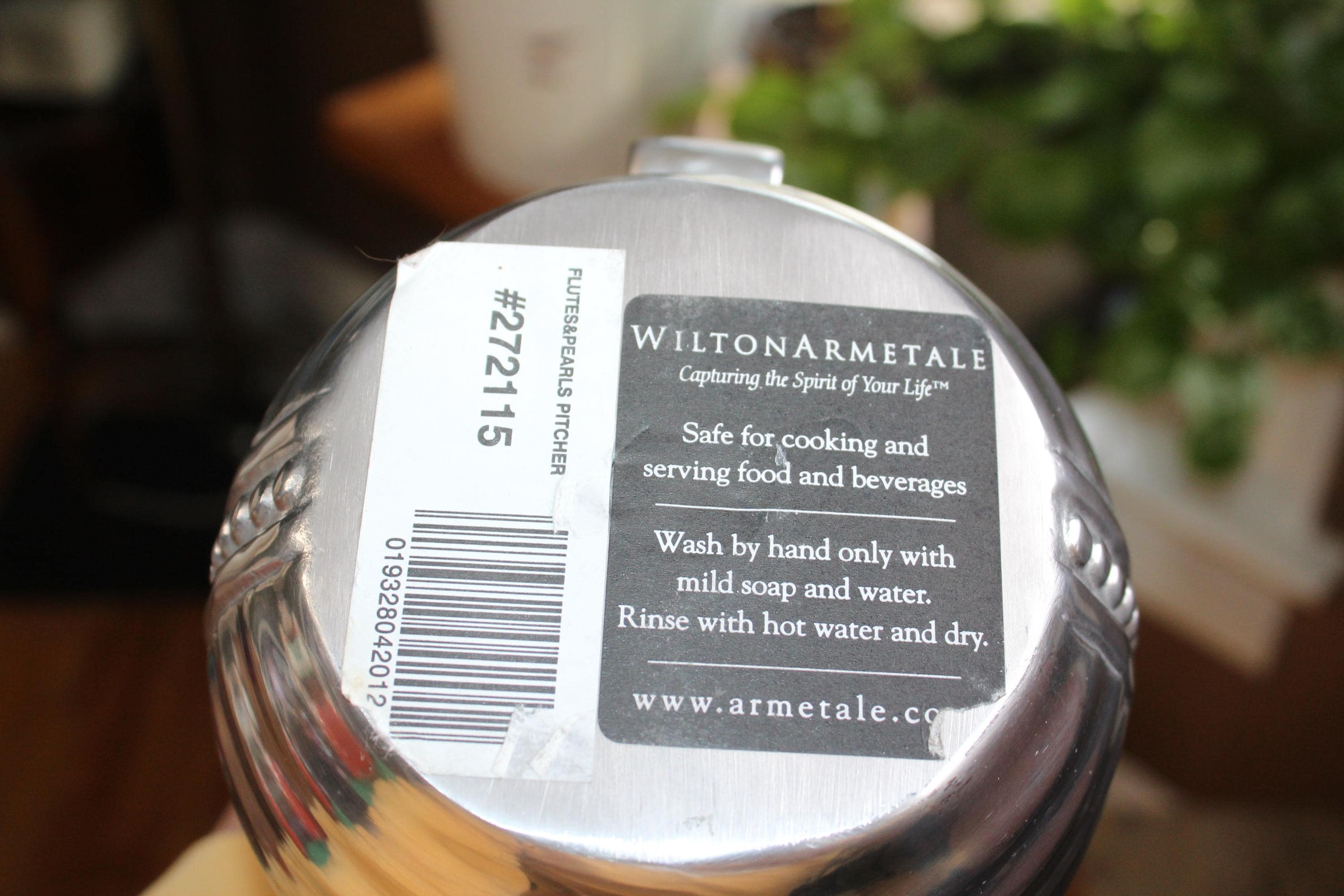 Wilton Armetale pewter pitcher in the Flutes and Pearls pattern, in excellent condition. It measures 9" high and weighs 2 3/4 lb. Enjoy!
