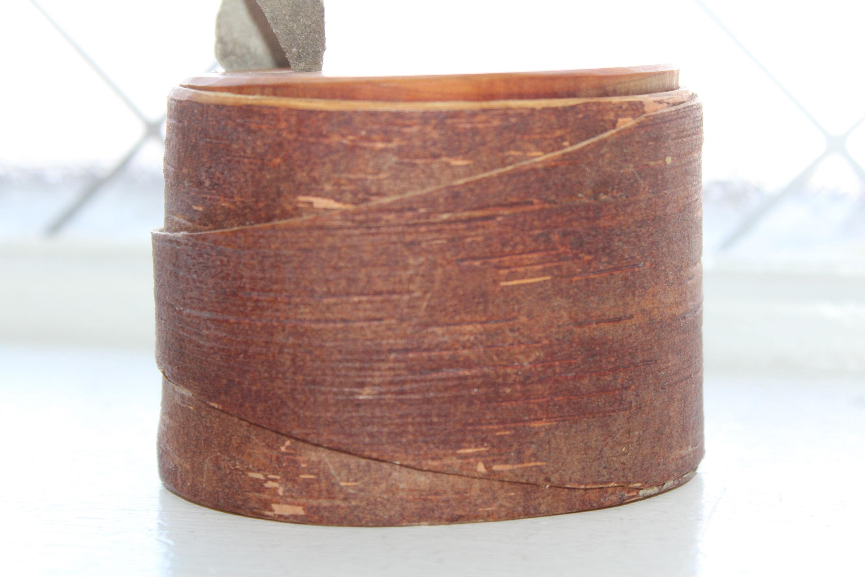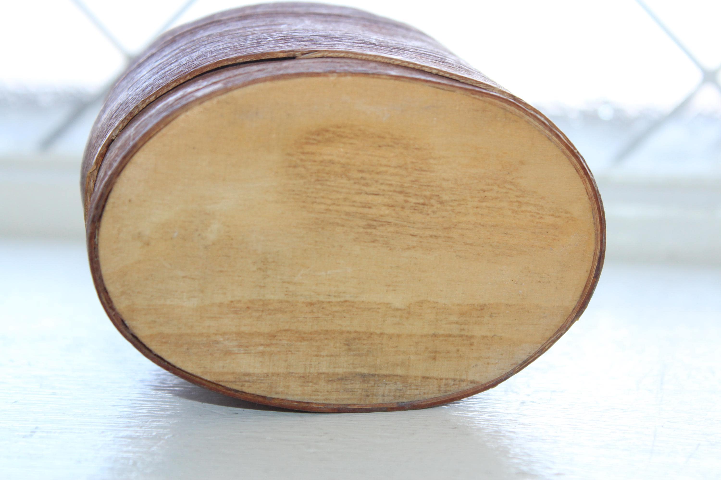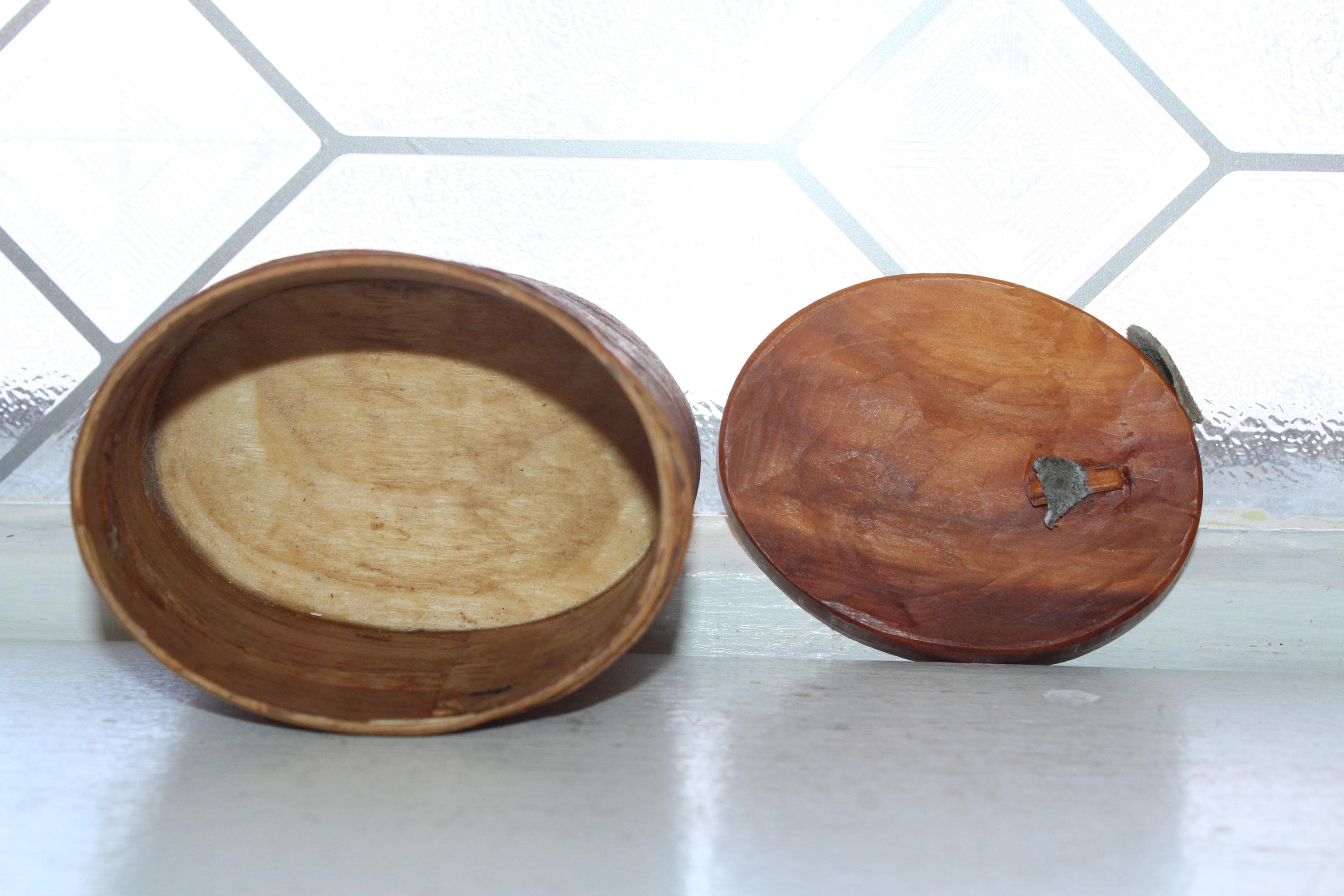 Vintage Norwegian hand carved birch bark bentwood tine box with leather pull tab, in excellent condition. These have gotten so hard to find, and this one is a beauty! The box came from a Scandinavian sale in southern Minnesota. It measures 3 1/2" x 2 3/4" wide and is 2 1/2" high. Enjoy!