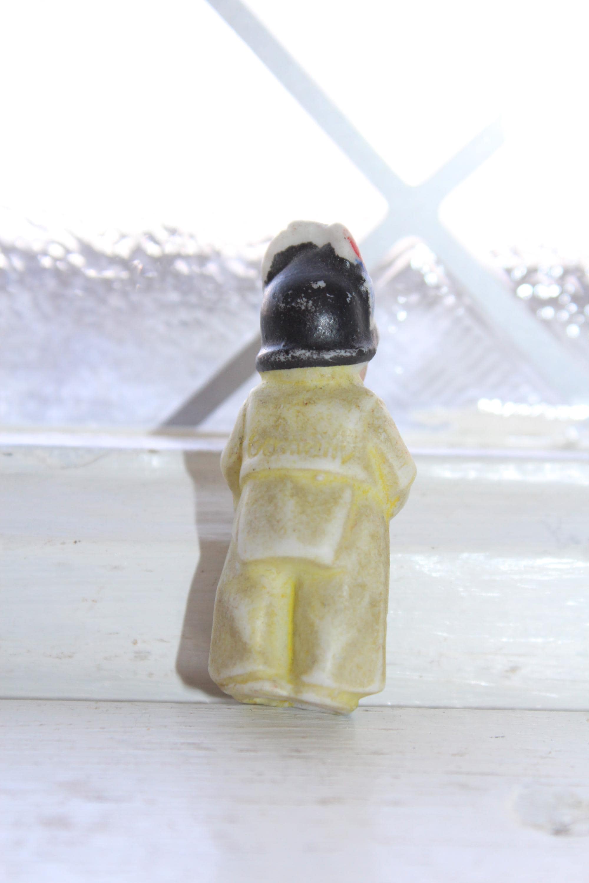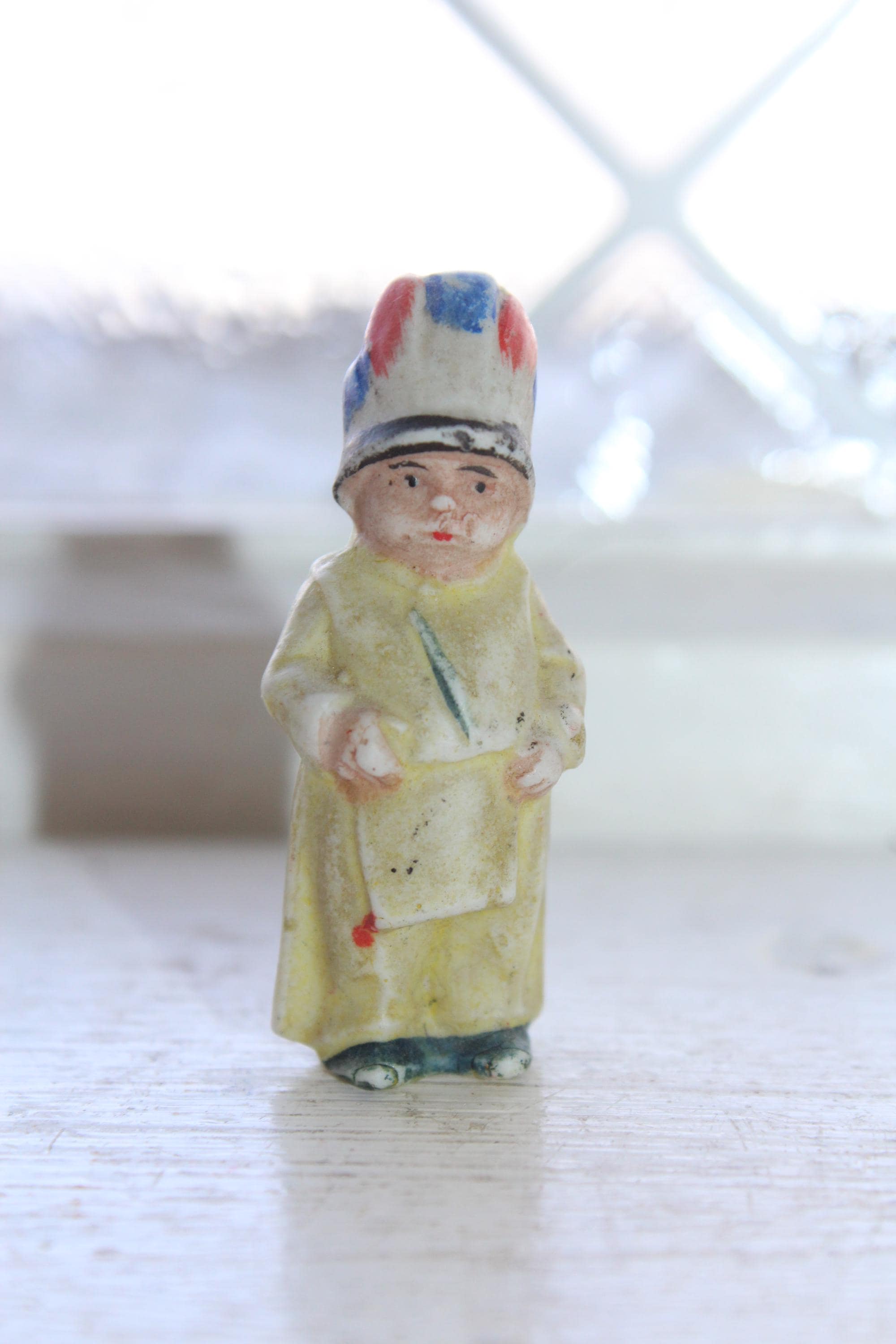 This little cutie is a 1920s Frozen Charlotte penny doll featuring a Native American Indian, made in Germany. It measures 1 3/4" high and is in good condition. No chips or cracks, minor paint wear. Enjoy!