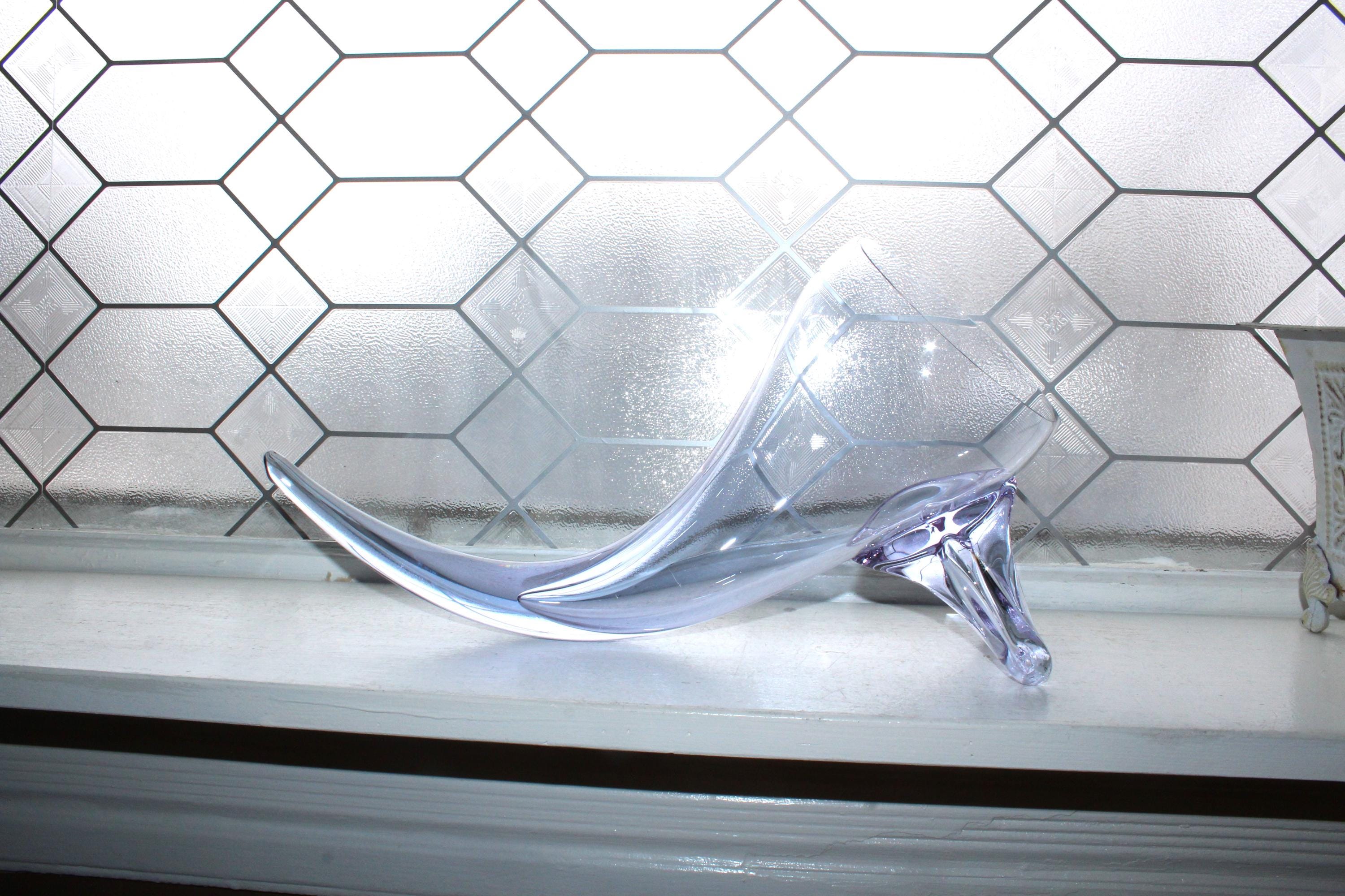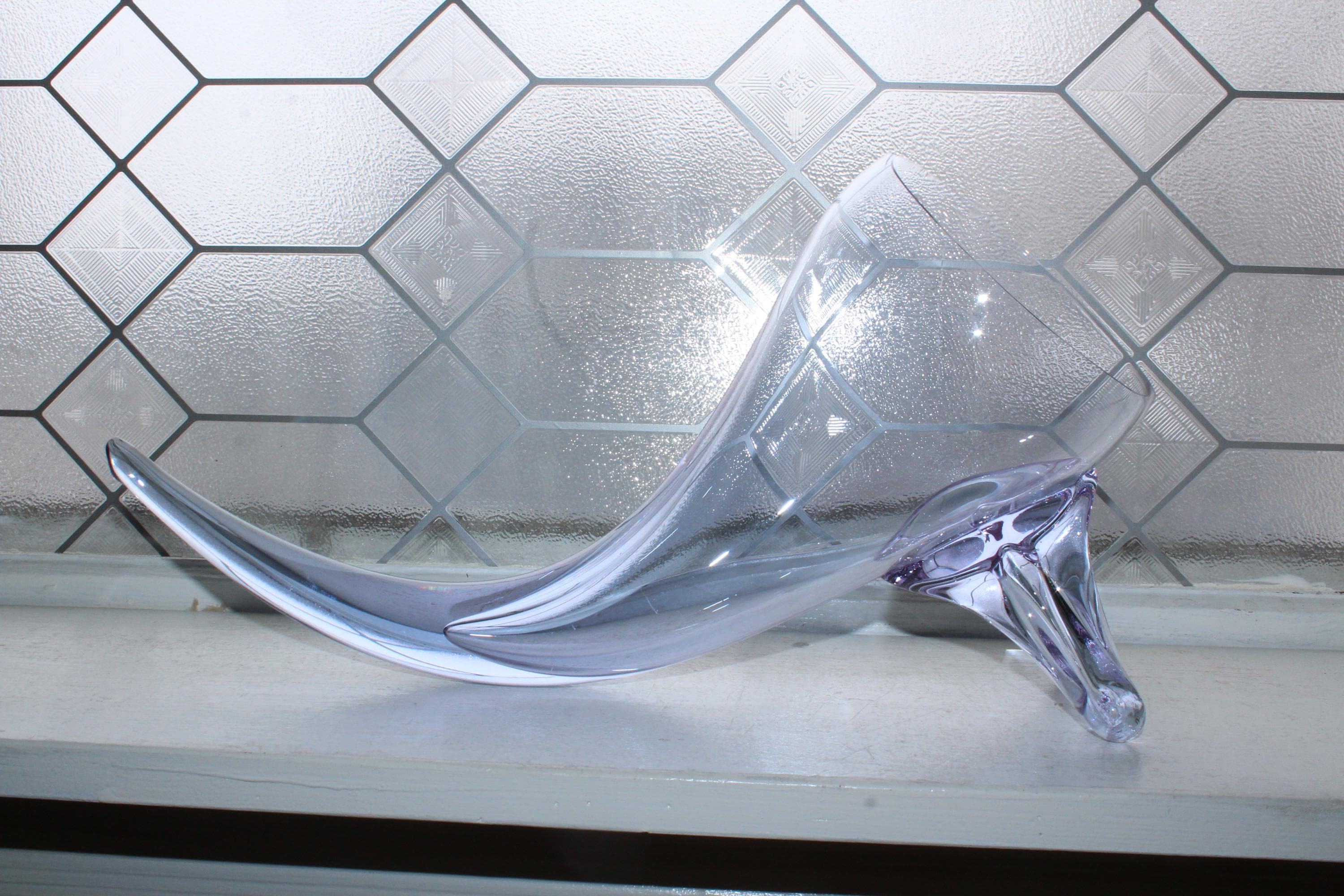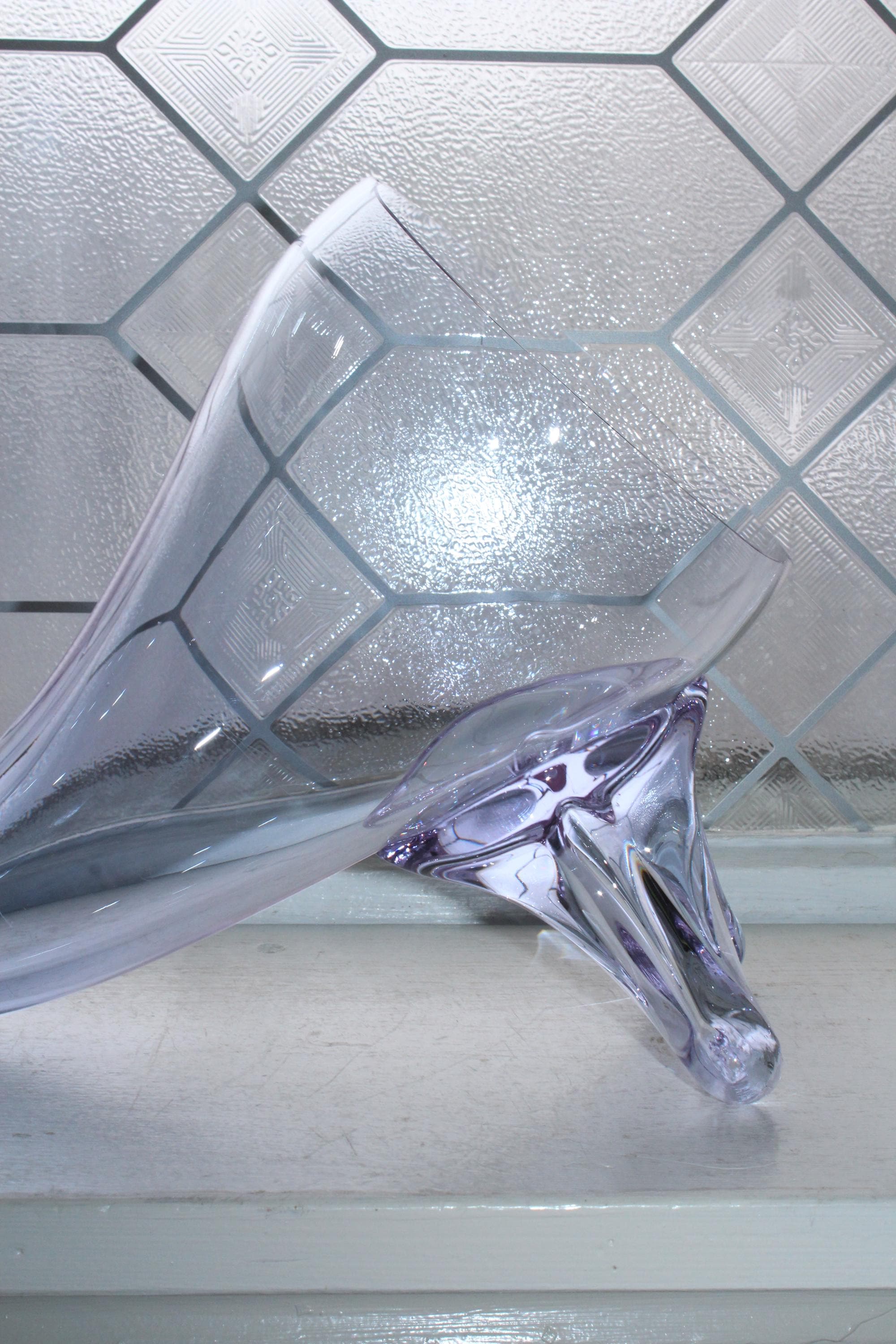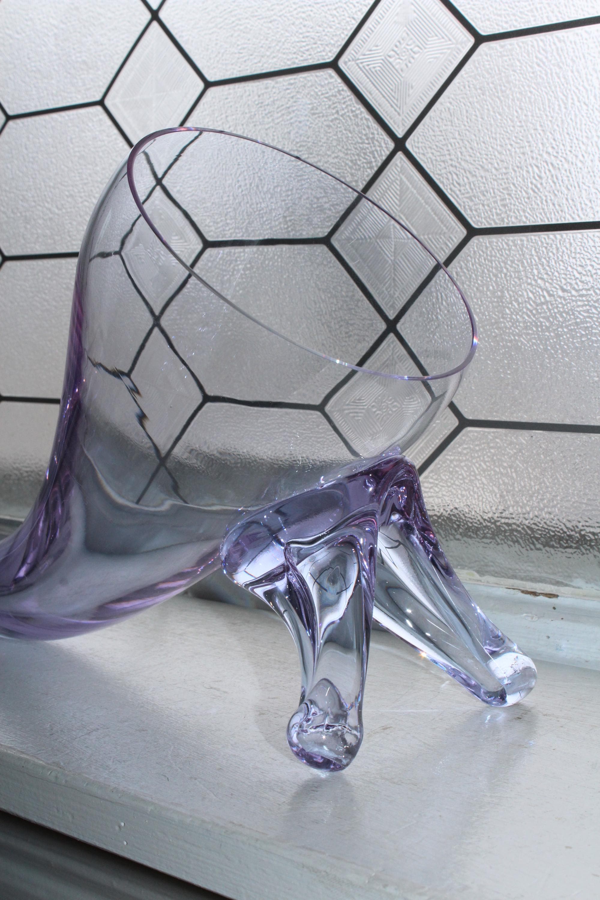 Large vintage Tiffin twilight purple glass footed cornucopia/horn of plenty vase, in excellent condition. This gorgeous vase measures 14" wide and 7 1/2" high. No chips or cracks, perfect for use or display. Enjoy!