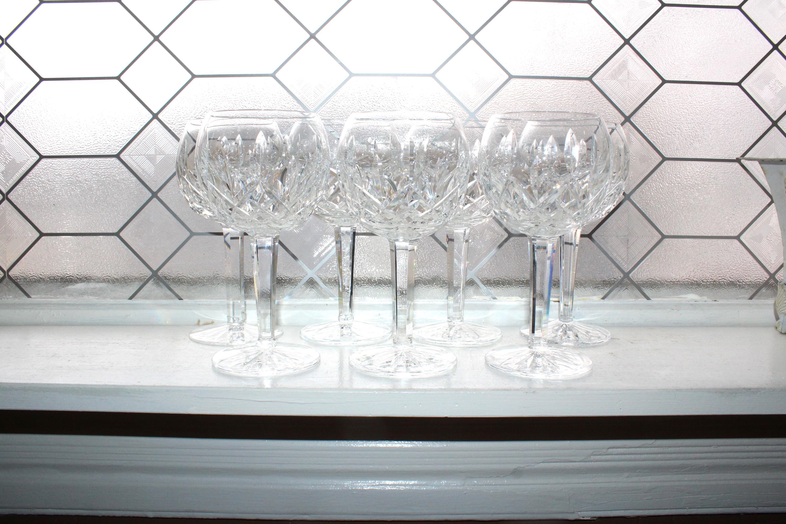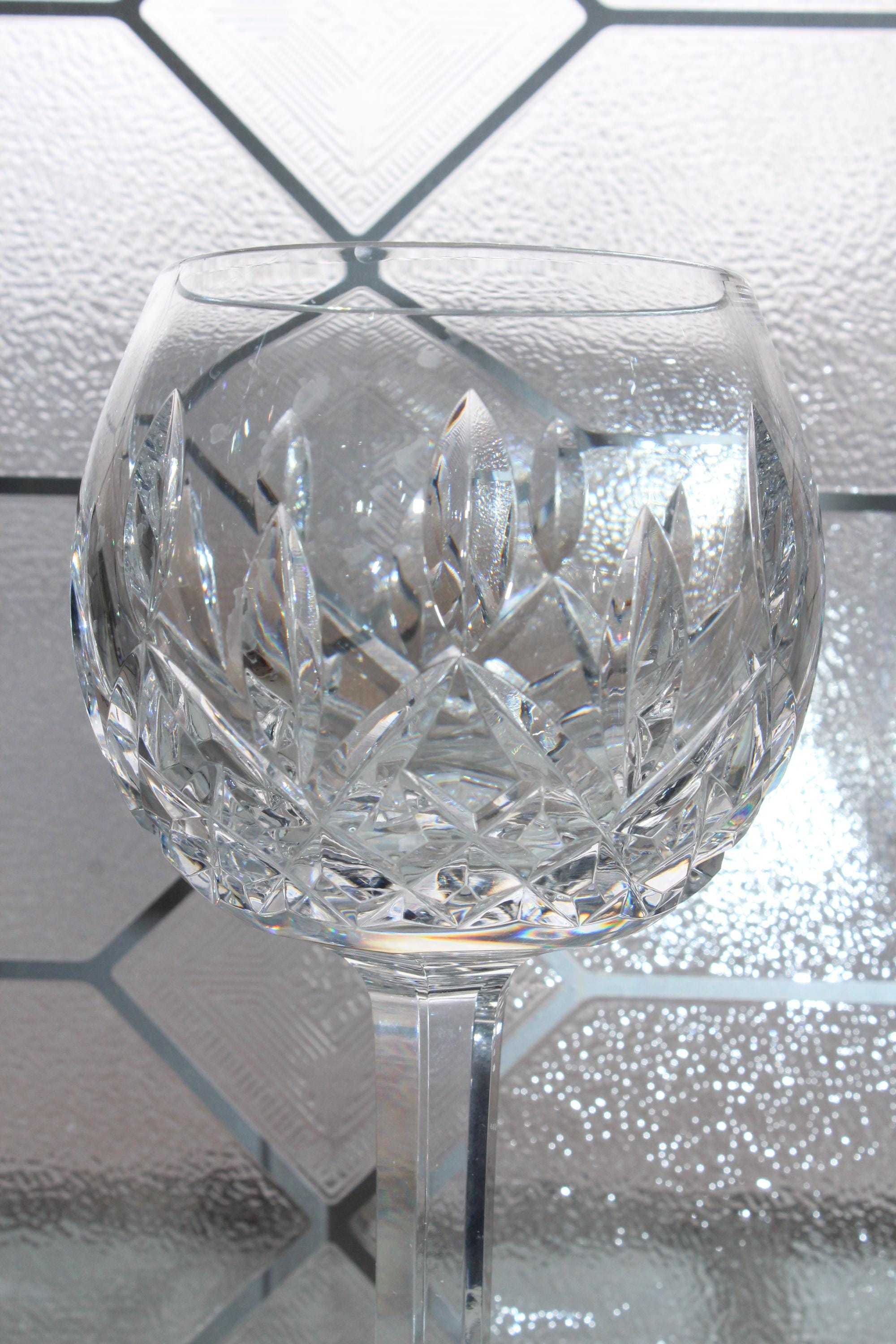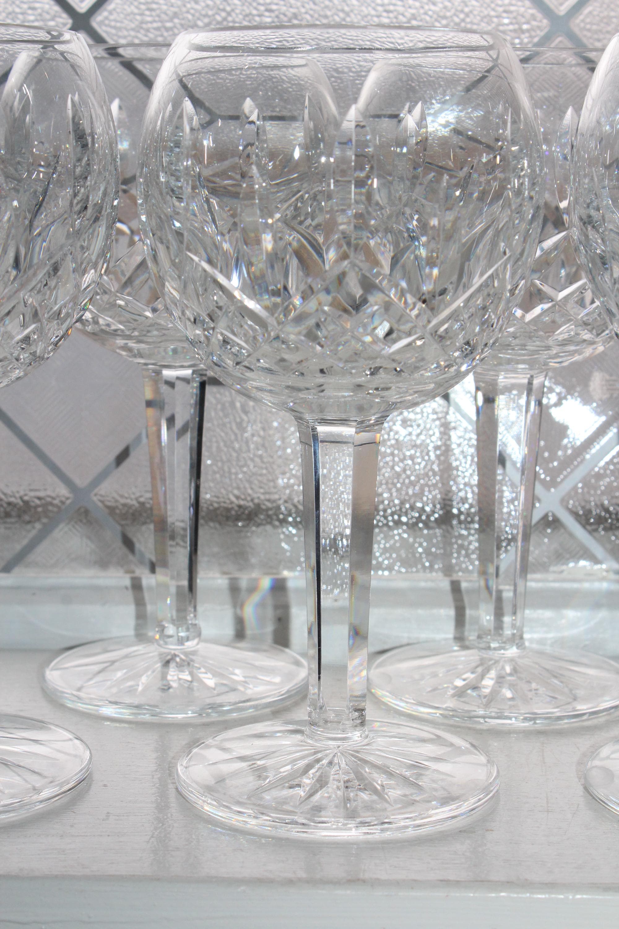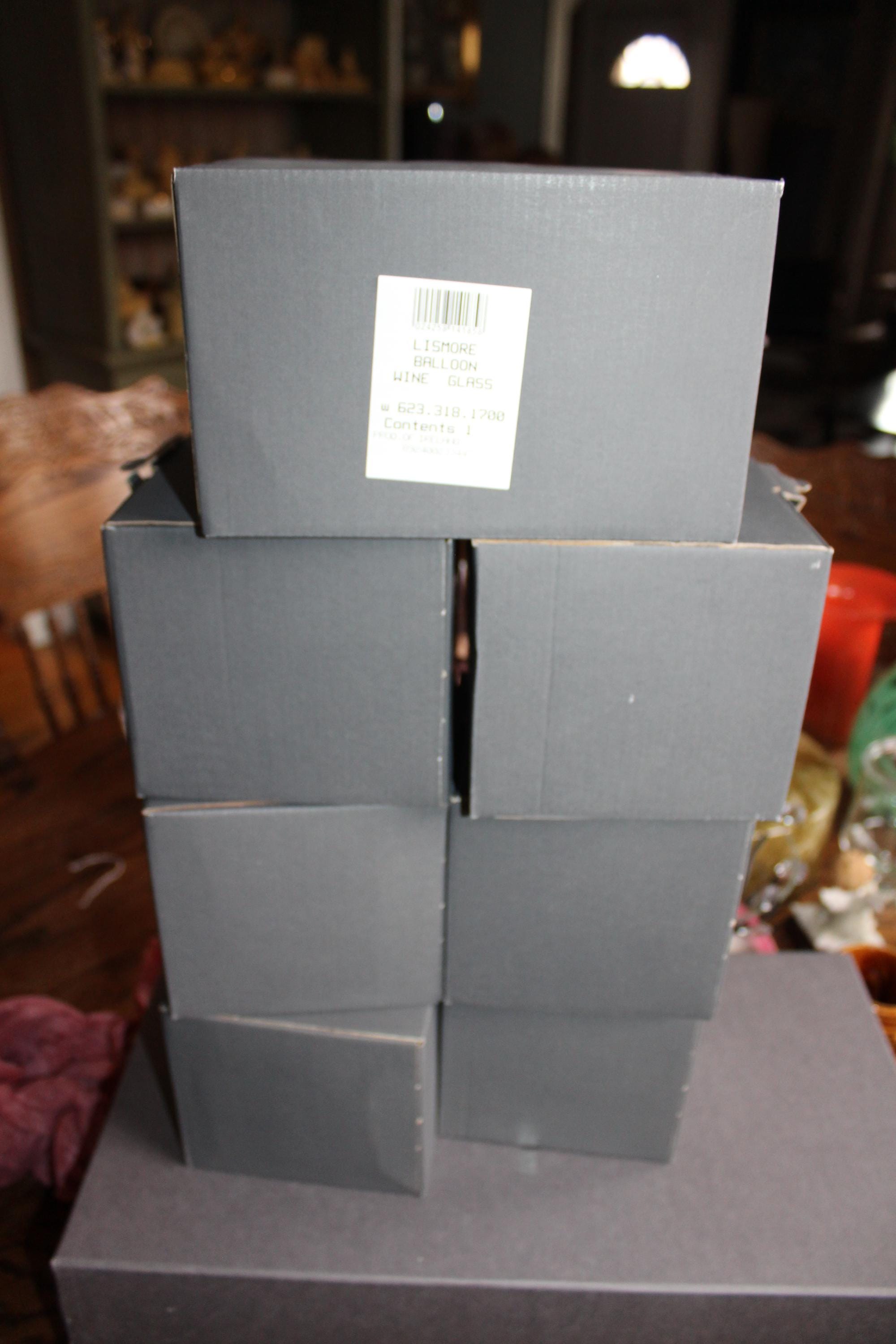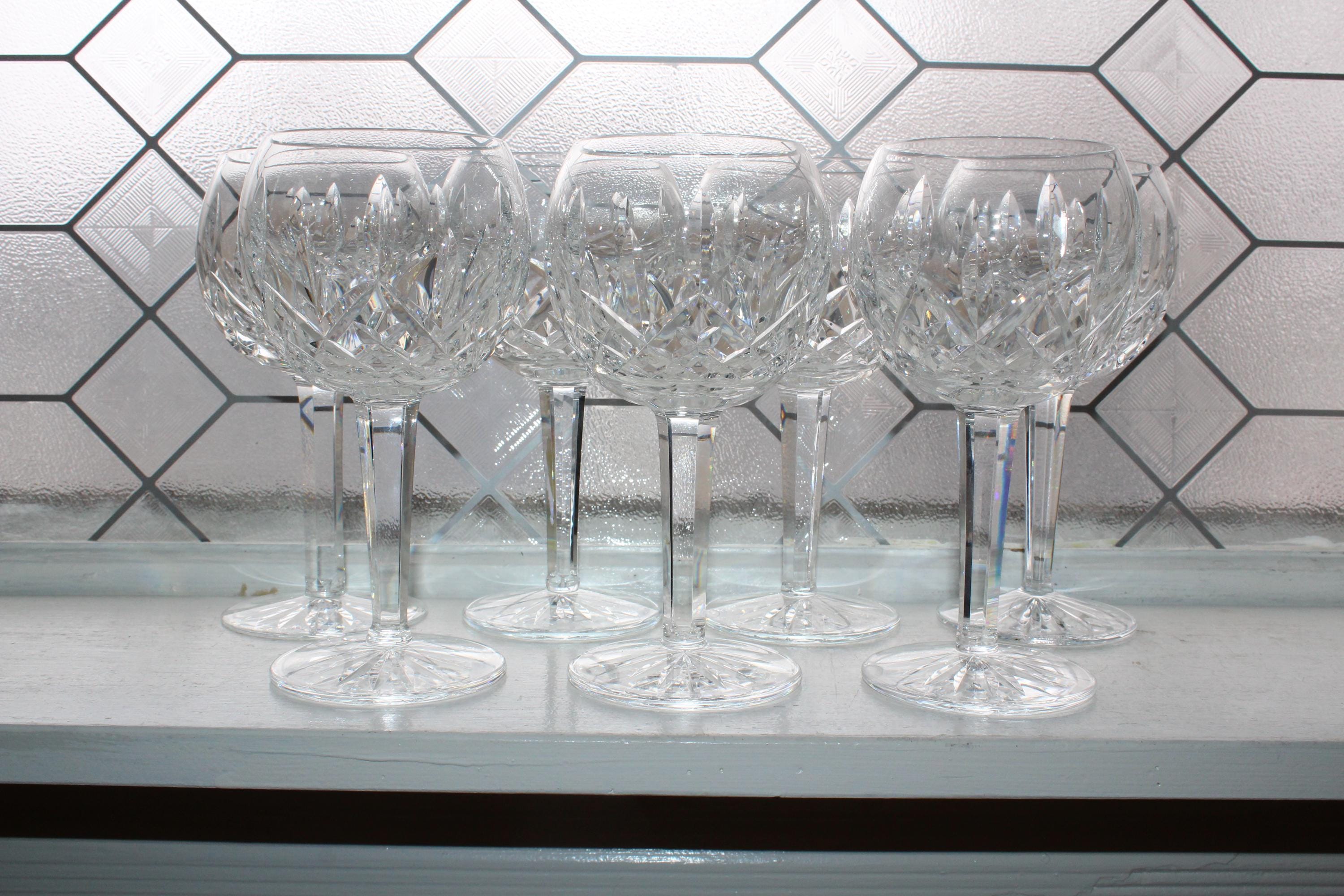 Set of 7 Waterford crystal Lismore 12 oz. balloon wine glasses with original boxes, in excellent condition. Each glass measures 7 1/8" high. No chips or cracks, perfect for use or display. Enjoy!