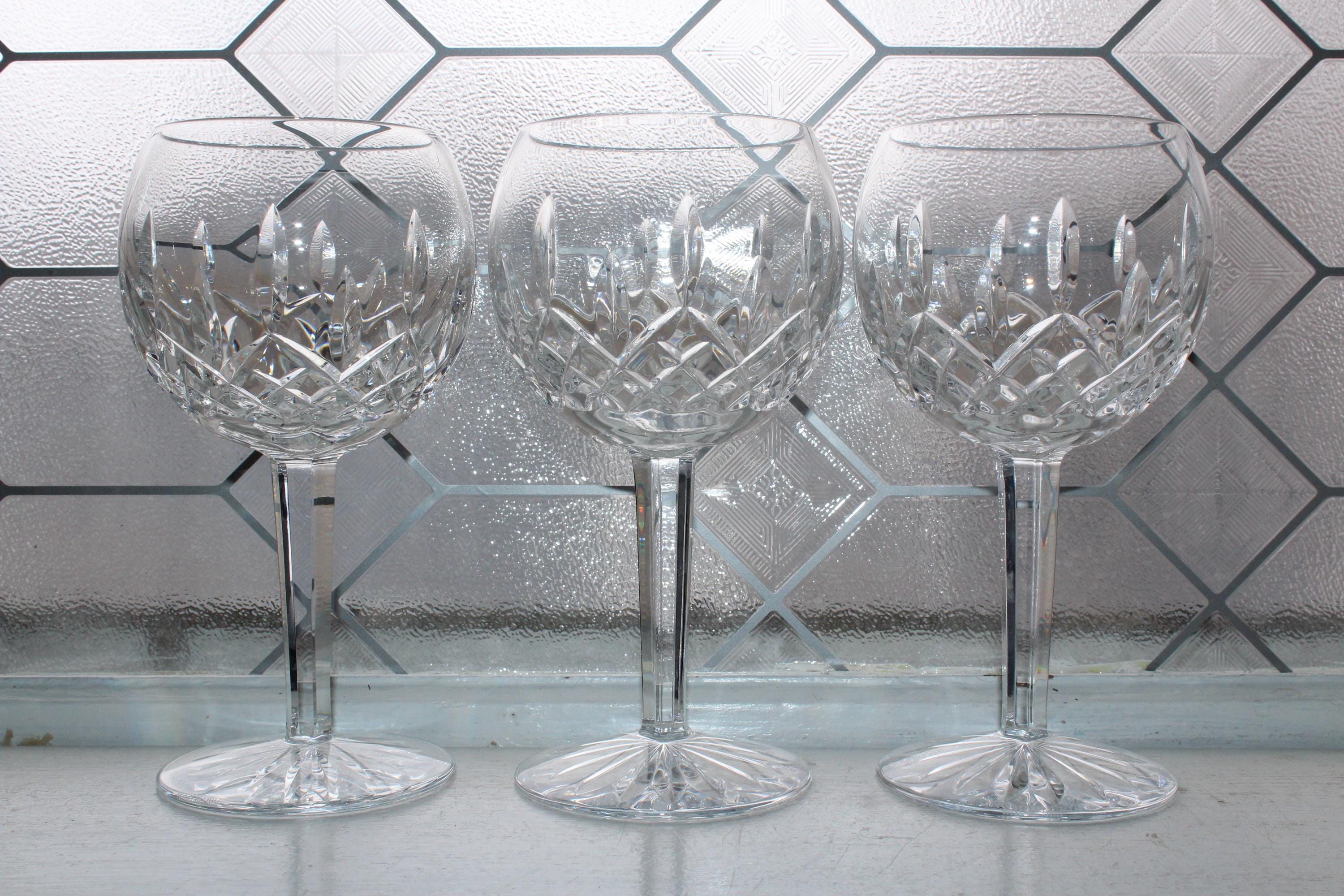 Set of 3 Waterford crystal Lismore 16 oz. oversized balloon wine glasses, in excellent condition. Each glass measures 7 3/4" high. No chips or cracks, perfect for use or display. Enjoy!