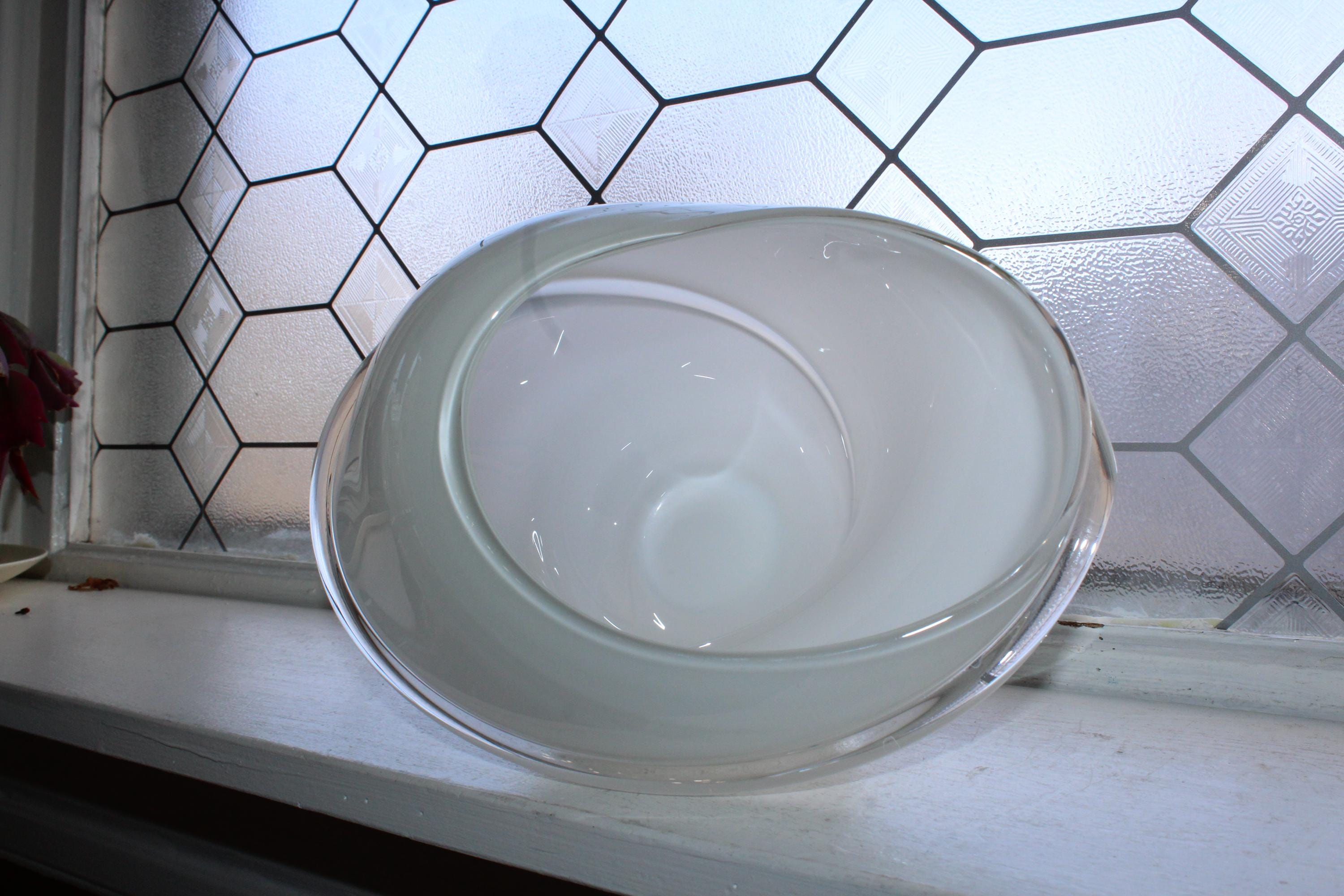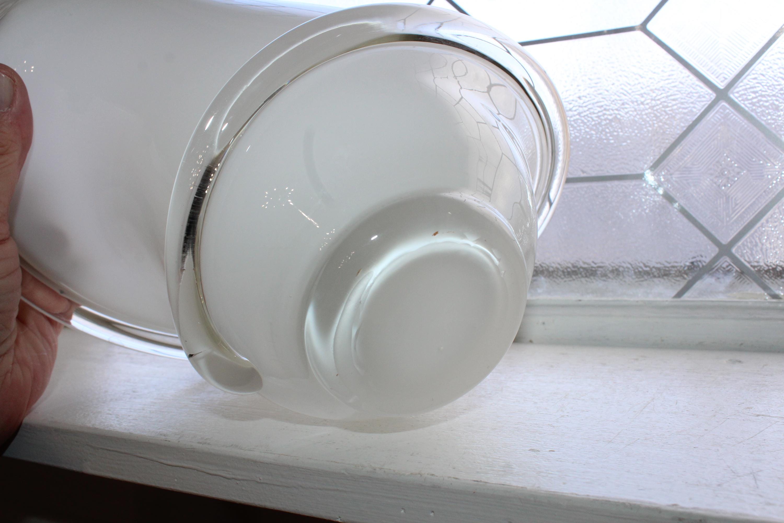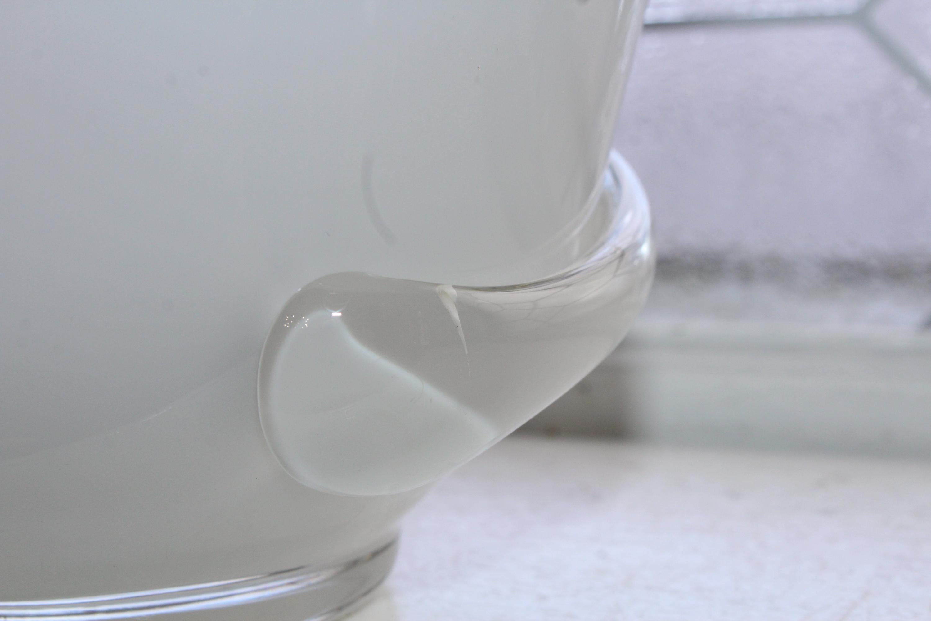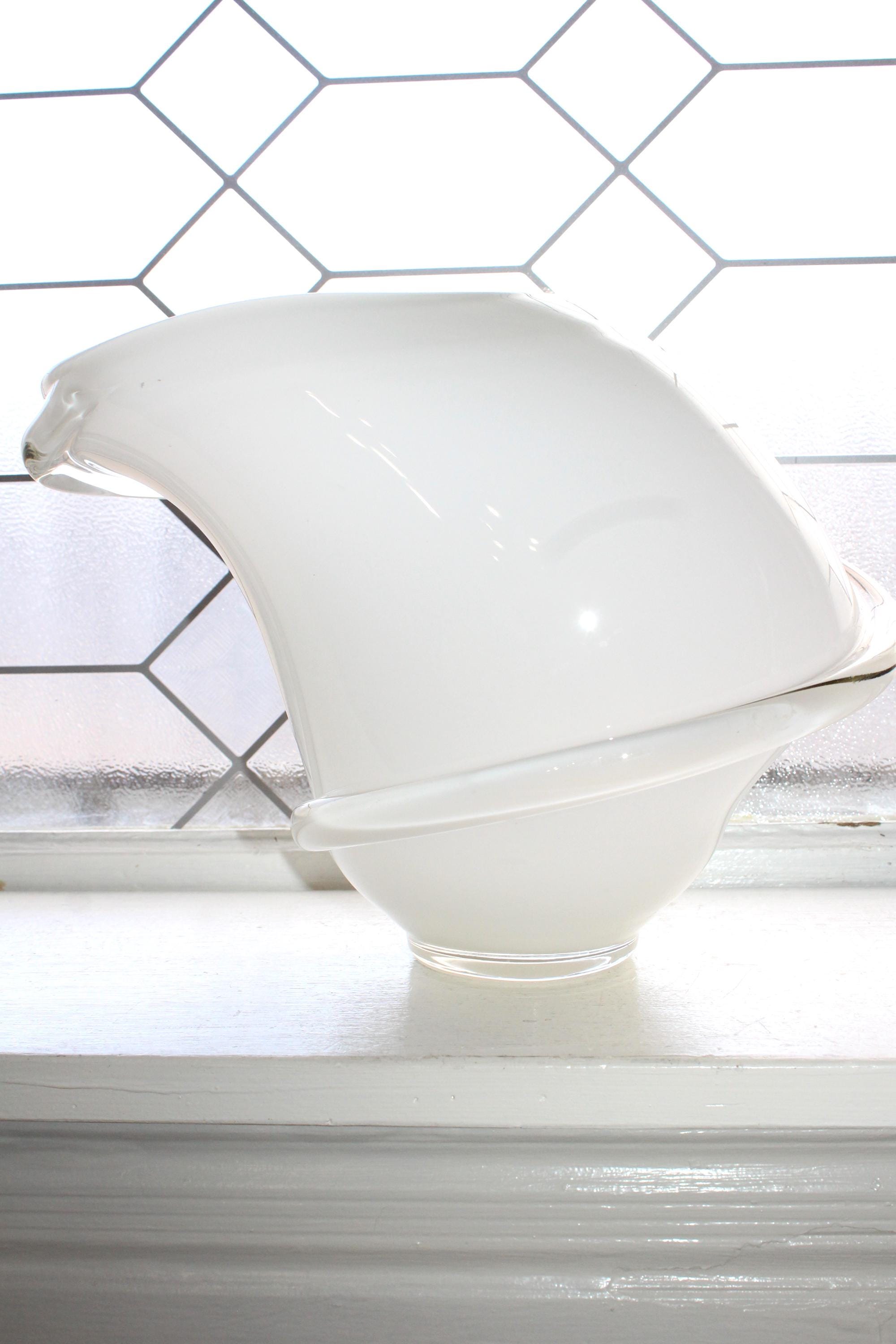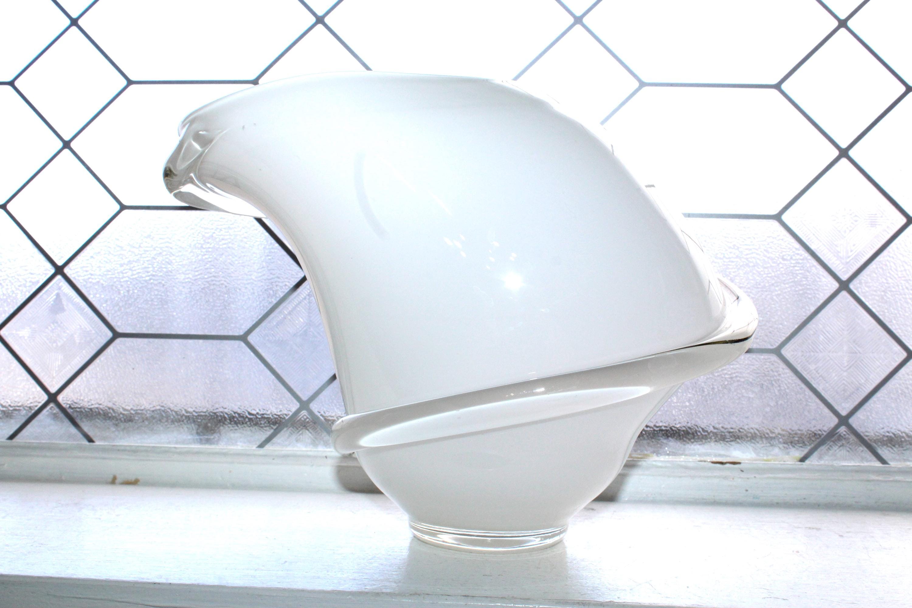 Large vintage white Italian Murano art glass tornado vase with clear wrapped thick thread/rope. It measures 8" high, weighs 2 3/4 lbs. and has no chips, great for display. THE CURVED GRAY LINES YOU SEE IN THE PHOTOS ARE FROM MY CAMERA LENS. Enjoy!