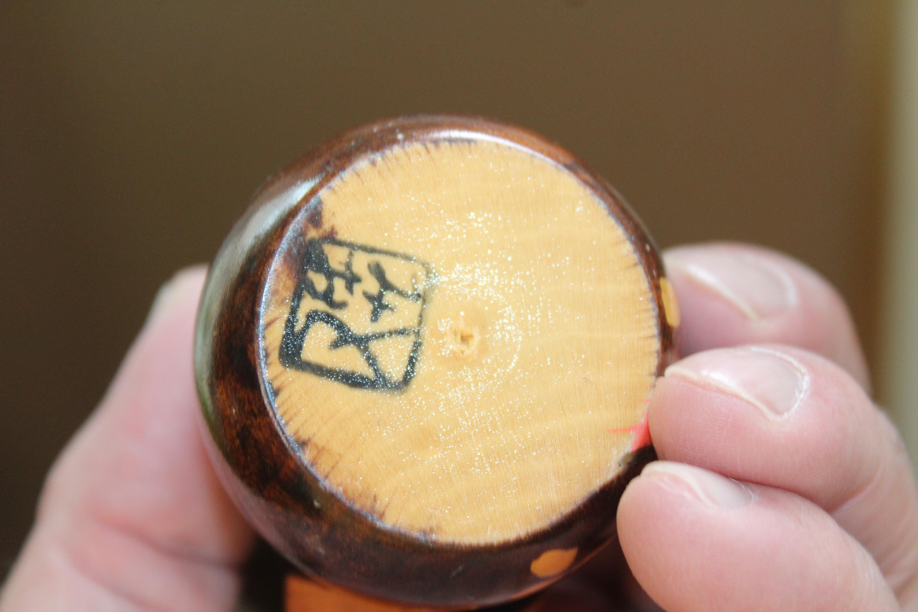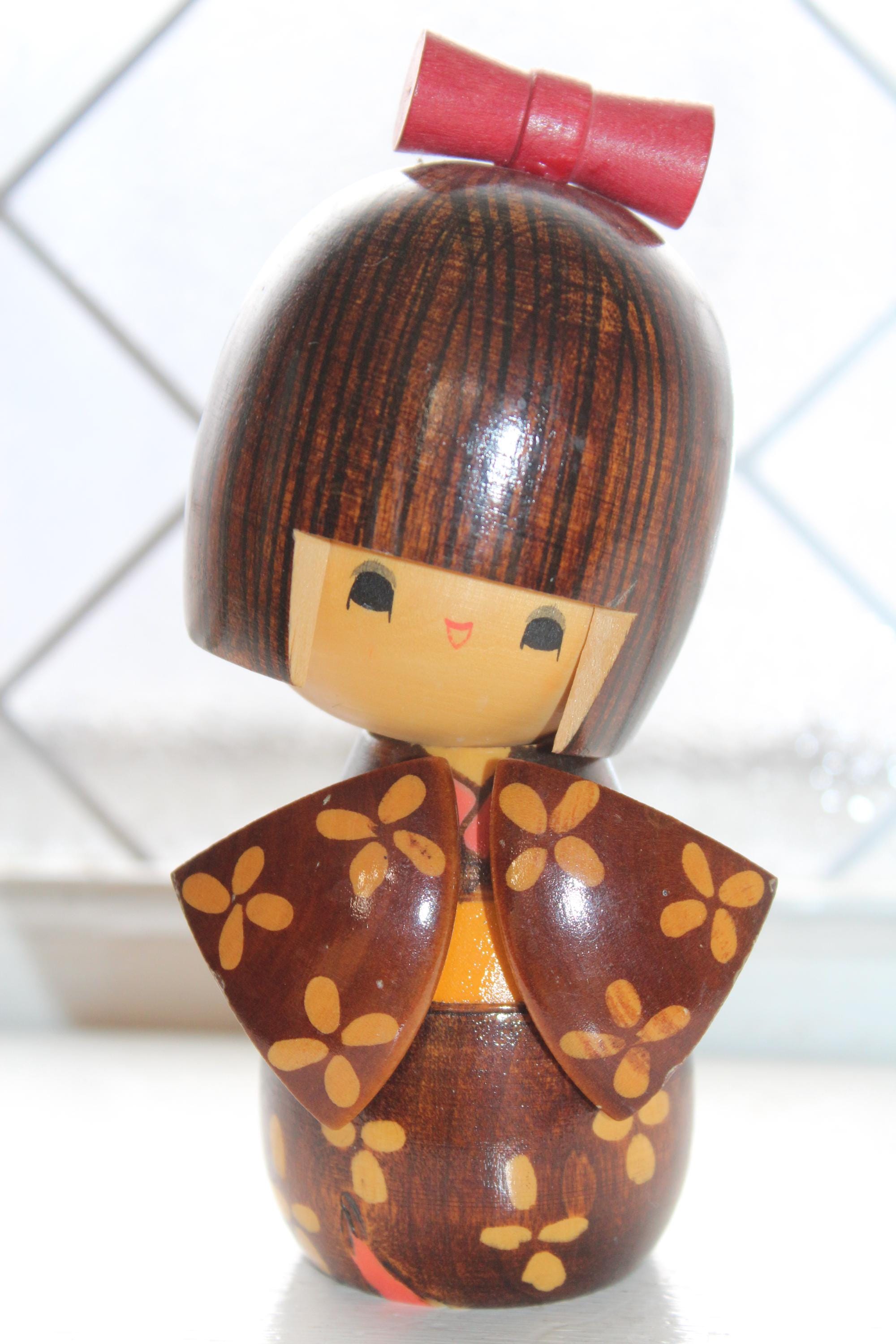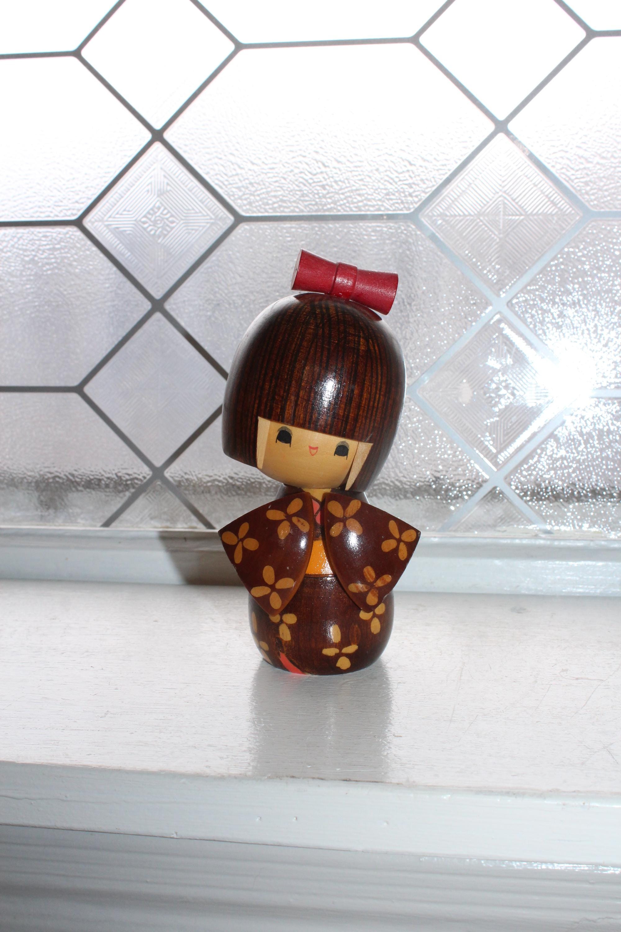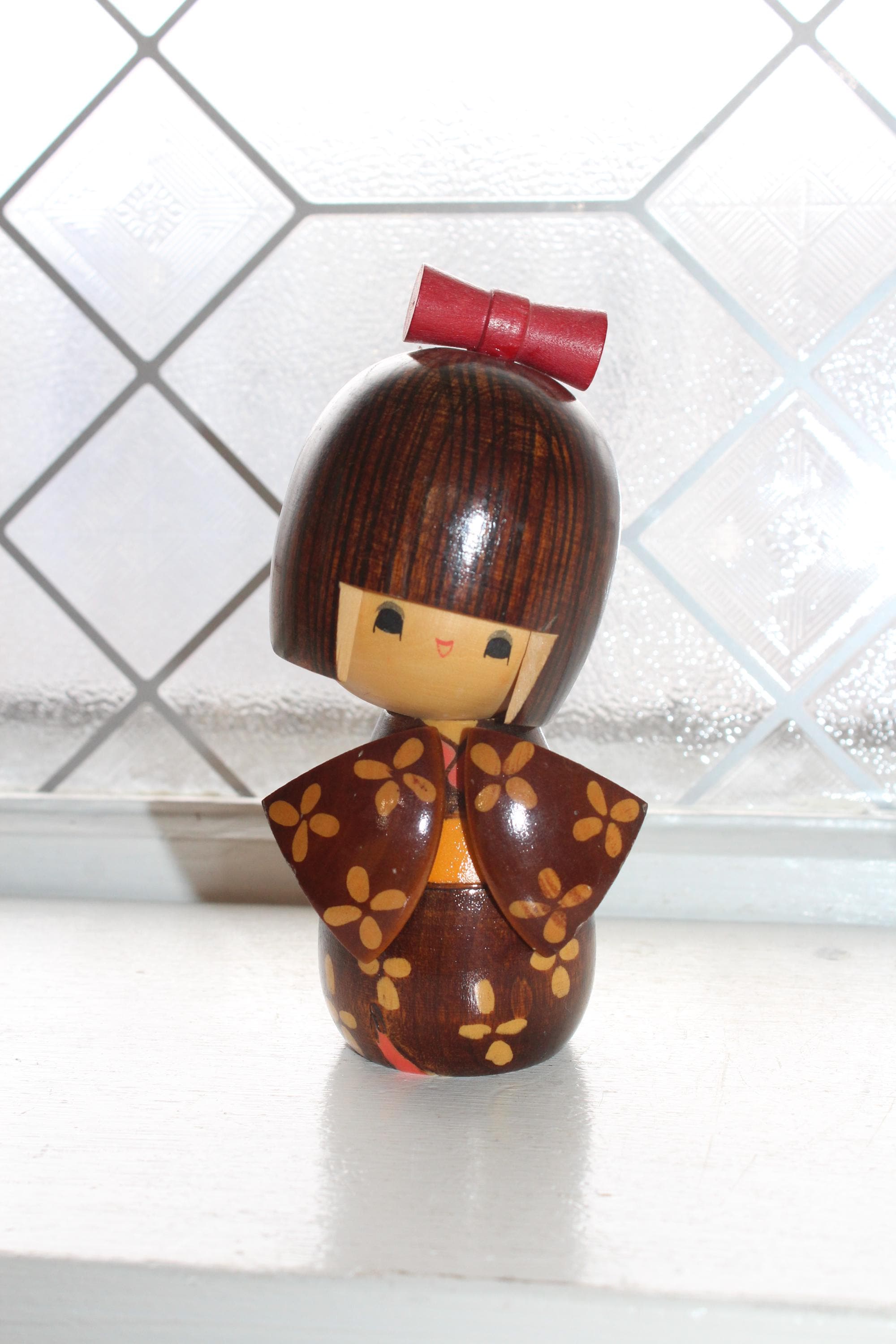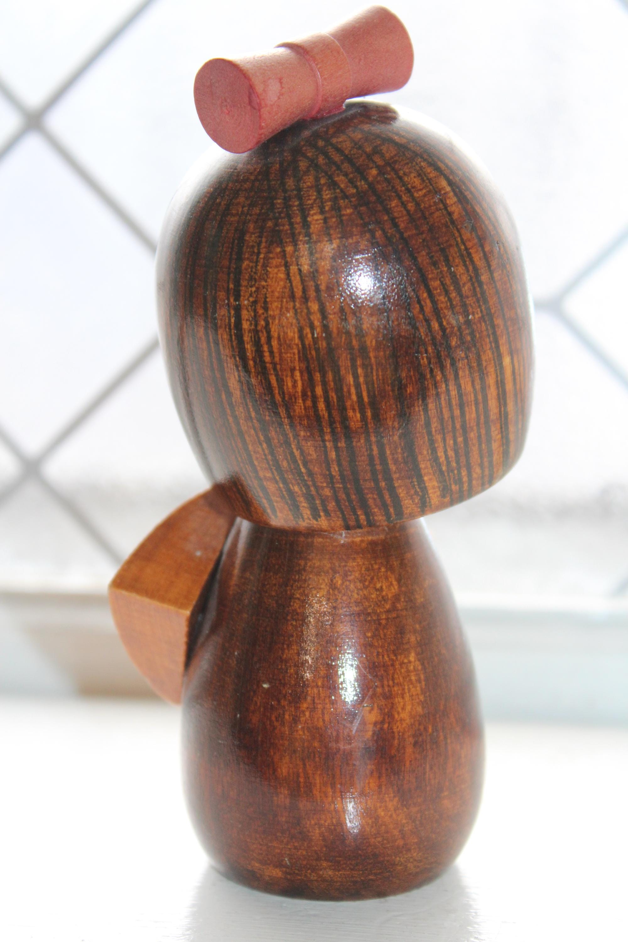 Vintage wooden Japanese folk art Tomyo Ishida Kokeshi girl with red ribbon doll, artist signed and in very good condition. It measures 5 1/2" high and has no damage. Enjoy!