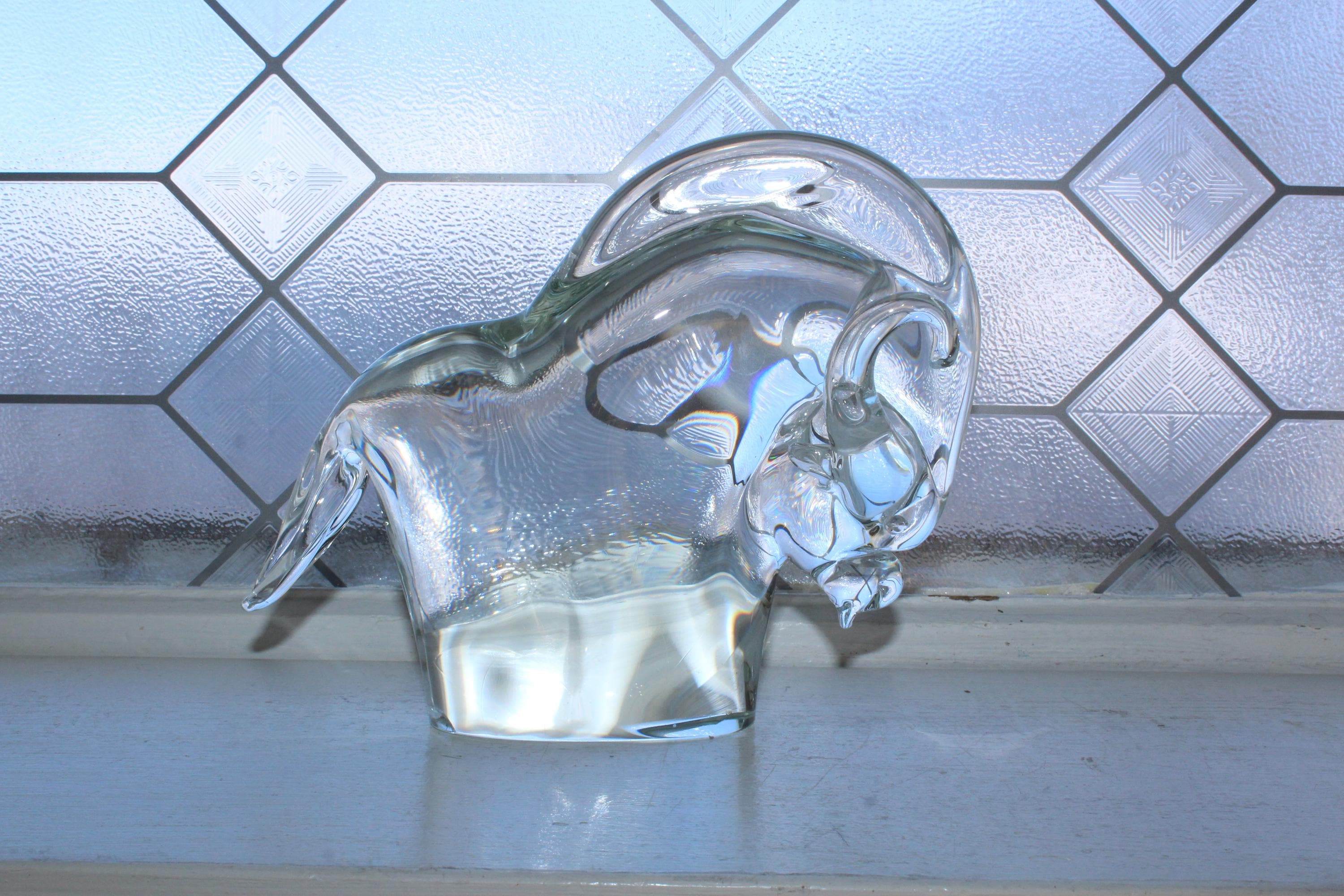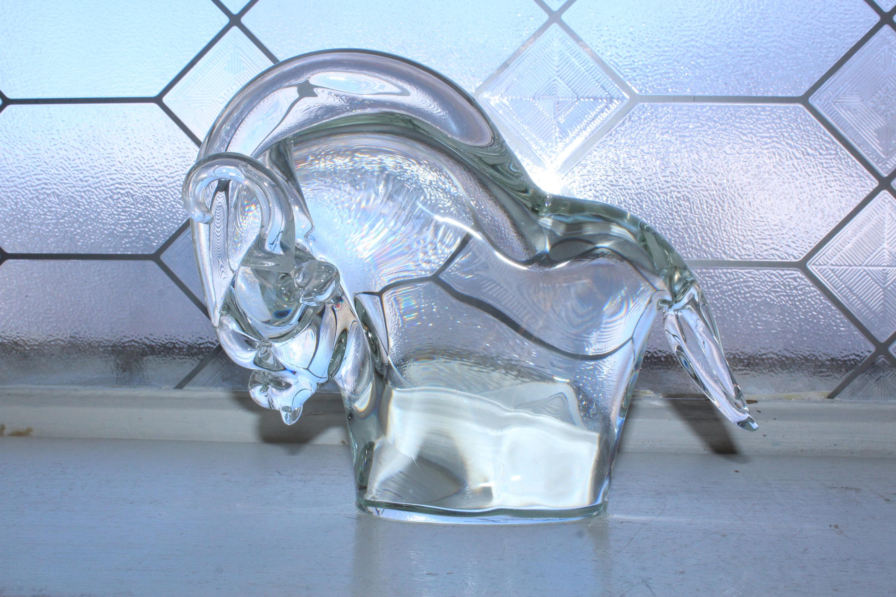 Large vintage 1960s Licio Zanetti Murano glass bull figurine, in good condition. It measures 8" long x 6 1/2" high, weighs just under 4 lbs. and has no chips, great for display. It is signed on the underside. One small interior flaw on the underside. Enjoy!