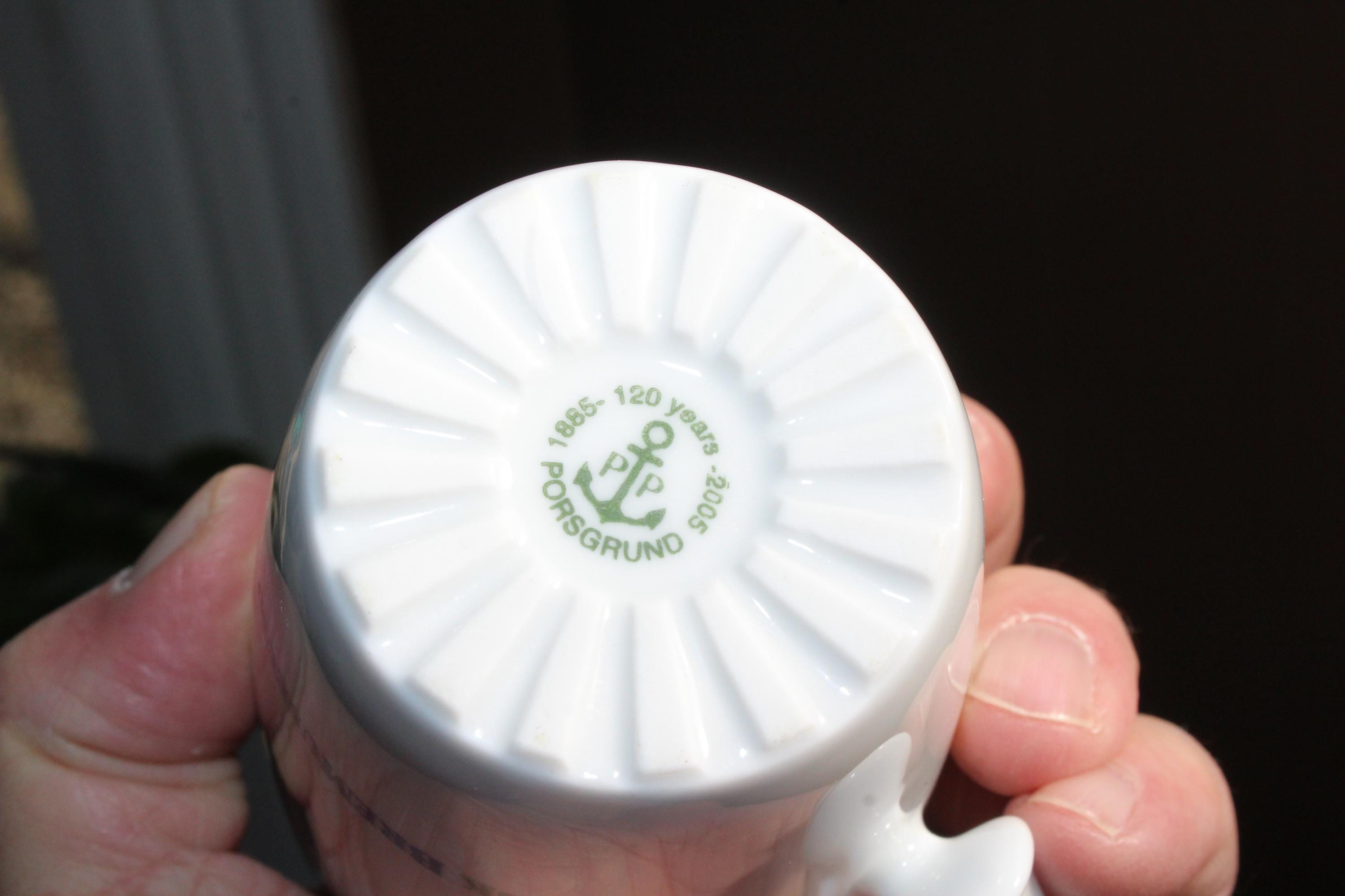 Vintage 2005 120 years Norwegian Porsgrund Norsk BreMuseum souvenir coffee cup, in excellent condition. It measures 3 5/8" high. No chips or cracks, great for use or display. Enjoy!