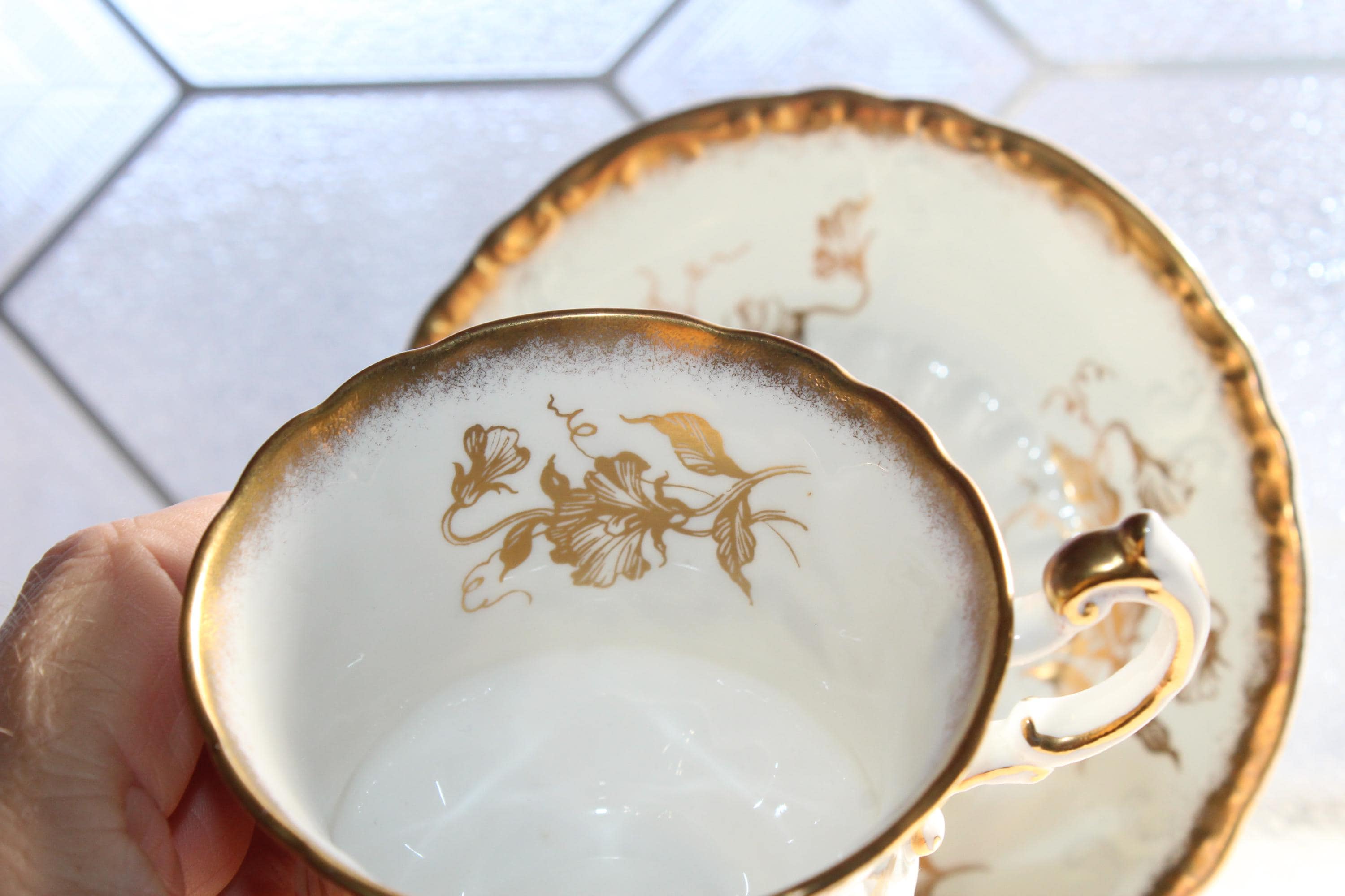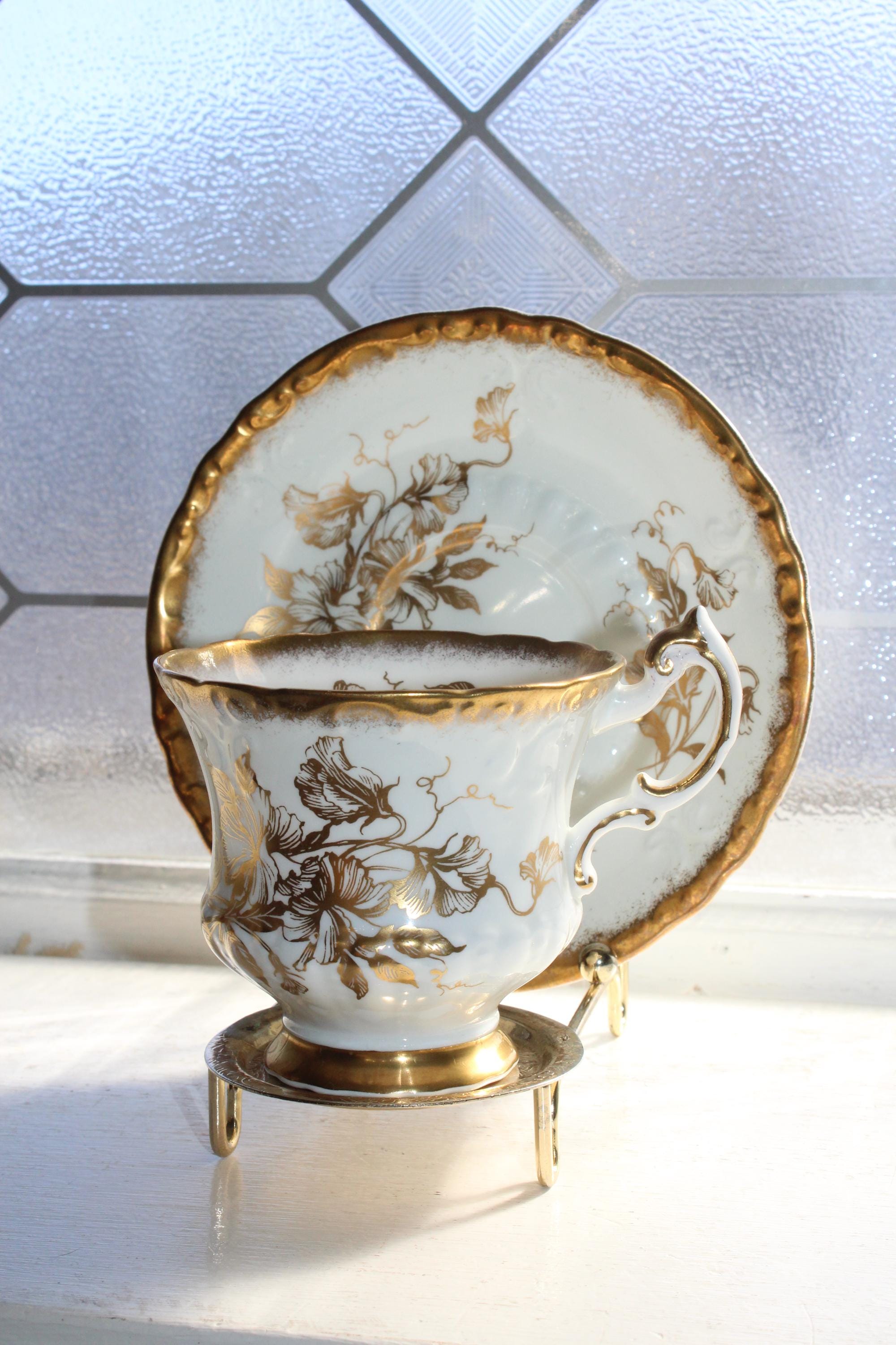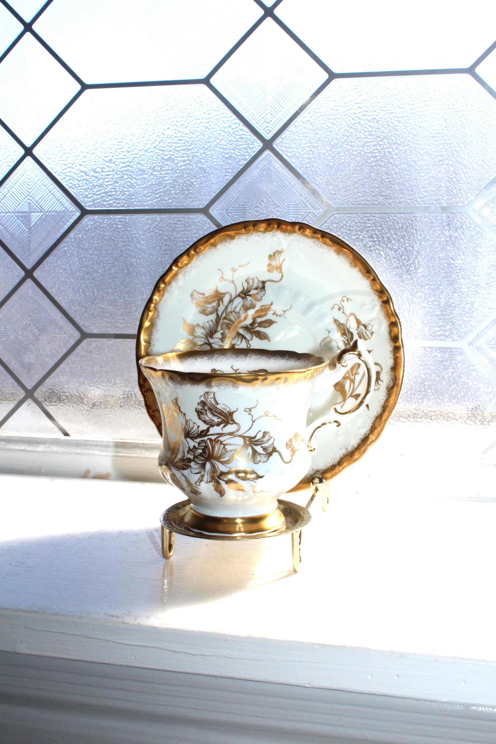 This vintage Paragon Golden Glory fine bone china tea cup and saucer set is just gorgeous! It is in excellent condition.The cup measures 2 7/8" high x 3 1/4" in diameter and the saucer measures 5 1/2" in diameter. No chips or cracks. Enjoy!