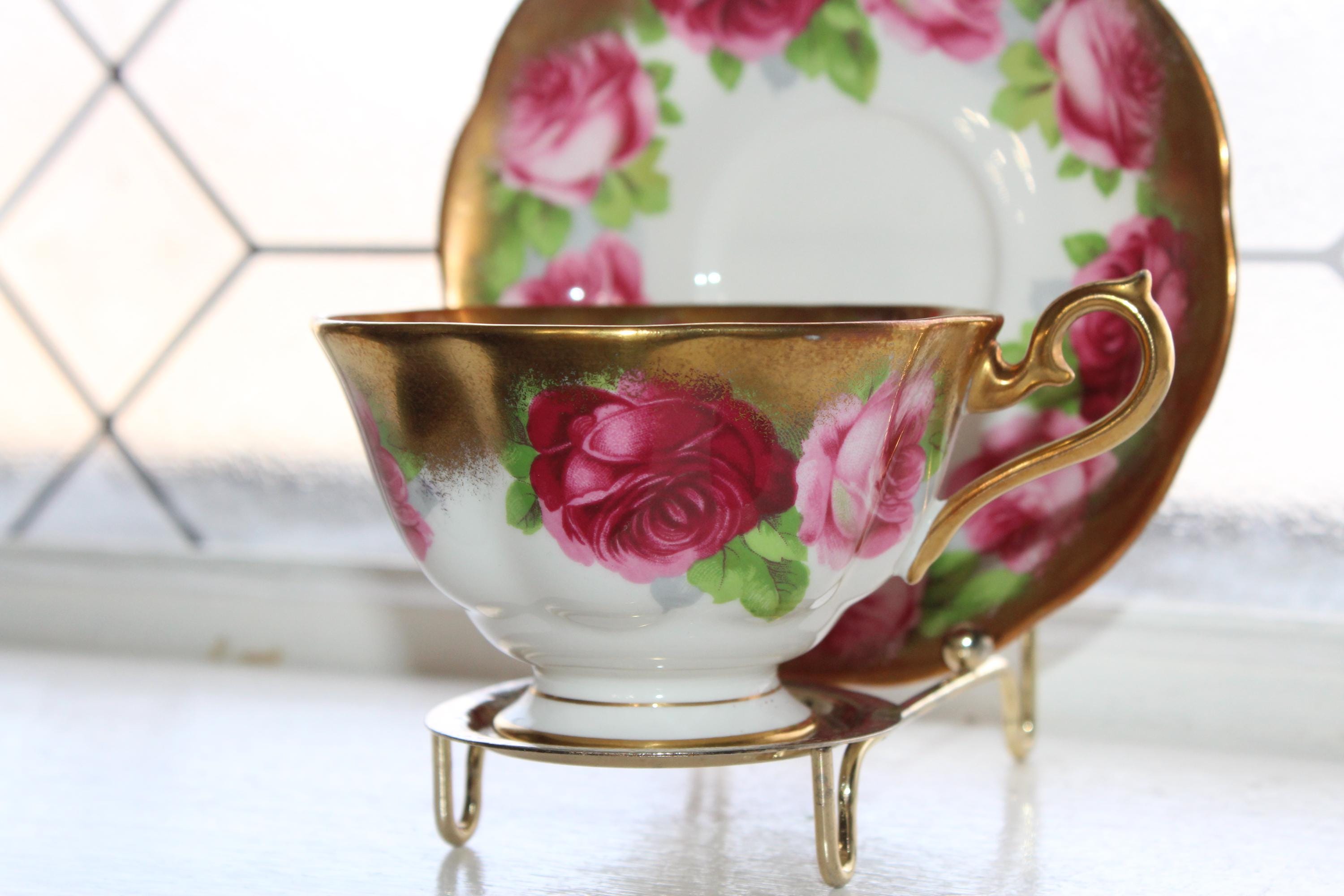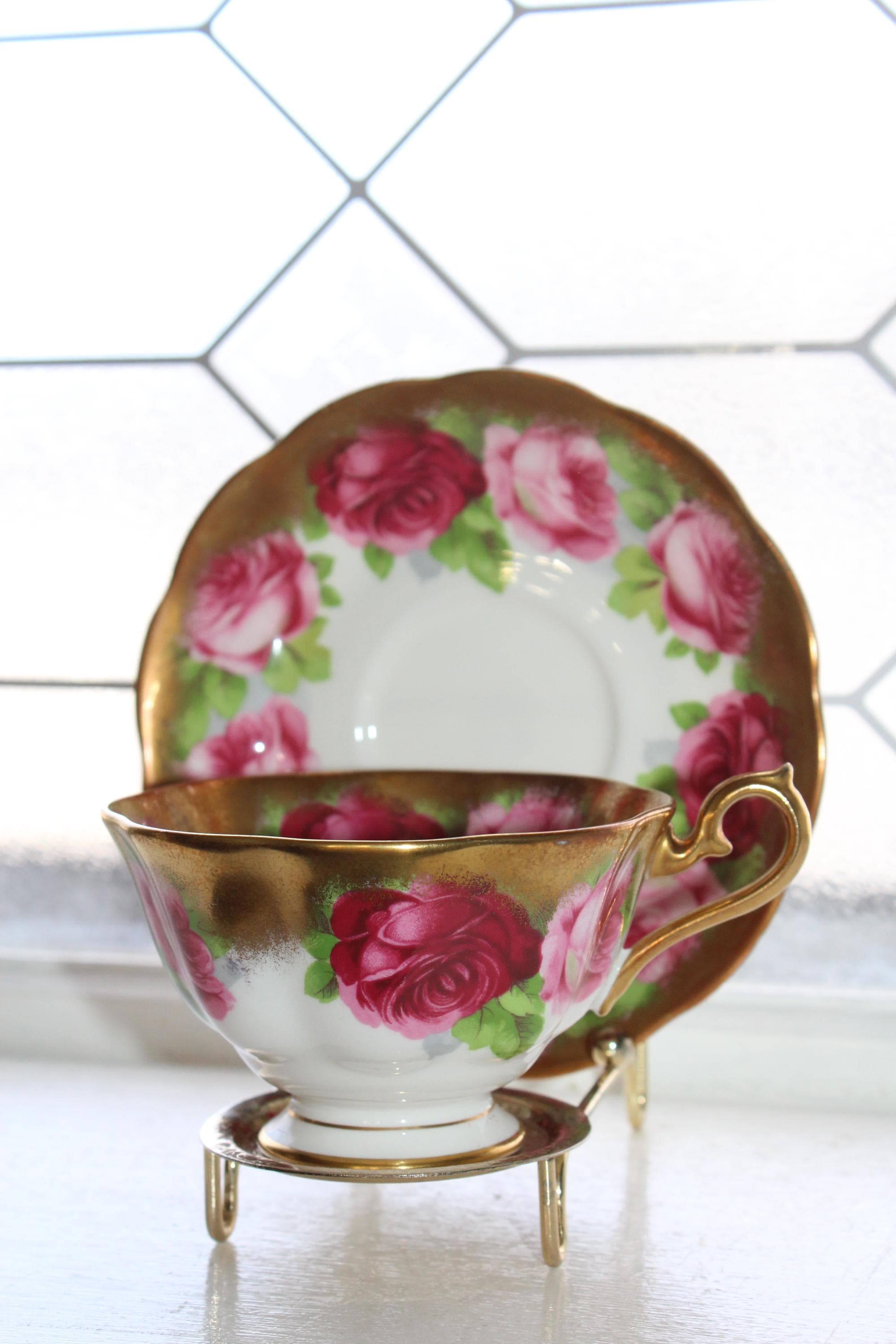 Vintage Royal Albert fine bone china tea cup and saucer in the English Rose pattern, in excellent condition. The cup measures 4" in diameter and 2 3/8" high, and the saucer measures 5 1/2" in diameter. No chips, cracks or wear, perfect for use or display. Enjoy!