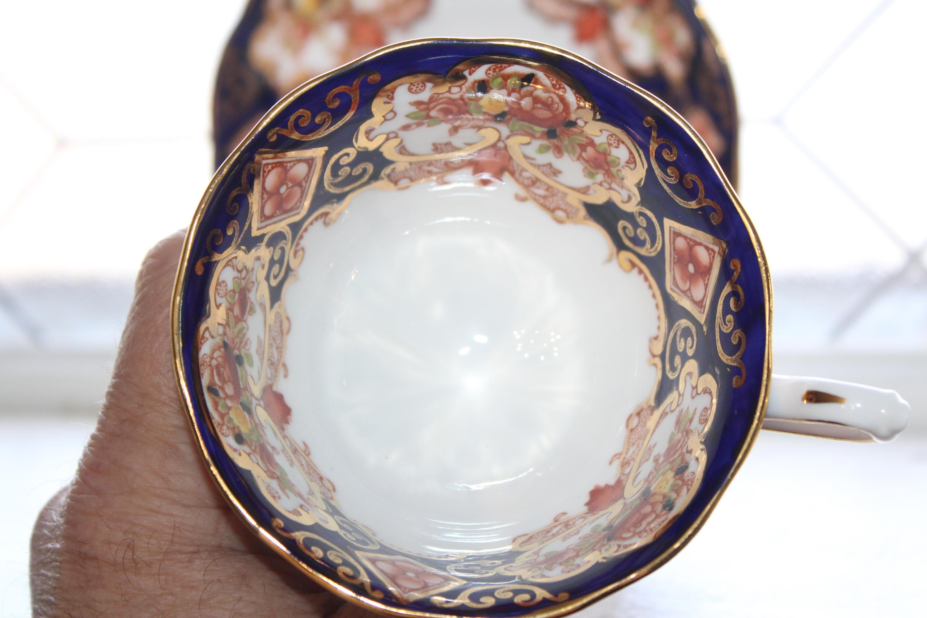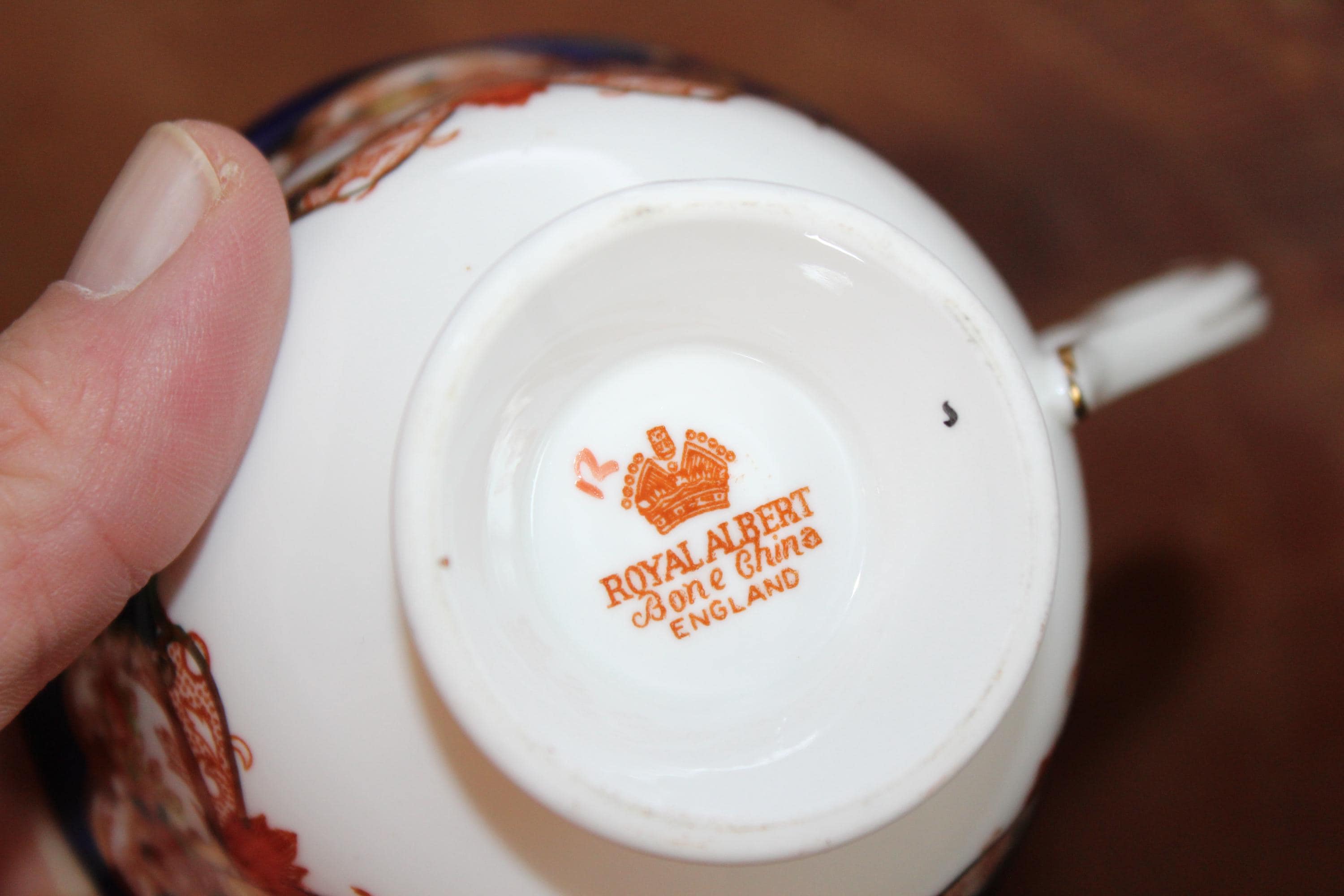 Antiquee Royal Albert fine bone china tea cup and saucer in the Heirloom Imari pattern, in excellent condition. The cup measures 3 7/8" in diameter and 2 1/2" high, and the saucer measures 5 1/2" in diameter. No chips, cracks or wear, perfect for use or display. Enjoy!