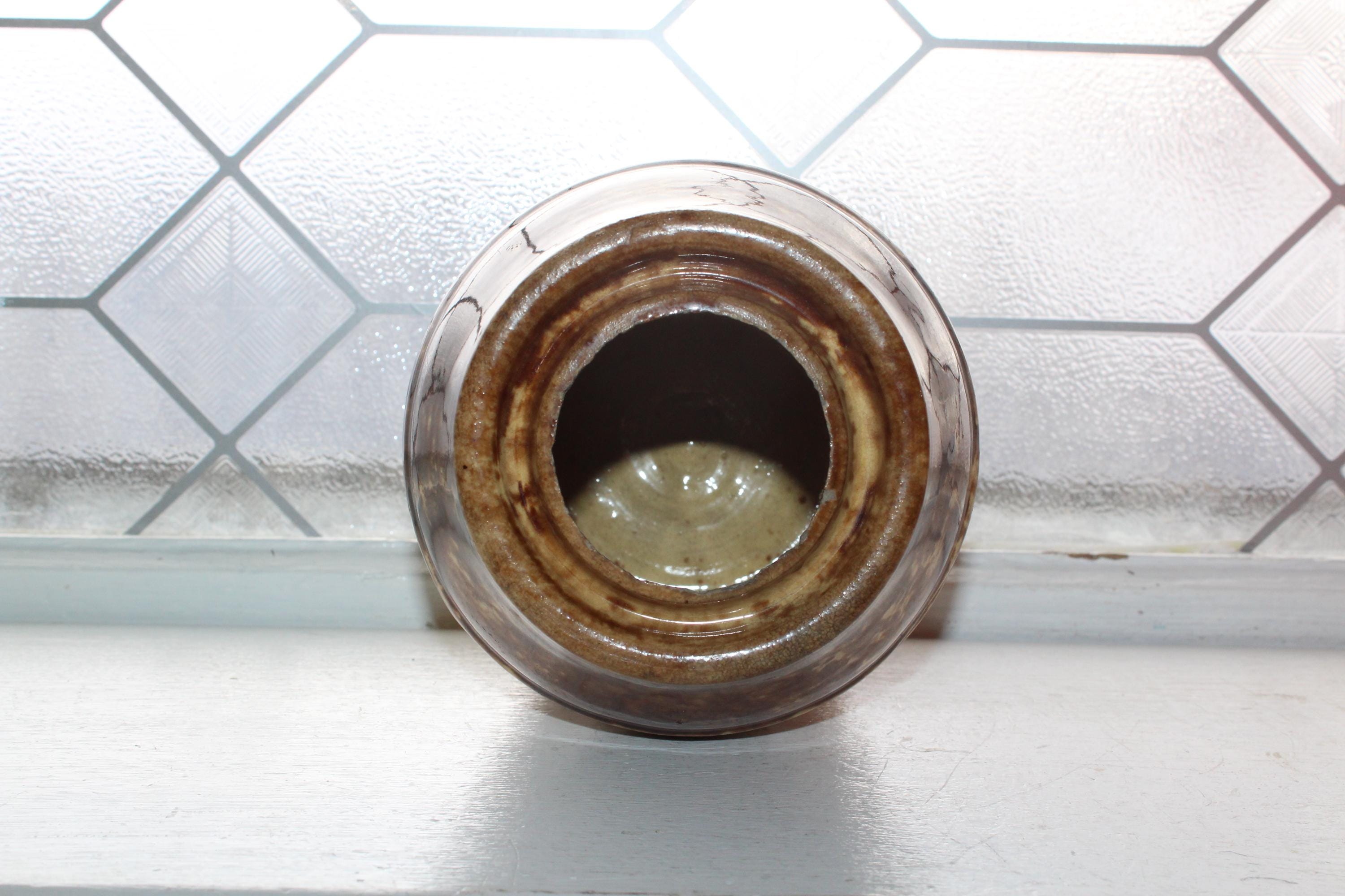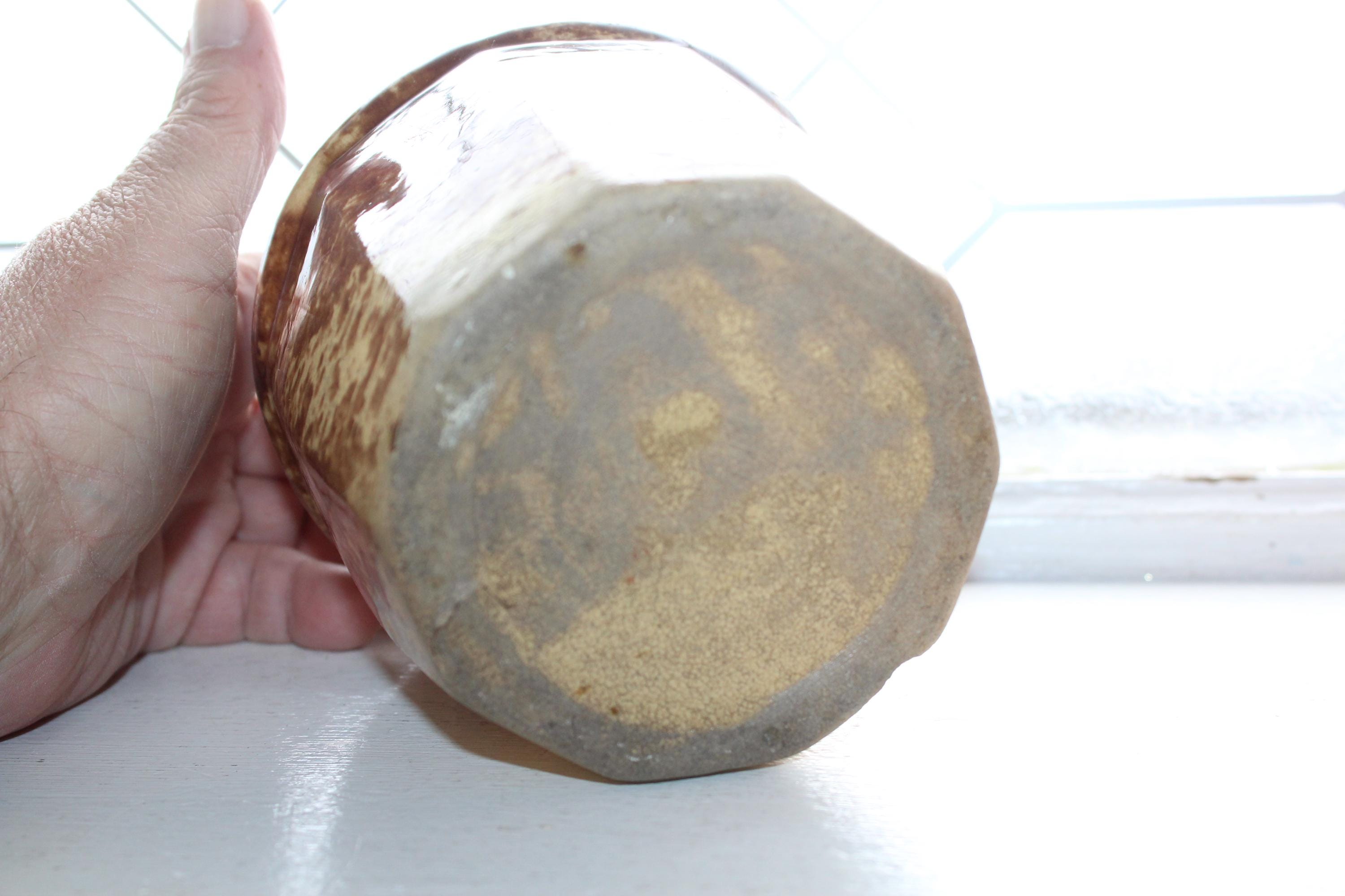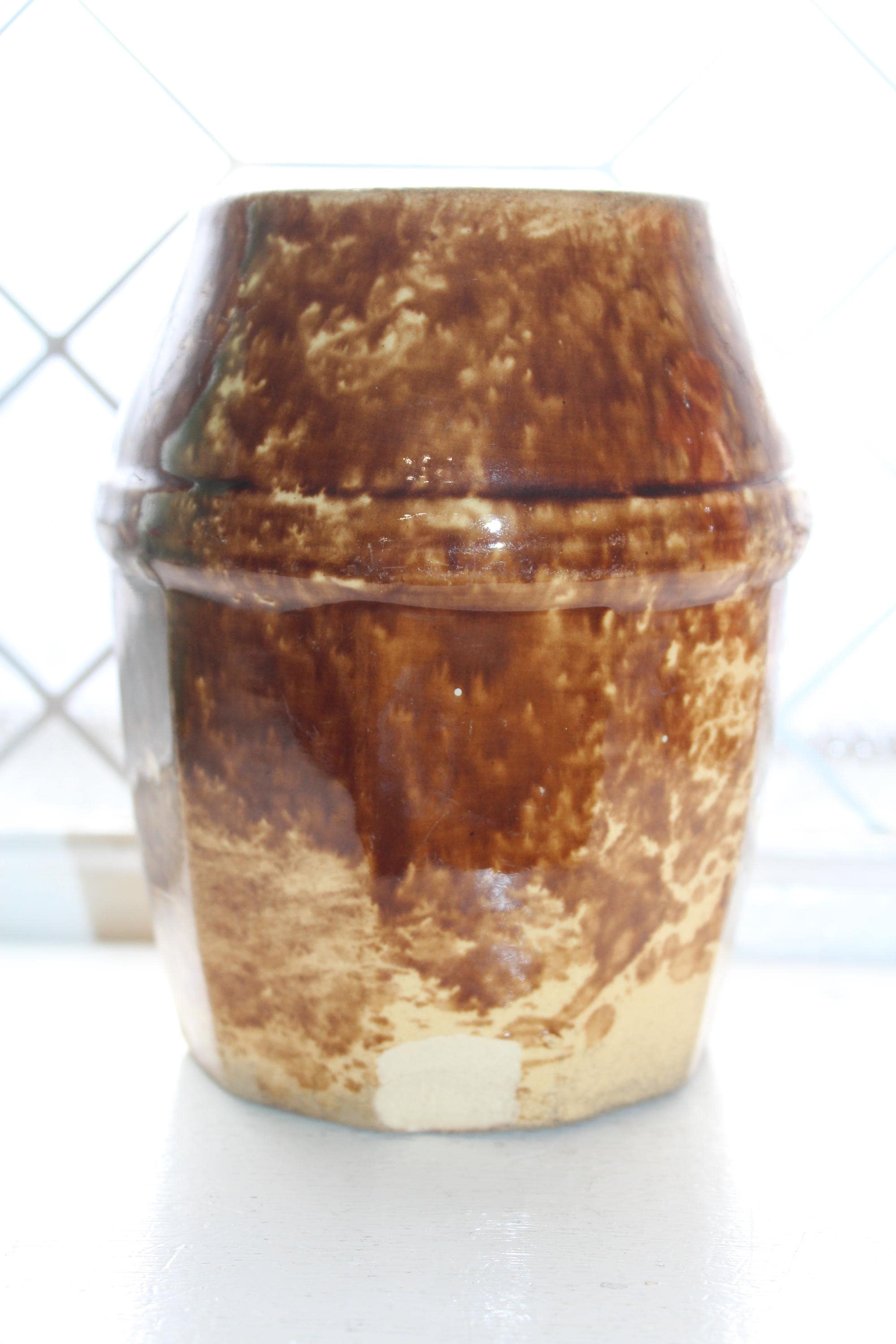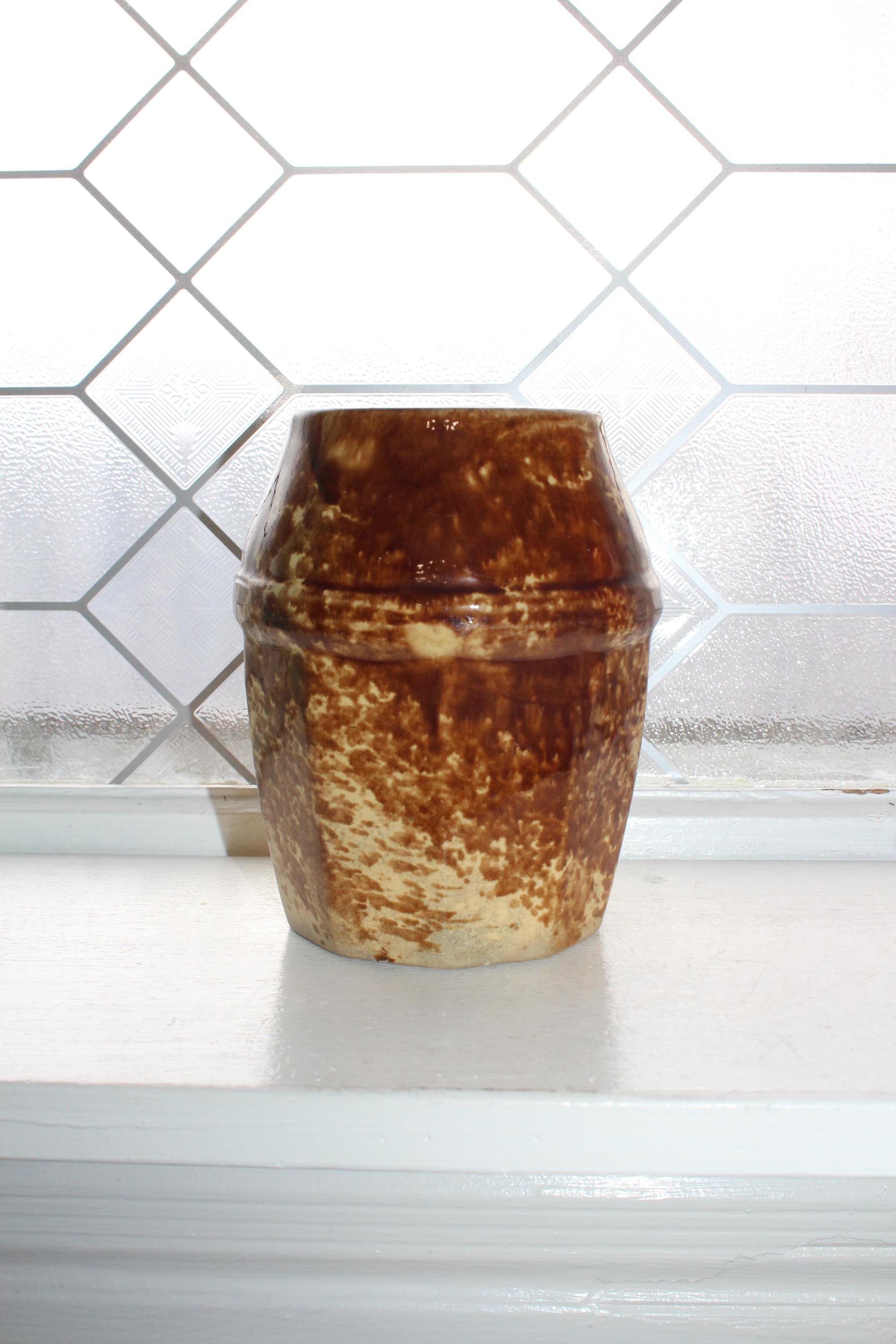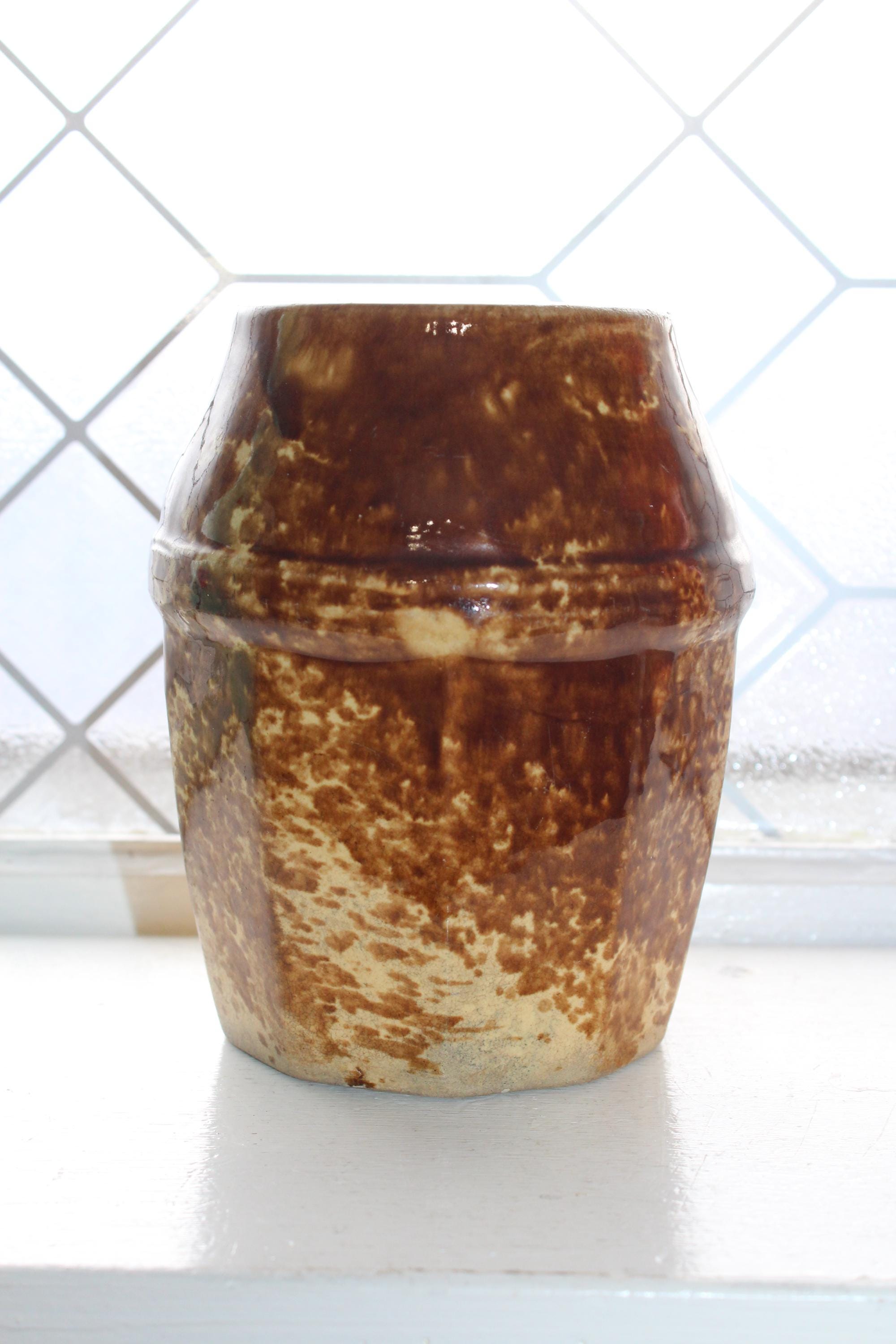 Antique late 1800s Rockingham brown yellowware/stoneware wax sealer canning jar. The jar measures 5 3/4" high and weighs 2 lbs. It's in good condition for its age with one base rim chip as shown in the photos. It displays very well and looks great in a country kitchen. Enjoy!