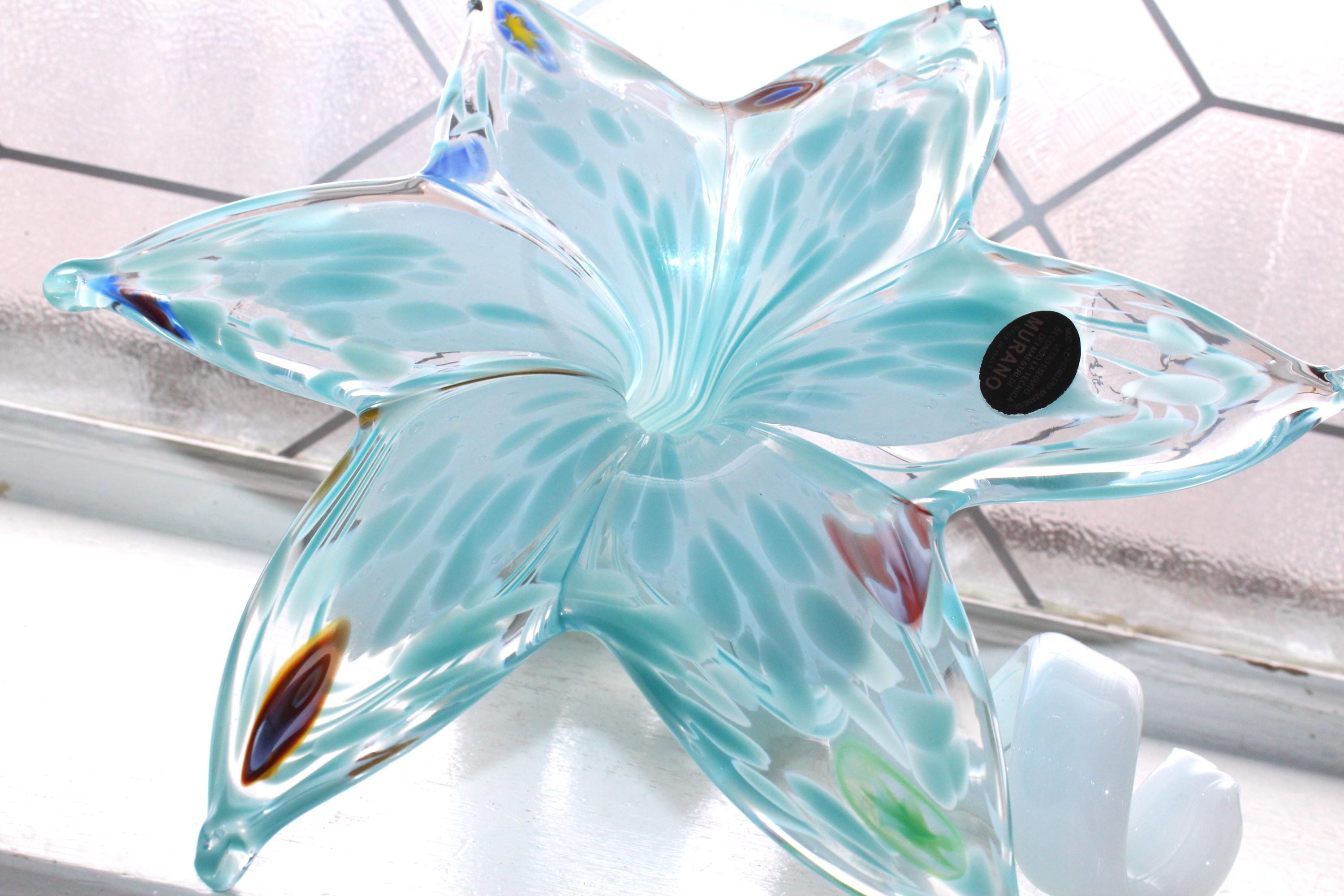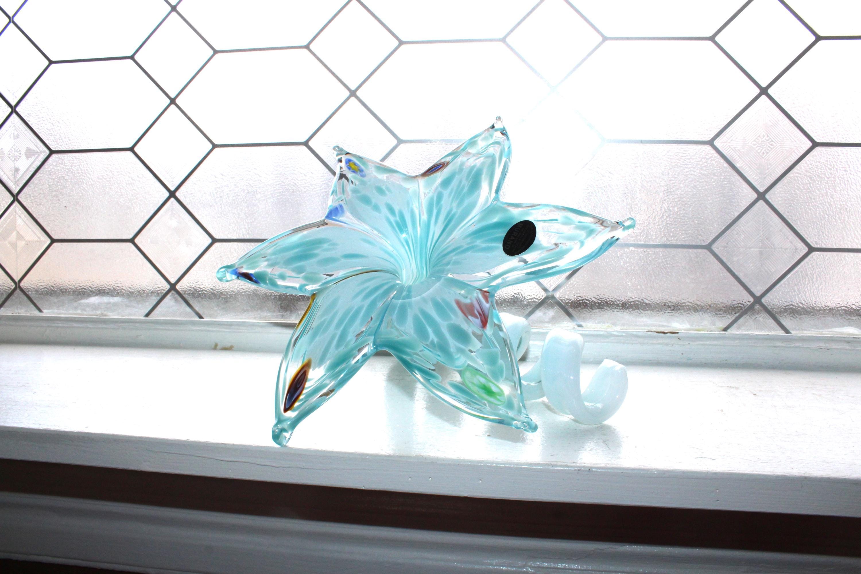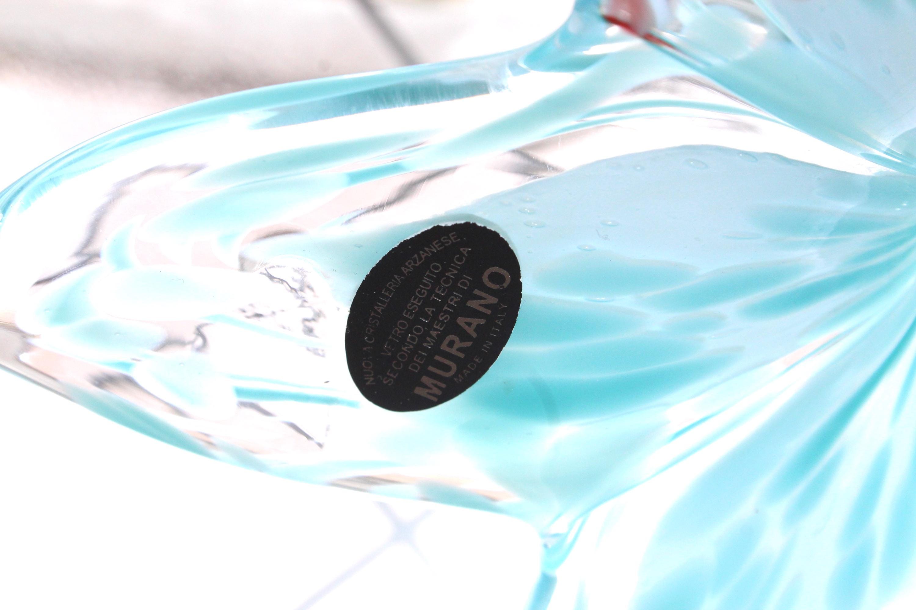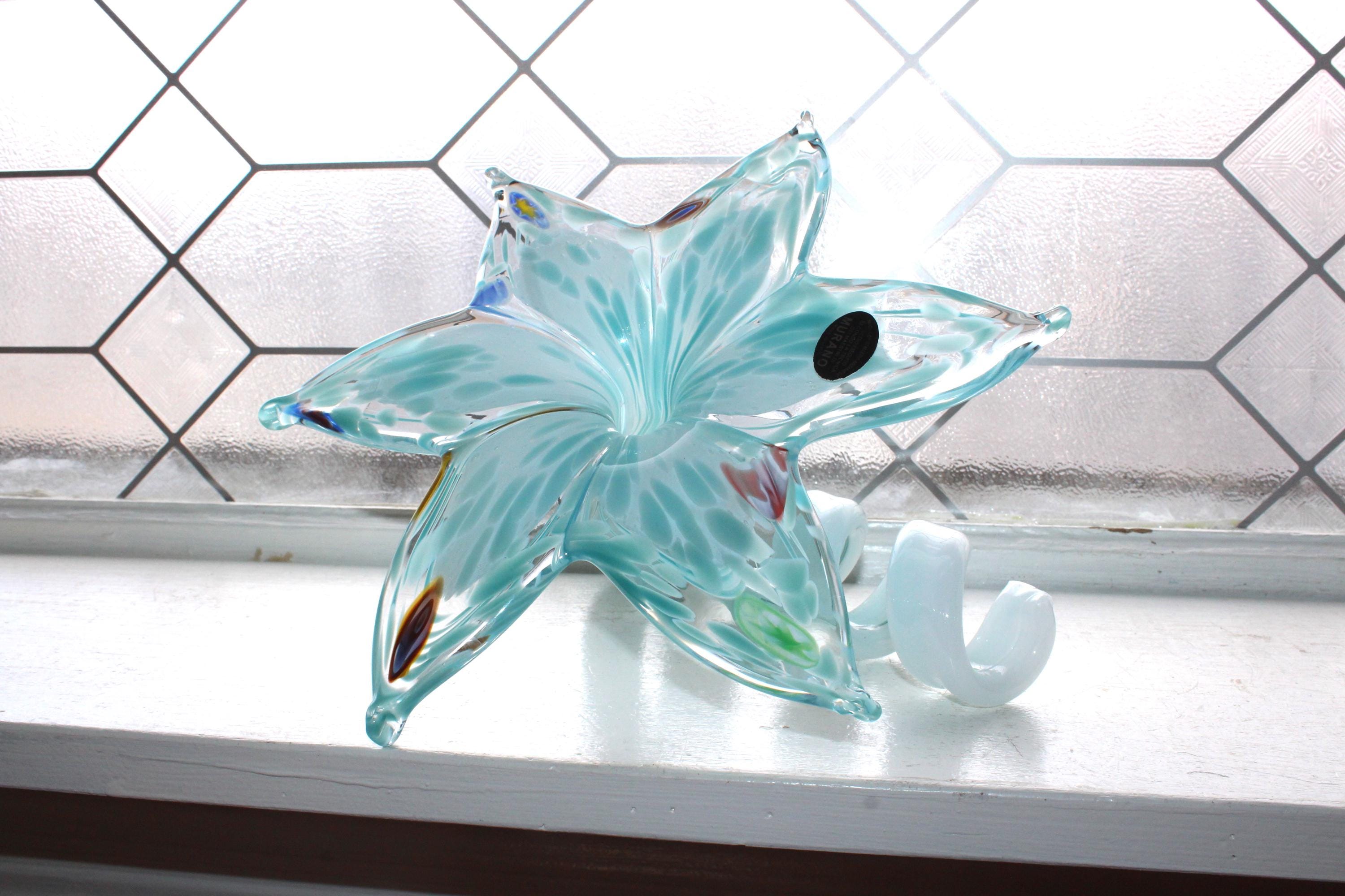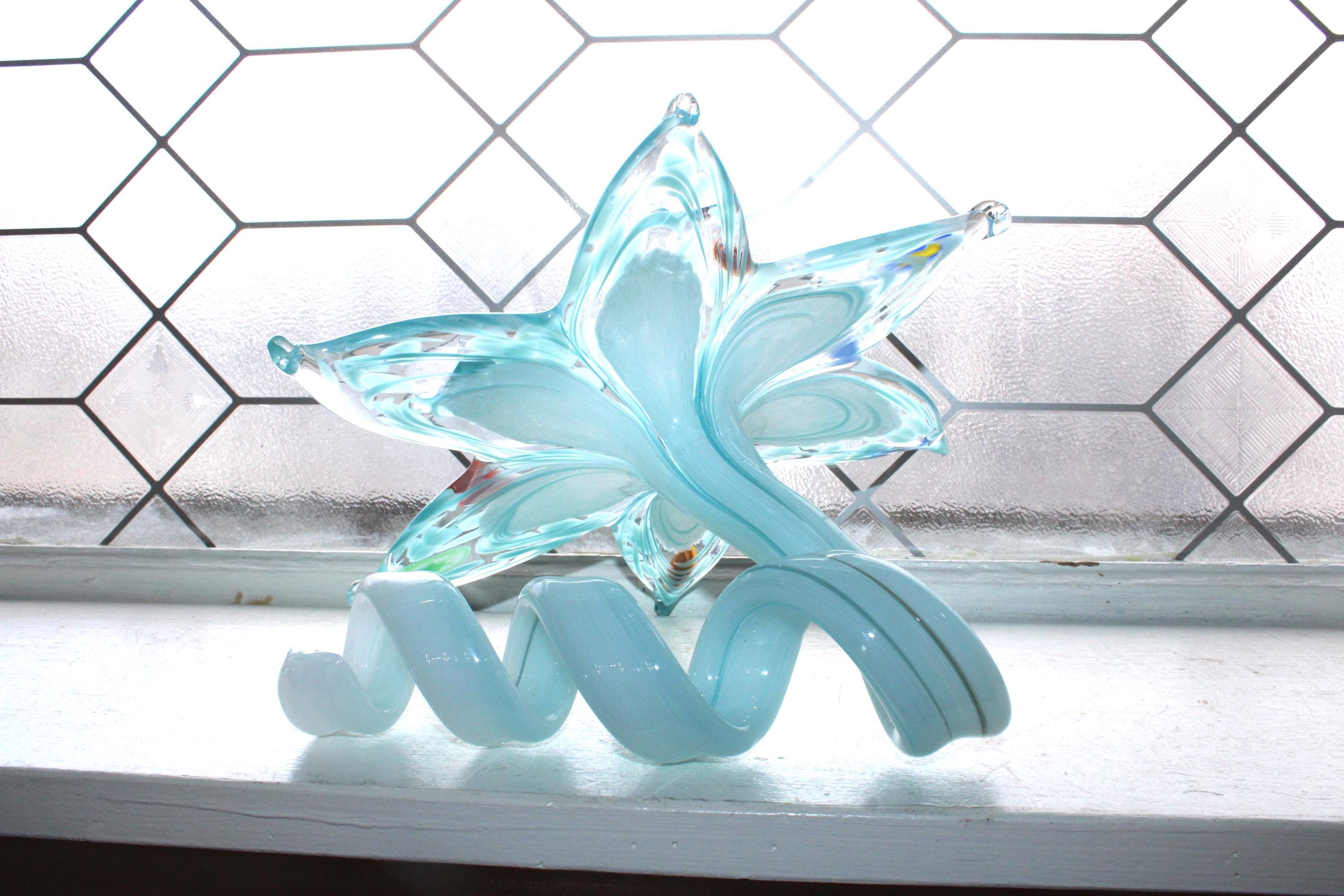 This is a fabulous large vintage Mid Century Nuova Cristalleria Arzanese Murano art glass pale blue flower with curly tail sculpture, in excellent condition. It measures 6 1/2" high, has its original sticker and has no damage. Enjoy!