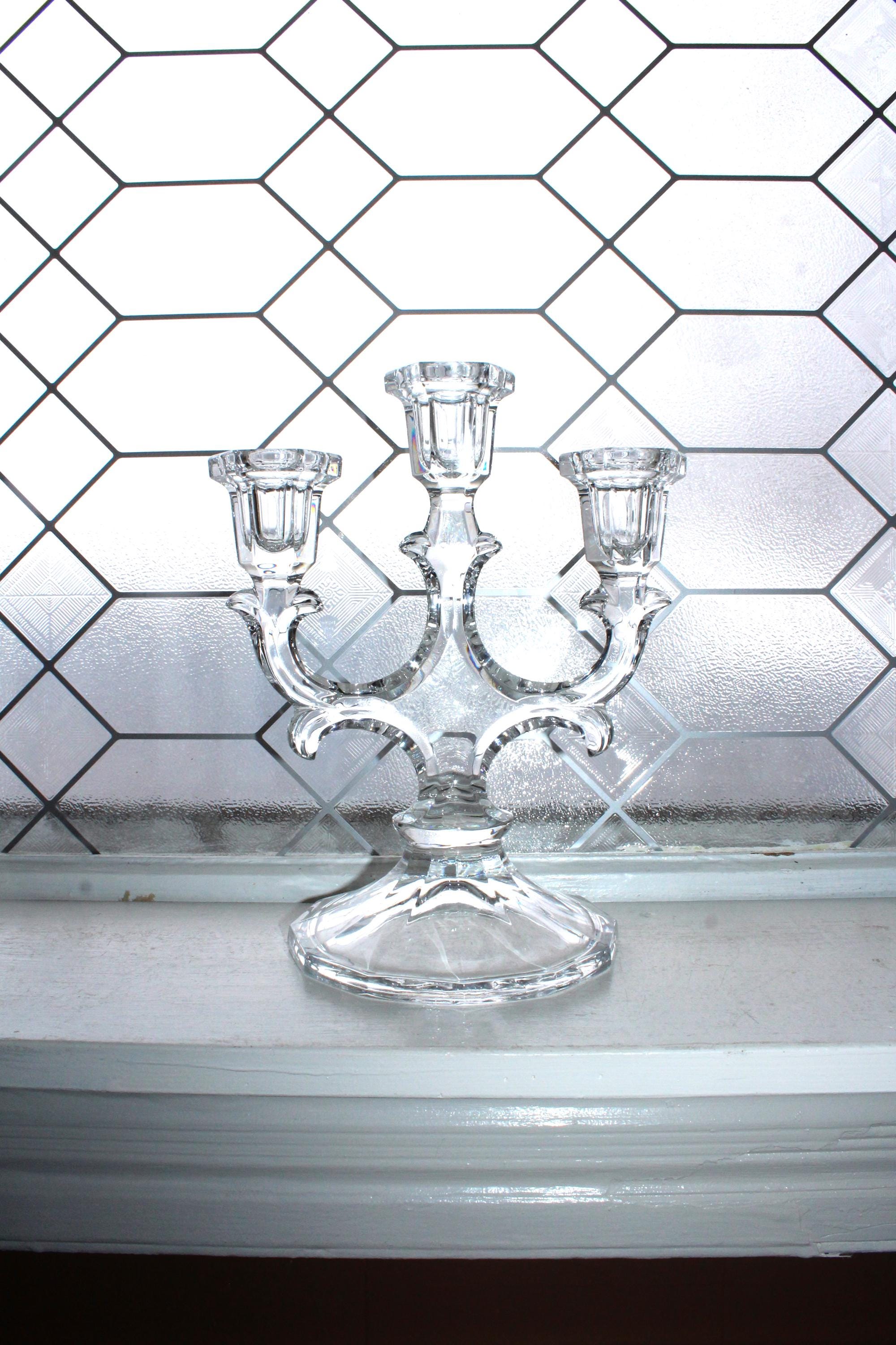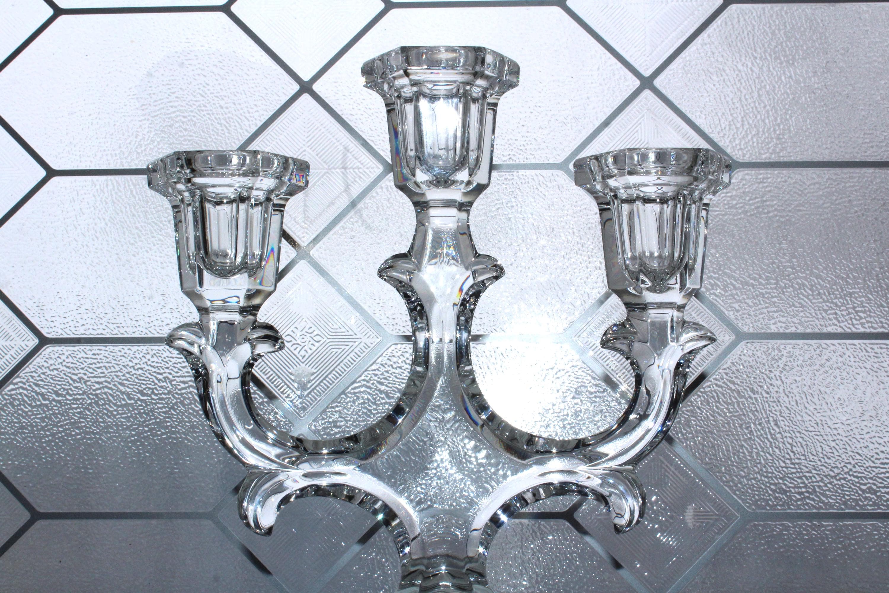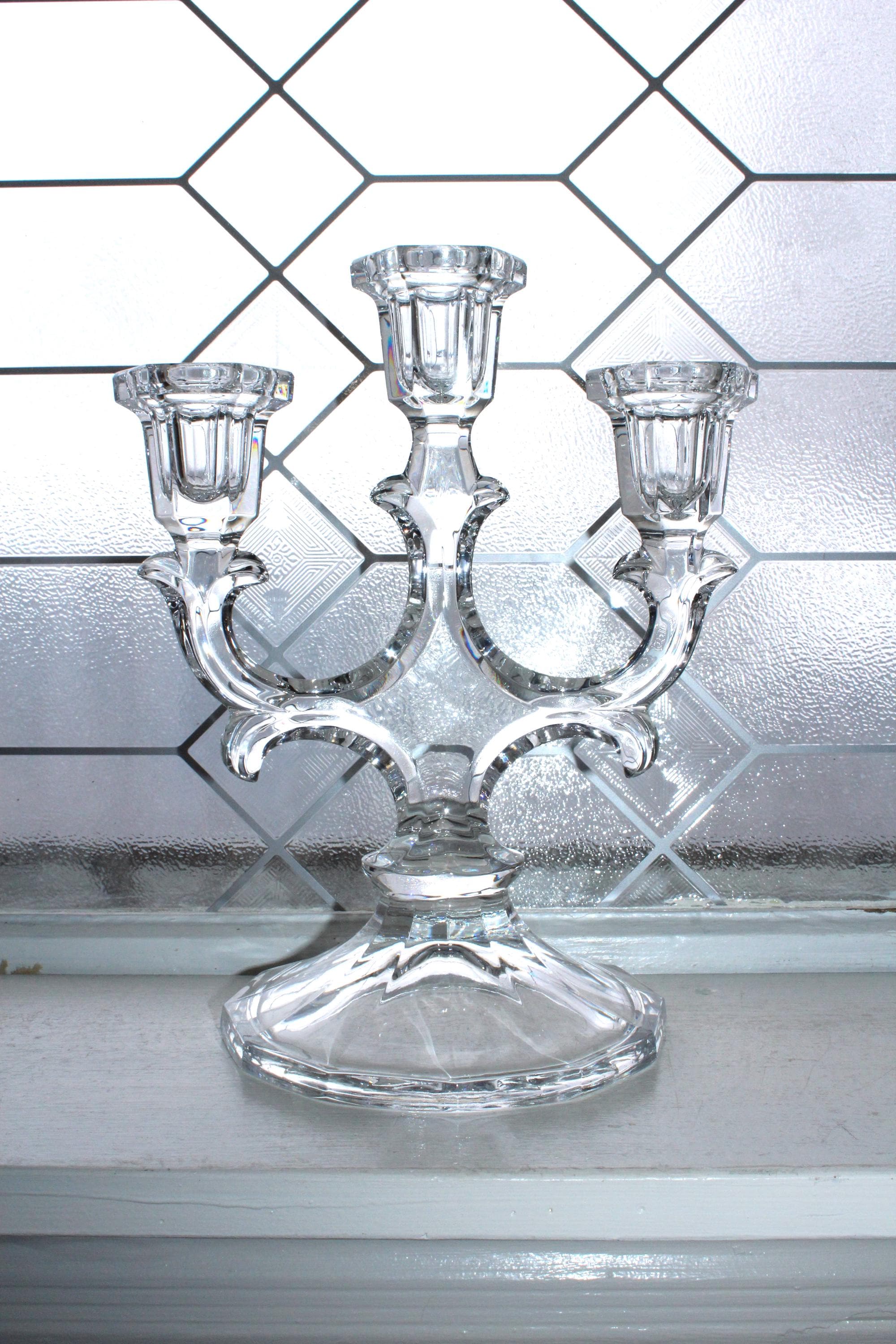 Vintage Towle Crystal 3 light candelabra candlestick holder made in Austria, in excellent condition. It measures 10" high x 8" wide, weighs just over 3 lbs. and looks fabulous. No chips or cracks, perfect for use or display. Enjoy!