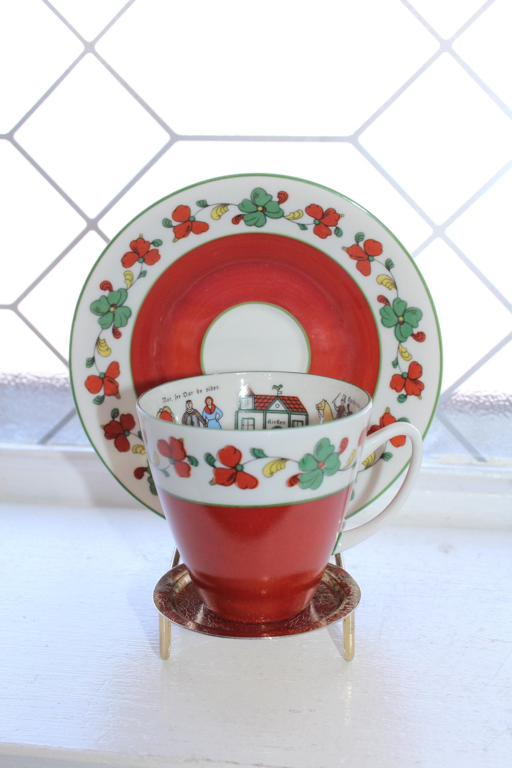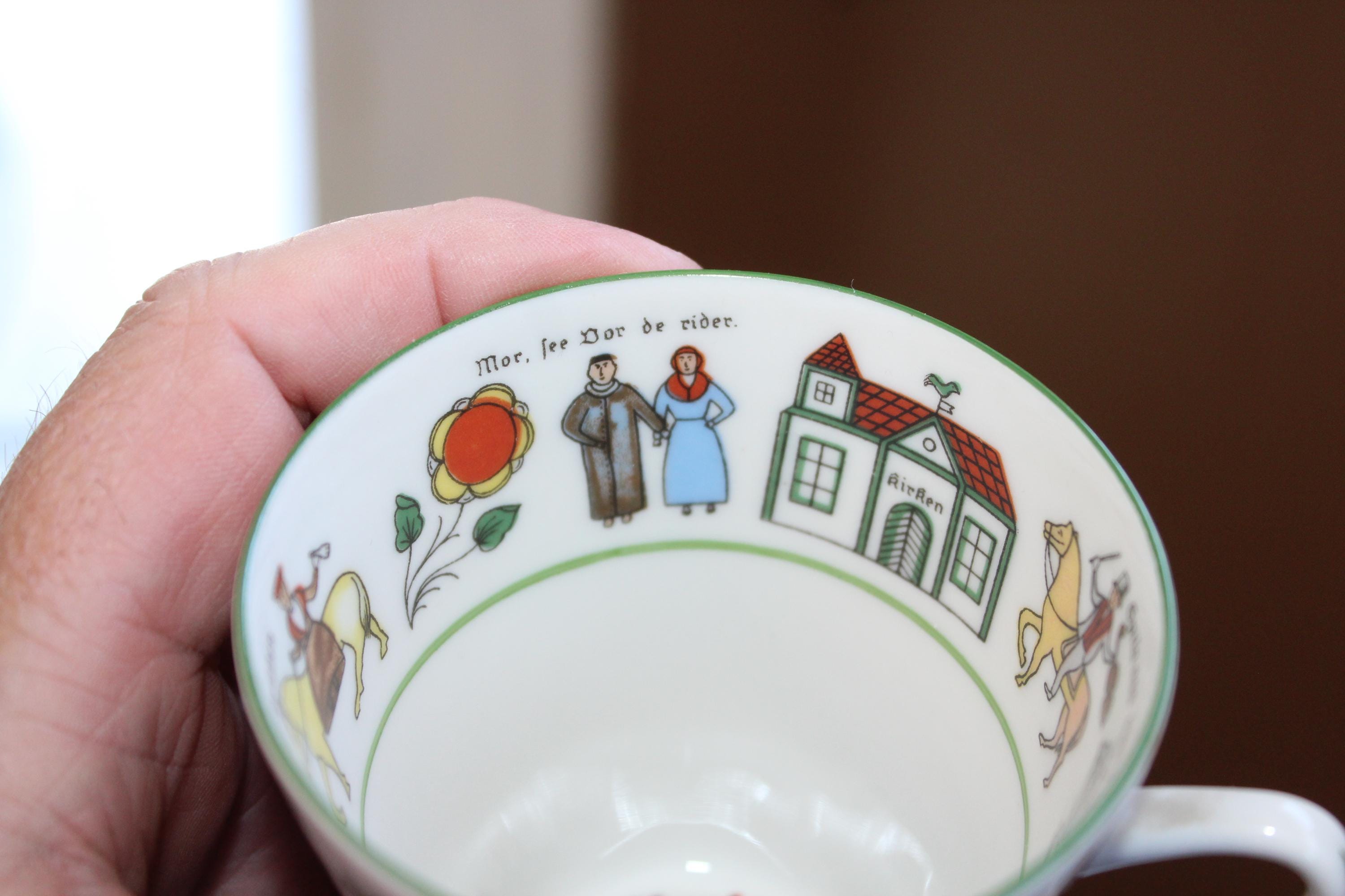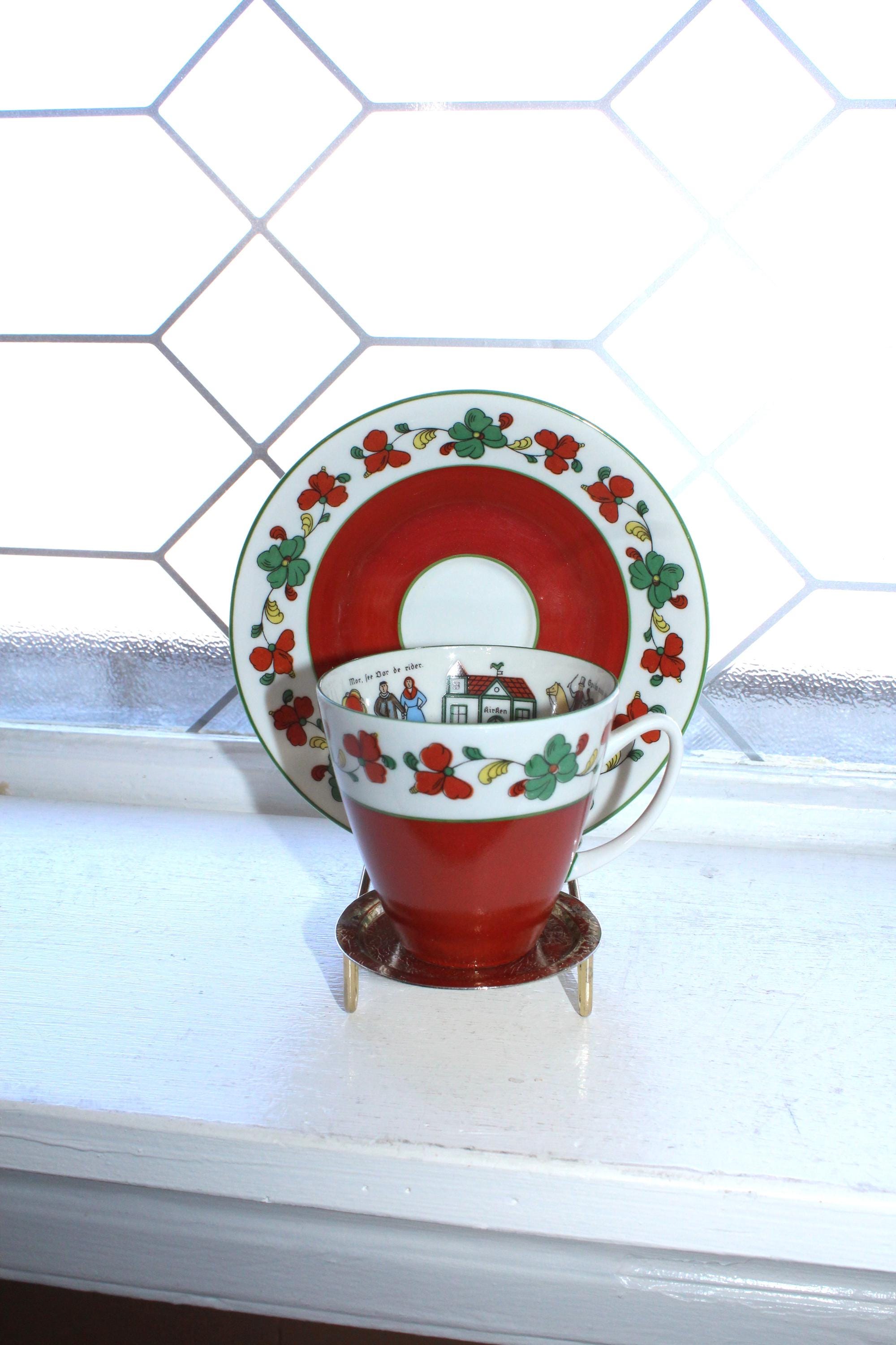 Vintage Norwegian Porsgrund Wedding Procession cup and saucer, in excellent condition. The cup measures 2 3/4" high x 3" wide and the saucer measures 5 3/8" wide. No chips or cracks, perfect for use or display. Enjoy!