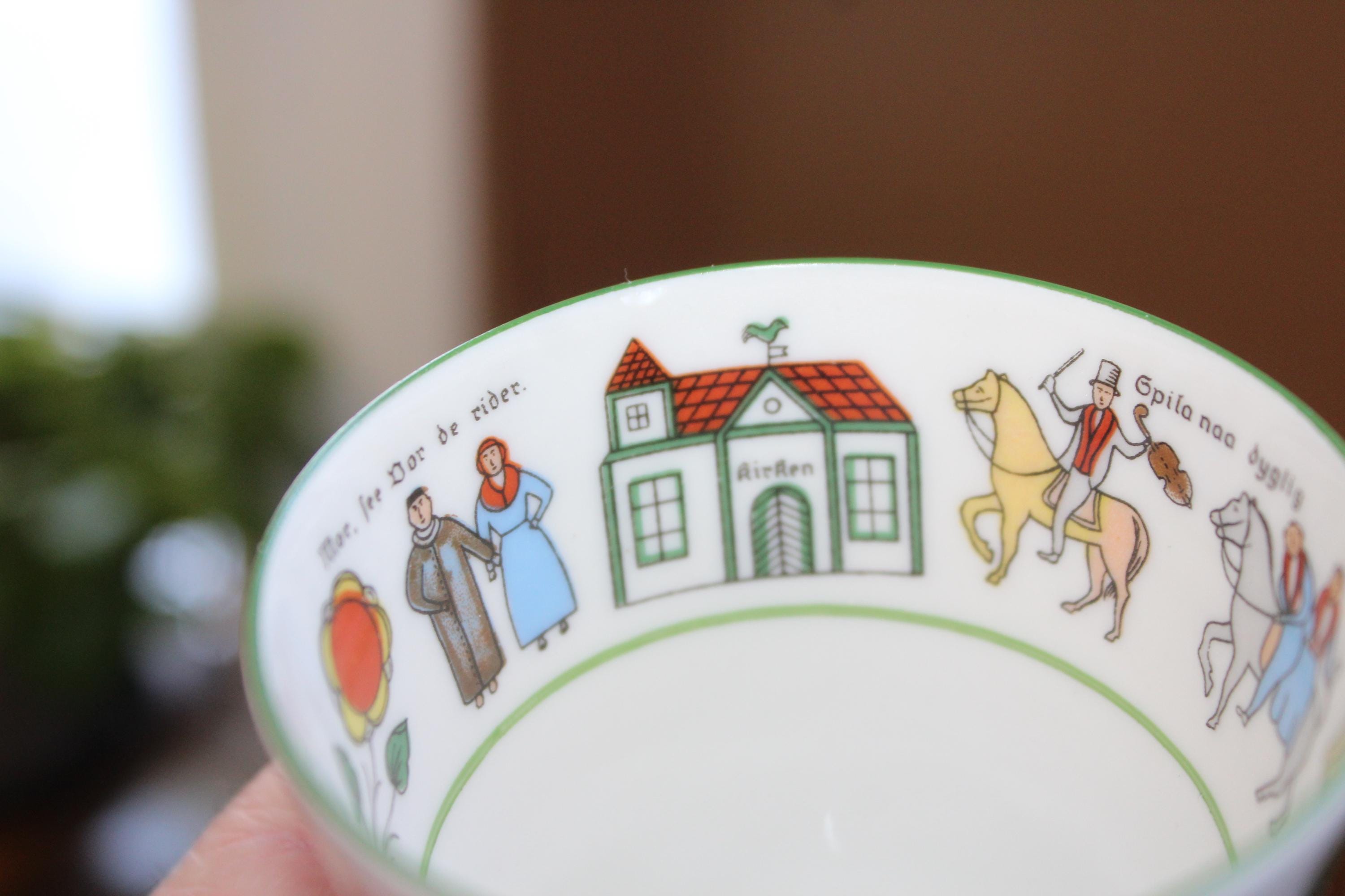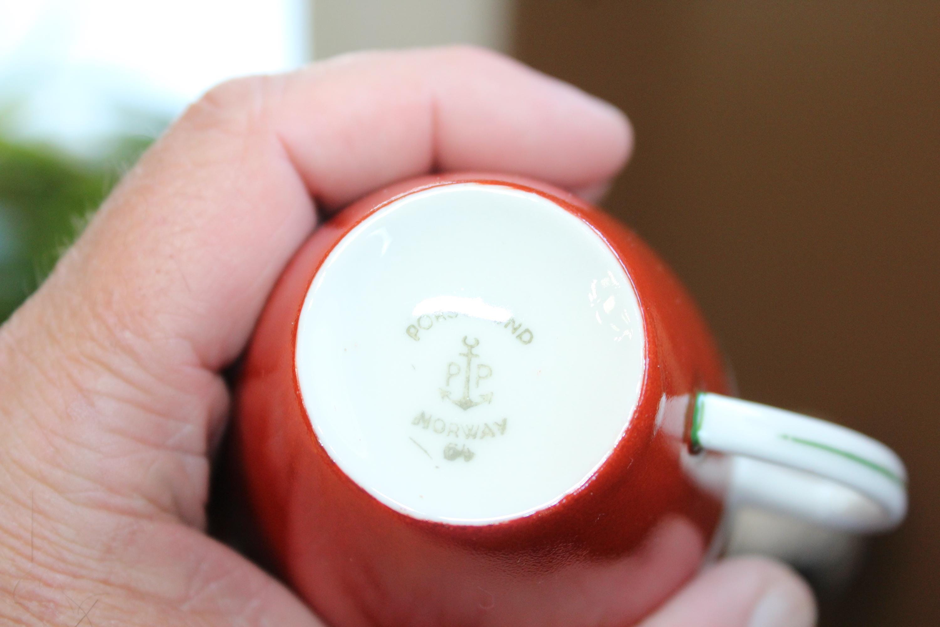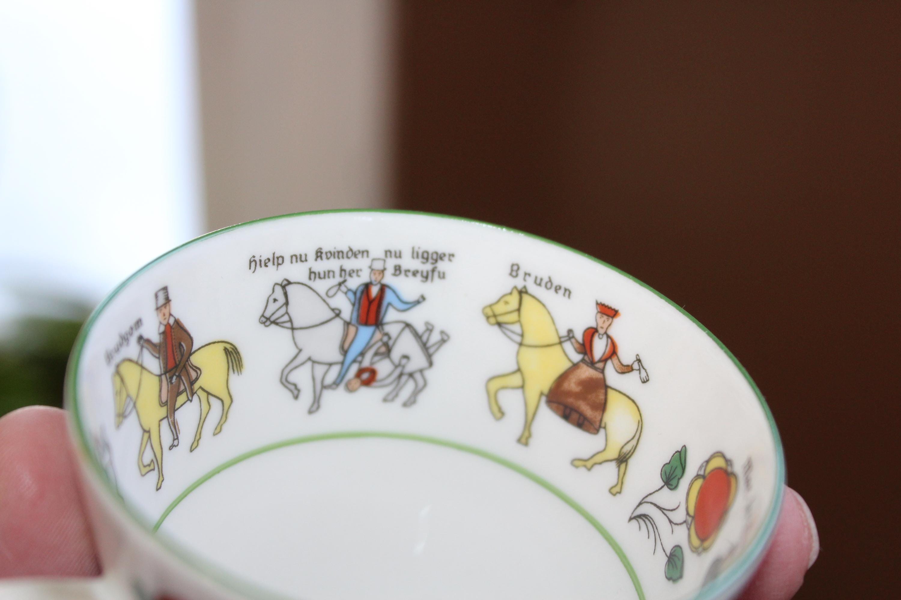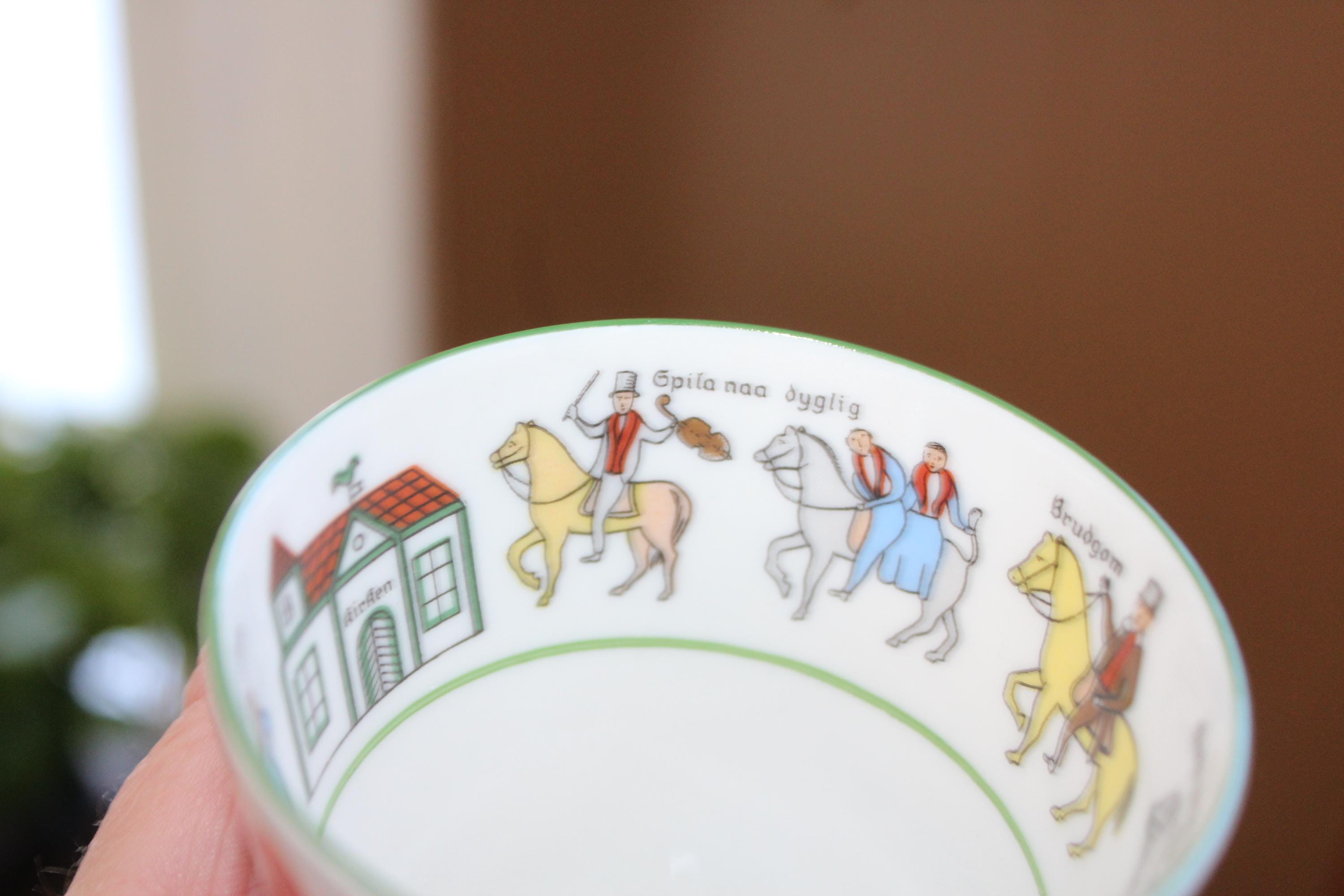 Vintage Norwegian Porsgrund Wedding Procession cup and saucer, in excellent condition. The cup measures 2 3/4" high x 3" wide and the saucer measures 5 3/8" wide. No chips or cracks, perfect for use or display. Enjoy!