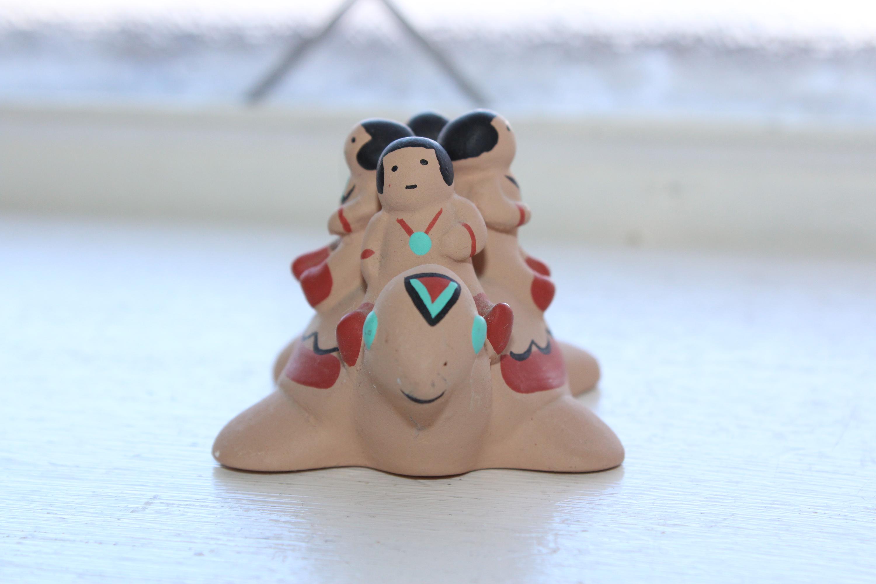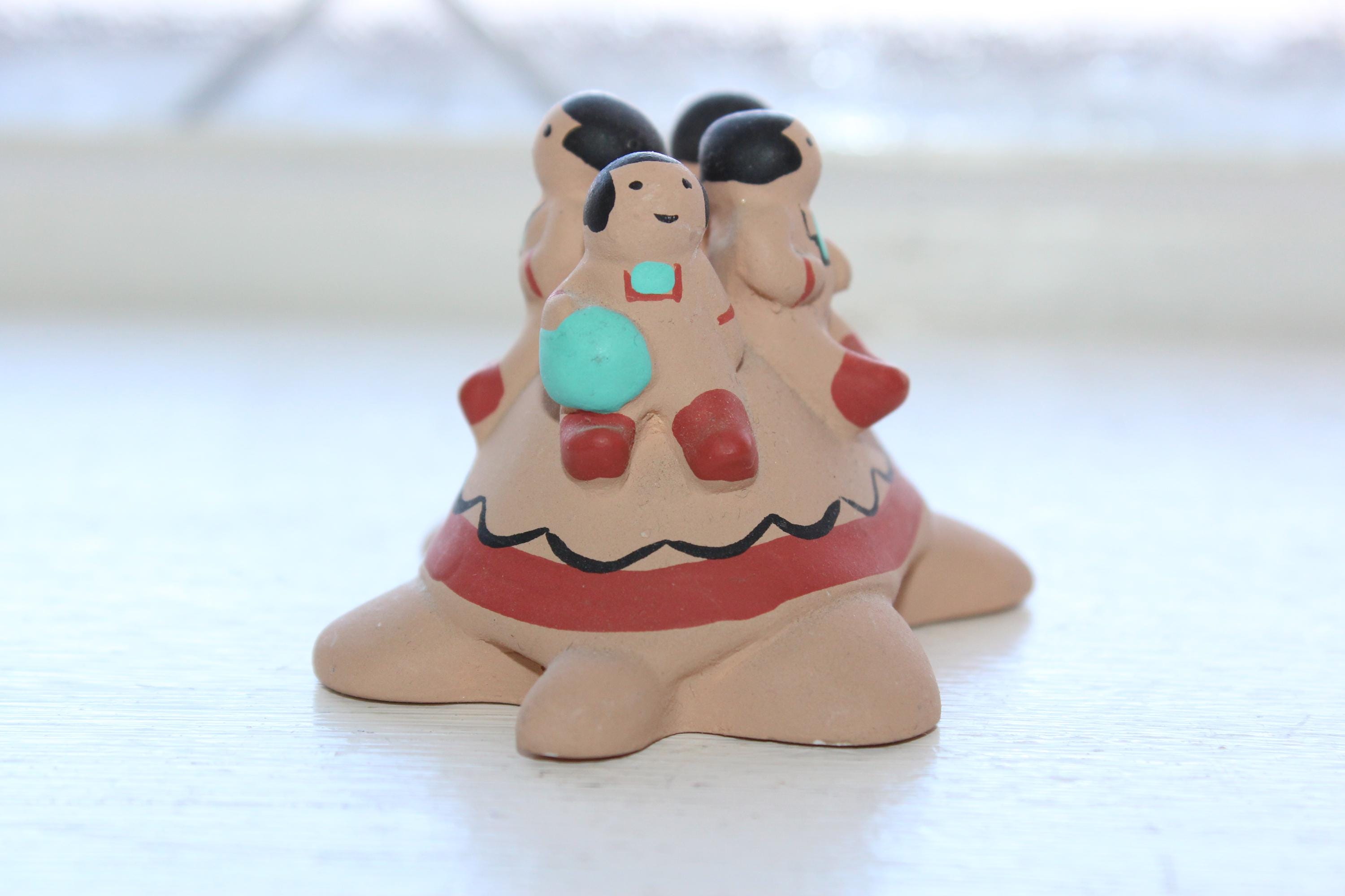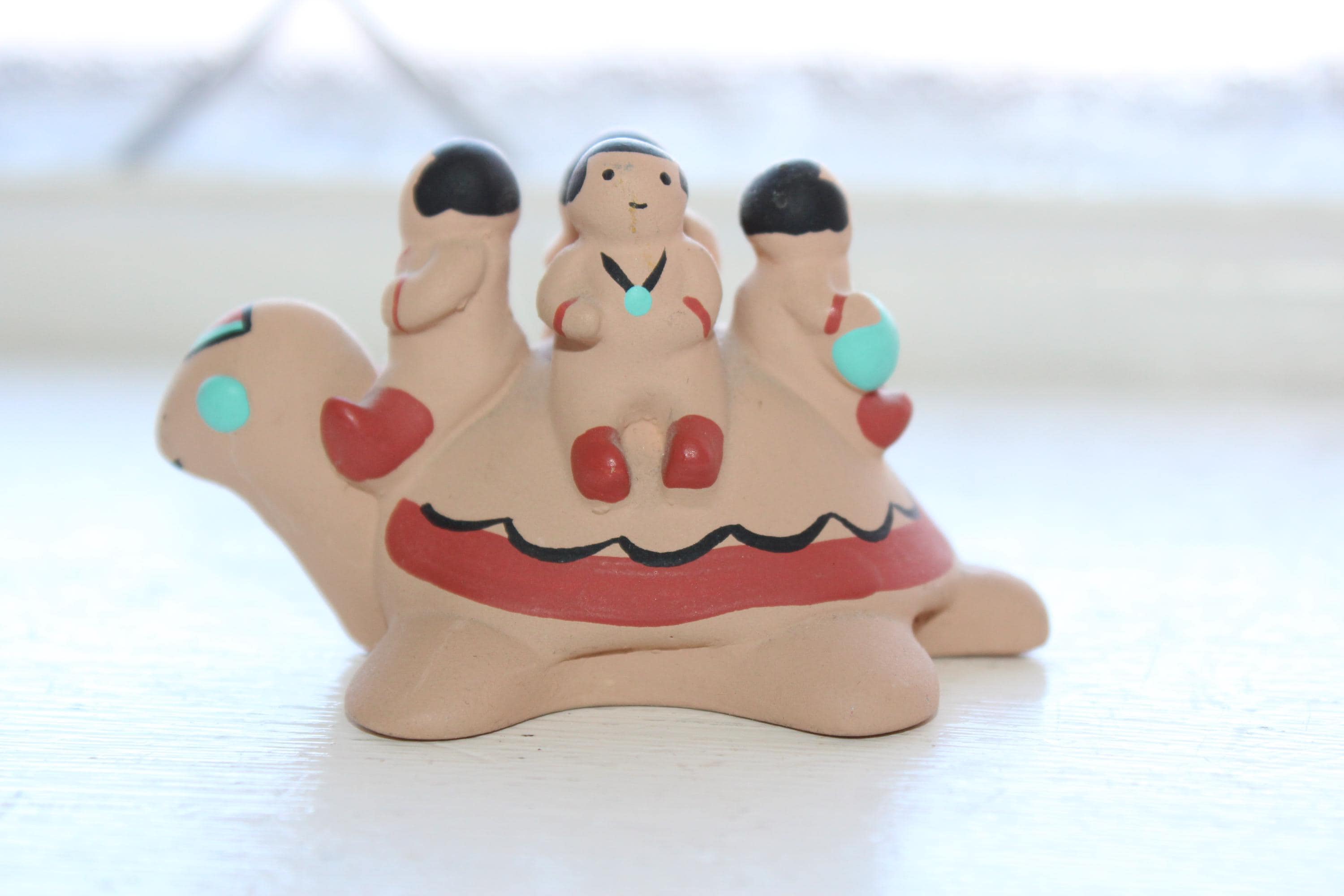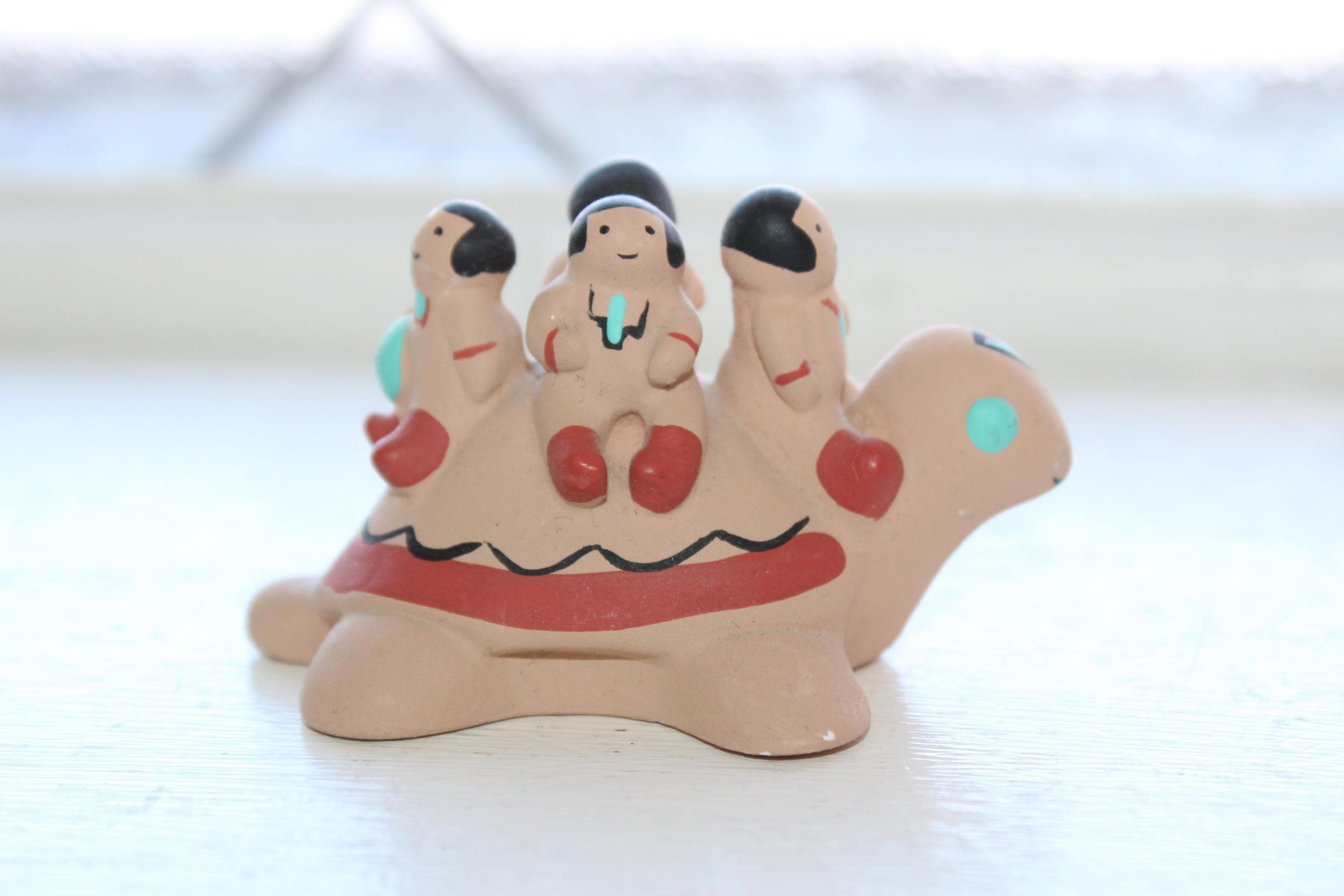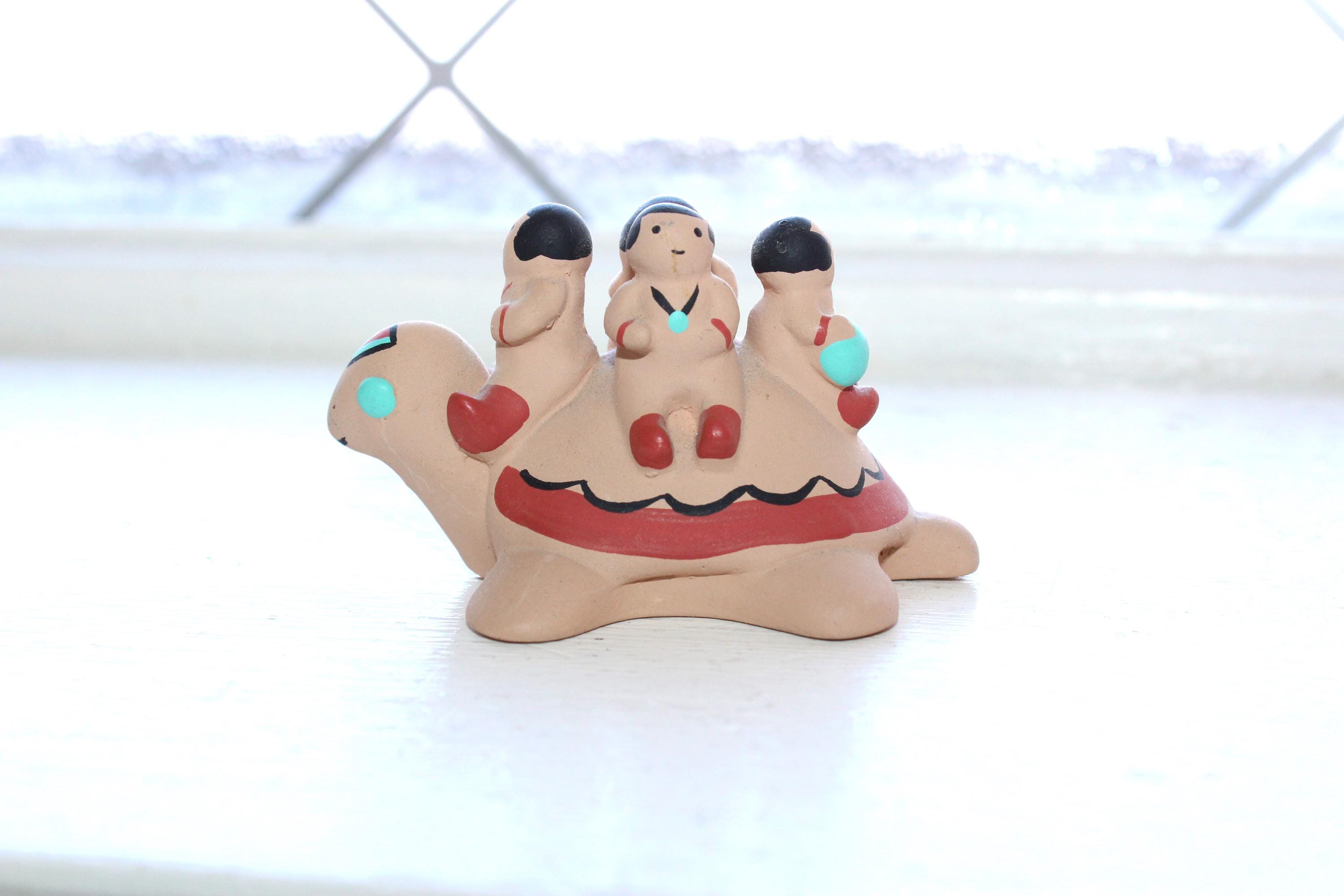 Storyteller Pottery Cleo Teissedre Navajo 4 Children on a Turtle miniature figurine, in good condition. It measures 2 3/4" long x 1 5/8" high. No chips or cracks, minor paint wear. Enjoy!