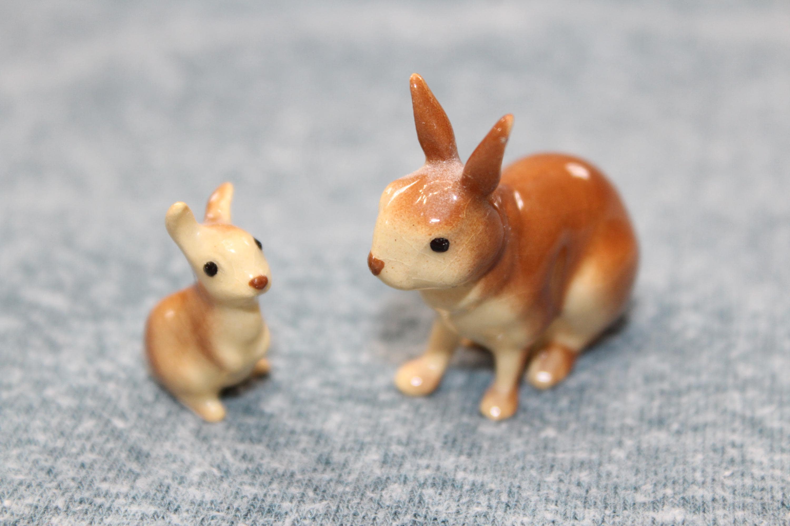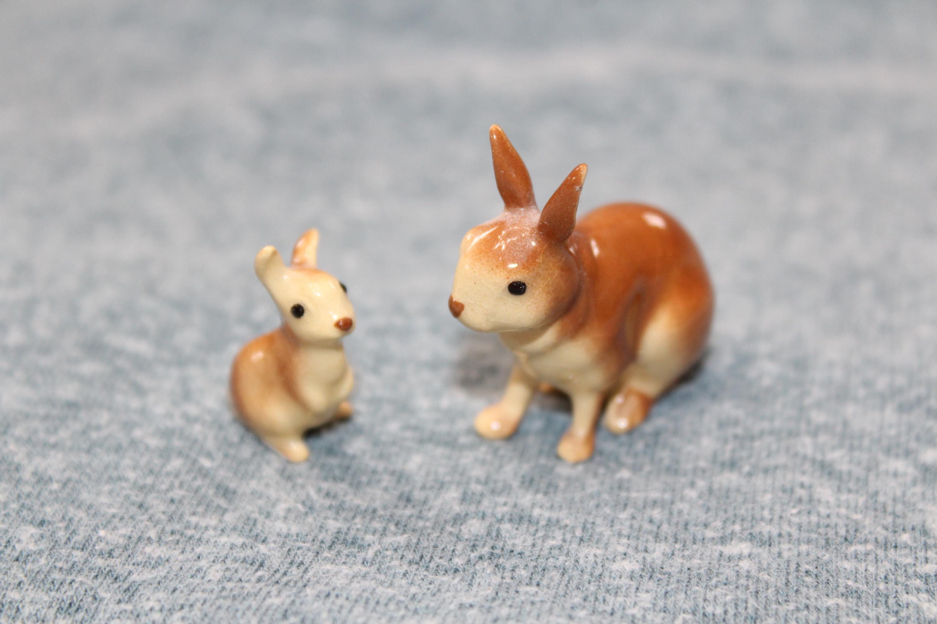 This is a vintage miniature Hagen Renaker pair of rabbits figurines. They measure 1 1/2" high. No chips. Enjoy!