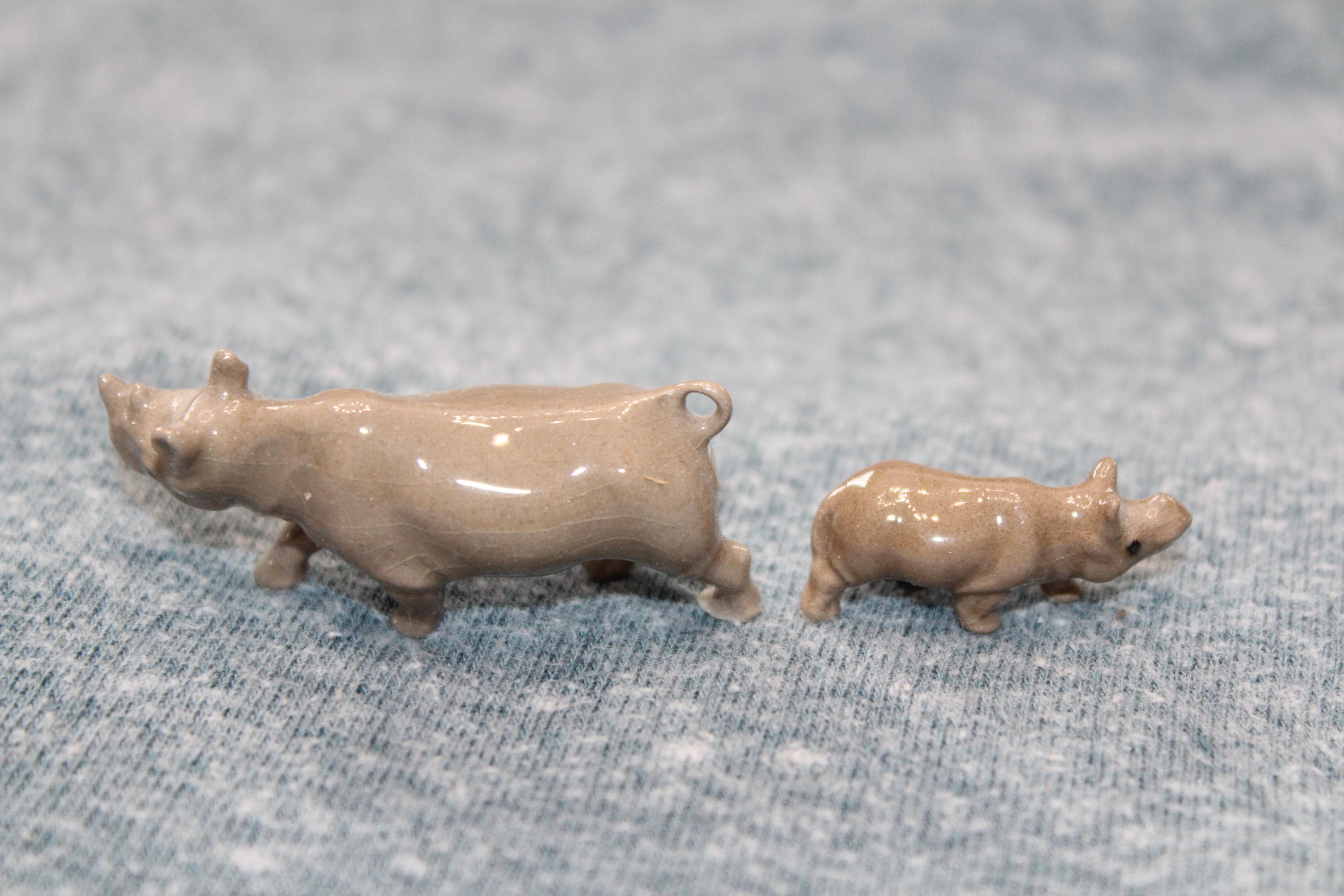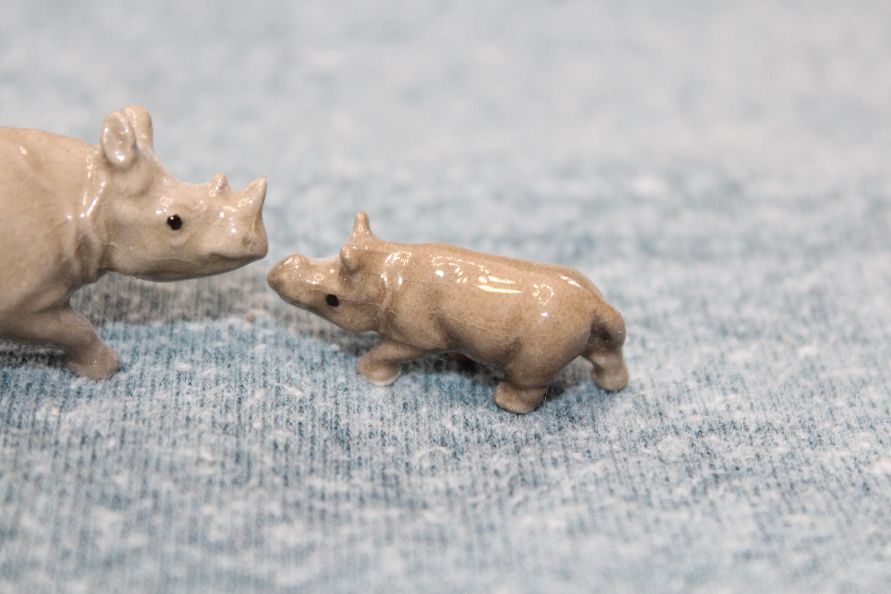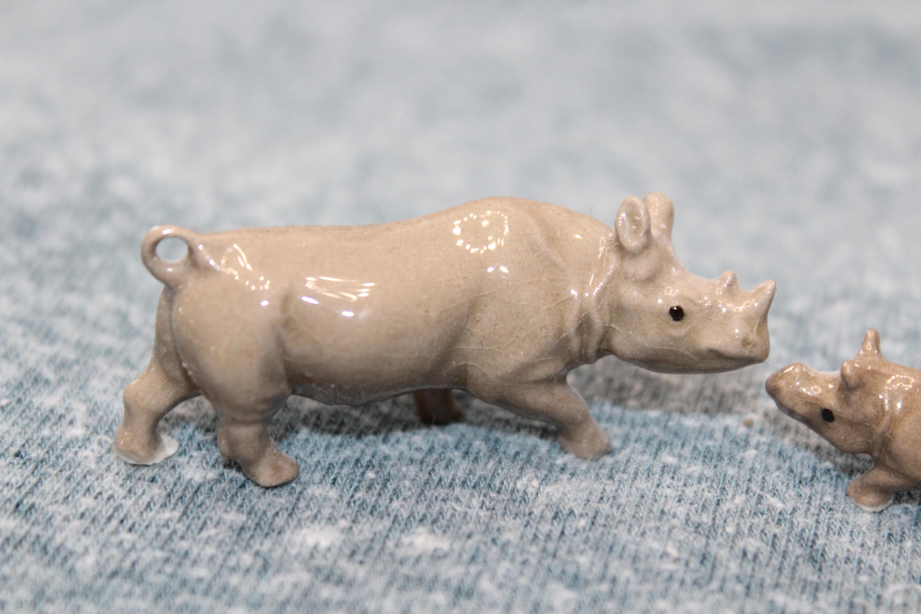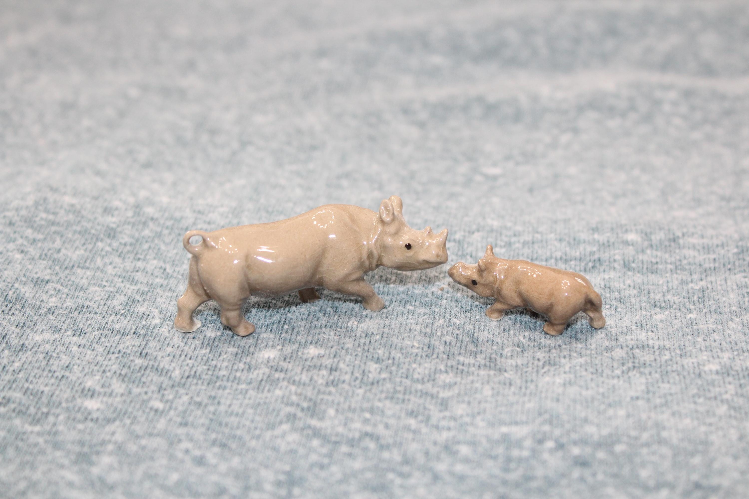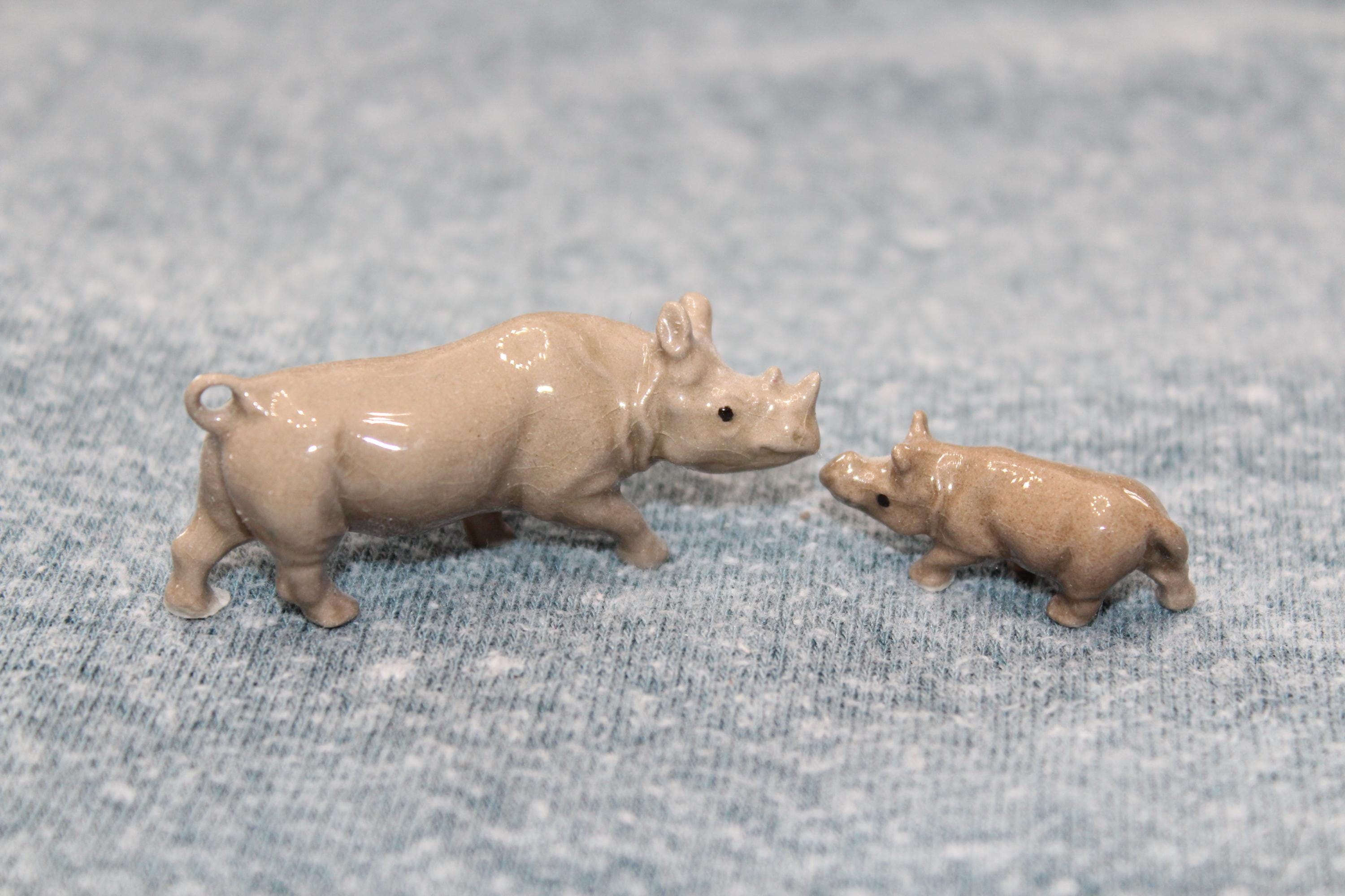 This is a vintage miniature Hagen Renaker pair of mama and baby rhinoceros figurines. They measure 7/8" high. No chips. Enjoy!