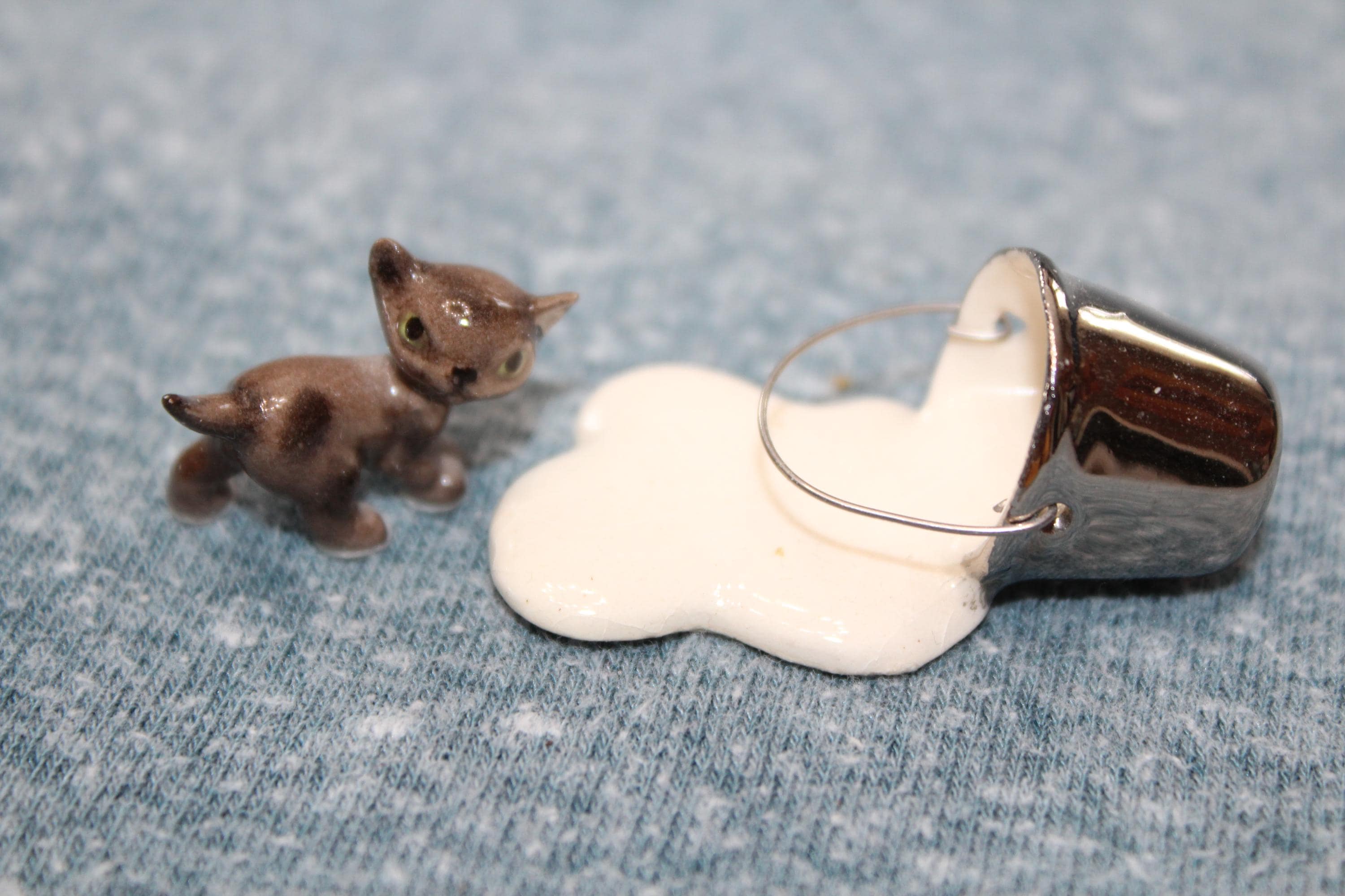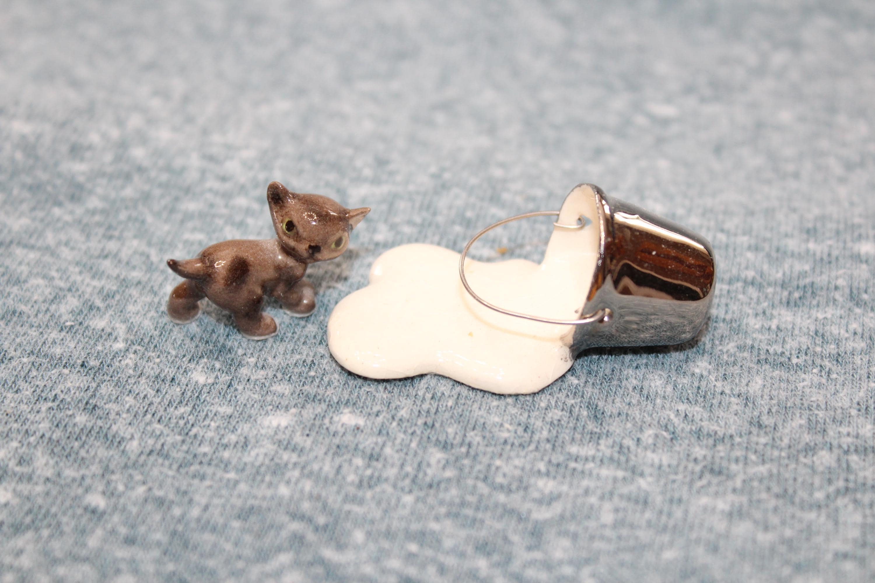 This is a vintage miniature Hagen Renaker kitten and spilled milk pail figurines. It measures 7/8" high. No chips. Enjoy!