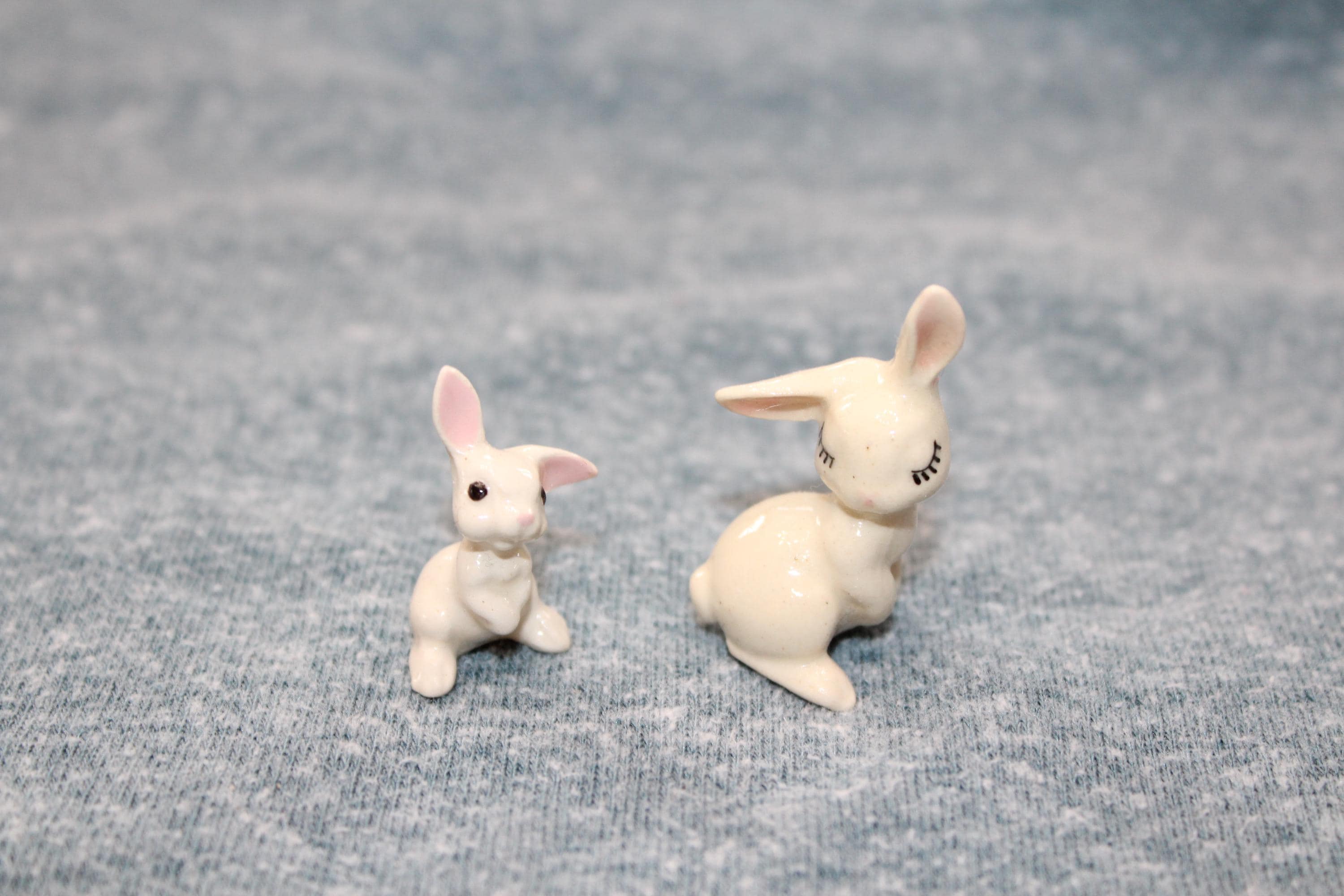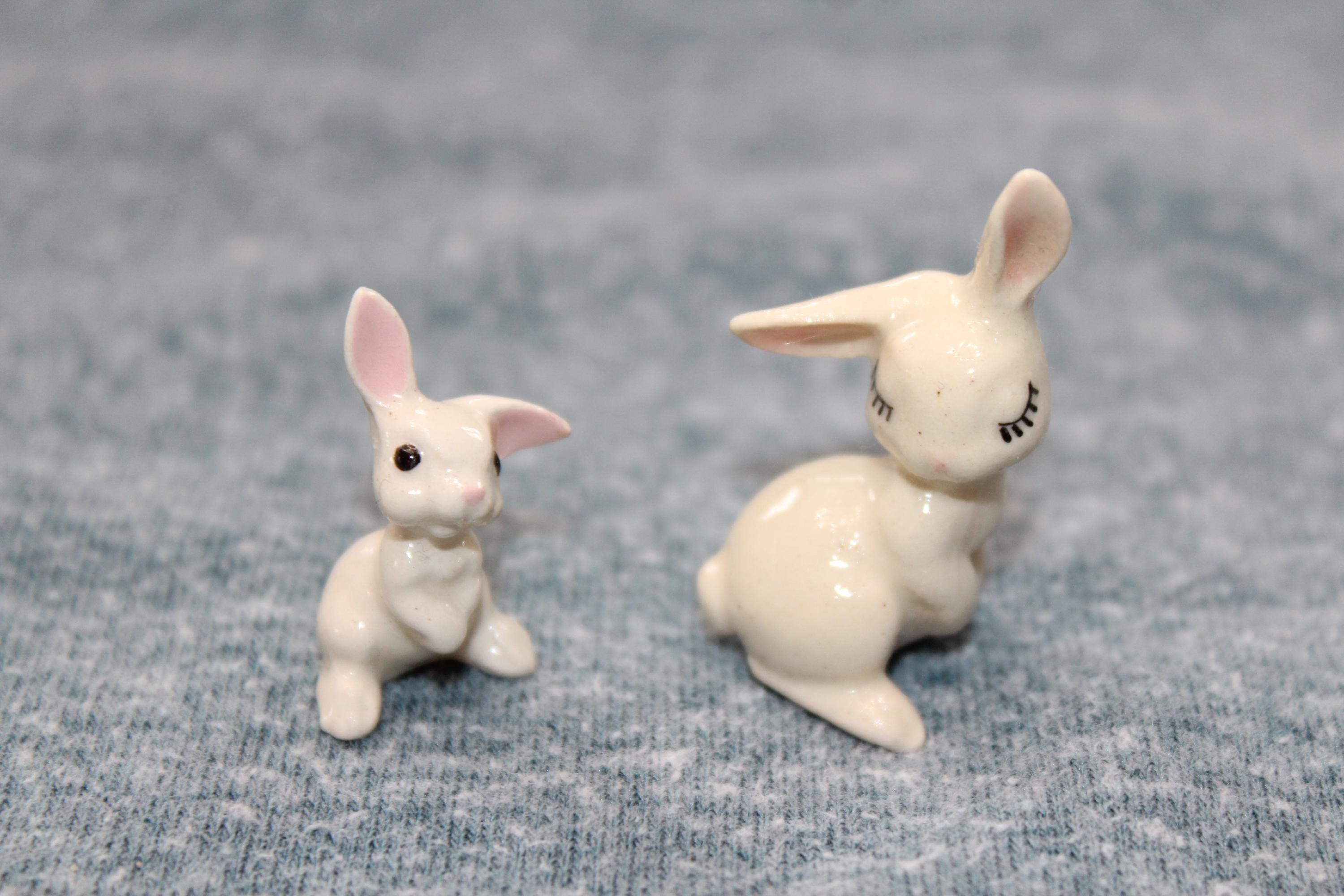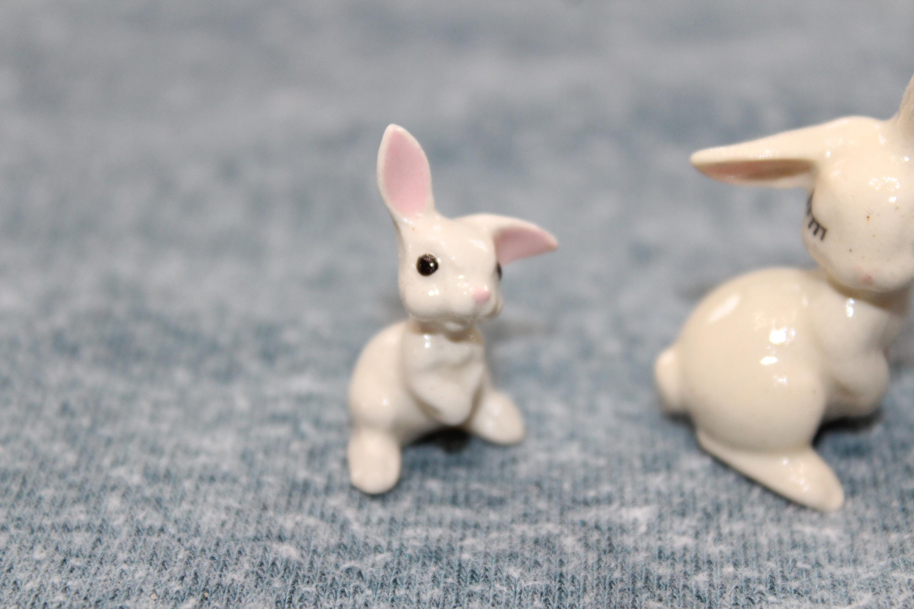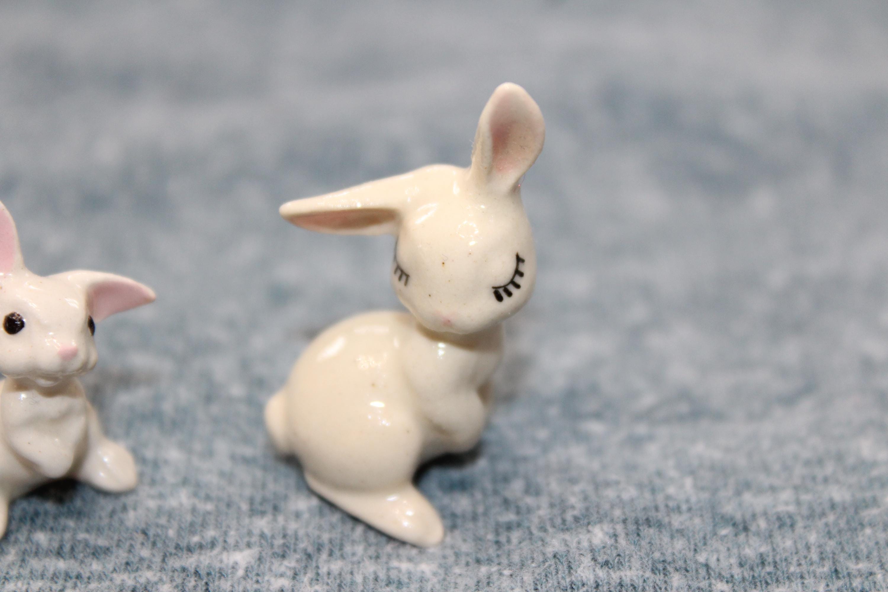This is a vintage miniature Hagen Renaker 2 white rabbit figurines. They measure 1 1/2" high. No chips. Enjoy!