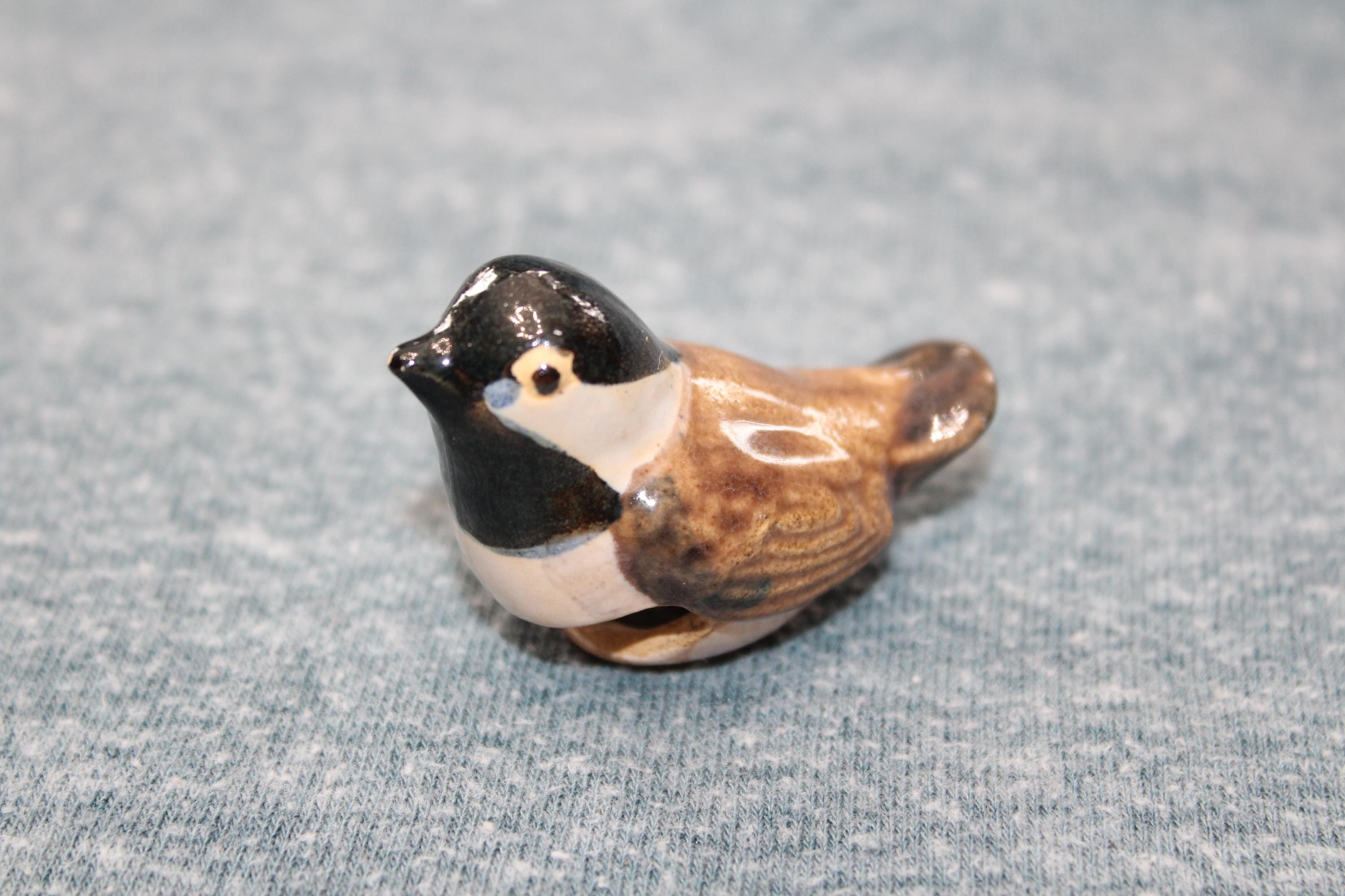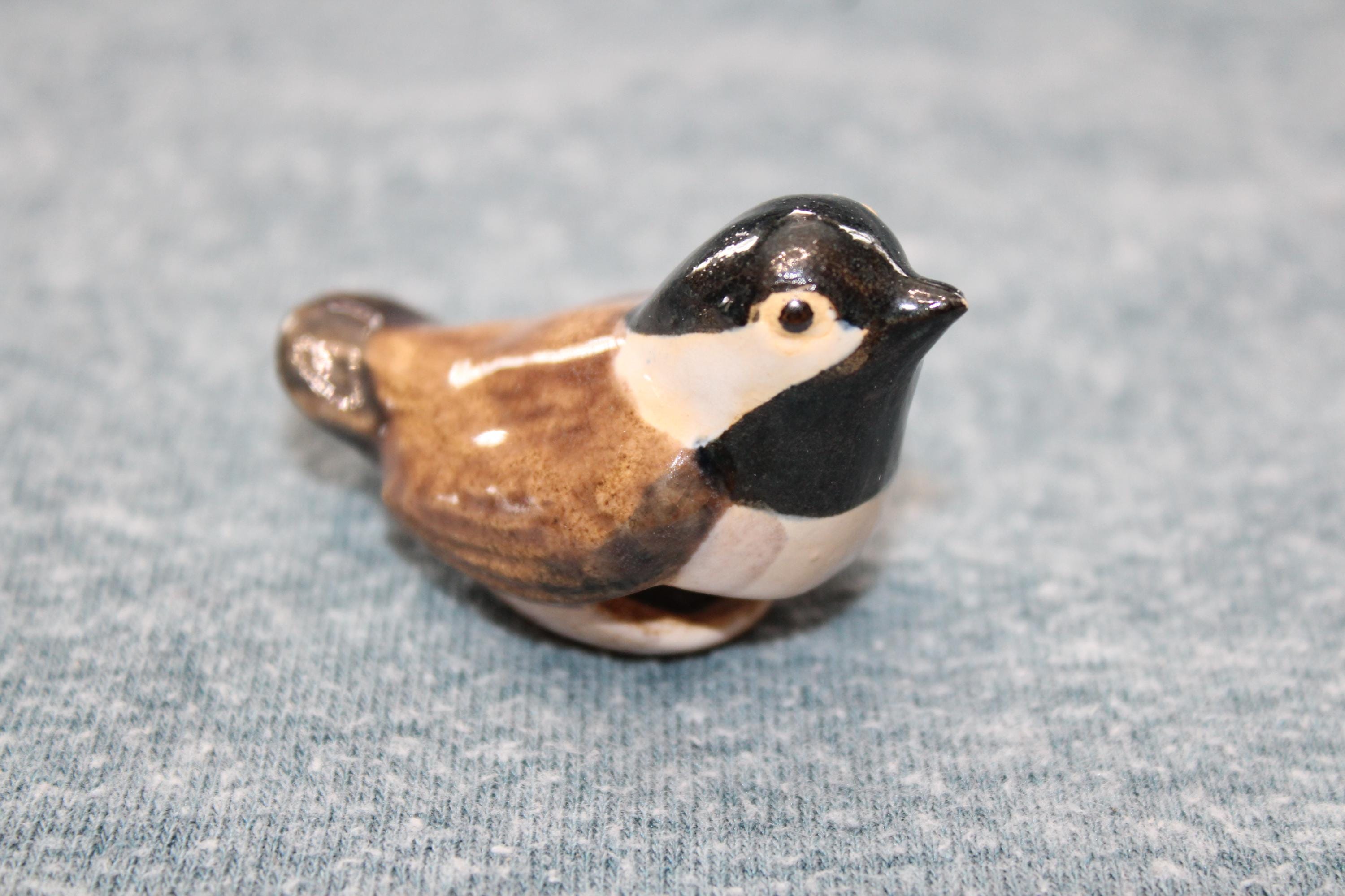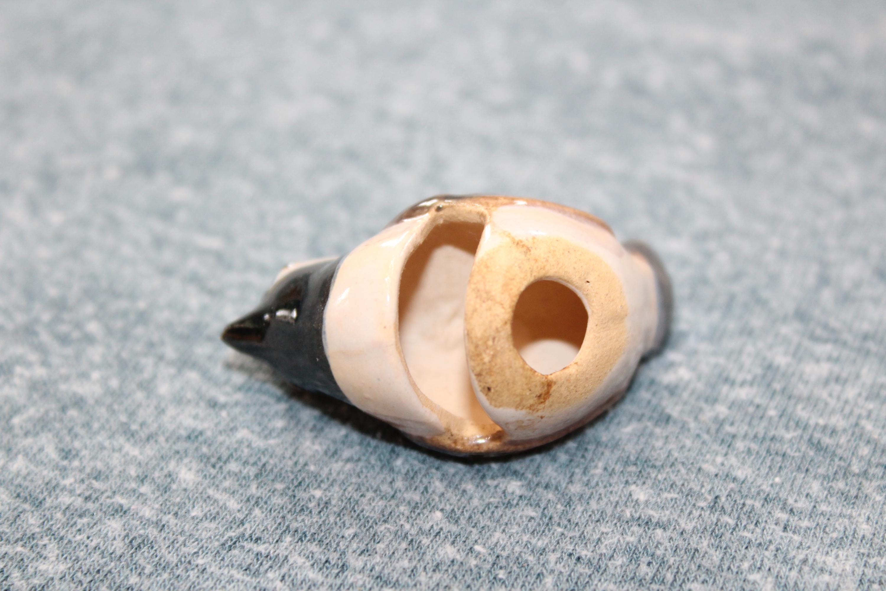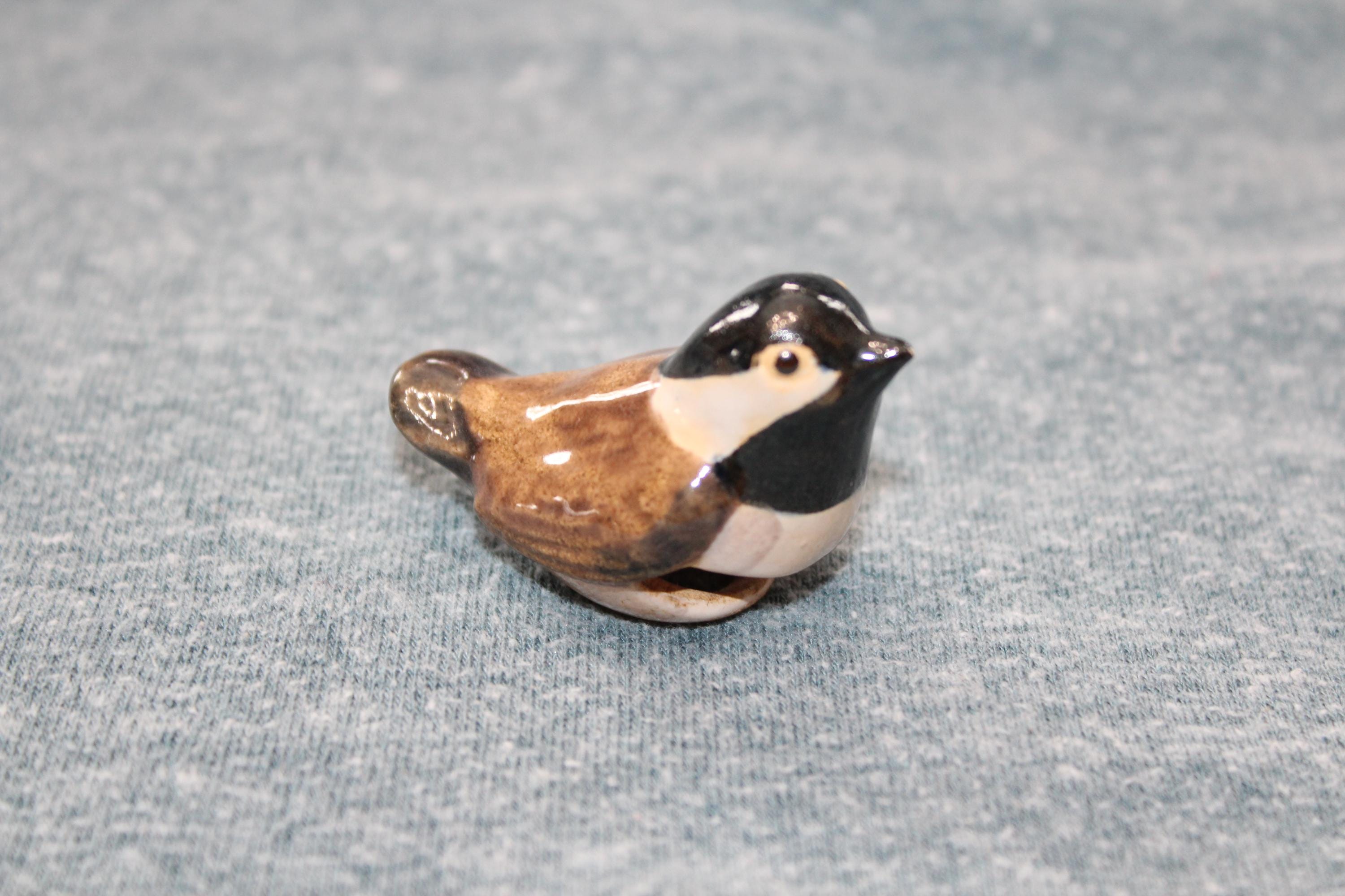 Vintage Rosemeade Pottery of Wahpeton, North Dakota chickadee bird cup sitter, in excellent condition. It was designed to sit on the edge of a cup. It measures 2 1/4" wide x 1 3/8" high and has no chips or cracks, perfect for display in a Rosemeade collection. Enjoy!