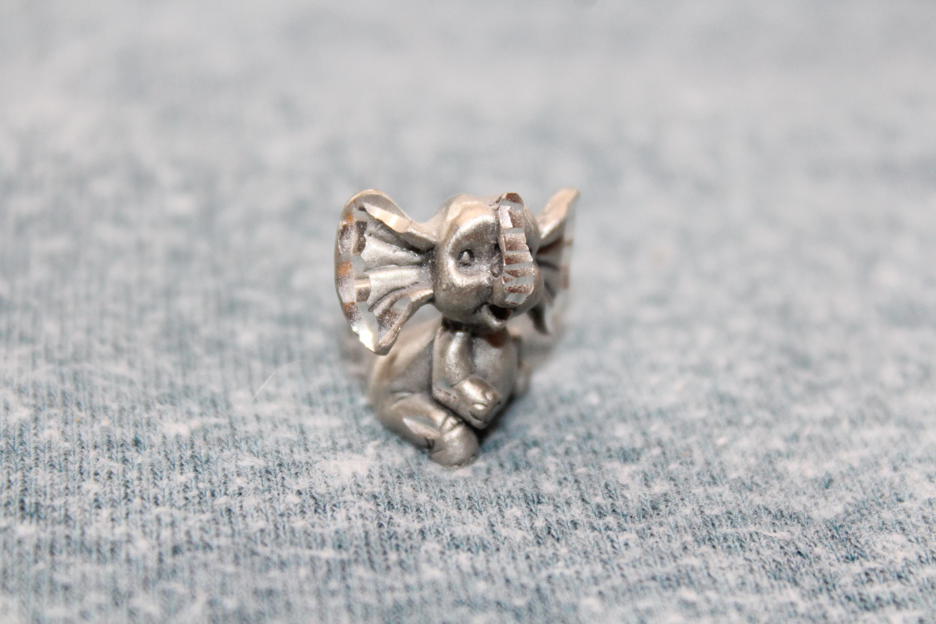 Vintage 1980s collectible Spoontiques pewter baby elephant figurine, in excellent condition. It measures 3/4" high. Enjoy!