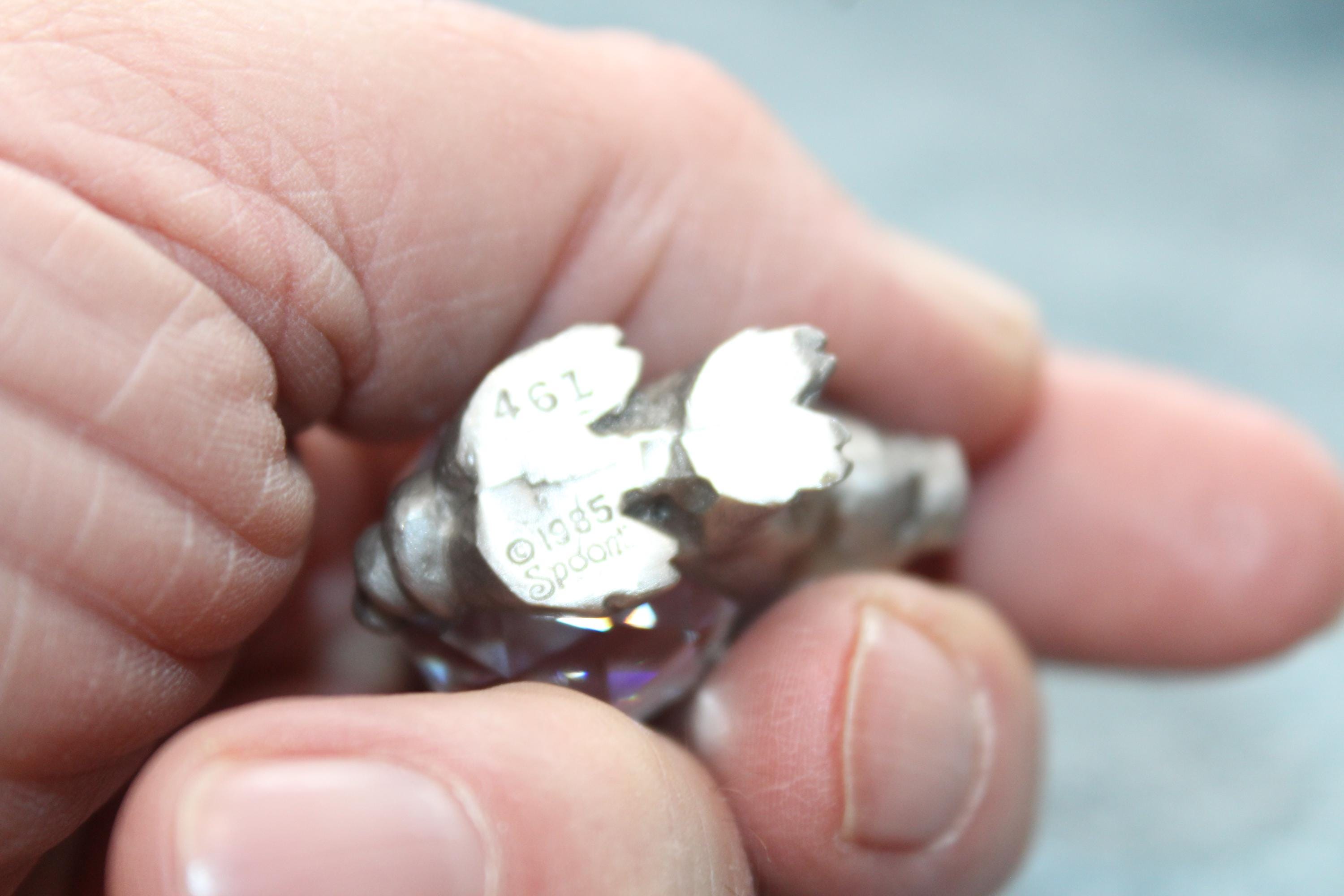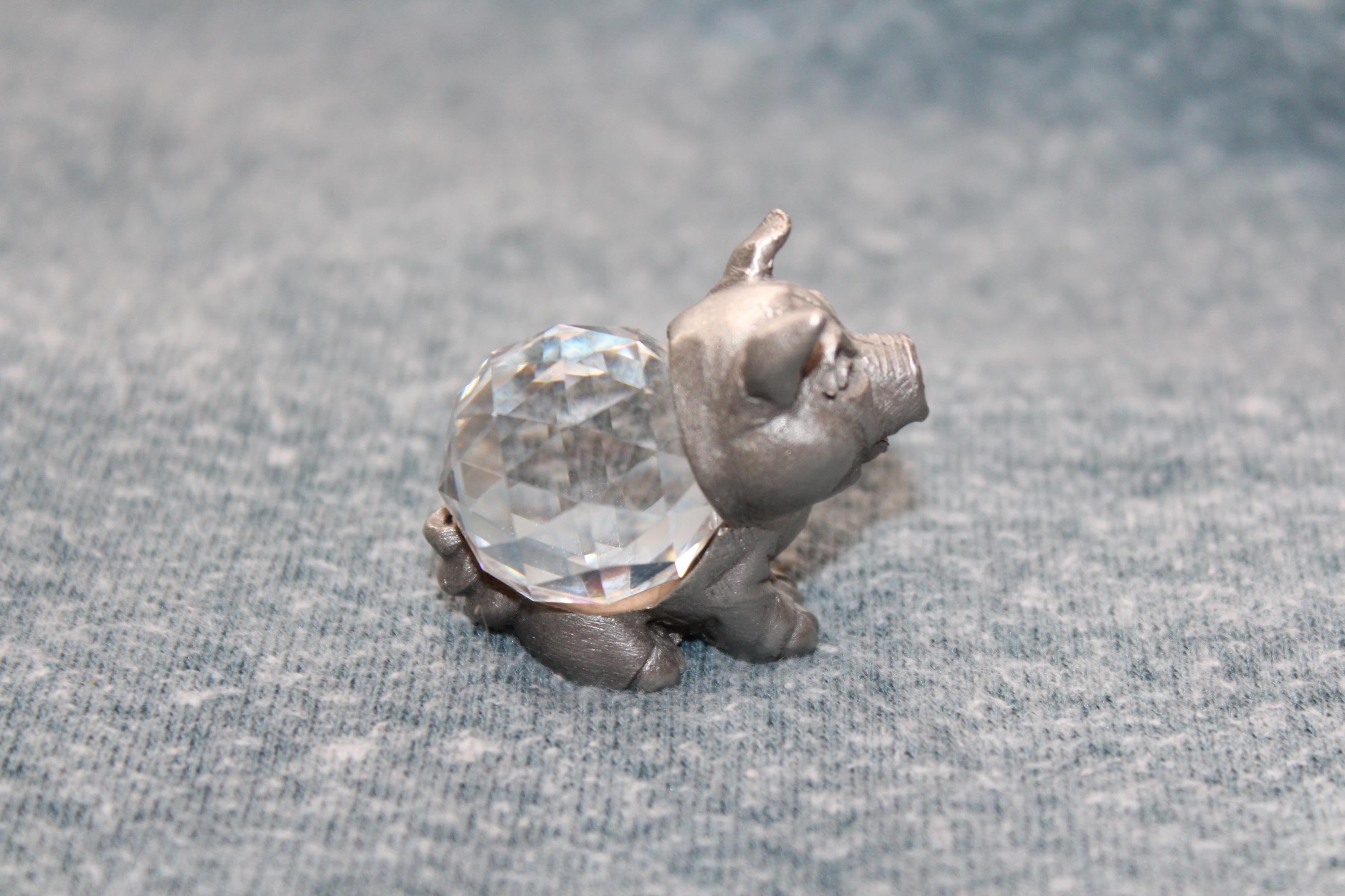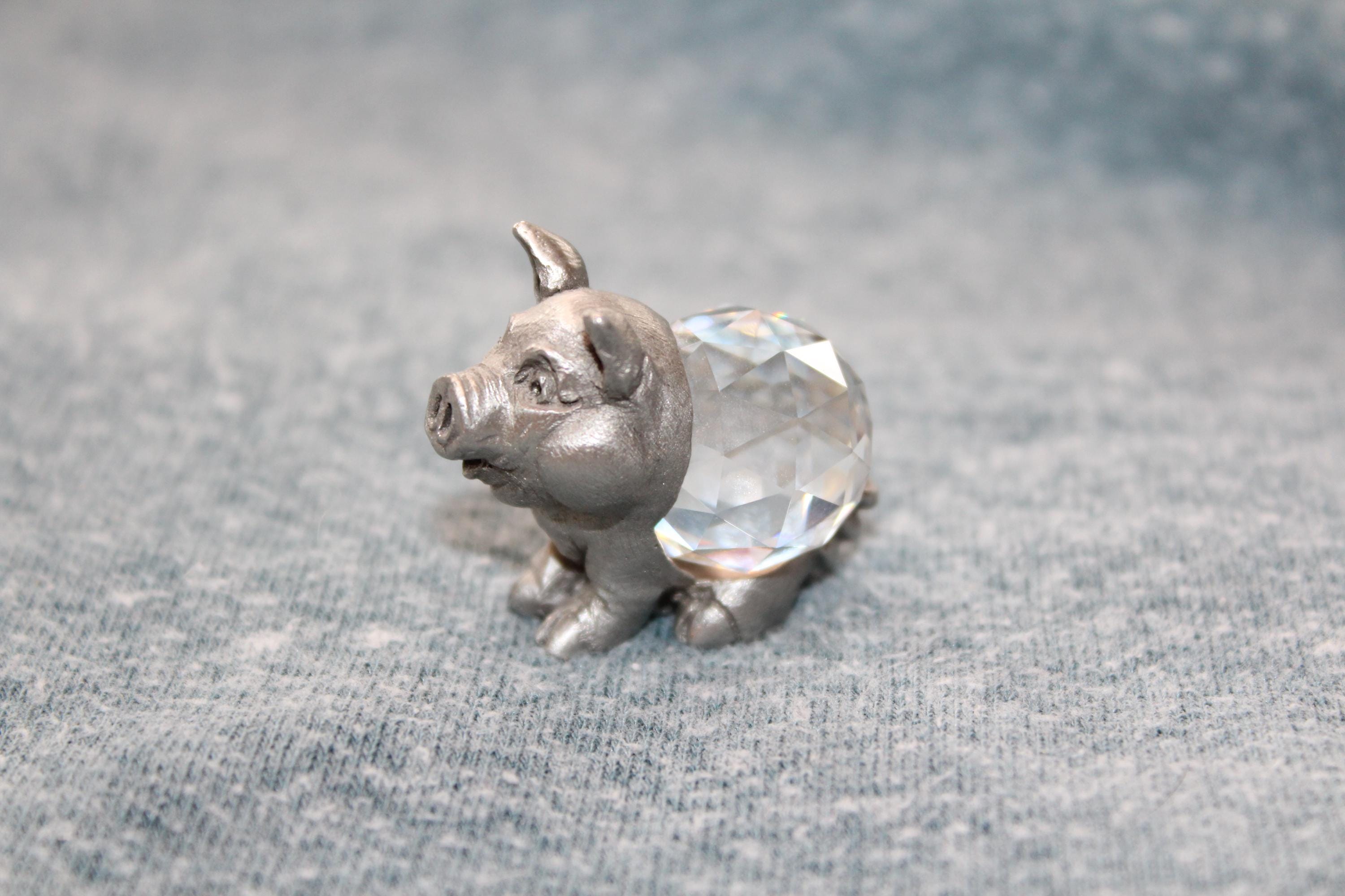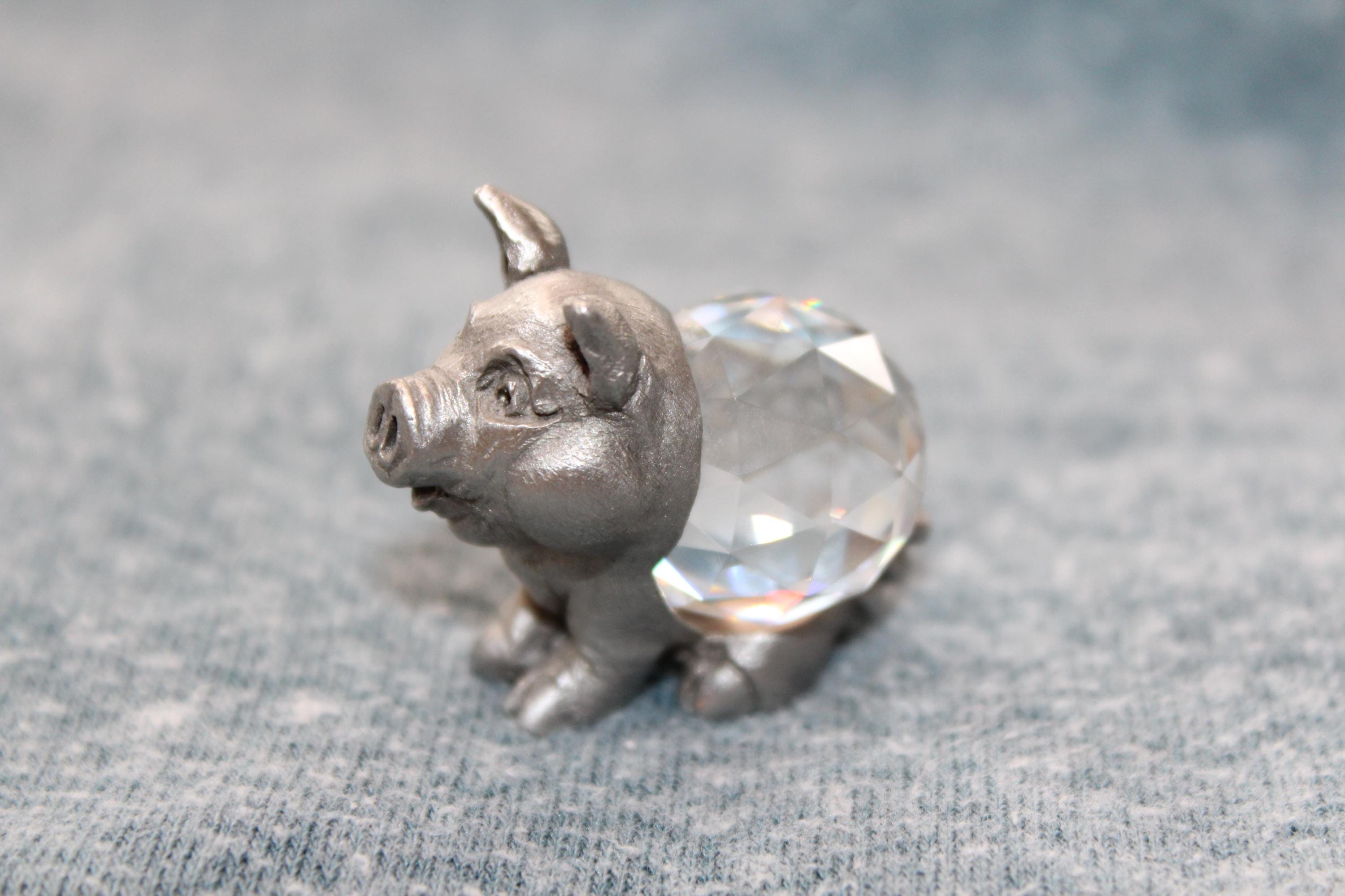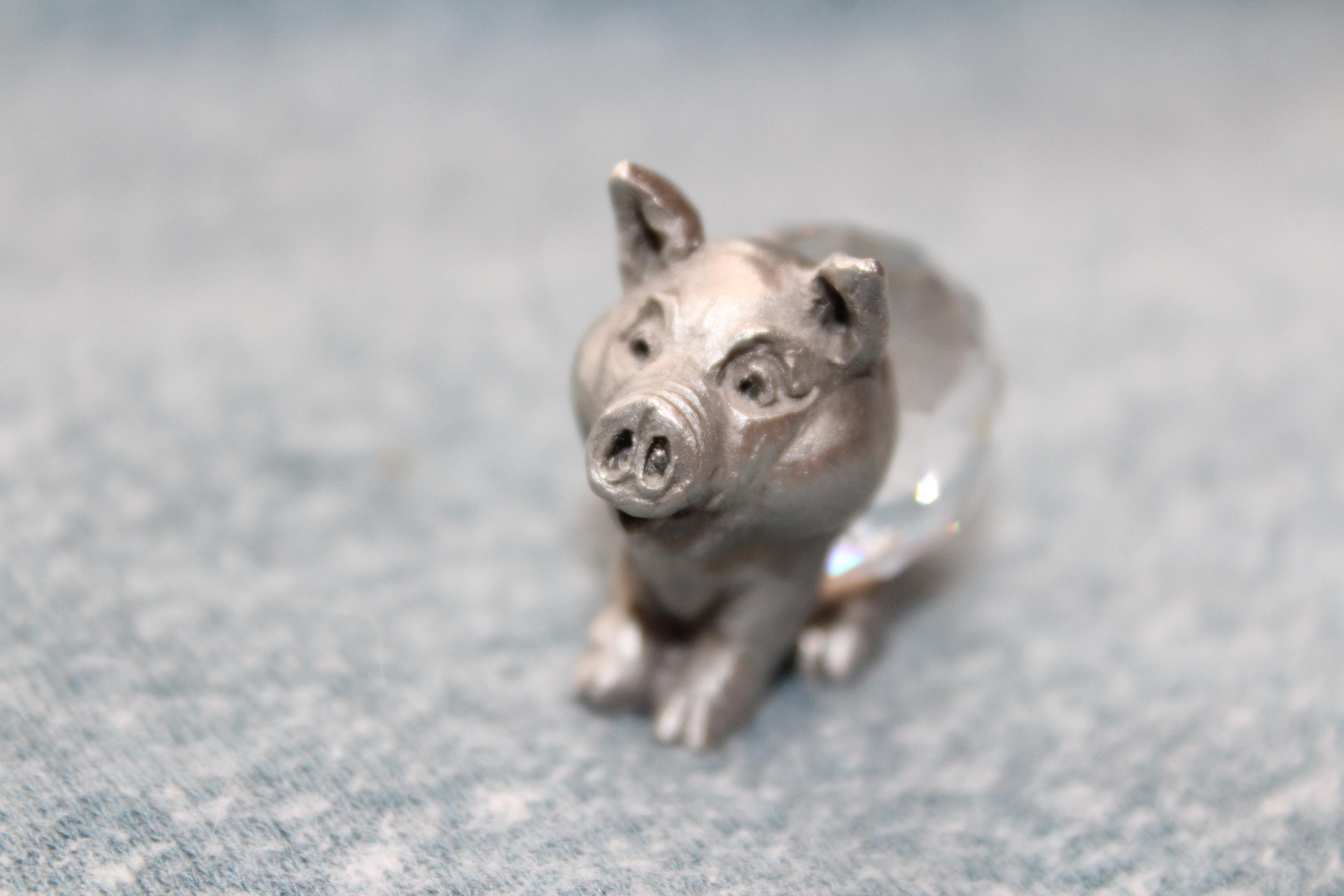 Vintage 1985 collectible Spoontiques pewter pig figurine featuring a faceted crystal body, in excellent condition. It measures 1 1/4" high. Enjoy!