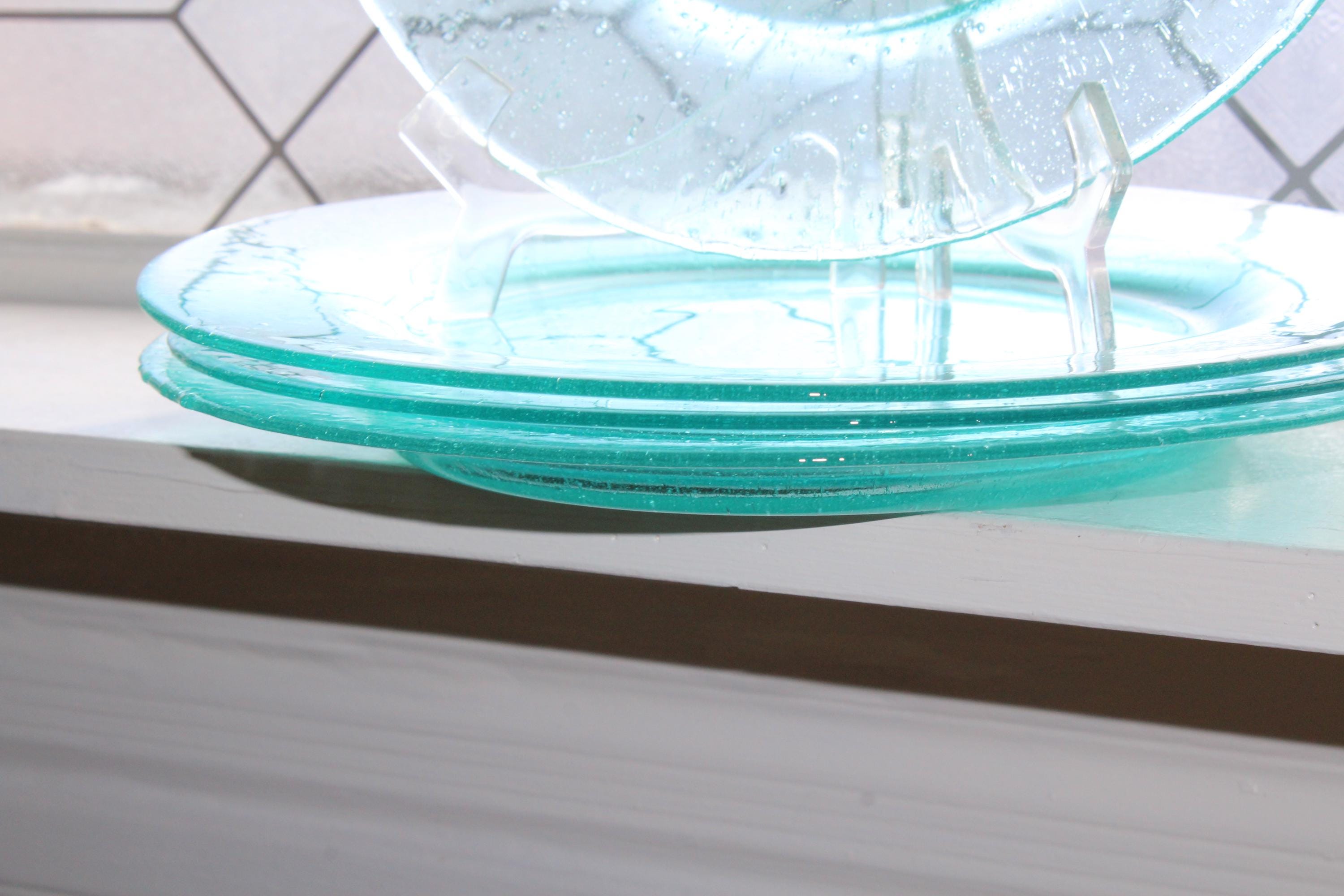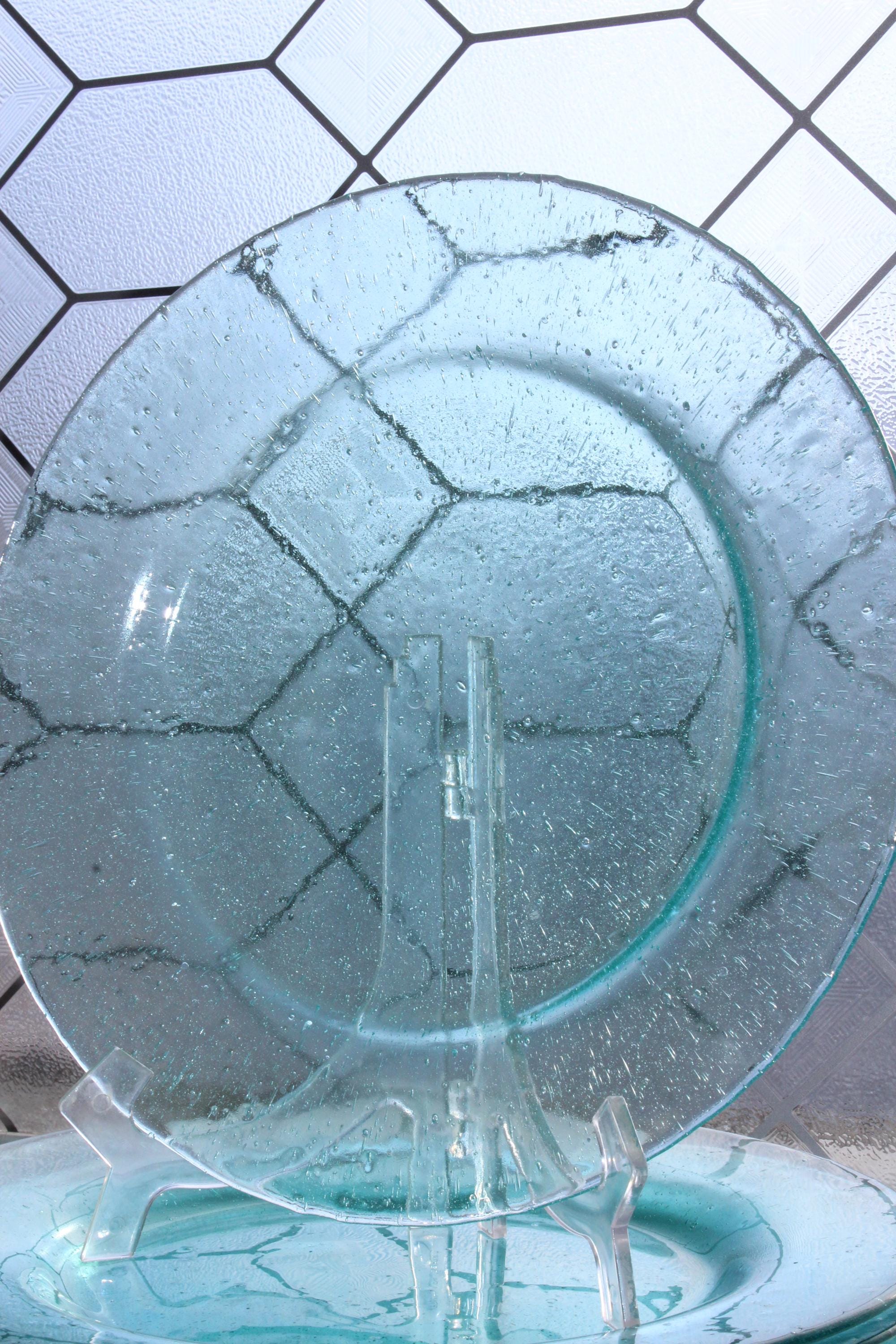 4 vintage Home Studio Shoreline collection aqua blue dinner plates featuring seeded bubble glass, in excellent condition. These are perfect for a beach or nautical theme table. Each plate measures 11" wide. I HAVE SEVERAL OTHER MATCHING PIECES AVAILABLE IN SEPARATE LISTINGS. Enjoy!
