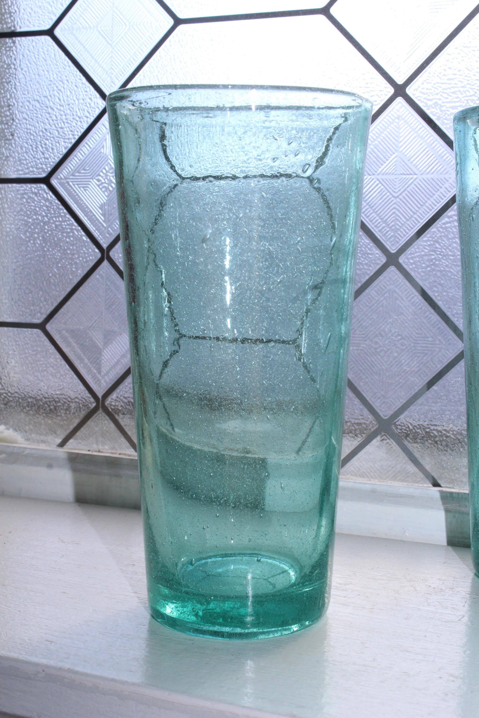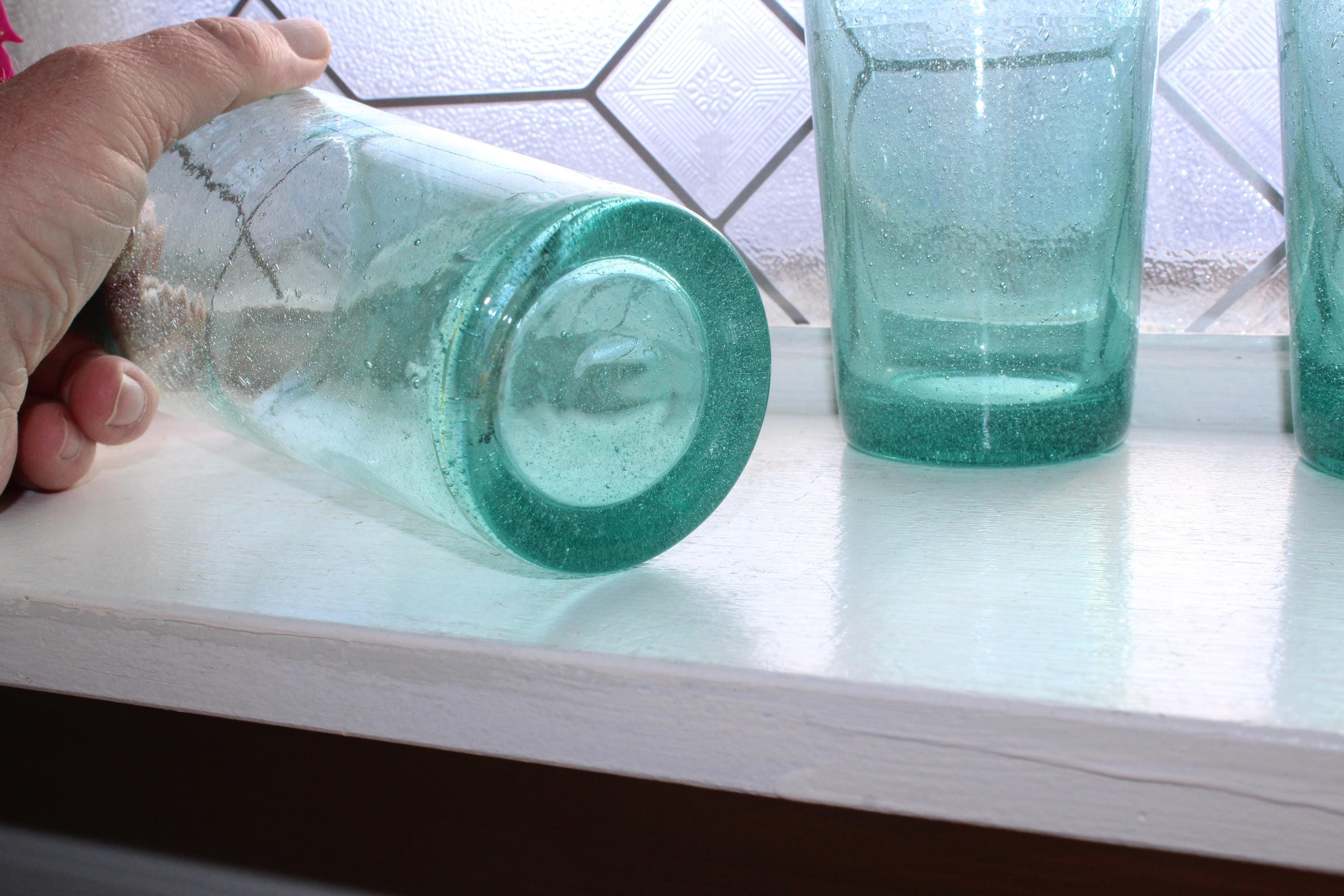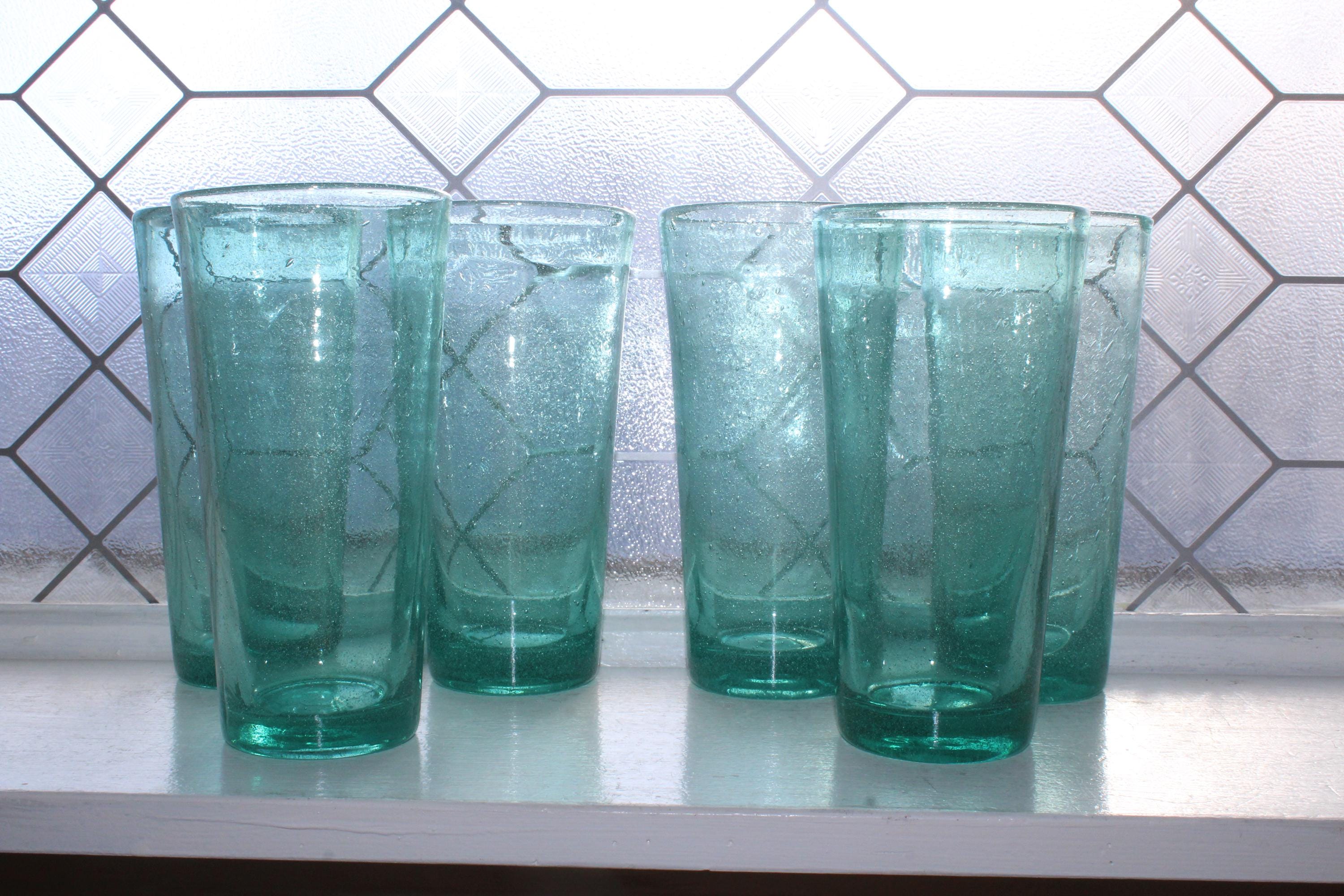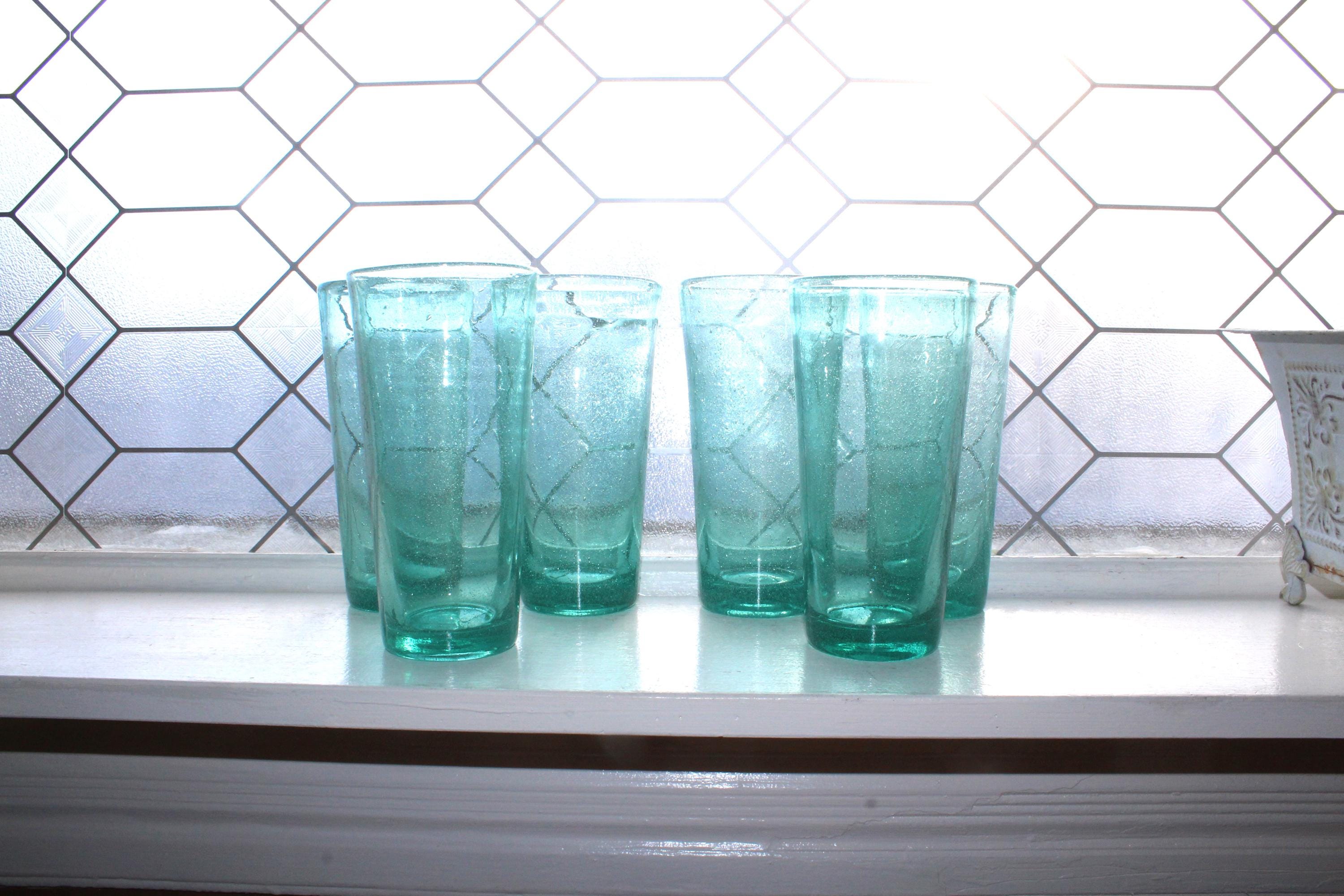 6 vintage Home Studio Shoreline collection aqua blue large tumblers featuring seeded bubble glass, in excellent condition. These are perfect for a beach or nautical theme table. Each one measures 7" high x 3 1/2" wide at the top. I HAVE SEVERAL OTHER MATCHING PIECES AVAILABLE IN SEPARATE LISTINGS. Enjoy!