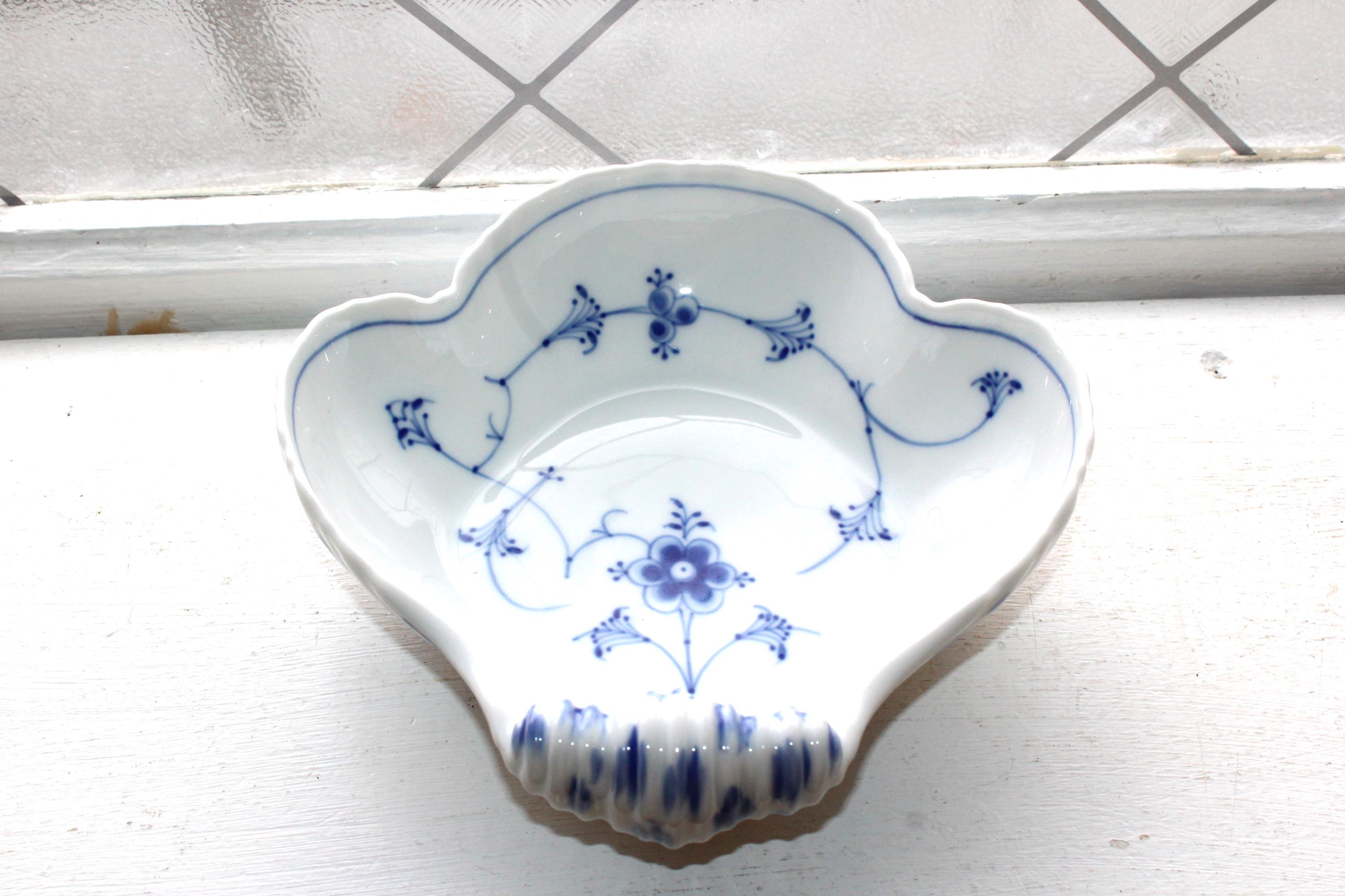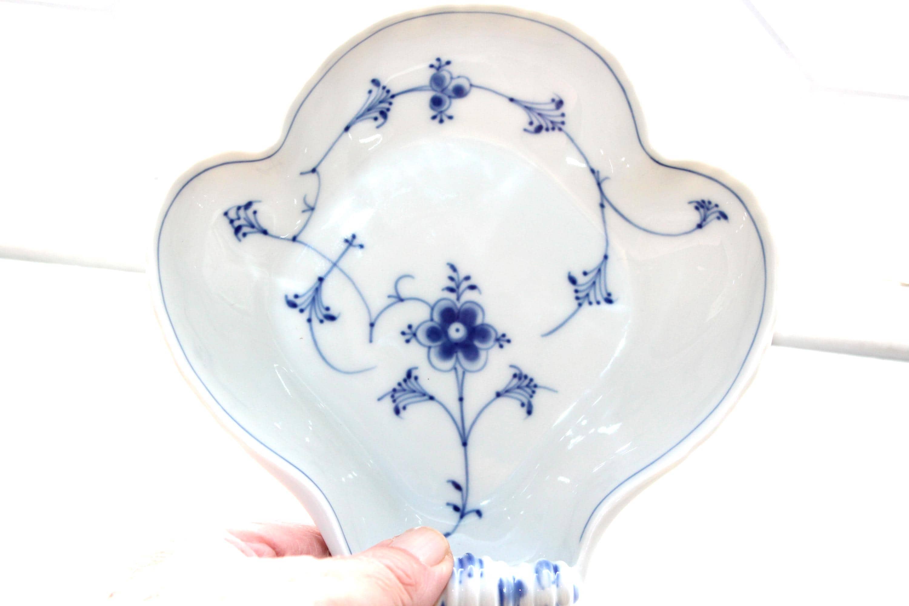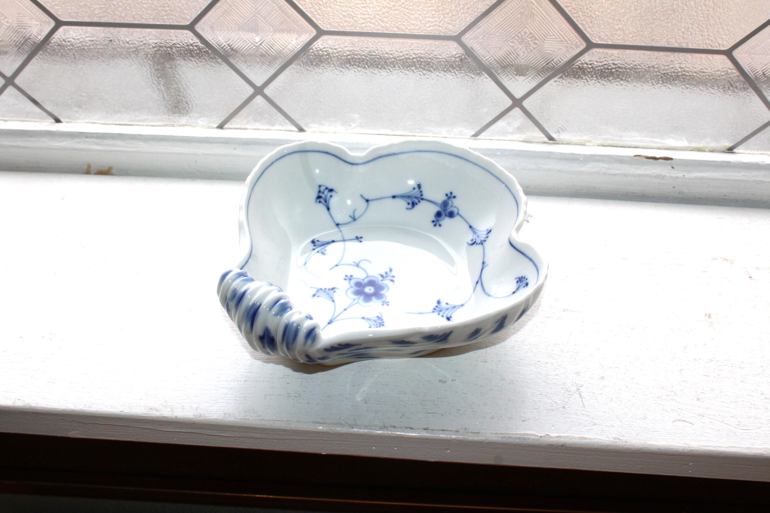 Vintage Bing and Grondahl porcelain Blue Fluted mussel shaped bowl #347, in excellent condition. It measures 6 3/4" wide and was crafted in Denmark. No chips or cracks. Enjoy!