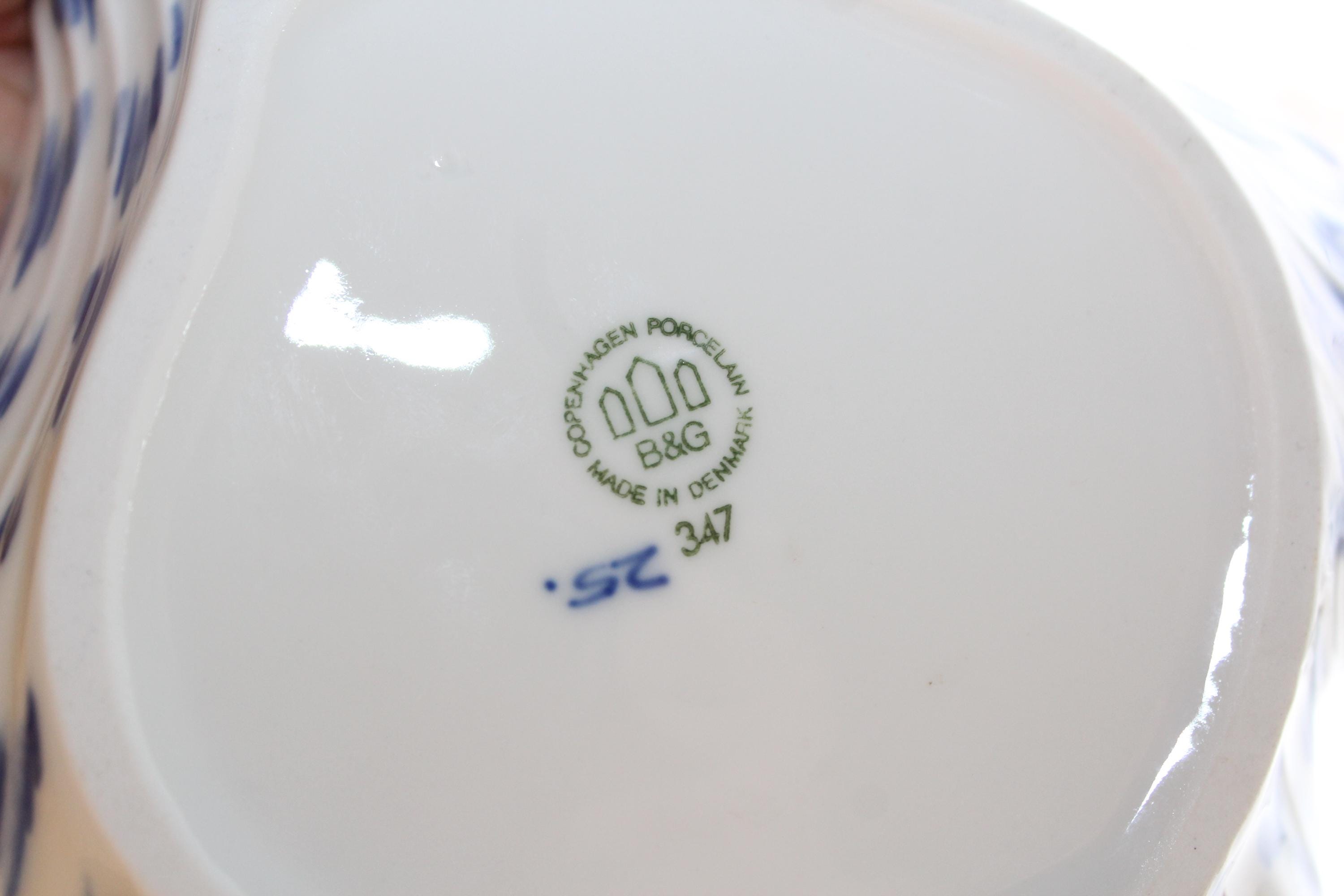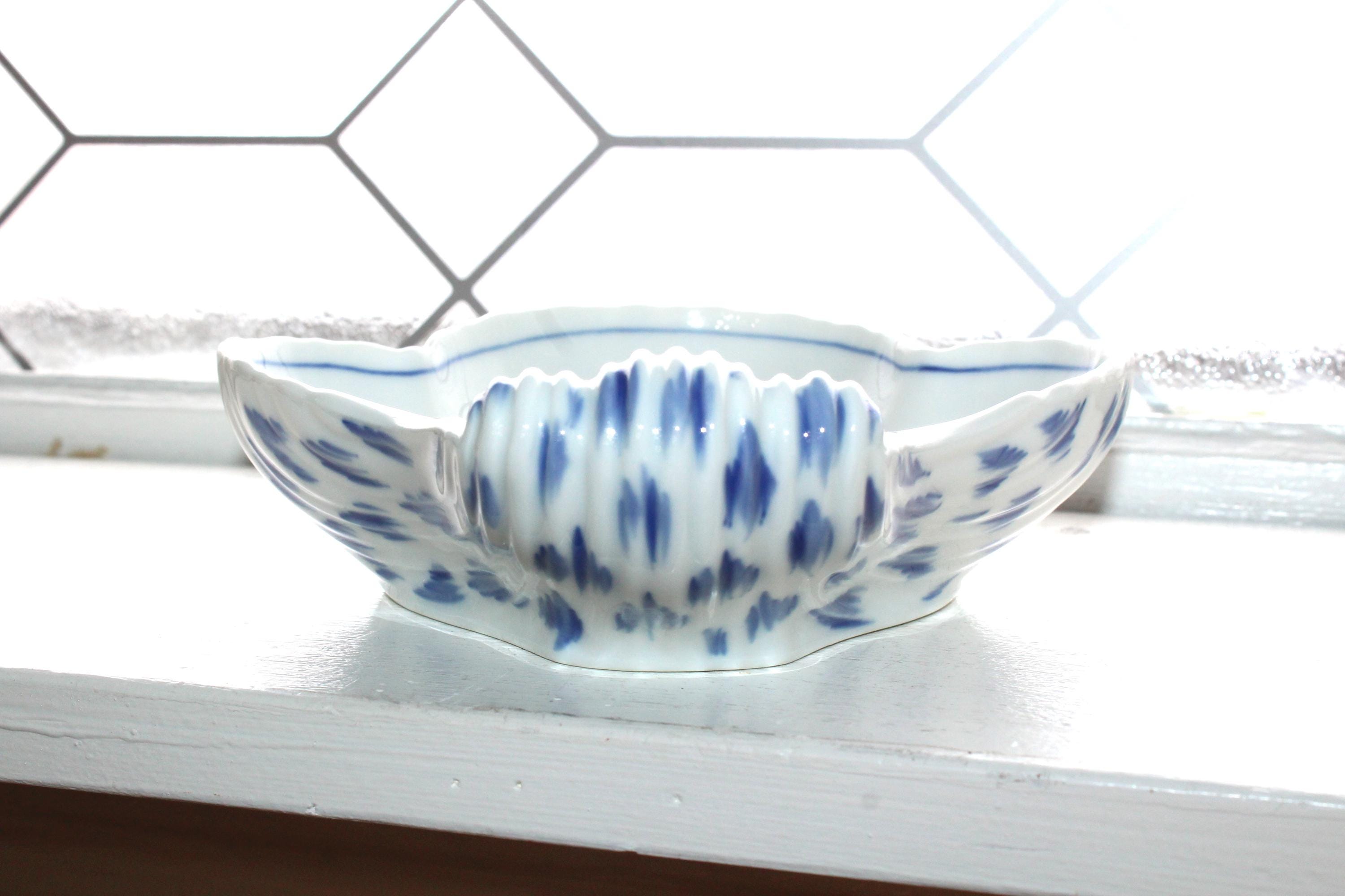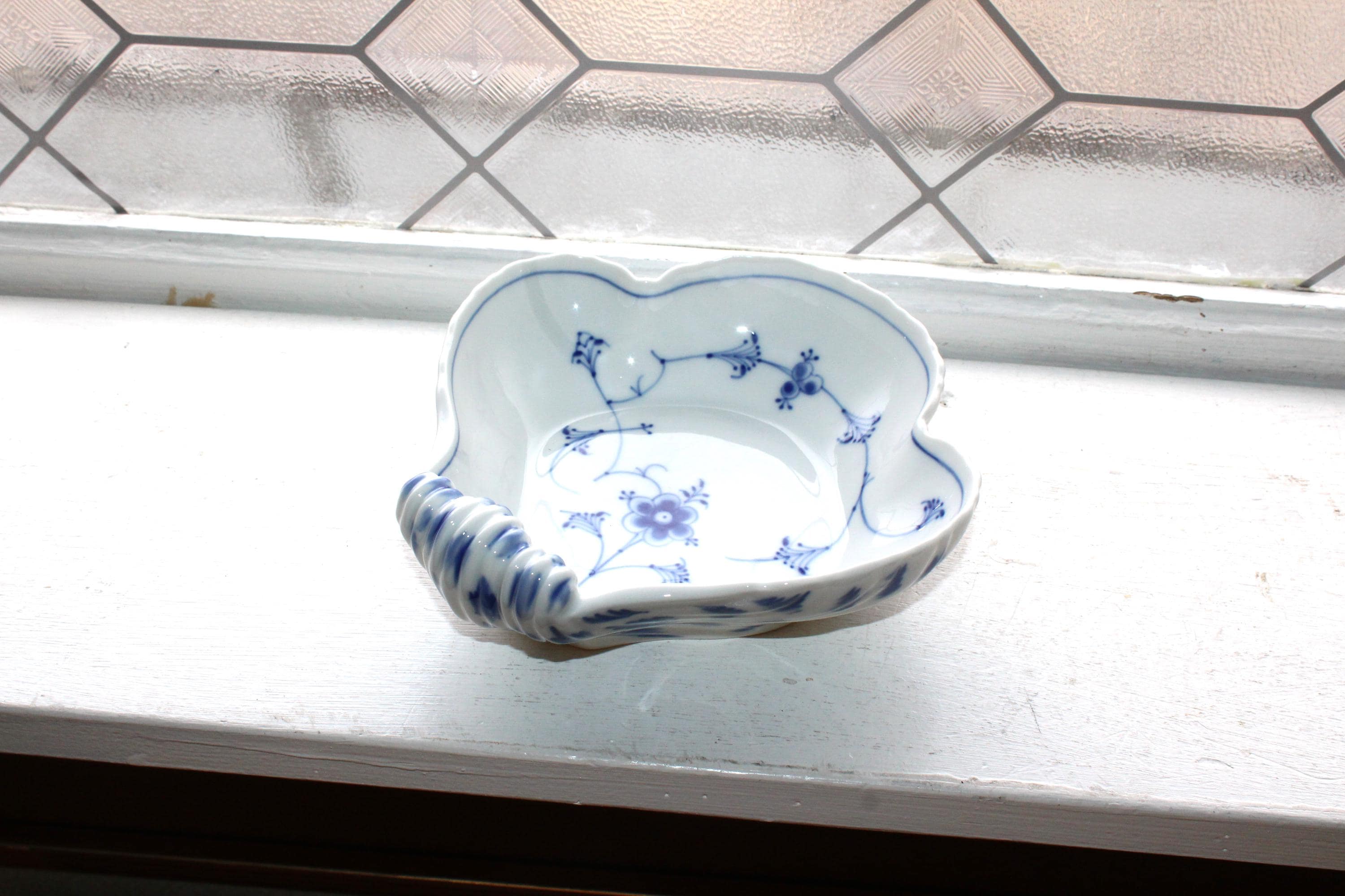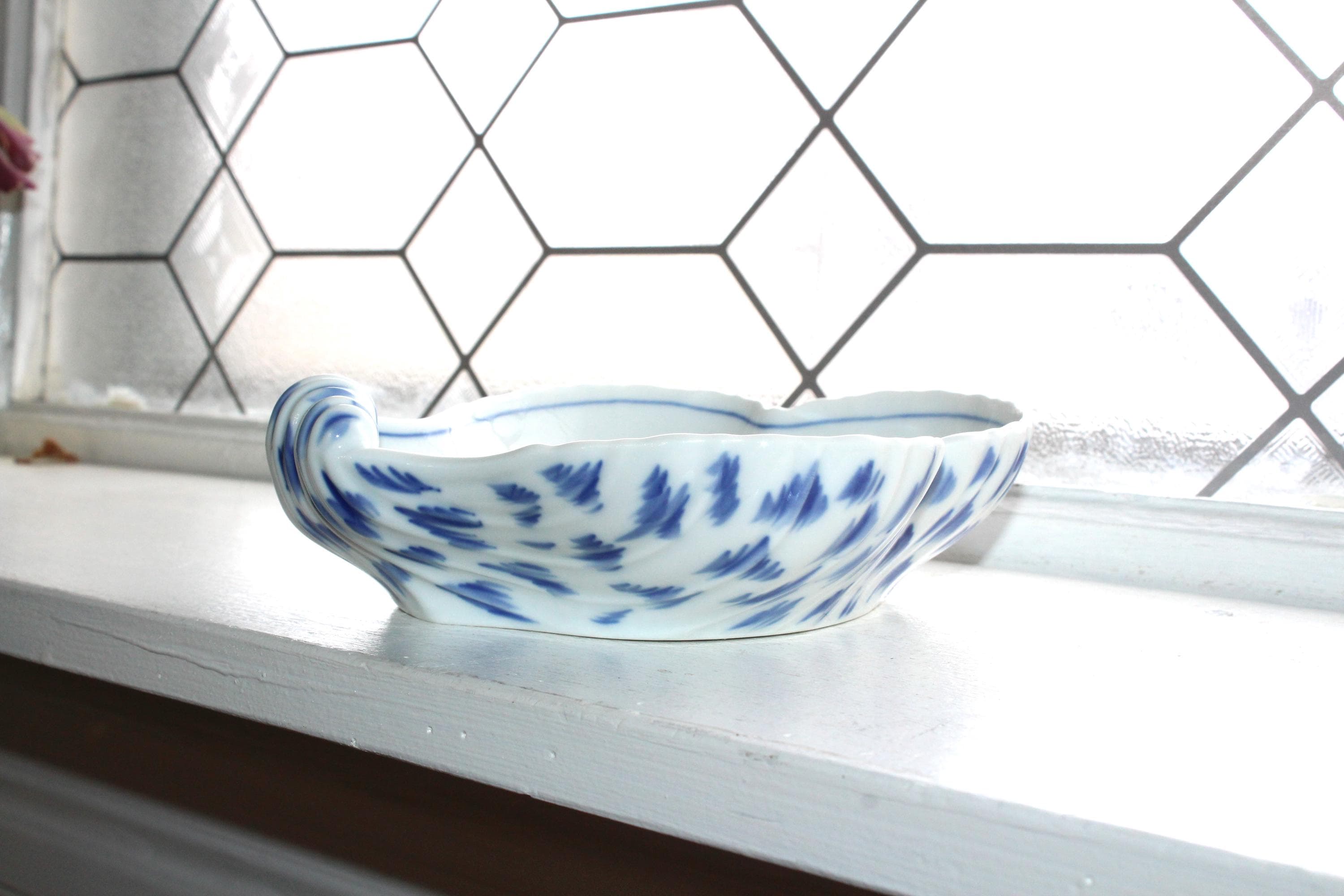 Vintage Bing and Grondahl porcelain Blue Fluted mussel shaped bowl #347, in excellent condition. It measures 6 3/4" wide and was crafted in Denmark. No chips or cracks. Enjoy!