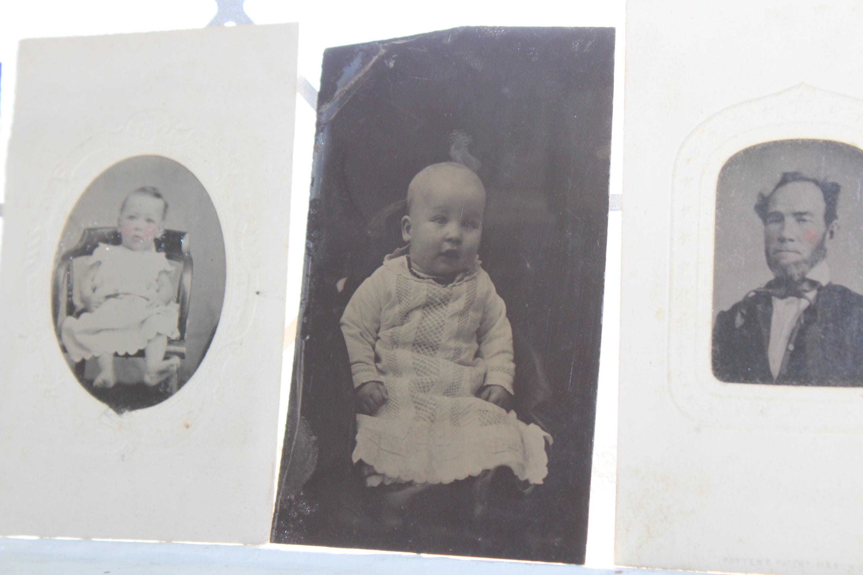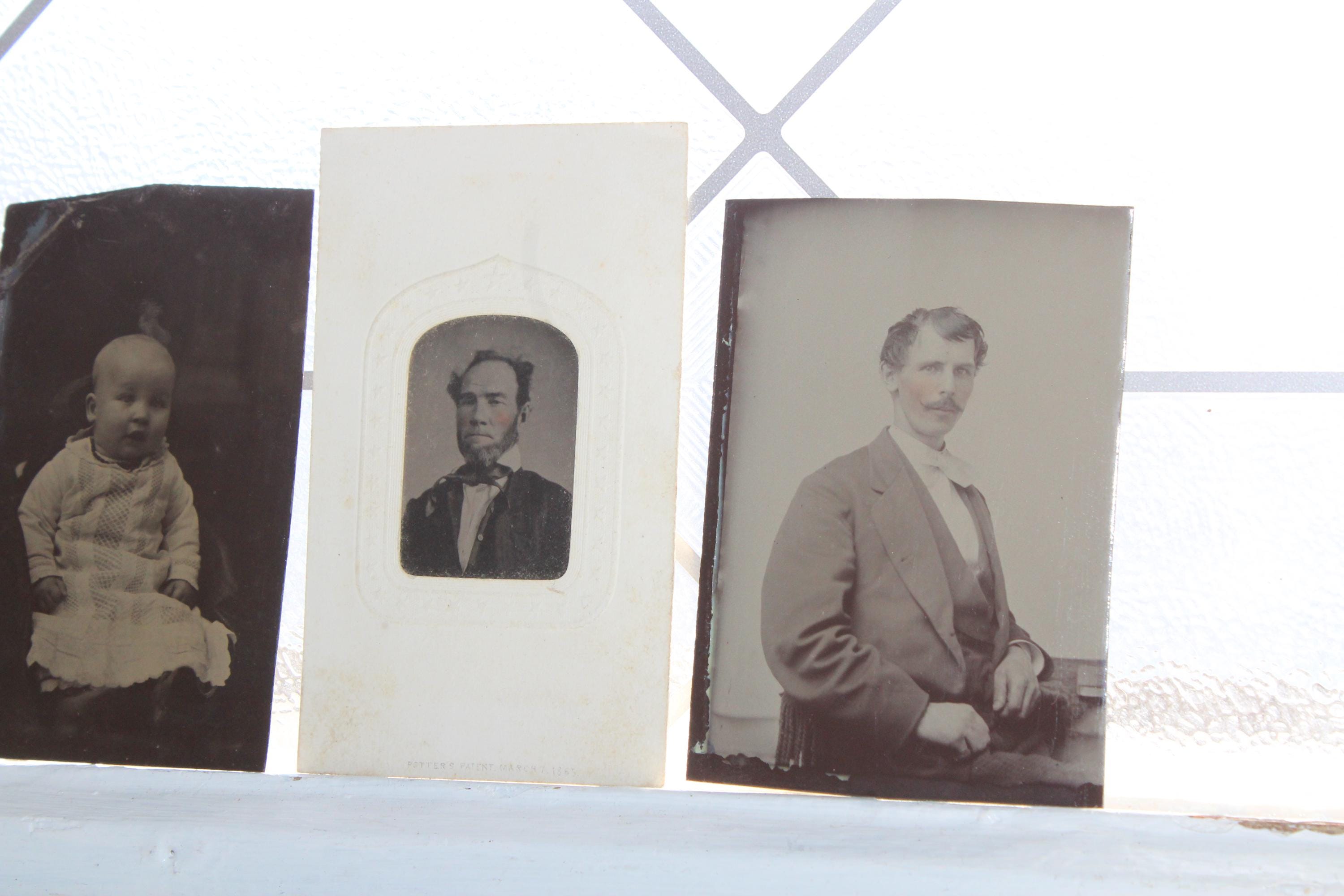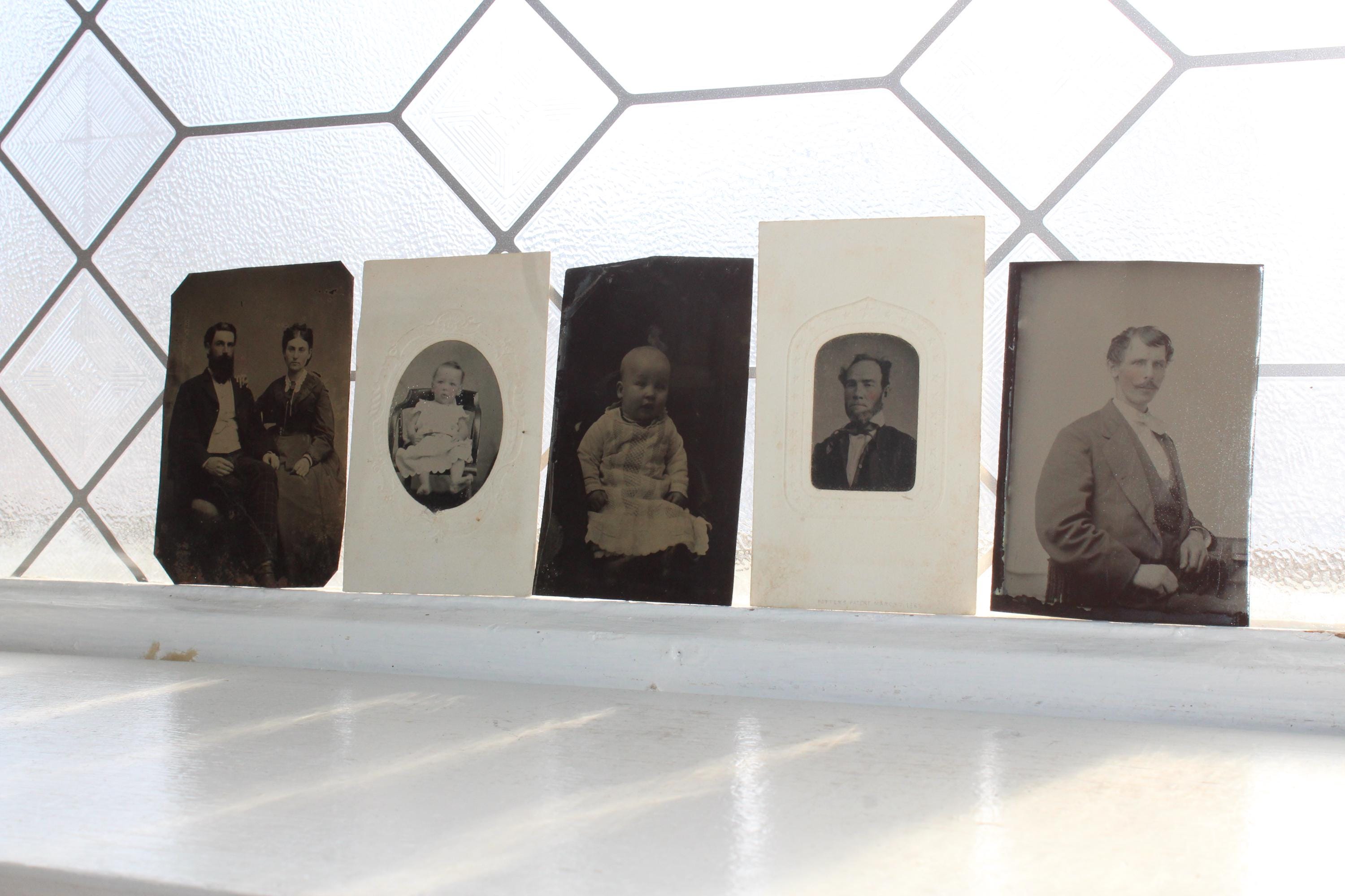 5 antique 1800s tin type photograph portraits of Victorian people. The photos measure 4" x 2 5/8". Enjoy!