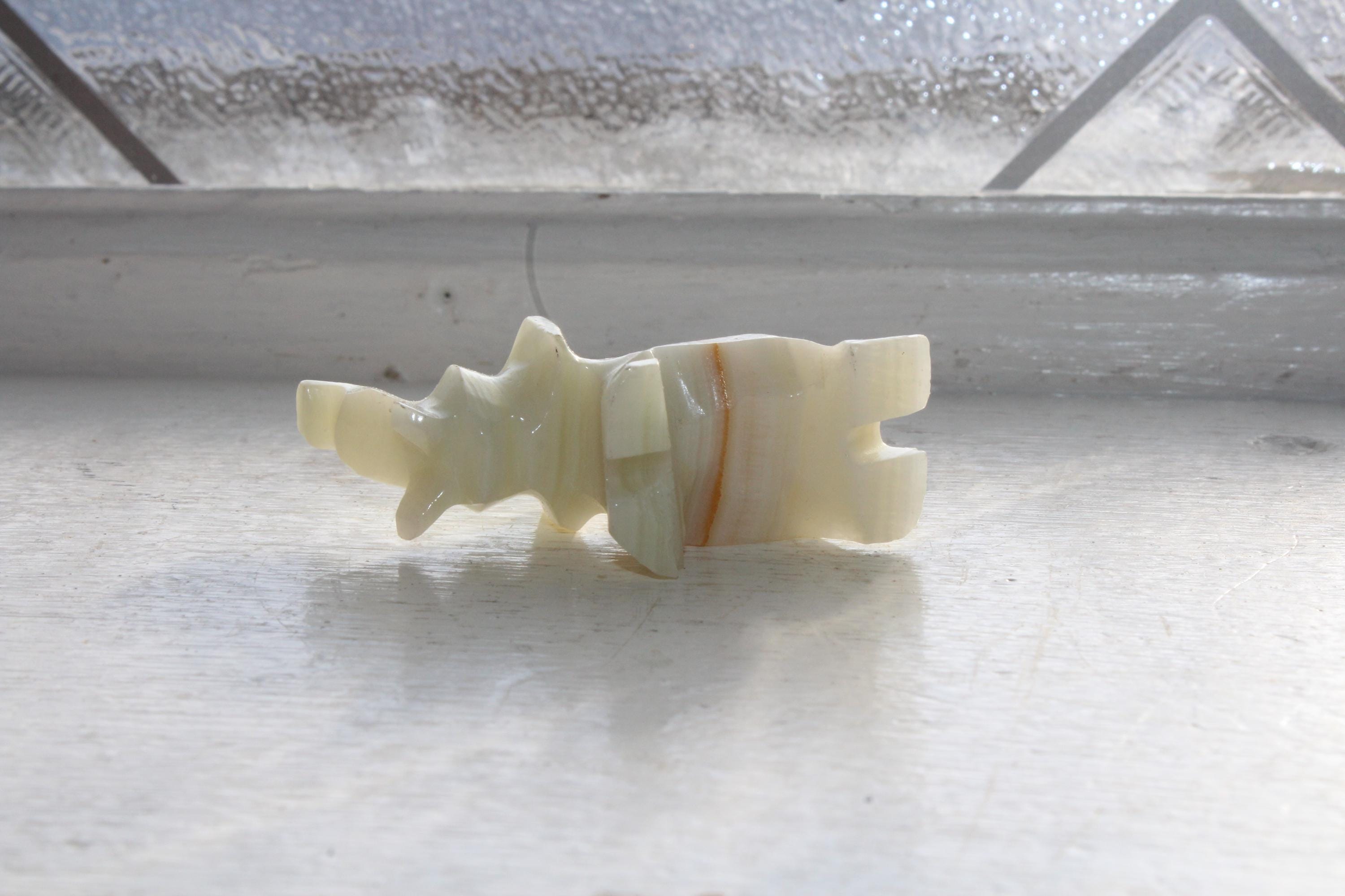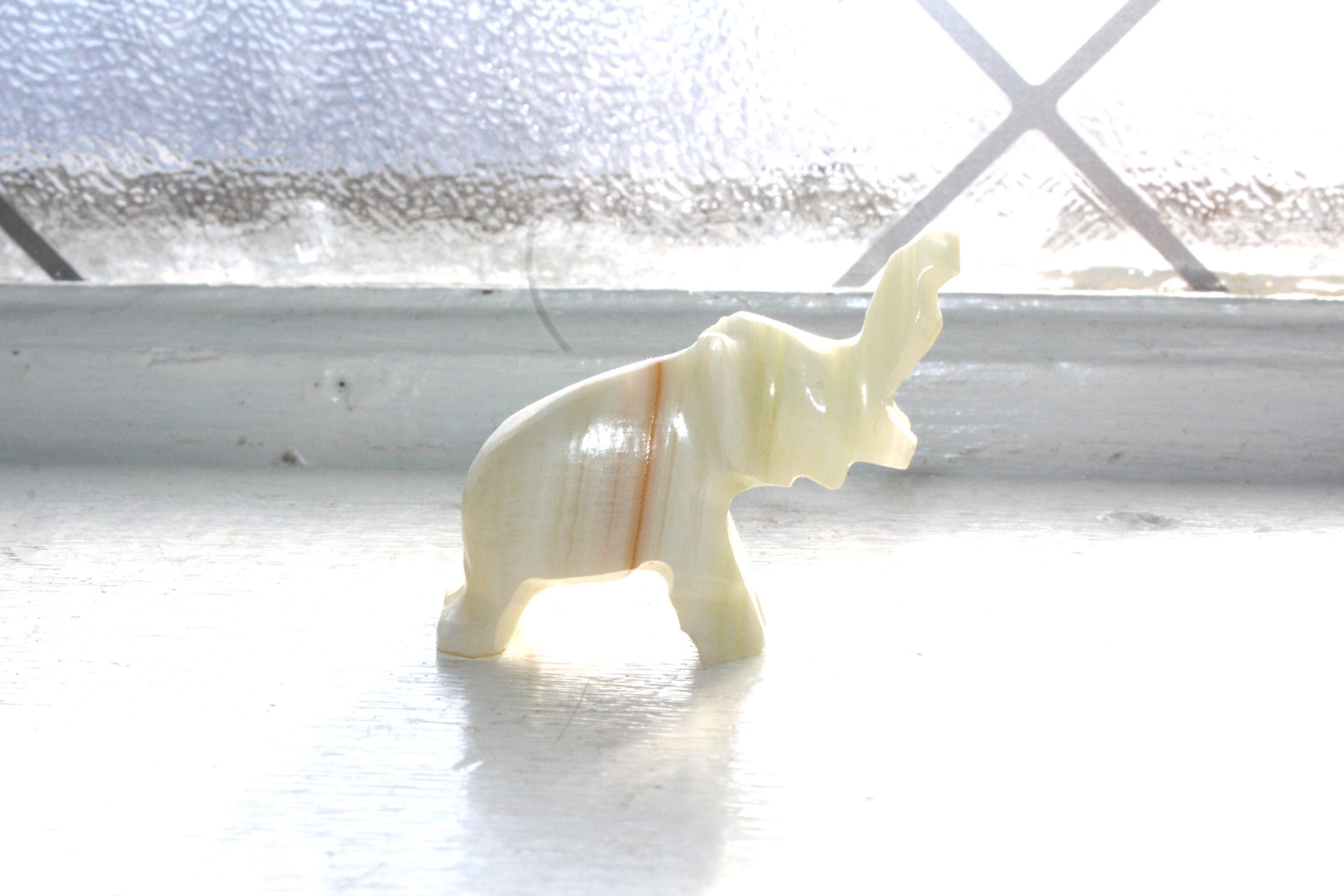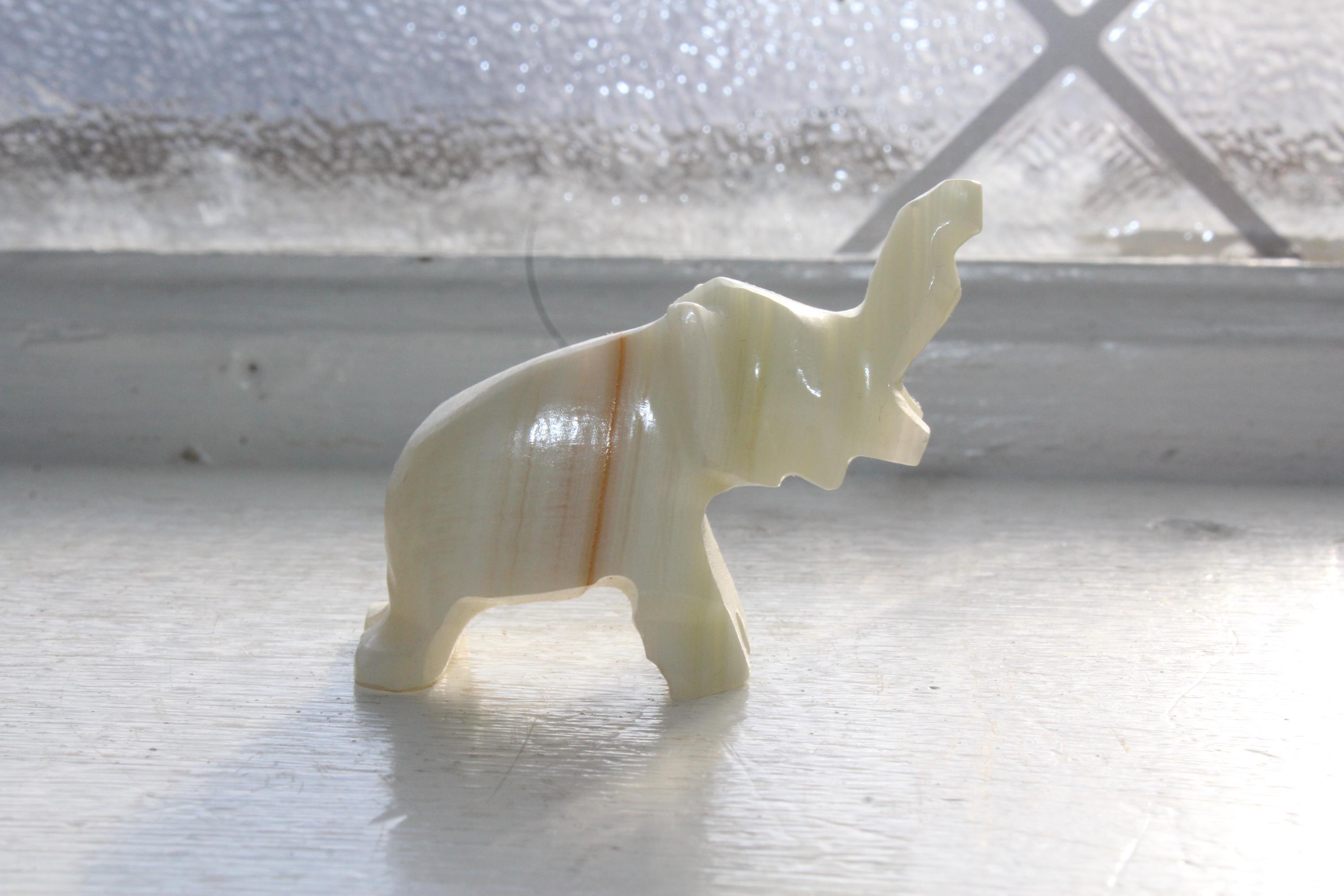 Vintage carved onyx stone elephant figurine. It measures 1 1/2" high and is great for display. Enjoy!