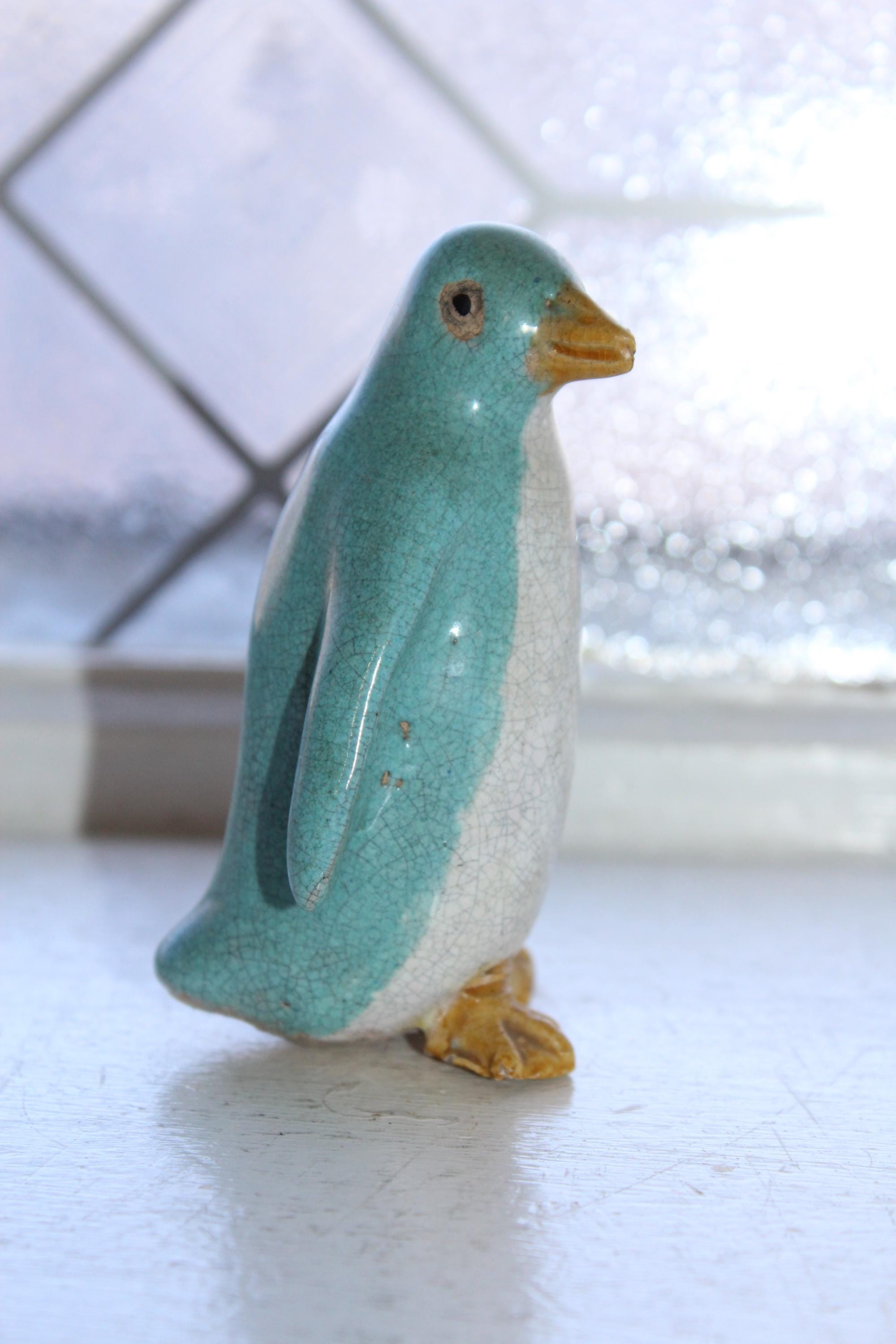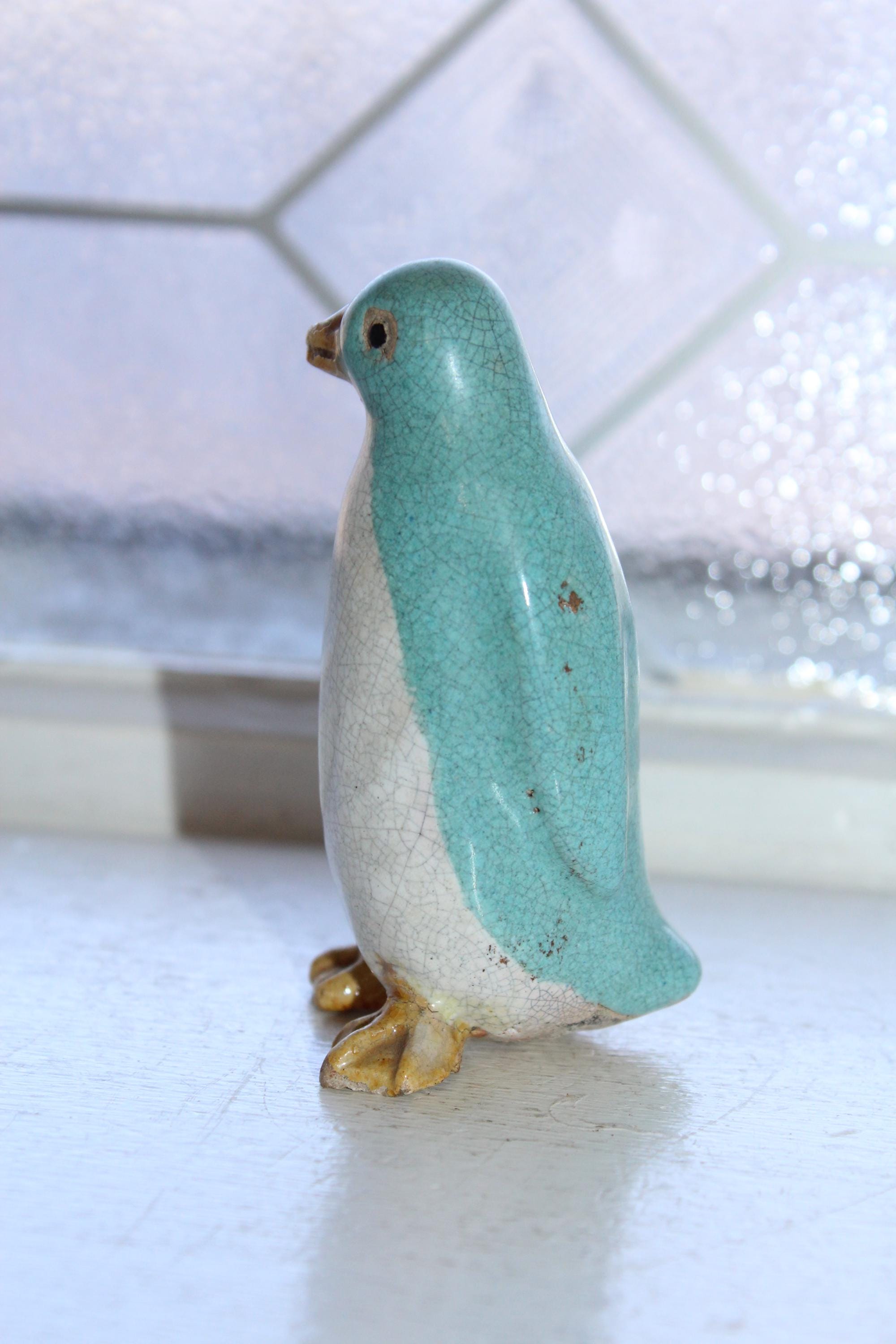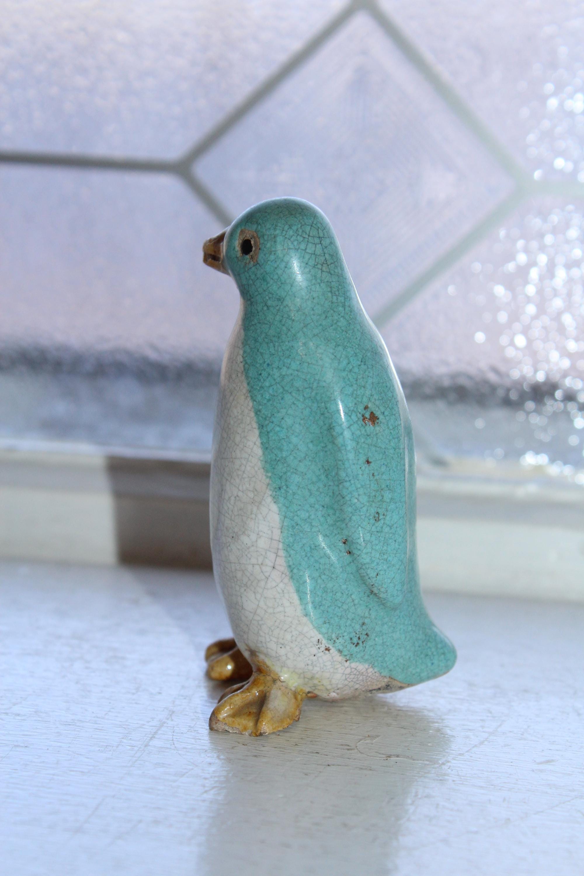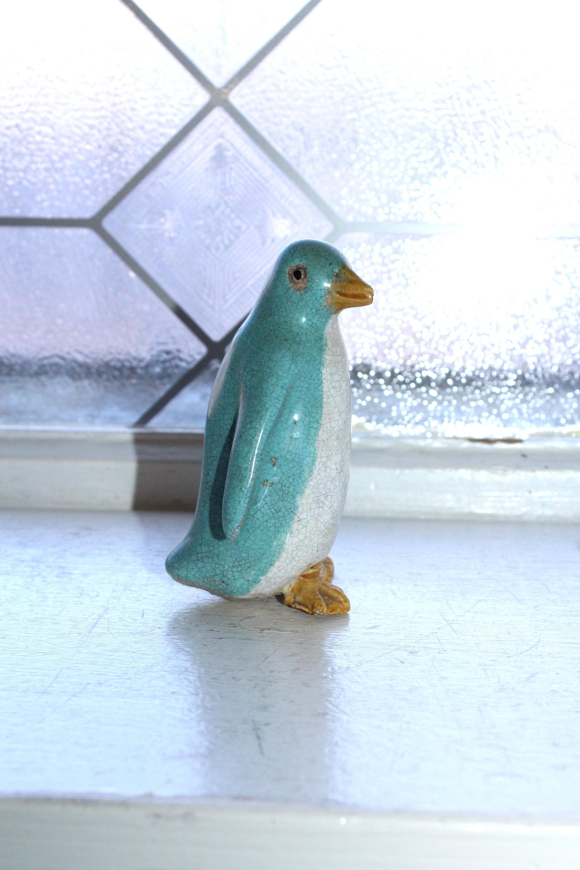 Antique Chinese export penguin figurine with turquoise and white crackle glaze, in good condition. It measures 3 3/8" high. Enjoy!