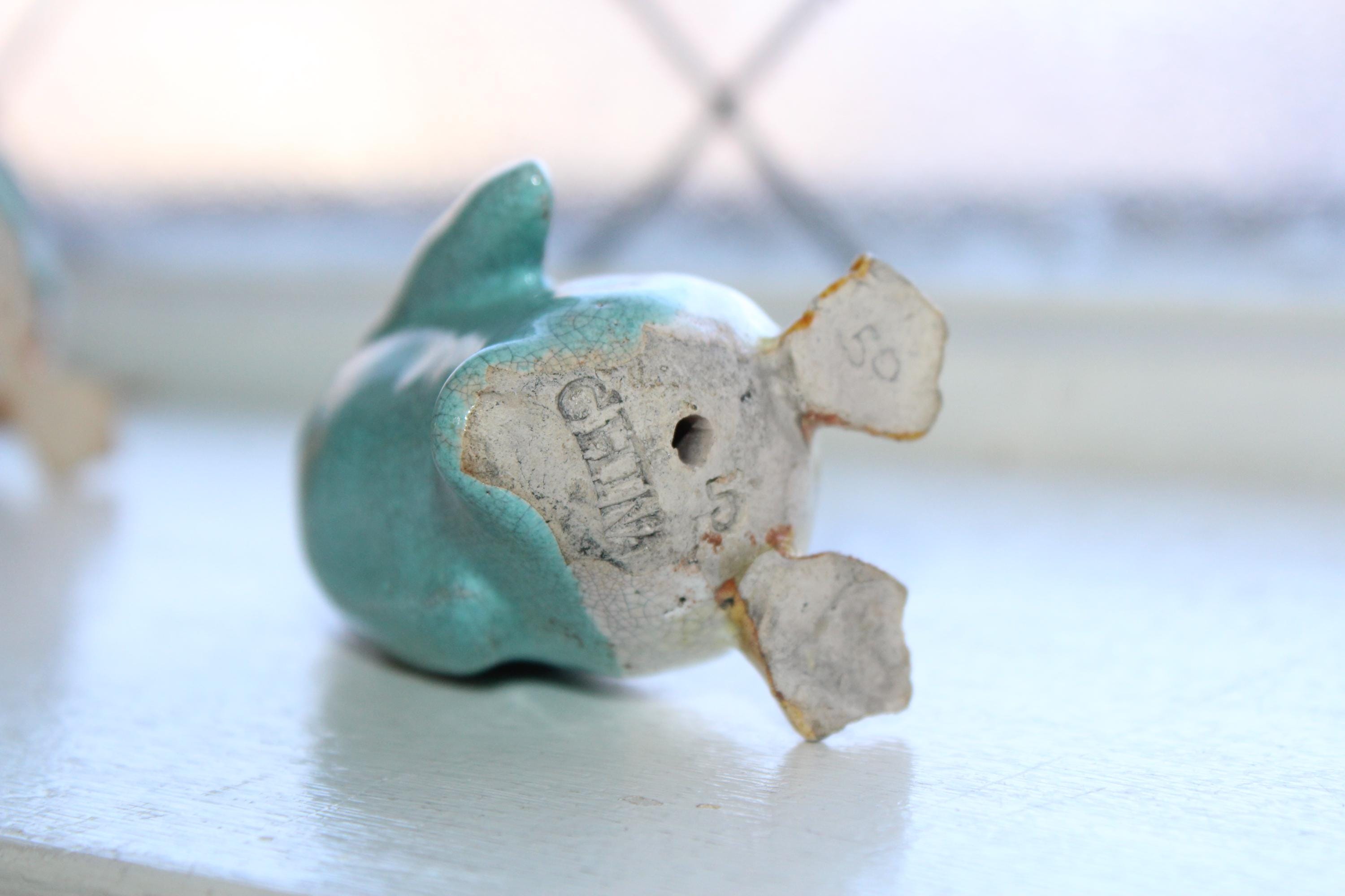 Antique Chinese Export Penguin Figurine Turquoise & White Crackle Glaze