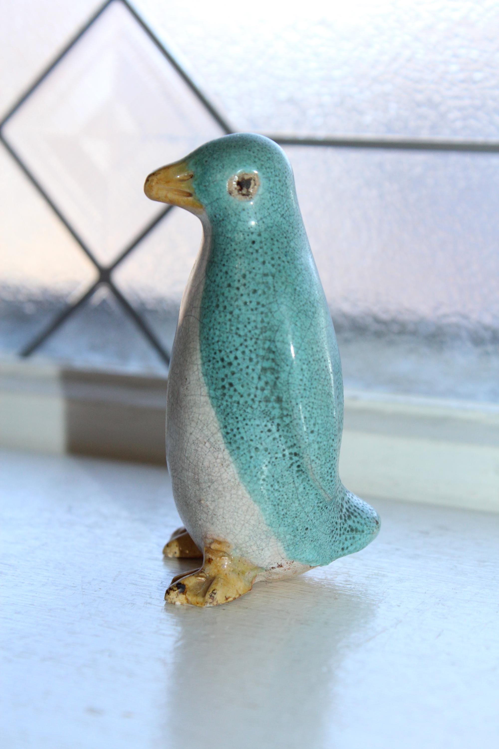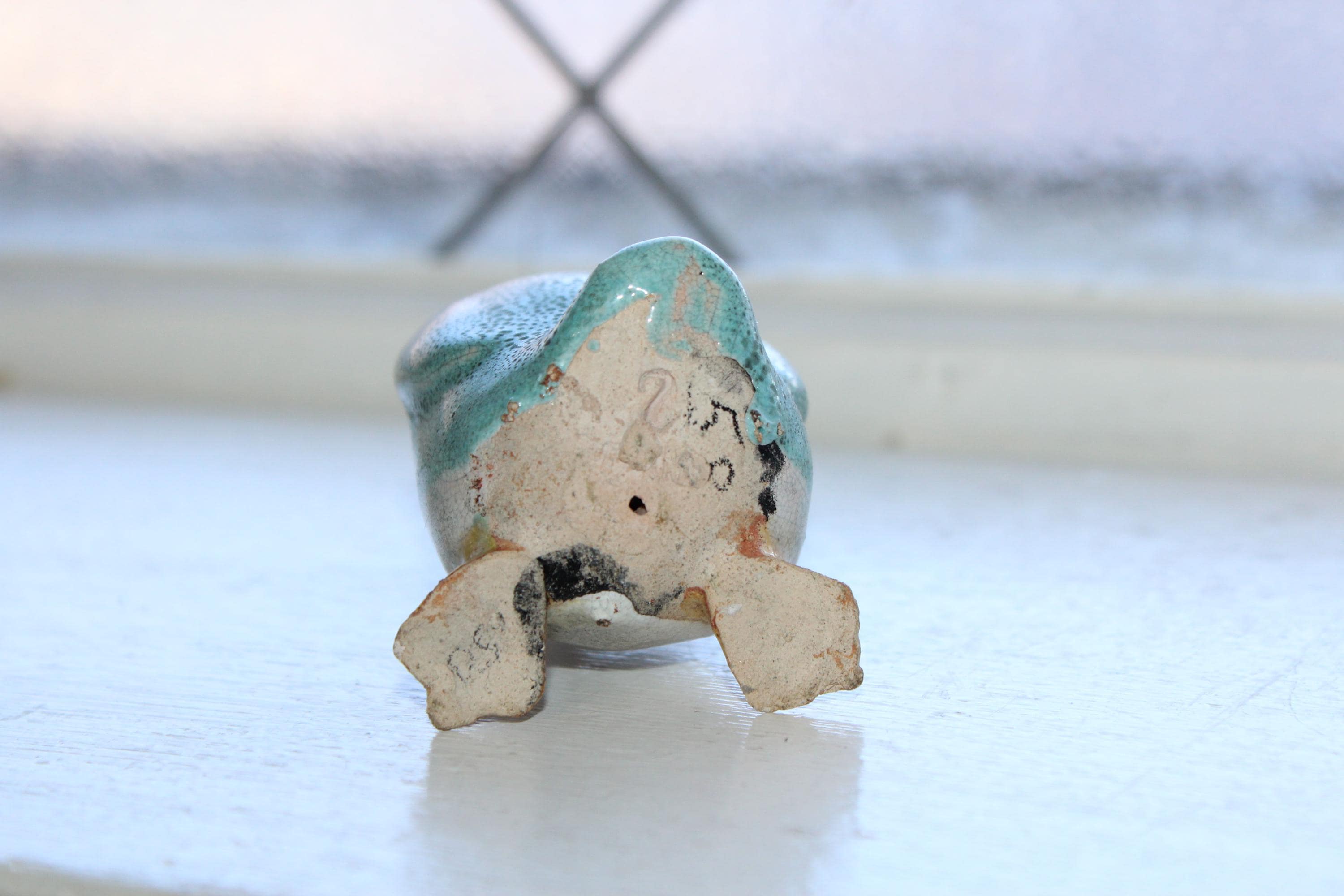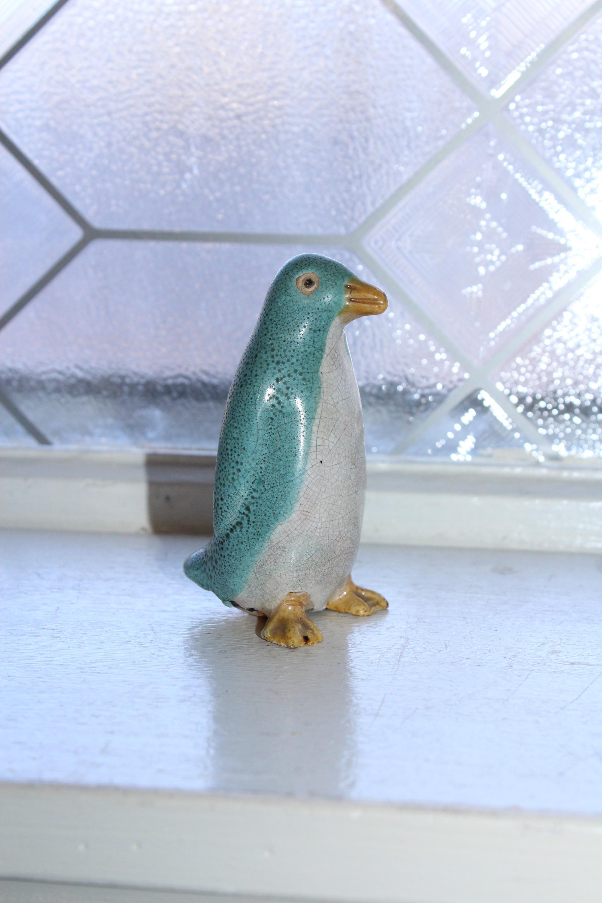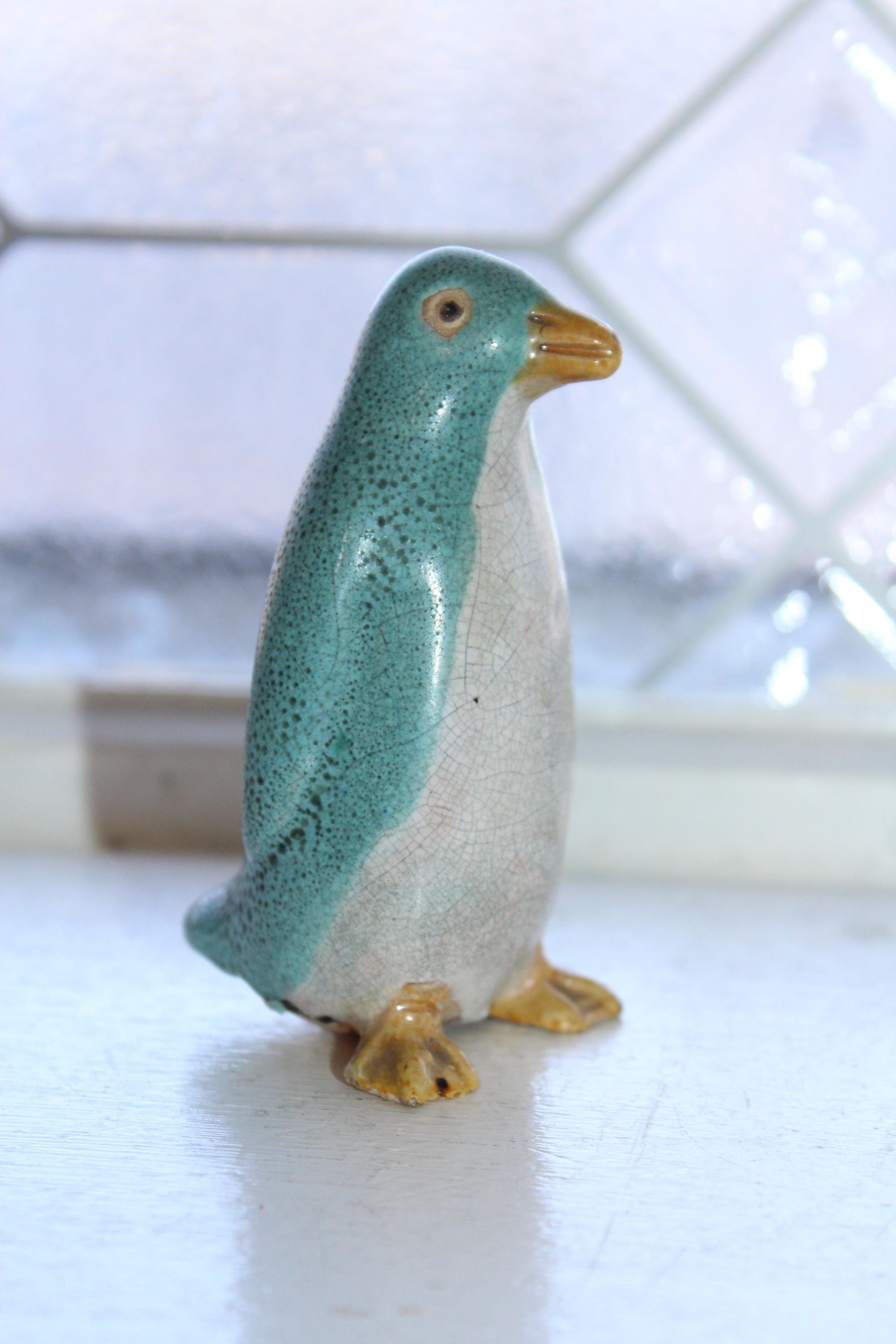 Antique Chinese export penguin figurine with turquoise and white crackle glaze, in good condition. It measures 3 3/8" high. Enjoy!