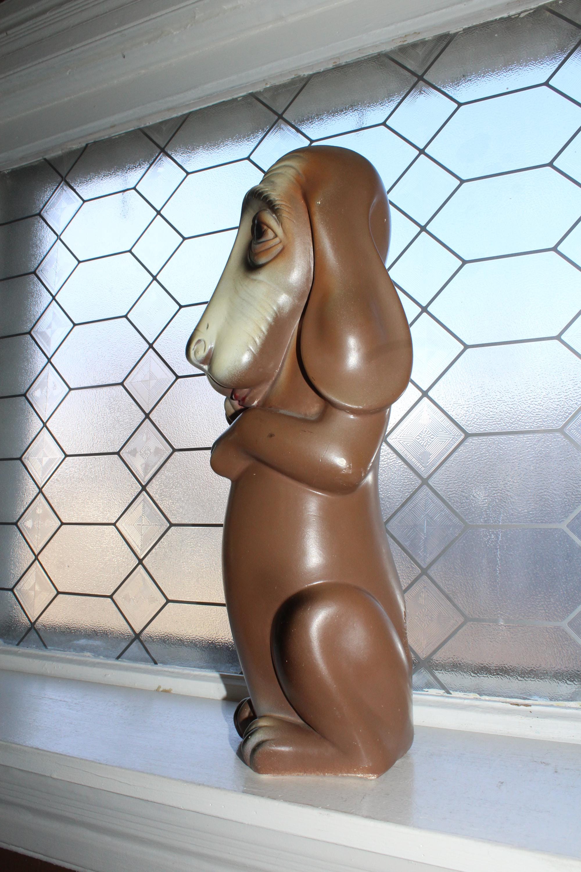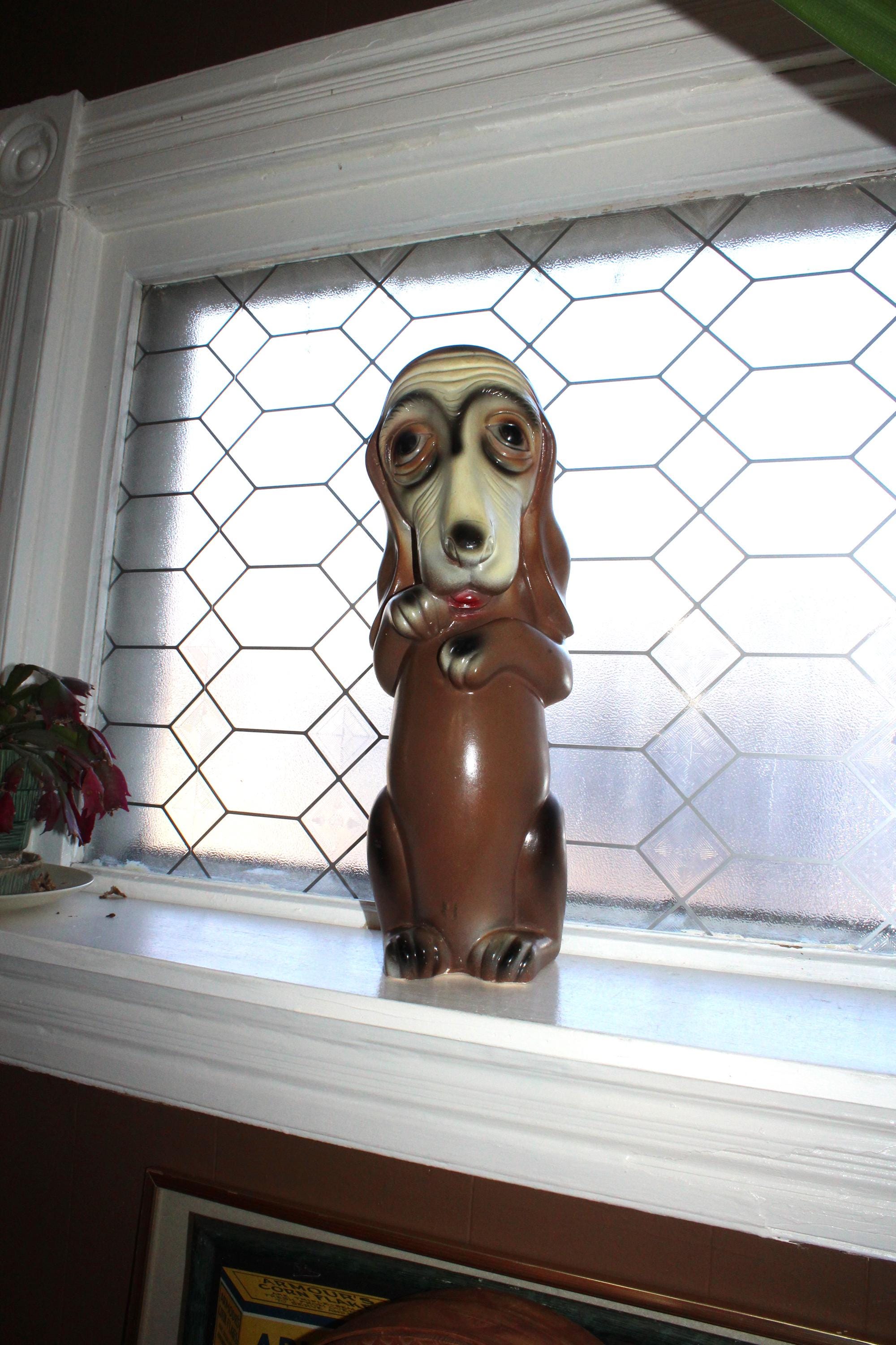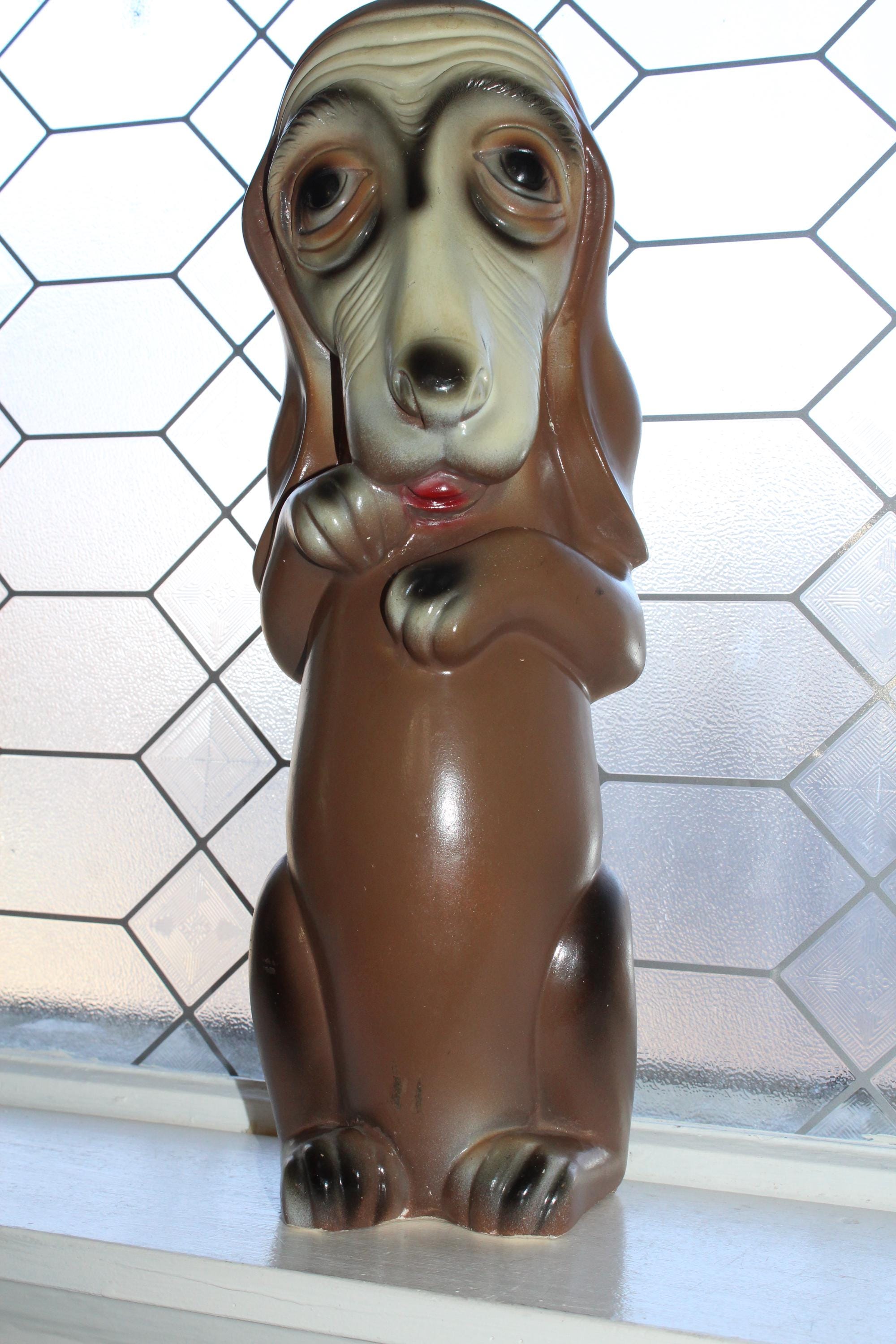This is a large vintage 1963 Silvestri Brothers chalkware basset hound bank with original paint, in good condition with the original plug intact. The bank measures 17 1/2" high. No damage other than minor paint wear, great for display. Enjoy!