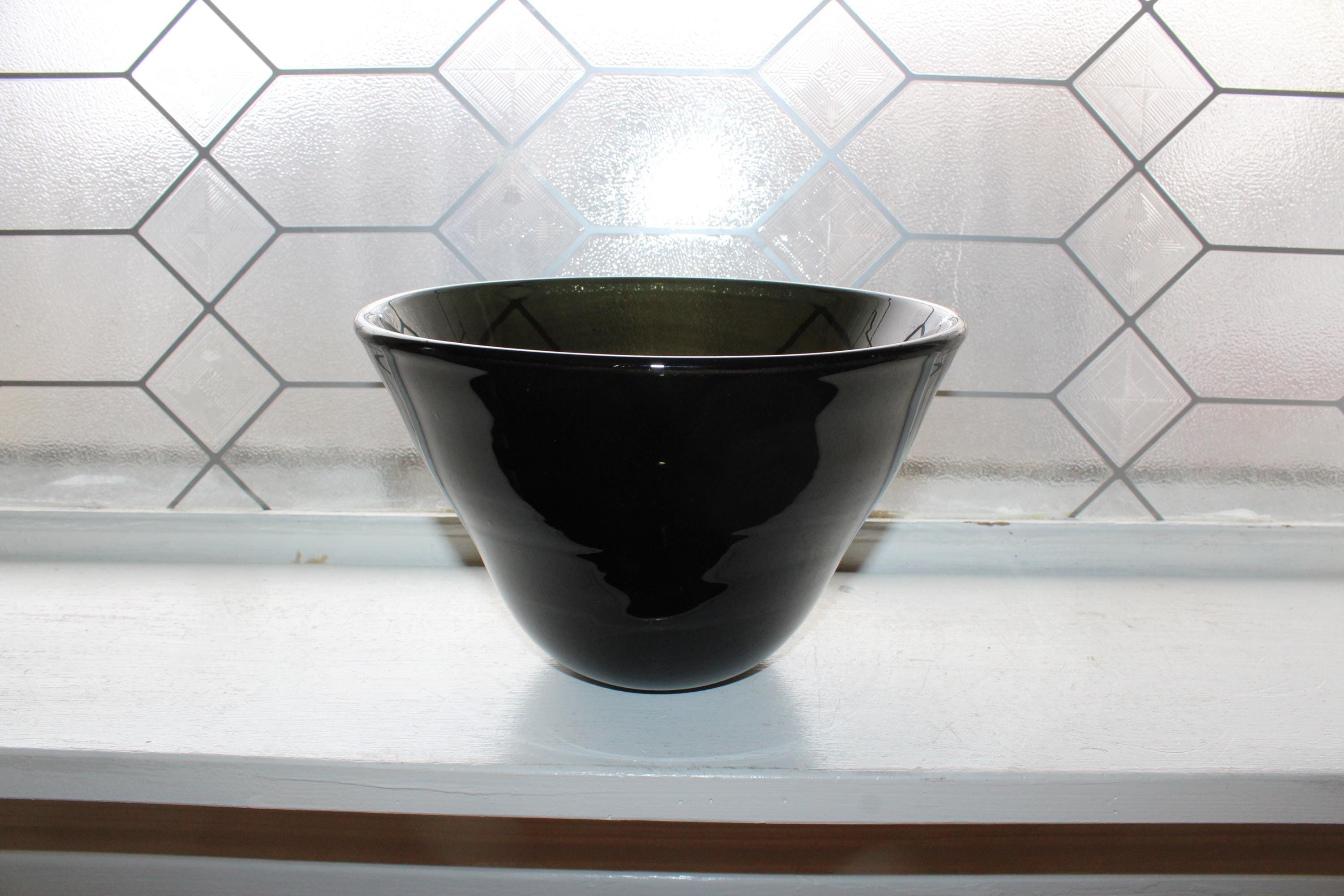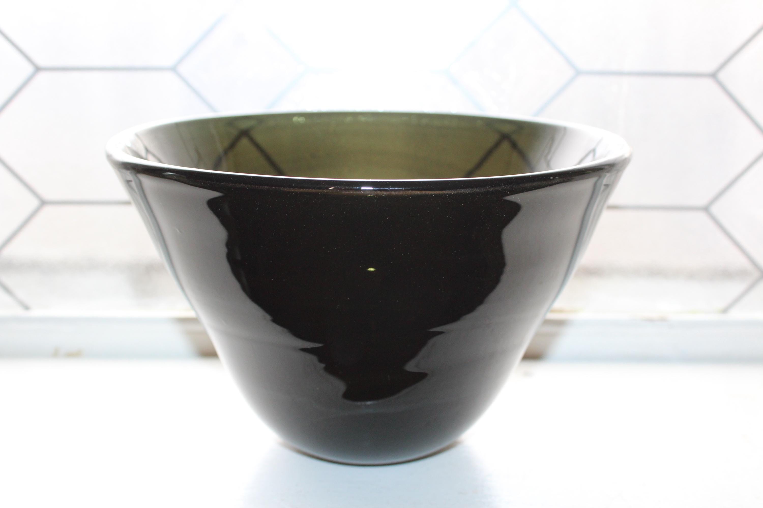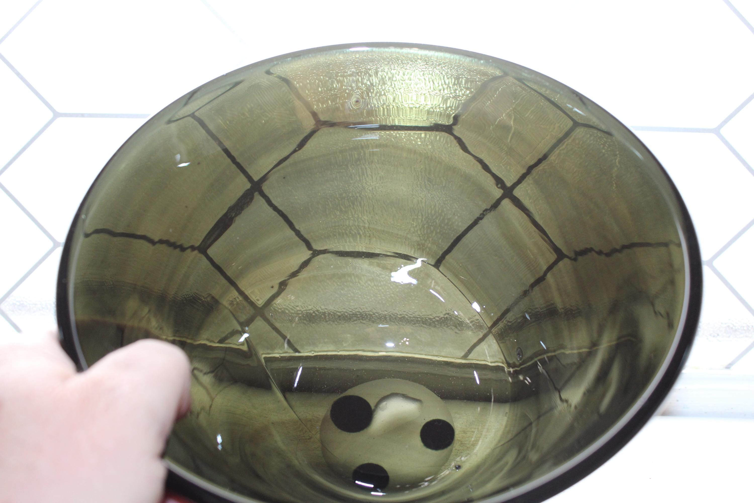 Vintage handmade studio art glass green swirl Ikebana planter/vase, in excellent condition. It measures 8 1/2" wide x 5 1/4" high, weighs 3 lbs. and has no chips or cracks, perfect for display. Enjoy!