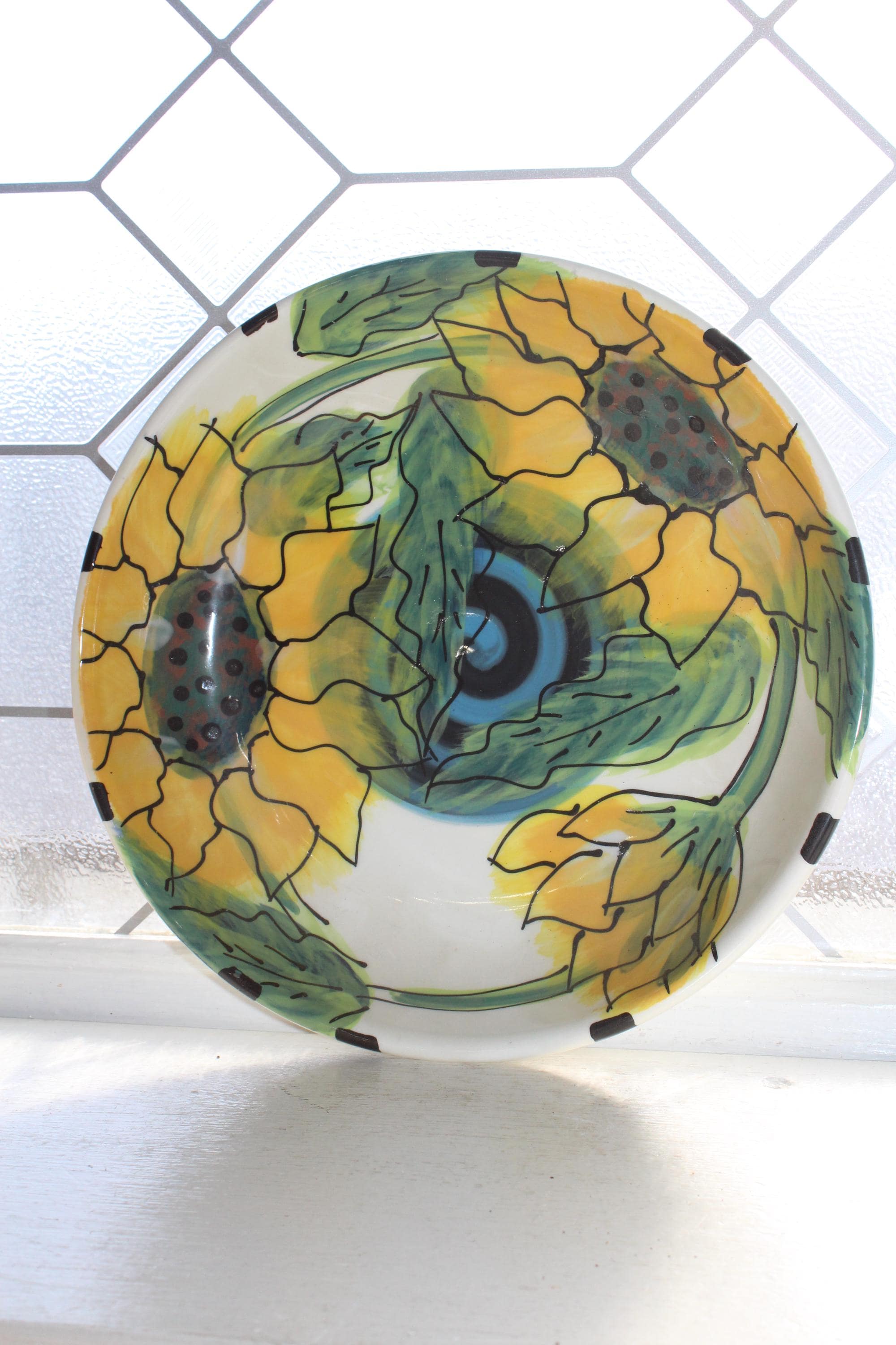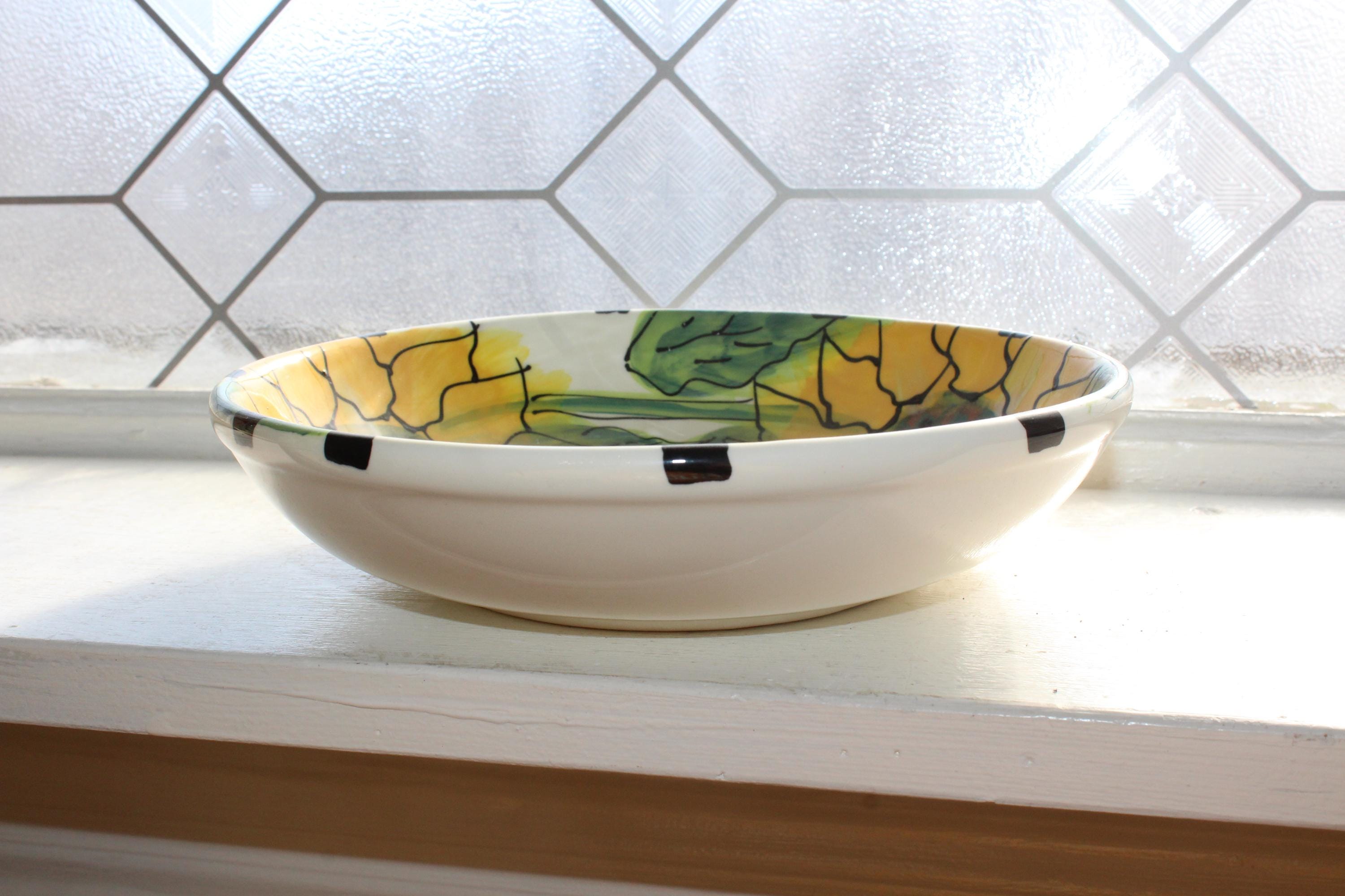 Vintage Table Arts sunflower serving bowl designed by Debra Cherniawsky, in excellent condition. The bowl measures 8 1/4" wide. Perfect for use or display. Enjoy!