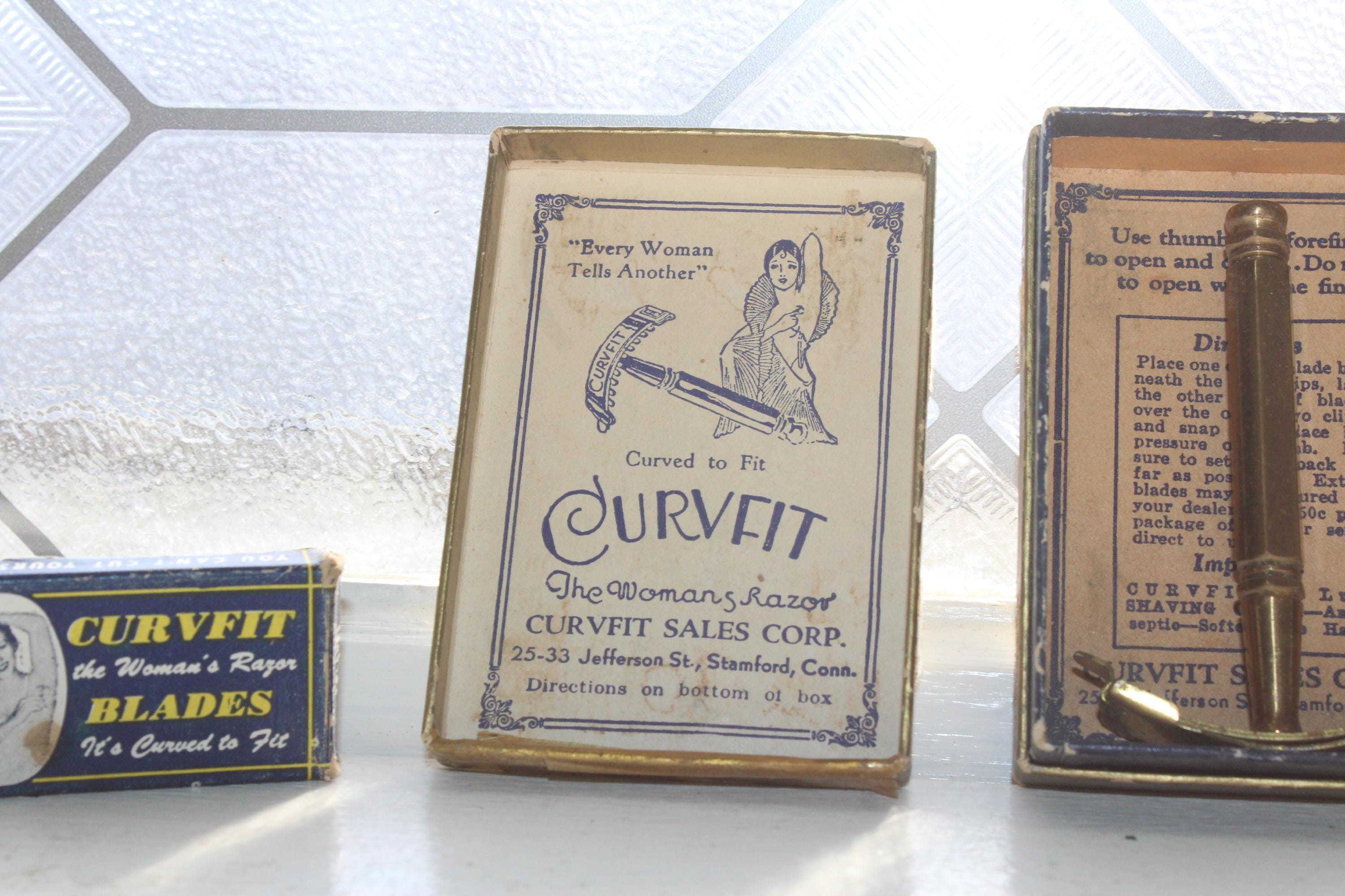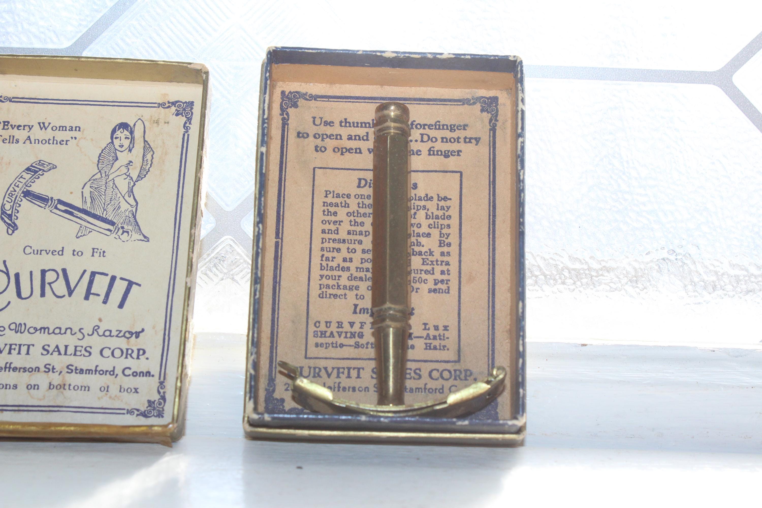 Vintage lady's Curvfit under arm razor with blades and original box. Makes a great bathroom decoration or addition to a collection. Enjoy!