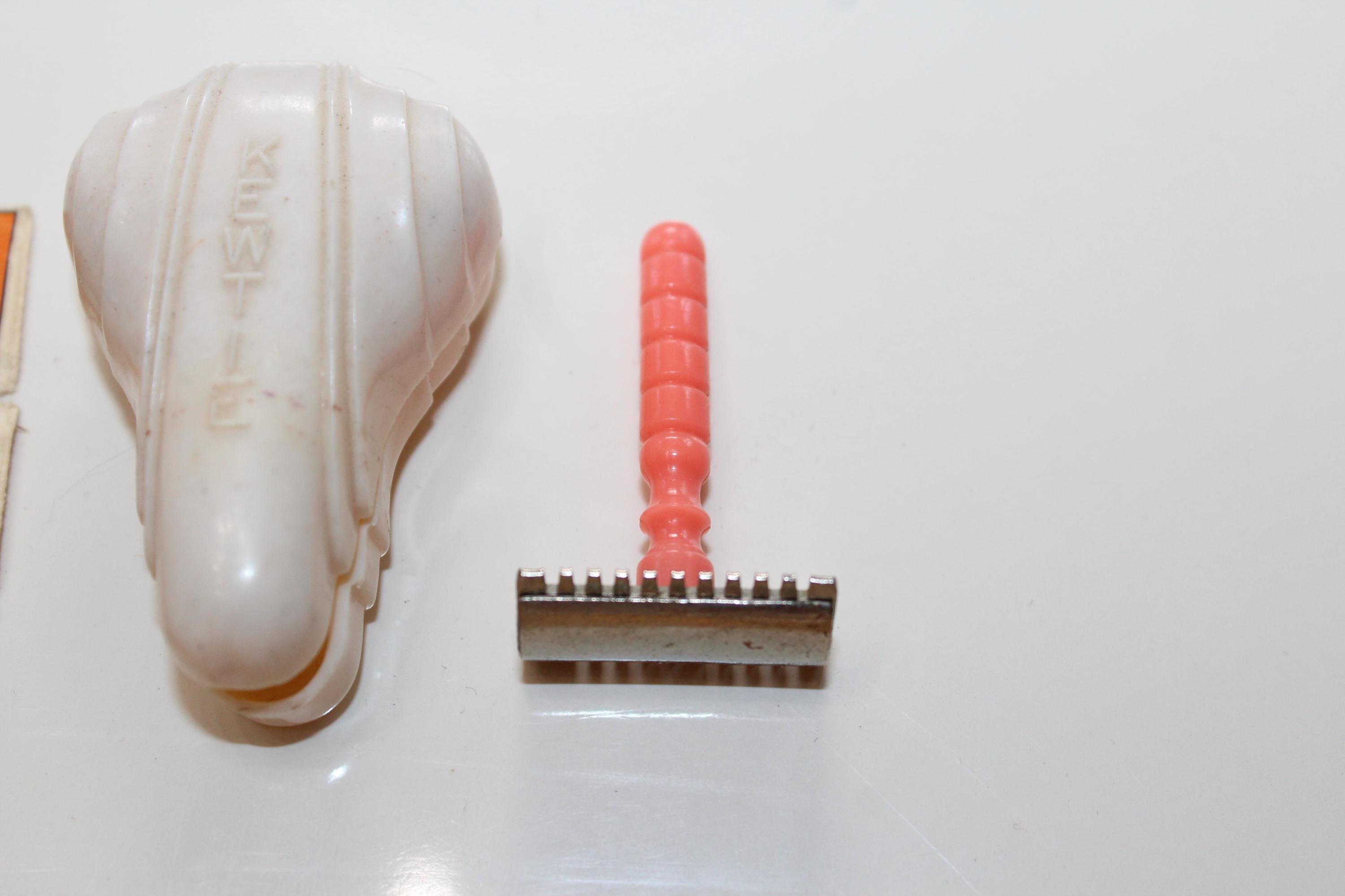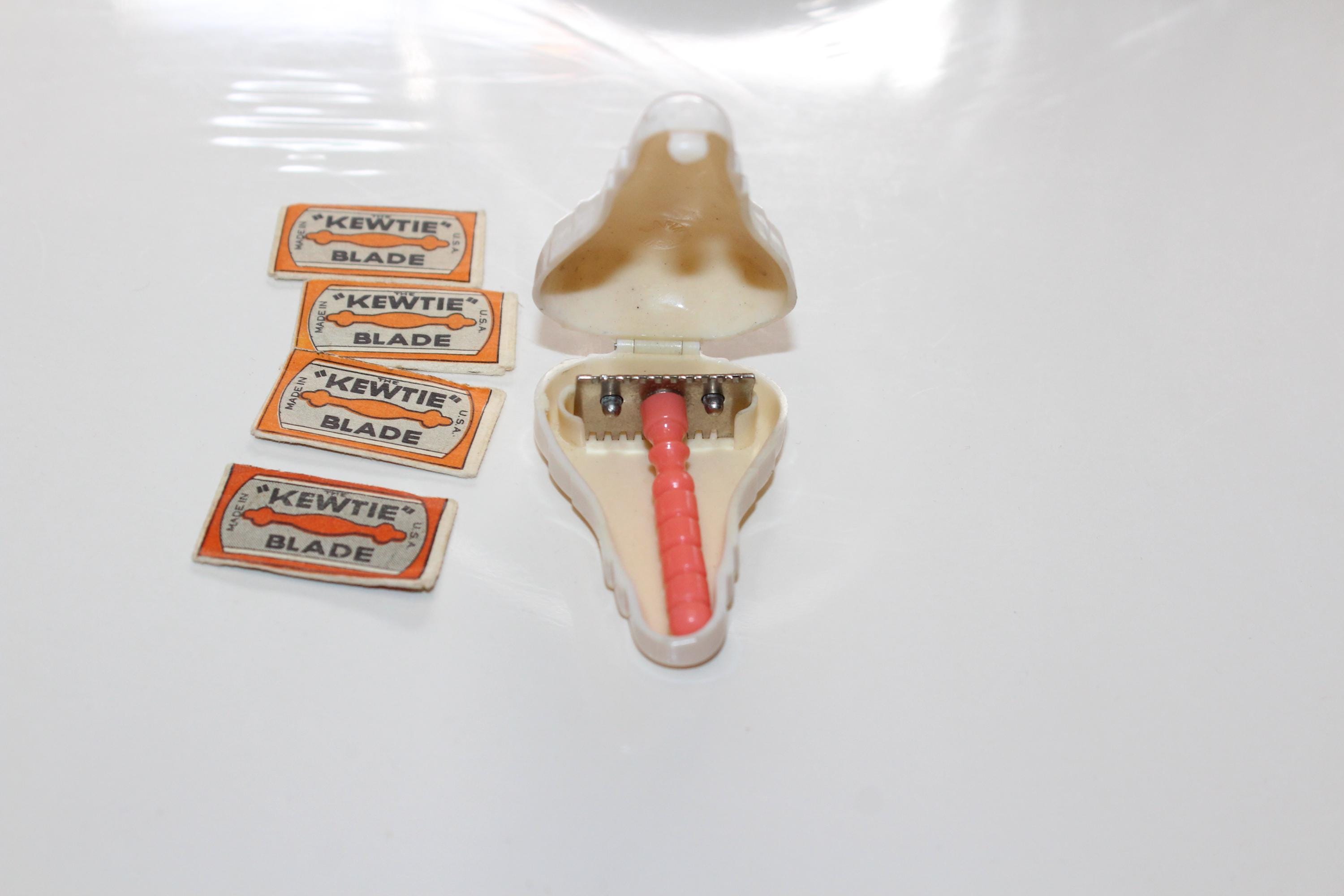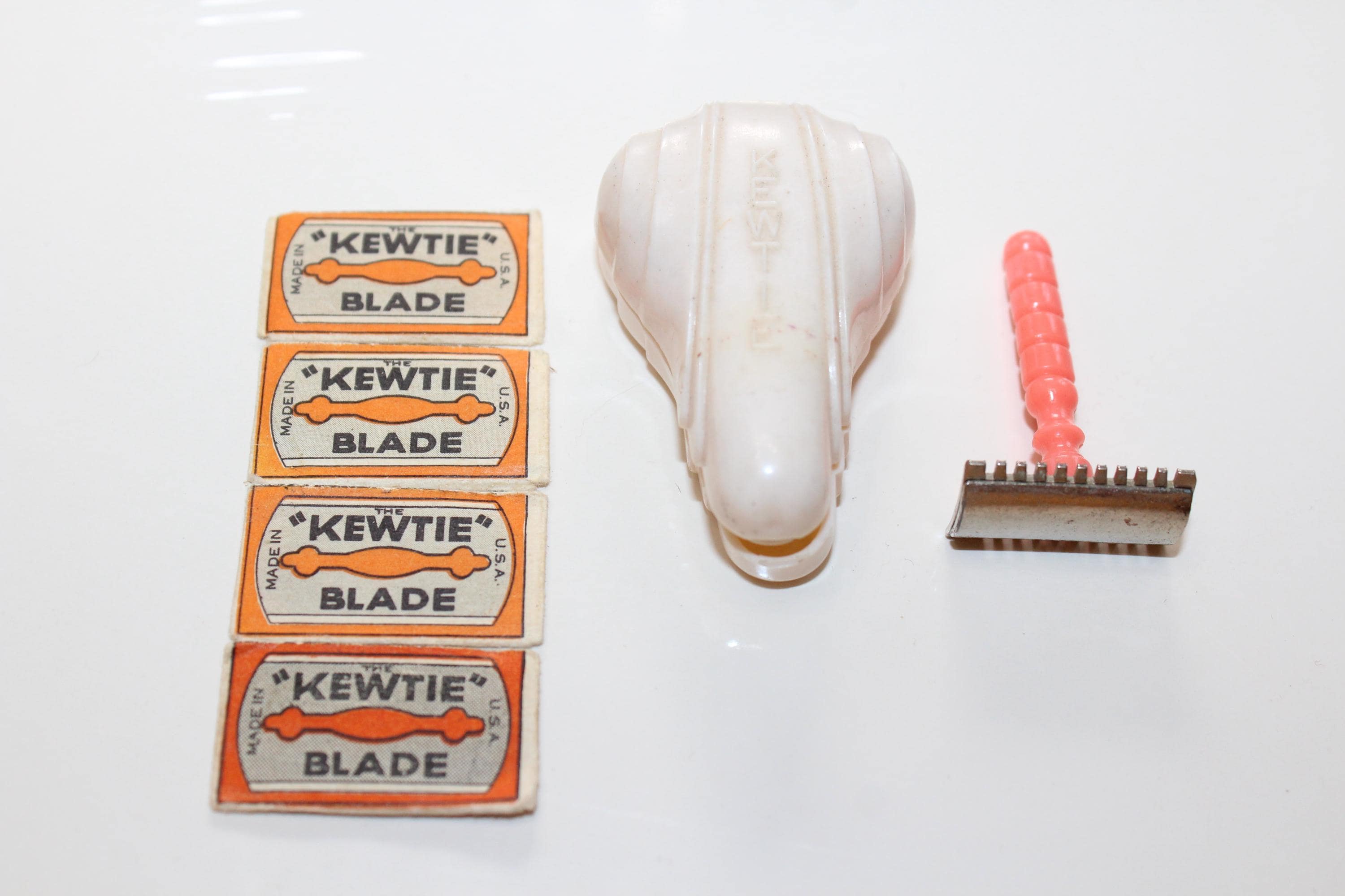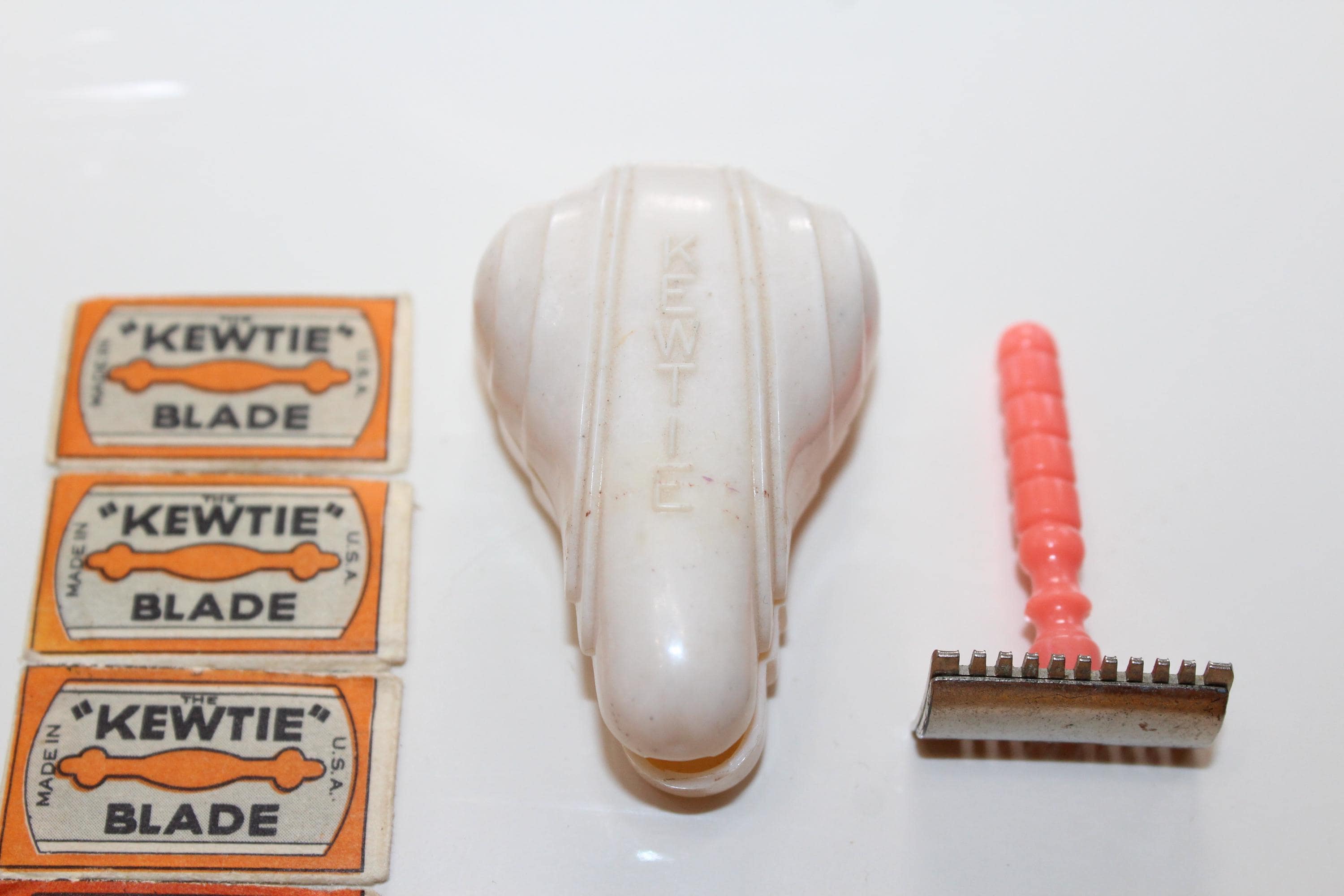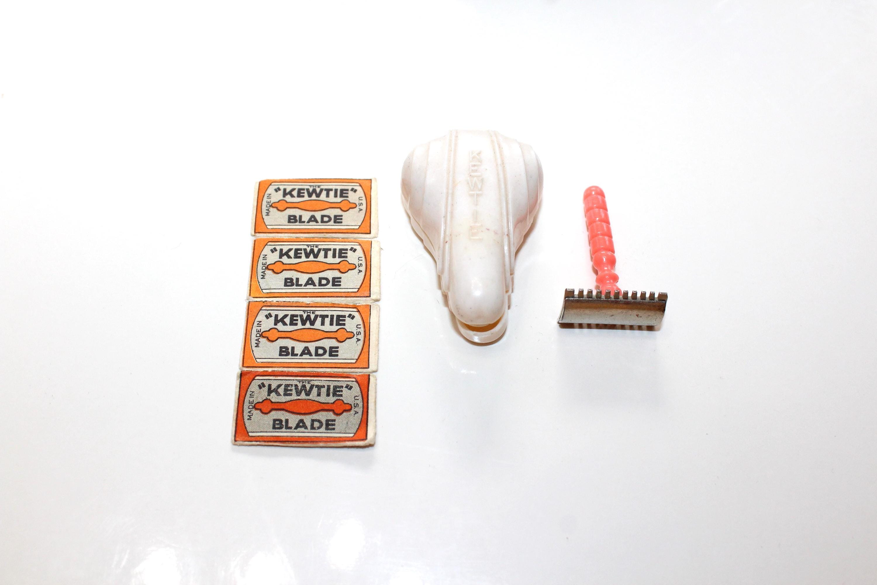 Vintage lady's Kewtie mini travel under arm razor with blades and original box. Makes a great bathroom decoration or addition to a collection. Enjoy!